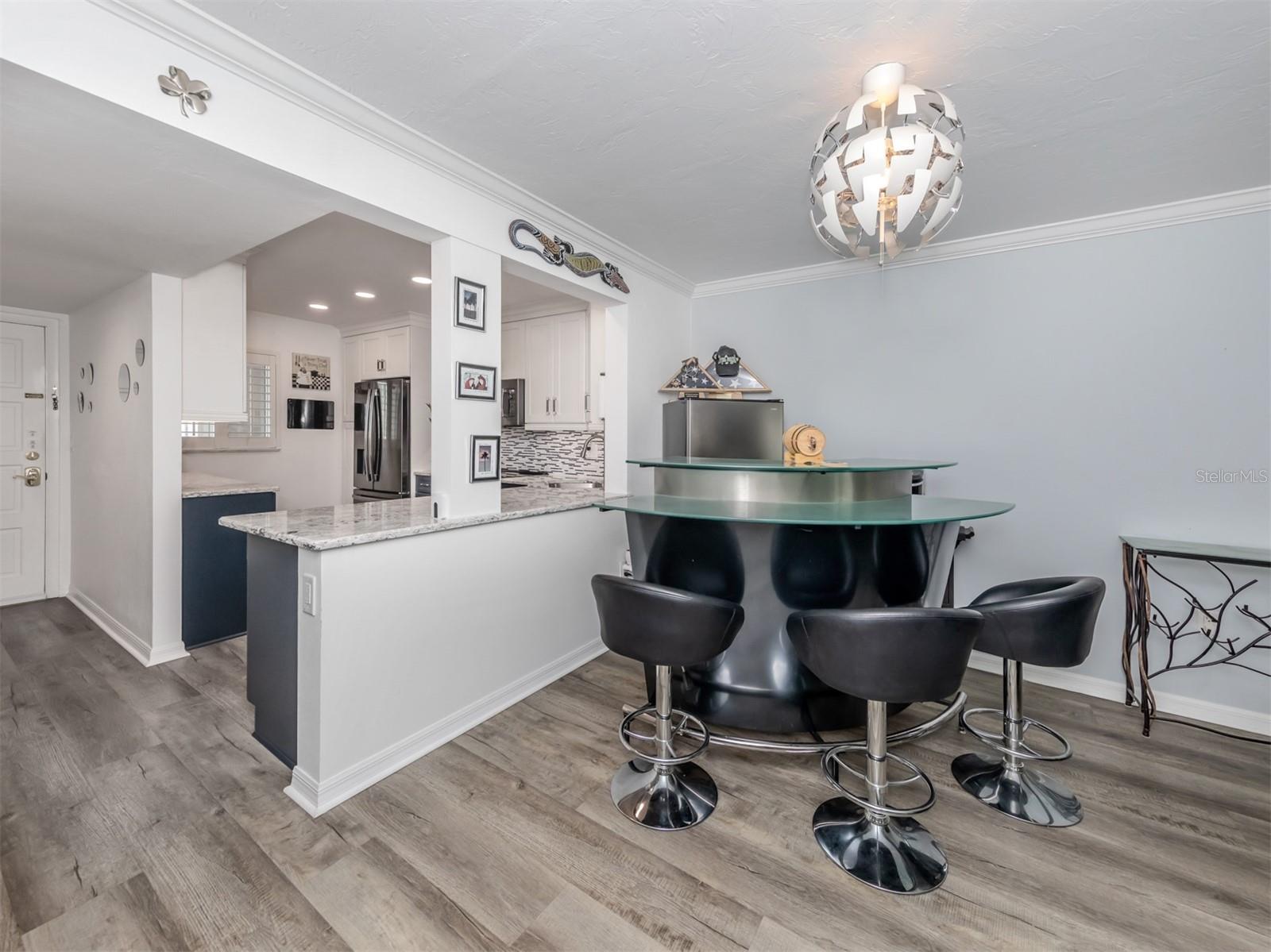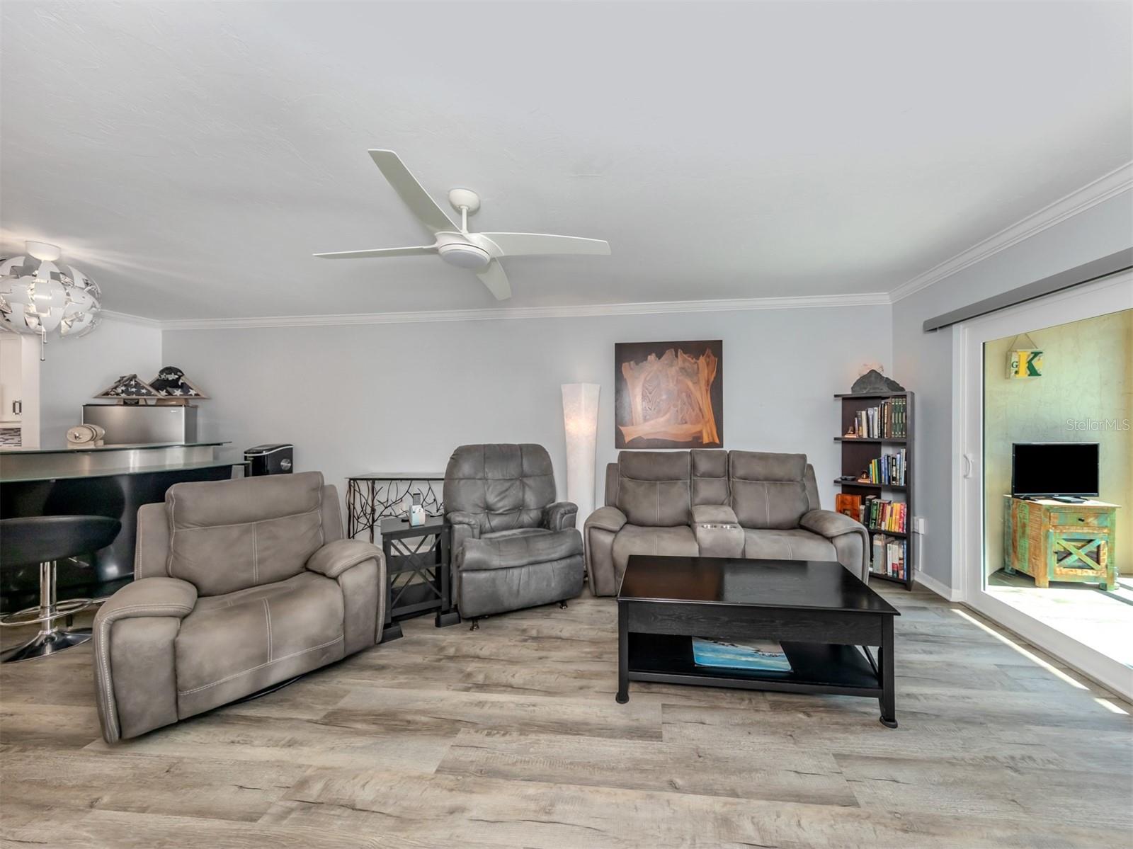 This charming 2-bedroom, 2-bathroom condominium embodies the essence of coastal living. Located in the Bella Costa Community by the Venice Intracoastal Waterway, this island condo is conveniently near downtown shops, restaurants, and local activities. With just over 1,000 square feet of living space, this unit features sleek laminate flooring, with carpeting in both bedrooms. The kitchen boasts quartz countertops, stainless steel appliances, and upgraded cabinetry. The main bedroom includes a walk-in closet and an en-suite bathroom. The guest bedroom also has a walk-in closet and a private en-suite bathroom. Additionally, this unit comes with a designated carport spot and a storage closet. The building is equipped with an elevator for easy access. The condominium community offers outstanding amenities, including a community pool, fitness center, clubhouse, and a unique fire pit for cozy evenings. With direct water access, residents can enjoy the beauty of the Gulf for fishing or boating. Please note that pets are not allowed in the community.
