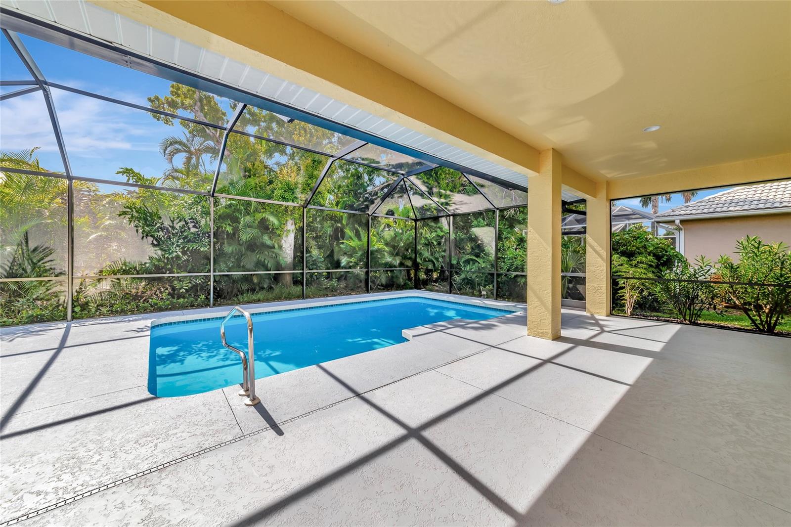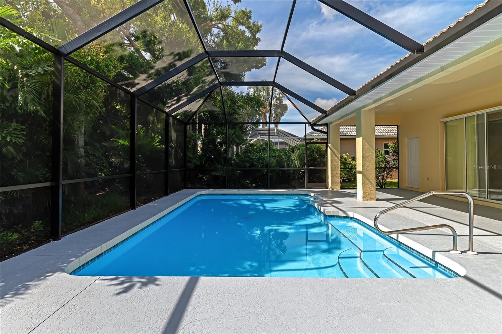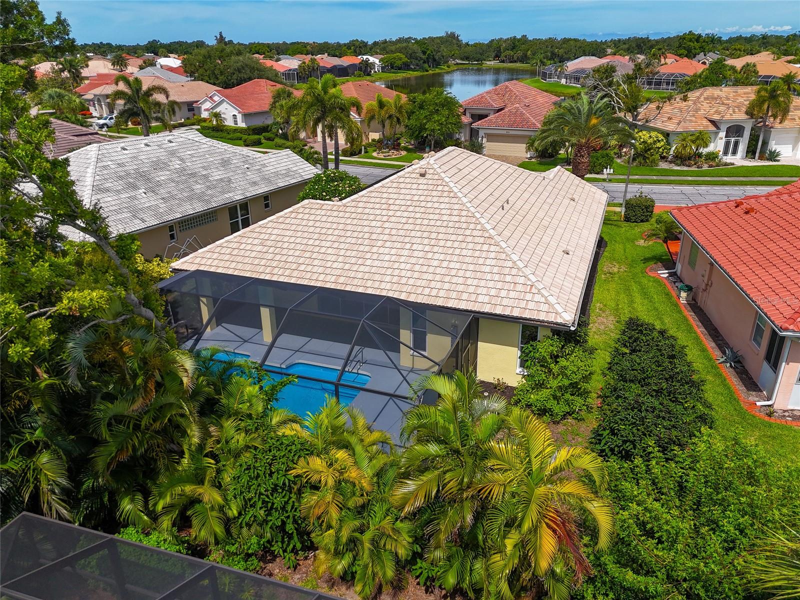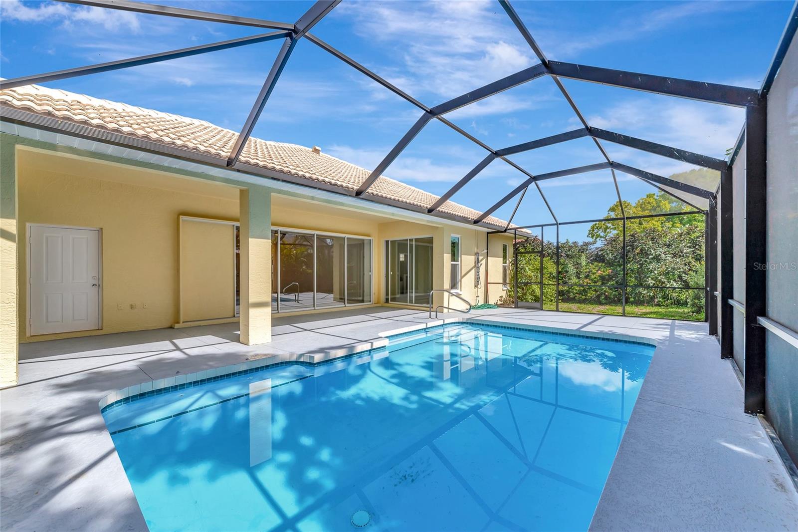 One or more photo(s) has been virtually staged. Welcome to this beautifully renovated 3-bedroom 2-bathroom POOL HOME located in the sought-after community of Lake of the Woods of Jacaranda in Venice, FL All the work has been done for new owners. This community is conveniently located near Venice's beautiful Gulf beaches and charming downtown shops, theater and performing arts center. You will easily make new friends at the community center playing tennis or pickleball or just enjoying a swim in a large pool. Very low HOA. This home welcomes you with large open living room/ dining room space that can be arrange to your taste and needs, high tray ceilings and 4 sets of sliding glass pocket doors that opens out to the BRAND-NEW pool cage with newly painted HEATED pool and large covered patio, where you can relax and unwind. The Lanai is surrounded by lush greenery that gives total privacy, the pool deck offers plenty of space for lounging and entertaining, making it the perfect place to host friends and family. There is a bonus room on the lanai, perfect for storing your outdoor furniture and pool toys. The split plan features two private oversize bedrooms with dedicated bath. The master bedroom overlooks the pool and has an attached master bath complete with tub, walk-in shower, double vanities, plus large walk-in closet. Eat in kitchen was just equipped with lots of Shaker style cabinets and beautiful Quartz countertops. The home has been re-piped for your piece of mind and has a new electric panel. The Lakes of Jacaranda boasts of a community pool, clubhouse, pickleball and tennis courts. There are numerous lakes, walking and biking paths for your outdoor enjoyment. Come experience and enjoy the total lifestyle that this wonderful home and premier community offers. No CDD, NOT in a FLOOD ZONE Roof in great condition.