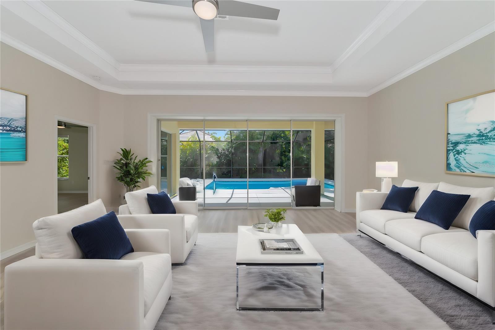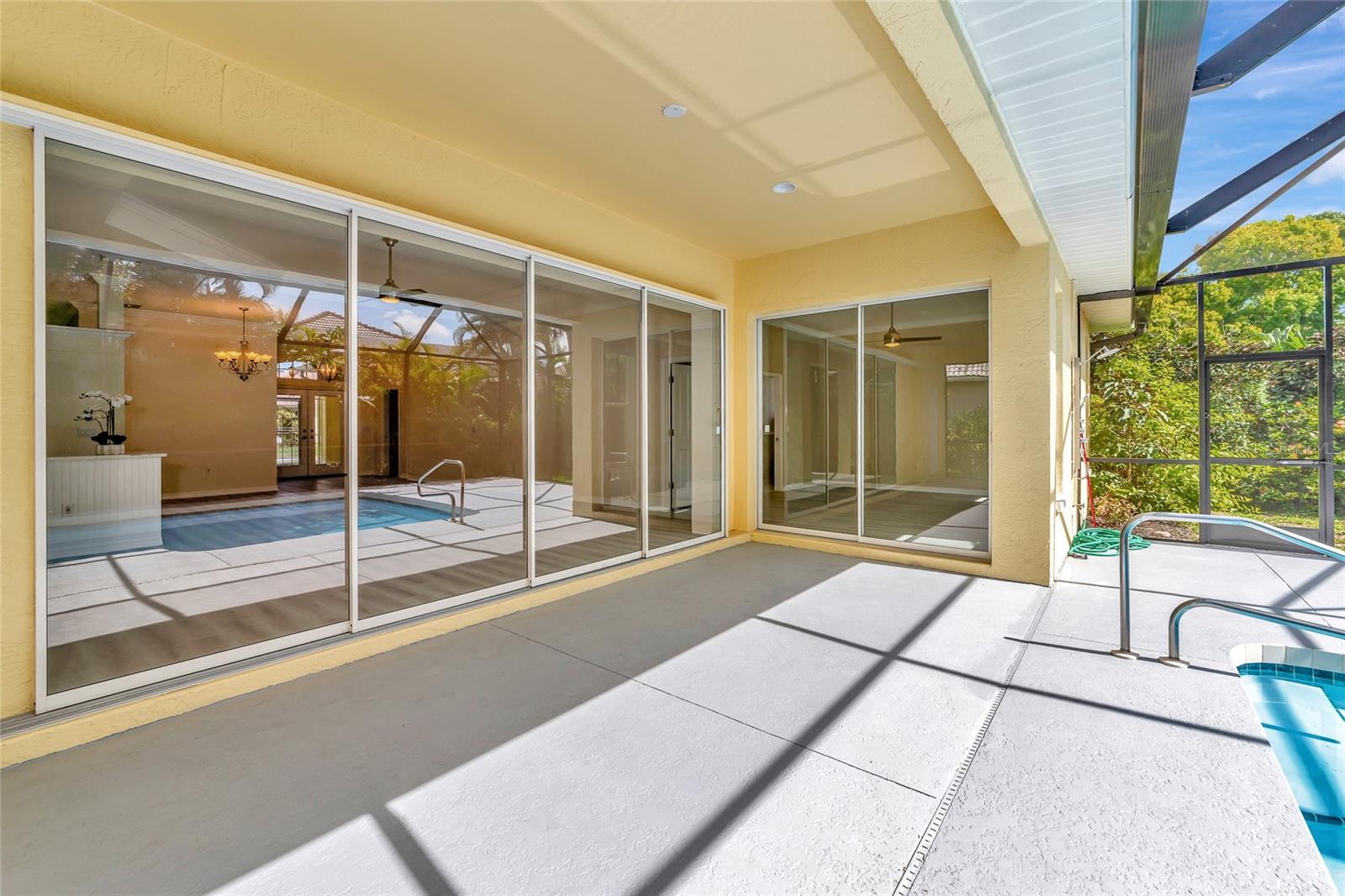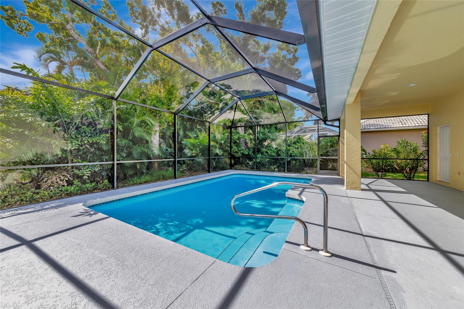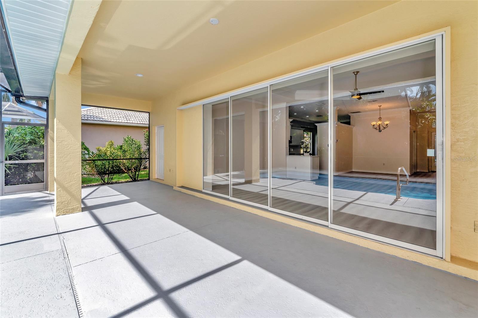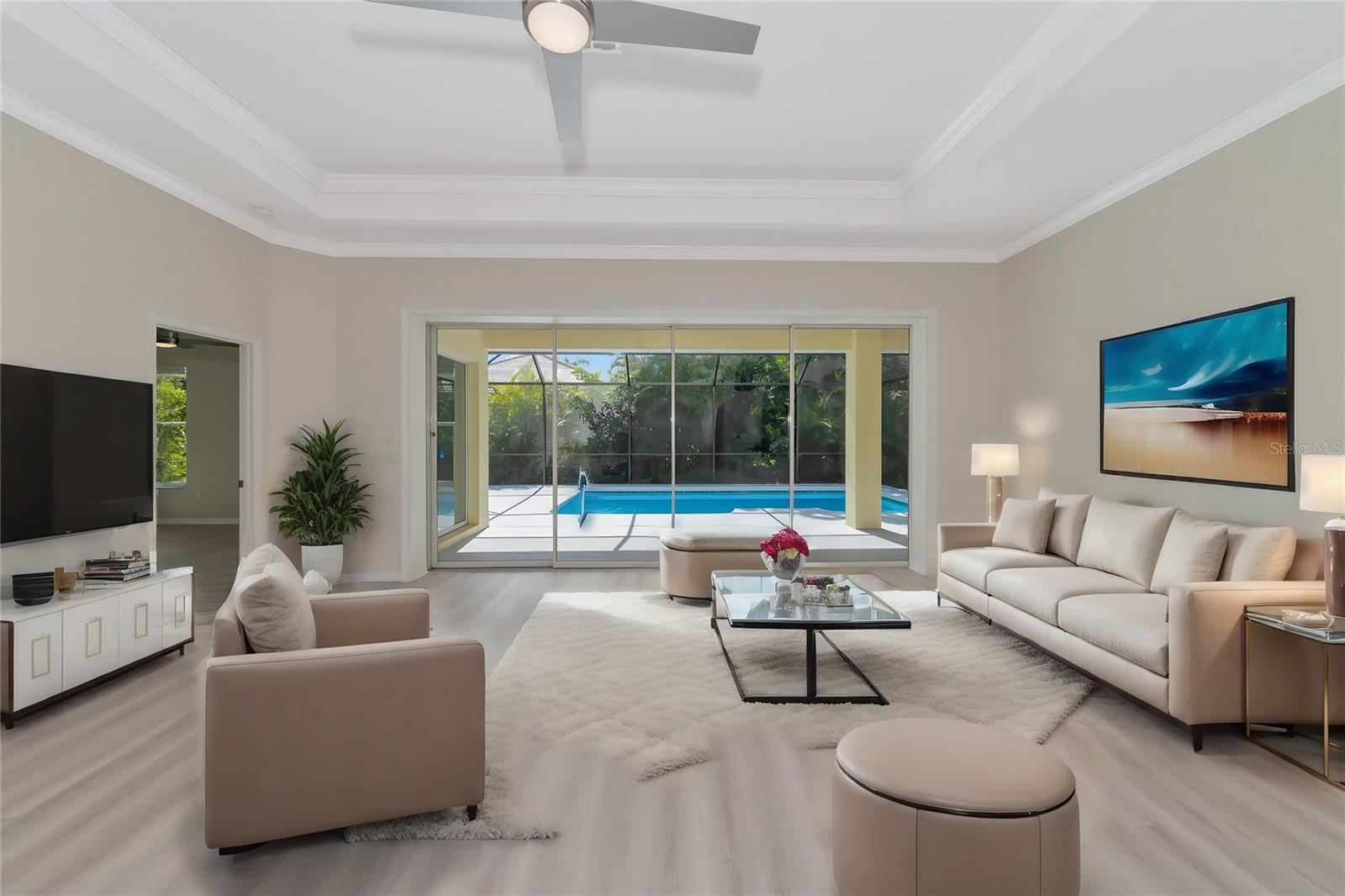 One or more photo(s) has been virtually staged. Welcome to this beautifully renovated 3-bedroom 2-bathroom POOL HOME located in the sought-after community of Lake of the Woods of Jacaranda in Venice, FL All the work has been done for new owners. This community is conveniently located near Venice's beautiful Gulf beaches and charming downtown shops, theater and performing arts center. You will easily make new friends at the community center playing tennis or pickleball or just enjoying a swim in a large pool. Very low HOA. This home welcomes you with large open living room/ dining room space that can be arrange to your taste and needs, high tray ceilings and 4 sets of sliding glass pocket doors that opens out to the BRAND-NEW pool cage with newly painted HEATED pool and large covered patio, where you can relax and unwind. The Lanai is surrounded by lush greenery that gives total privacy, the pool deck offers plenty of space for lounging and entertaining, making it the perfect place to host friends and family. There is a bonus room on the lanai, perfect for storing your outdoor furniture and pool toys. The split plan features two private oversize bedrooms with dedicated bath. The master bedroom overlooks the pool and has an attached master bath complete with tub, walk-in shower, double vanities, plus large walk-in closet. Eat in kitchen was just equipped with lots of Shaker style cabinets and beautiful Quartz countertops. The home has been re-piped for your piece of mind and has a new electric panel. The Lakes of Jacaranda boasts of a community pool, clubhouse, pickleball and tennis courts. There are numerous lakes, walking and biking paths for your outdoor enjoyment. Come experience and enjoy the total lifestyle that this wonderful home and premier community offers. No CDD, NOT in a FLOOD ZONE Roof in great condition.