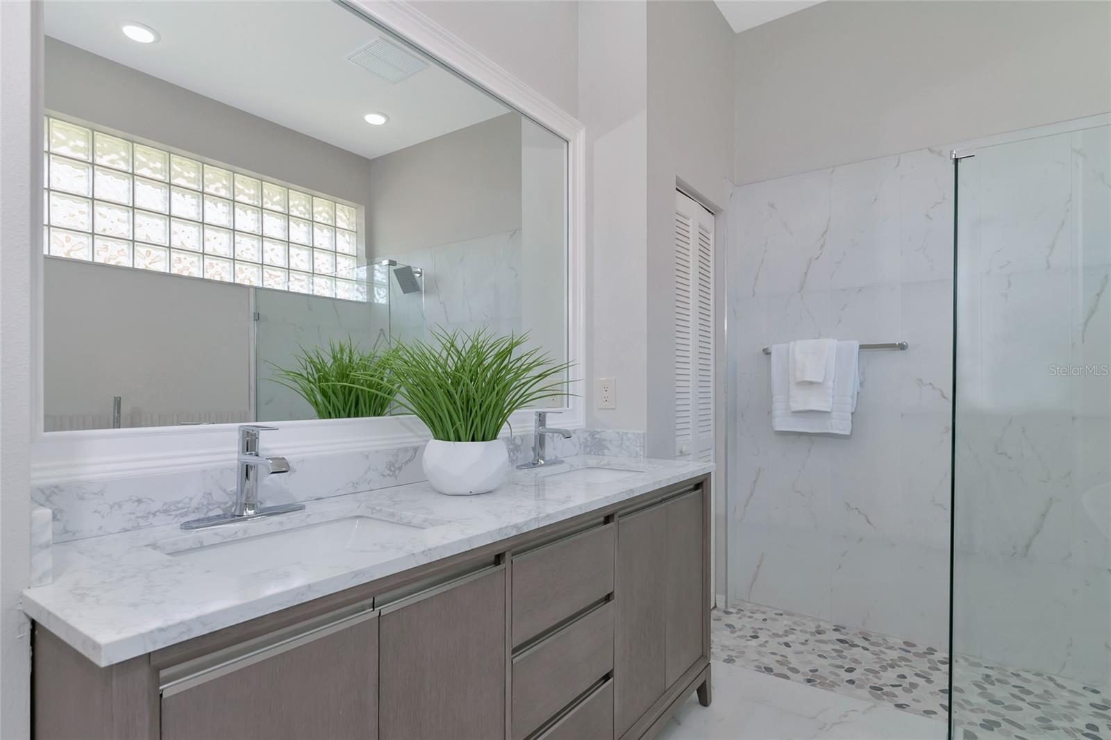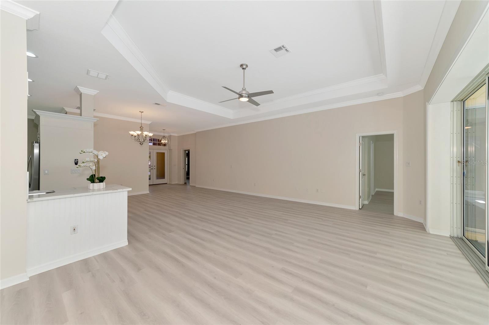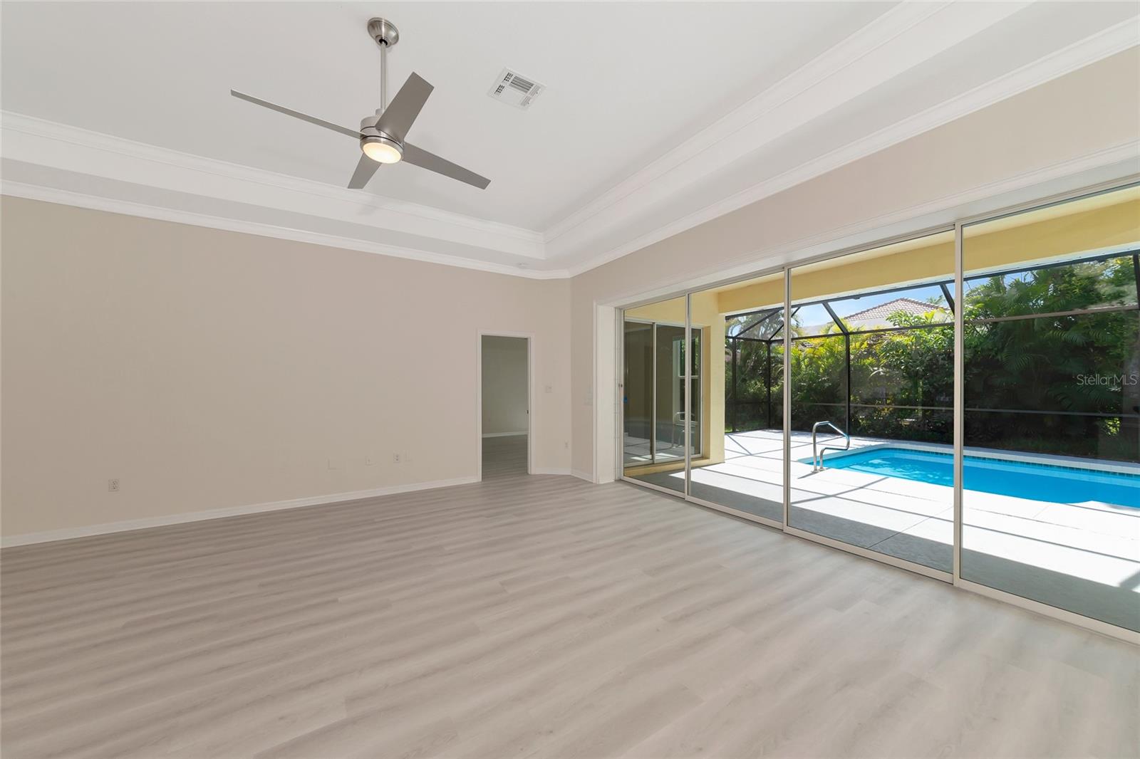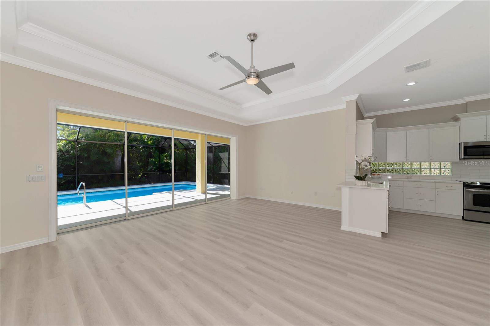 One or more photo(s) has been virtually staged. Welcome to this beautifully renovated 3-bedroom 2-bathroom POOL HOME located in the sought-after community of Lake of the Woods of Jacaranda in Venice, FL All the work has been done for new owners. This community is conveniently located near Venice's beautiful Gulf beaches and charming downtown shops, theater and performing arts center. You will easily make new friends at the community center playing tennis or pickleball or just enjoying a swim in a large pool. Very low HOA. This home welcomes you with large open living room/ dining room space that can be arrange to your taste and needs, high tray ceilings and 4 sets of sliding glass pocket doors that opens out to the BRAND-NEW pool cage with newly painted HEATED pool and large covered patio, where you can relax and unwind. The Lanai is surrounded by lush greenery that gives total privacy, the pool deck offers plenty of space for lounging and entertaining, making it the perfect place to host friends and family. There is a bonus room on the lanai, perfect for storing your outdoor furniture and pool toys. The split plan features two private oversize bedrooms with dedicated bath. The master bedroom overlooks the pool and has an attached master bath complete with tub, walk-in shower, double vanities, plus large walk-in closet. Eat in kitchen was just equipped with lots of Shaker style cabinets and beautiful Quartz countertops. The home has been re-piped for your piece of mind and has a new electric panel. The Lakes of Jacaranda boasts of a community pool, clubhouse, pickleball and tennis courts. There are numerous lakes, walking and biking paths for your outdoor enjoyment. Come experience and enjoy the total lifestyle that this wonderful home and premier community offers. No CDD, NOT in a FLOOD ZONE Roof in great condition.