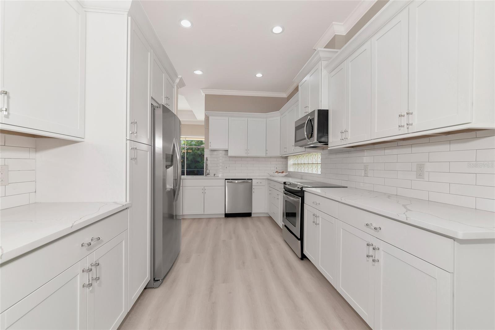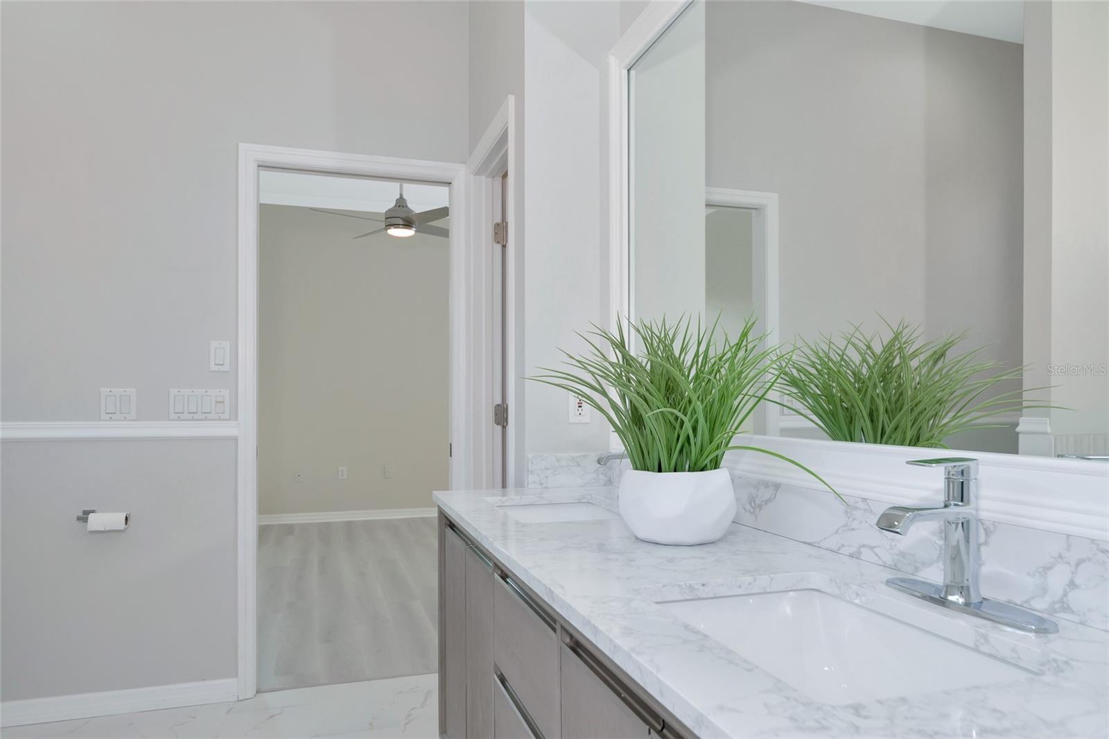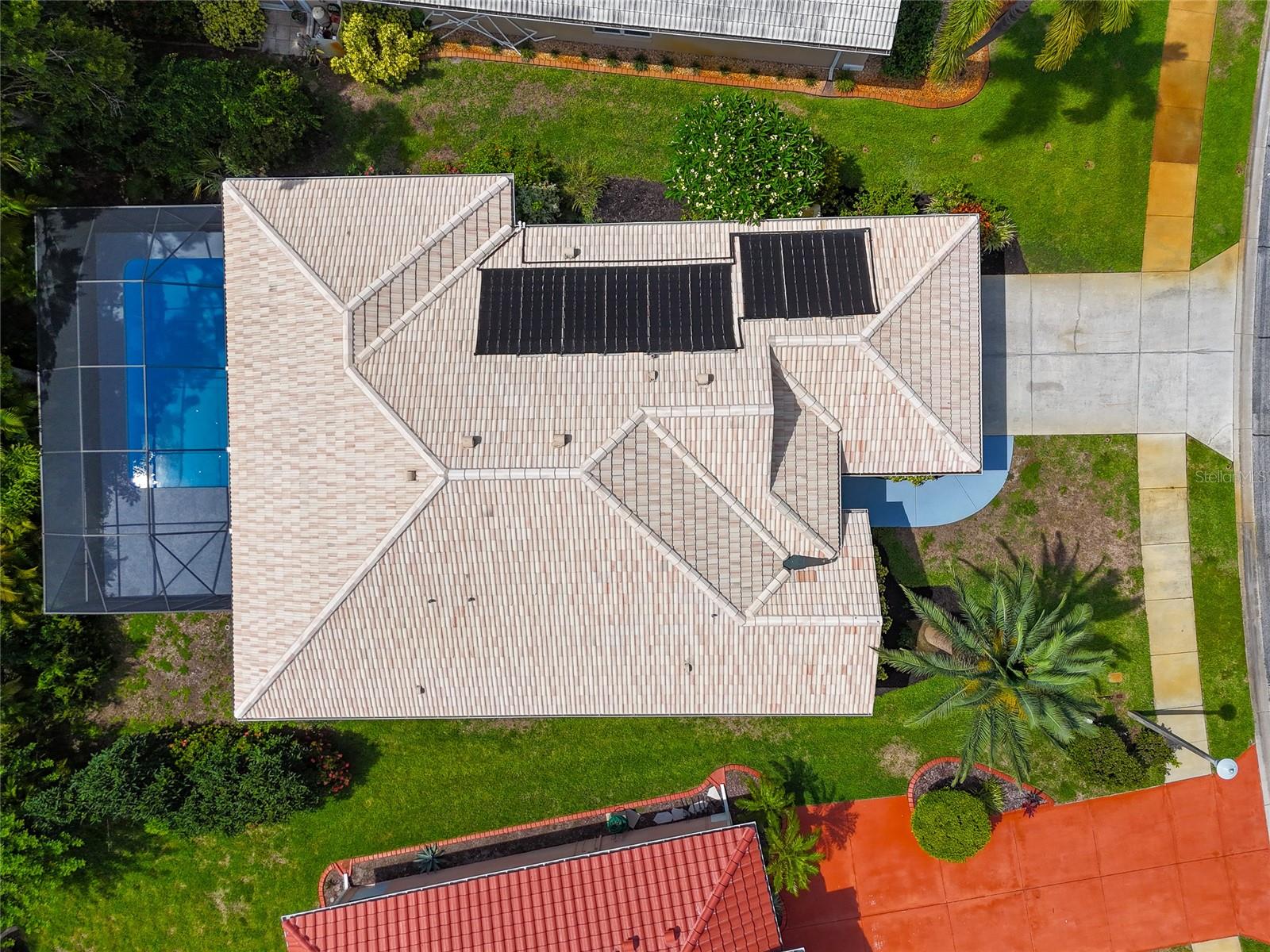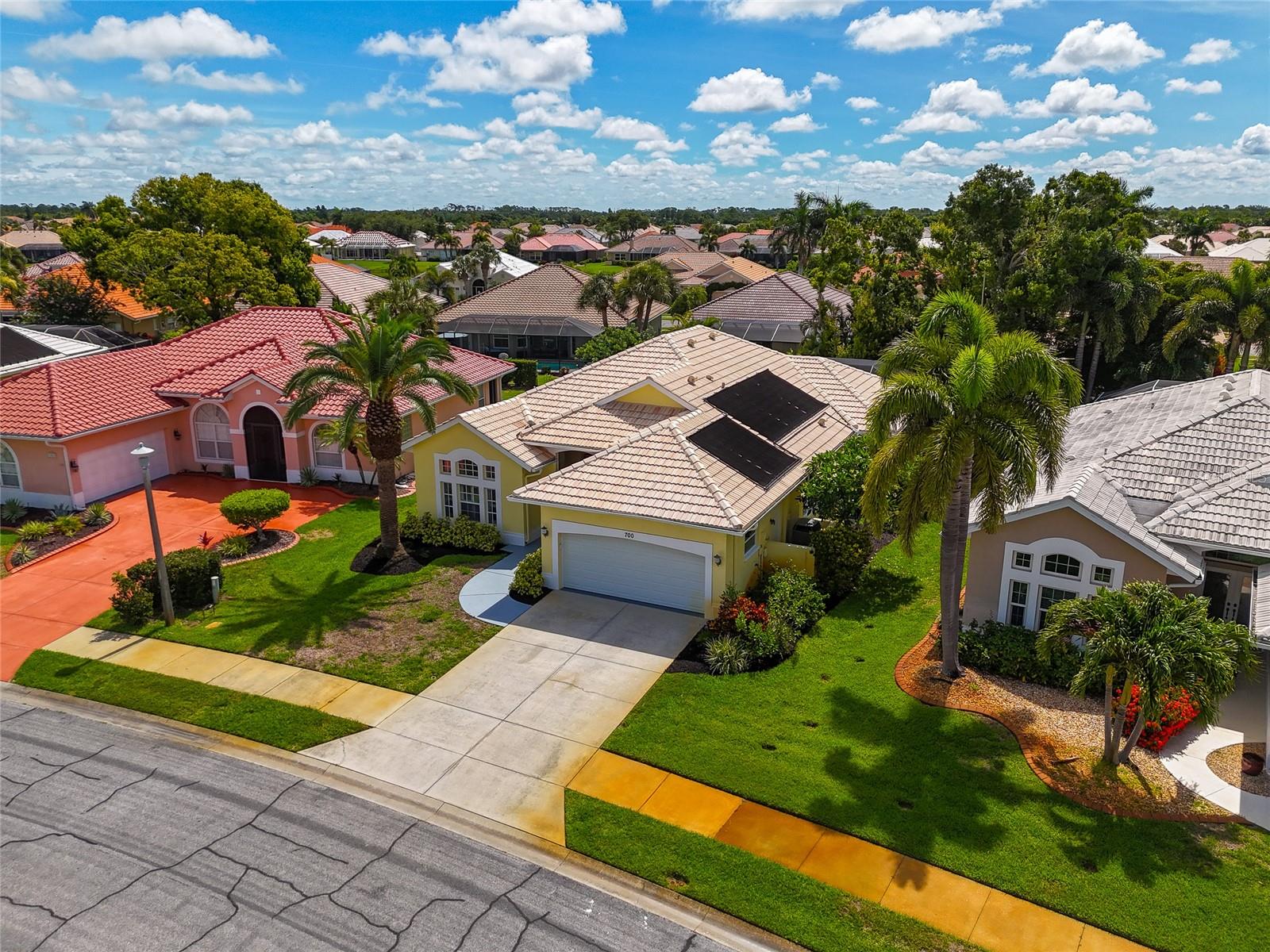 One or more photo(s) has been virtually staged. Welcome to this beautifully renovated 3-bedroom 2-bathroom POOL HOME located in the sought-after community of Lake of the Woods of Jacaranda in Venice, FL All the work has been done for new owners. This community is conveniently located near Venice's beautiful Gulf beaches and charming downtown shops, theater and performing arts center. You will easily make new friends at the community center playing tennis or pickleball or just enjoying a swim in a large pool. Very low HOA. This home welcomes you with large open living room/ dining room space that can be arrange to your taste and needs, high tray ceilings and 4 sets of sliding glass pocket doors that opens out to the BRAND-NEW pool cage with newly painted HEATED pool and large covered patio, where you can relax and unwind. The Lanai is surrounded by lush greenery that gives total privacy, the pool deck offers plenty of space for lounging and entertaining, making it the perfect place to host friends and family. There is a bonus room on the lanai, perfect for storing your outdoor furniture and pool toys. The split plan features two private oversize bedrooms with dedicated bath. The master bedroom overlooks the pool and has an attached master bath complete with tub, walk-in shower, double vanities, plus large walk-in closet. Eat in kitchen was just equipped with lots of Shaker style cabinets and beautiful Quartz countertops. The home has been re-piped for your piece of mind and has a new electric panel. The Lakes of Jacaranda boasts of a community pool, clubhouse, pickleball and tennis courts. There are numerous lakes, walking and biking paths for your outdoor enjoyment. Come experience and enjoy the total lifestyle that this wonderful home and premier community offers. No CDD, NOT in a FLOOD ZONE Roof in great condition.