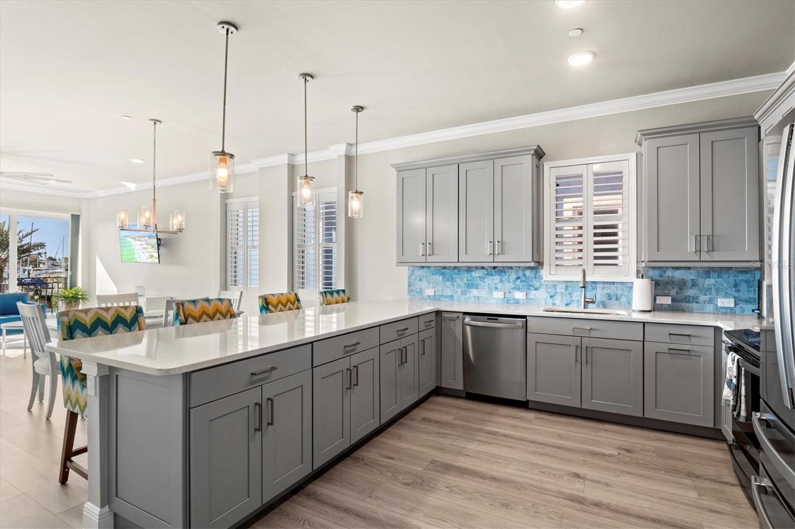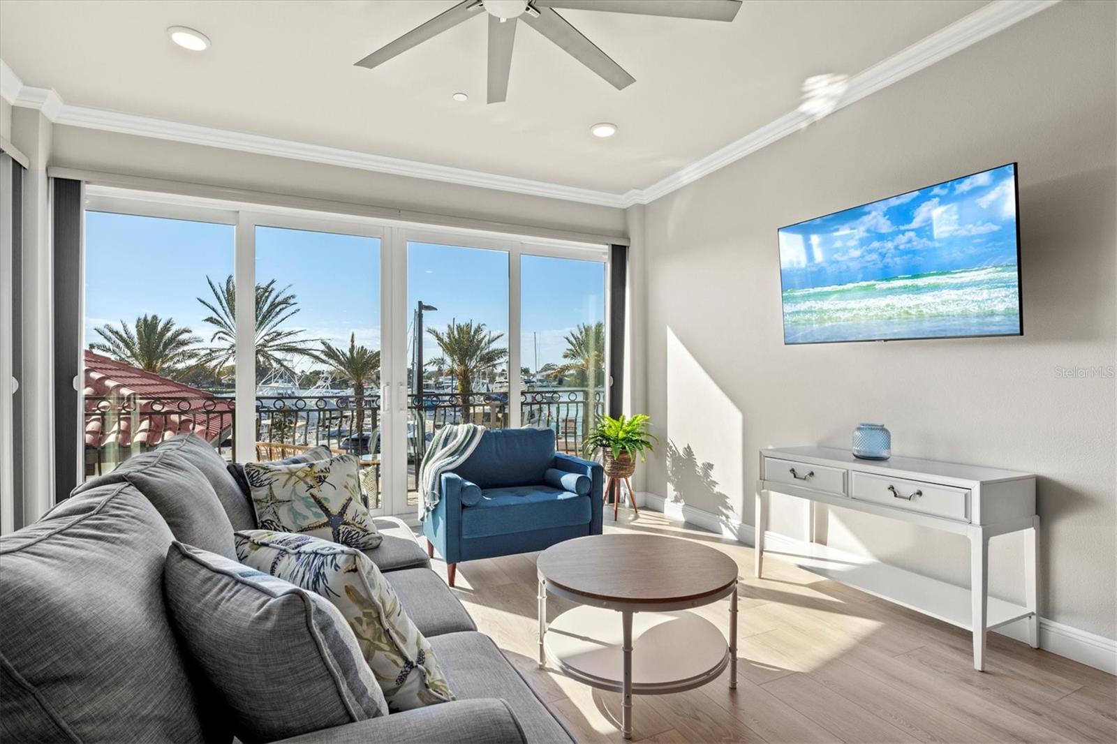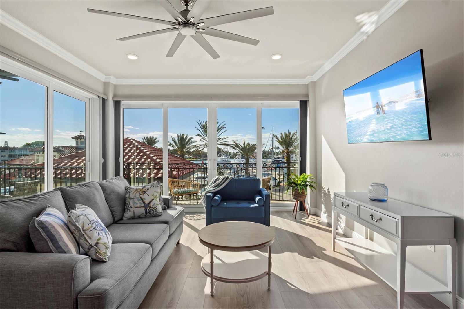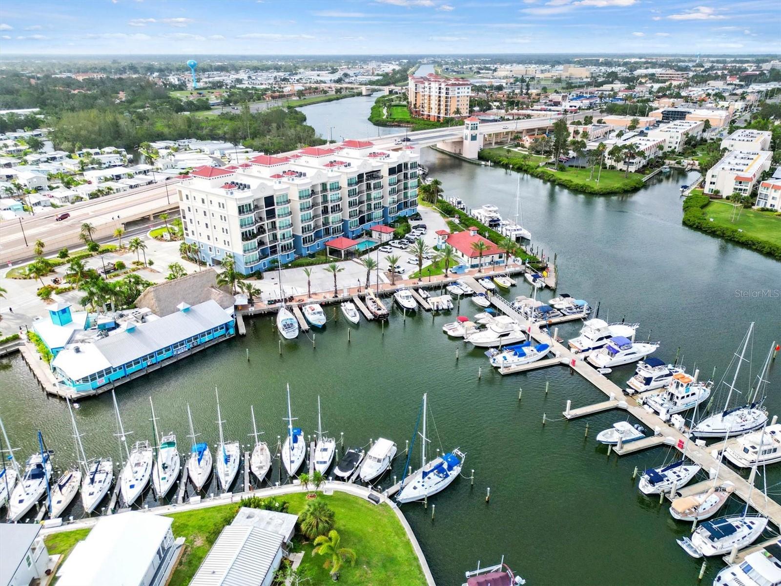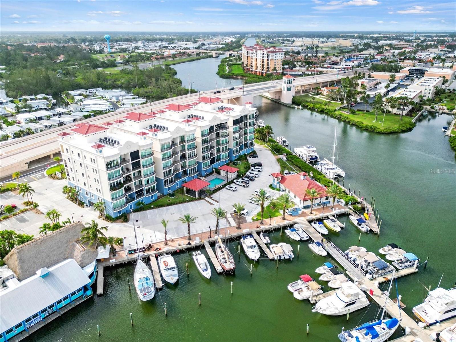 One or more photo(s) has been virtually staged. Welcome to the epitome of waterfront luxury living at your new paradise in the prestigious Porto Vista community, a gem nestled within Fisherman's Wharf Marina in the charming coastal community of Venice, Florida. This 3-bedroom, 2-bathroom masterpiece, crafted in 2022, offers over 1,800 sqft of opulent living space, capturing breathtaking water views and mesmerizing sunsets from your private 2nd-floor balcony. As you step off the elevator, the ambiance of sophistication surrounds you. This open-concept space boasts luxury vinyl plank flooring and crown molding, creating a seamless blend of elegance and comfort. Floor-to-ceiling hurricane impact windows bathe the space in natural light, accented by plantation shutters that adorn the smaller windows throughout. The chef-inspired kitchen is a culinary dream, featuring quartz countertops, stainless steel appliances, Timberlake wood cabinetry, and a contemporary coastal backsplash. The generous barstool seating area complements the dining space, making it perfect for entertaining. The owner's suite, adorned with a tray ceiling, offers a private exit to the balcony, creating a retreat of tranquility. The en-suite bathroom is a masterpiece with a stunning walk-in shower and a private water closet, while a spacious walk-in closet adds convenience to luxury. The additional bedrooms are generously sized, with a well-appointed guest bathroom nearby. Step onto the balcony, where the marina's boat activity unfolds before you, or simply bask in the view of the inviting pool below. Each unit includes a one-car enclosed garage, accessible via the secured elevator and stairwell, providing both convenience and security. Indulge in leisure at the heated swimming pool and cabana area, just steps from your residence. The onsite restaurant, Dockside Waterfront Grill, beckons for dining and drinks, while downtown Venice Mainstreet offers an array of fabulous restaurants. Explore boutiques and shops on the Island of Venice or take a leisurely stroll or bike ride along the Venetian Waterway Trail. Fisherman's Wharf Marina extends its offerings with boat slip rentals, boat rentals, fishing trips, and even scuba diving adventures. Porto Vista Condominiums redefine the notion of "home," where luxury meets the tranquil rhythm of the water. Welcome Home!