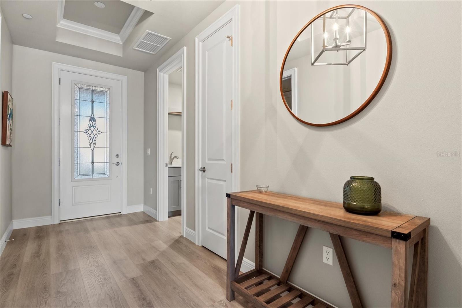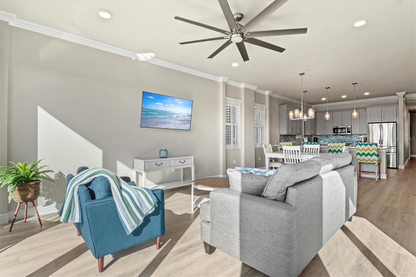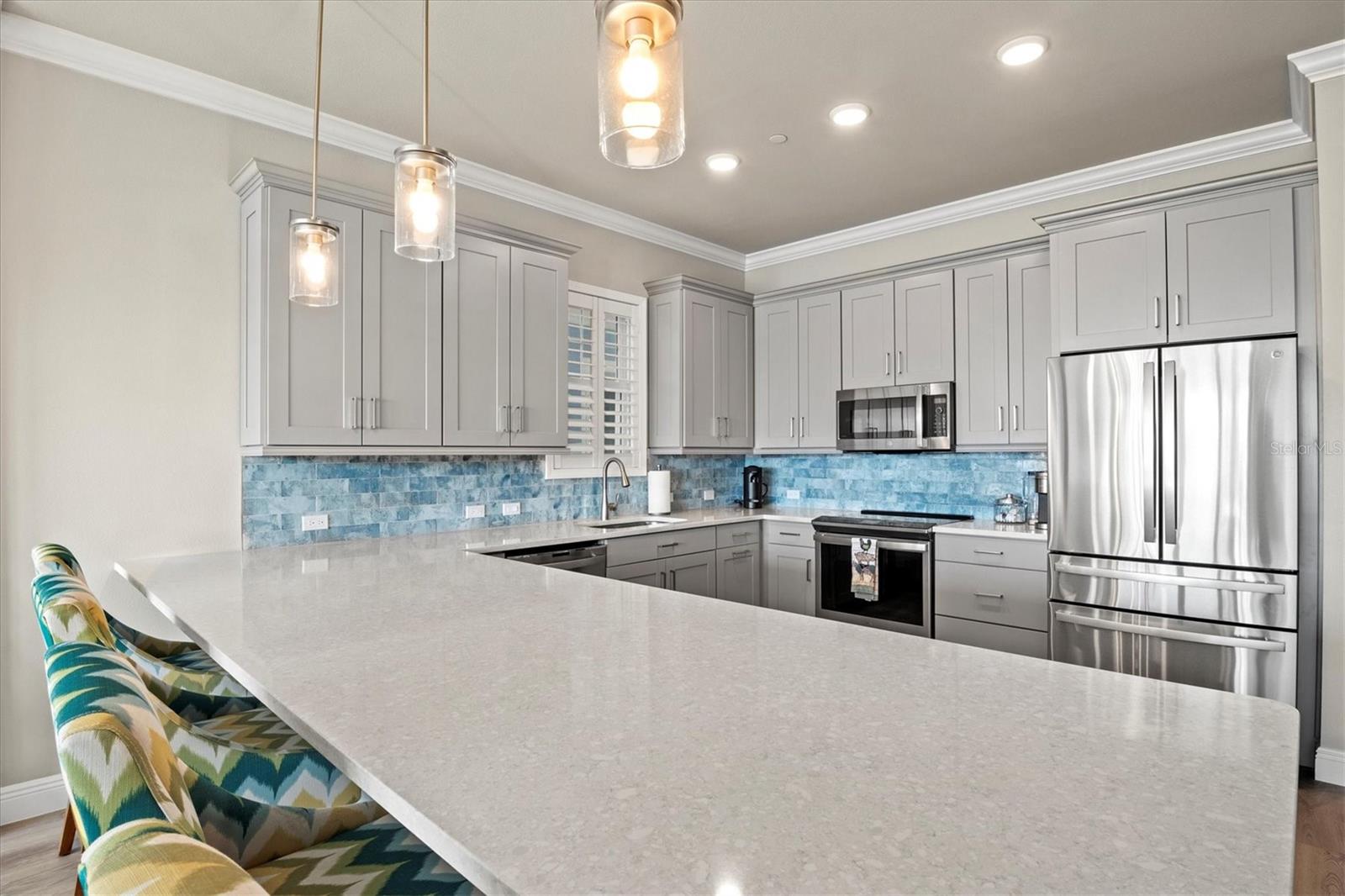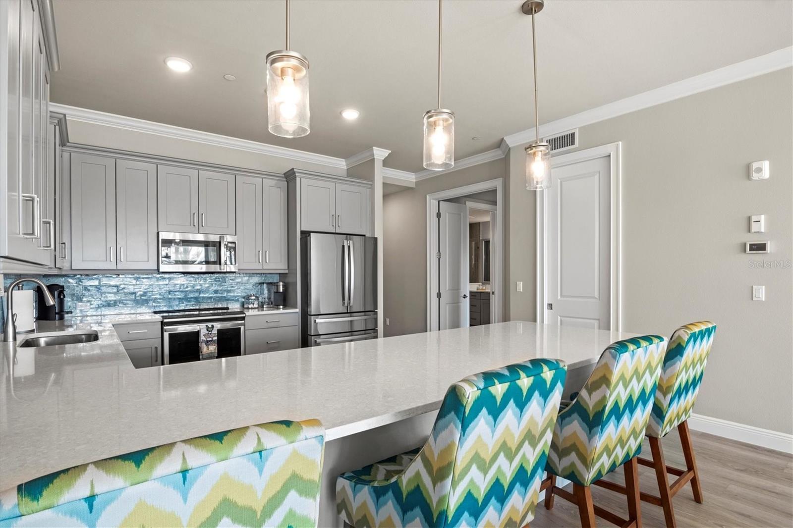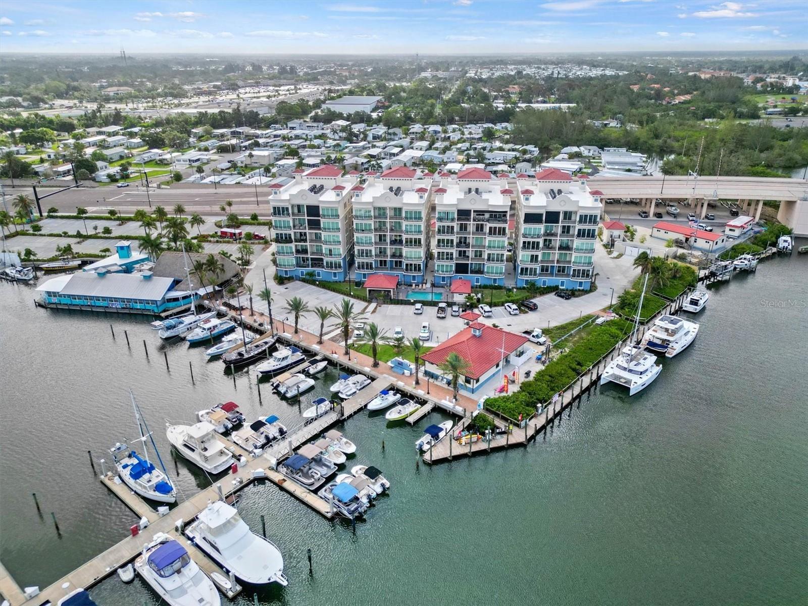 One or more photo(s) has been virtually staged. Welcome to the epitome of waterfront luxury living at your new paradise in the prestigious Porto Vista community, a gem nestled within Fisherman's Wharf Marina in the charming coastal community of Venice, Florida. This 3-bedroom, 2-bathroom masterpiece, crafted in 2022, offers over 1,800 sqft of opulent living space, capturing breathtaking water views and mesmerizing sunsets from your private 2nd-floor balcony. As you step off the elevator, the ambiance of sophistication surrounds you. This open-concept space boasts luxury vinyl plank flooring and crown molding, creating a seamless blend of elegance and comfort. Floor-to-ceiling hurricane impact windows bathe the space in natural light, accented by plantation shutters that adorn the smaller windows throughout. The chef-inspired kitchen is a culinary dream, featuring quartz countertops, stainless steel appliances, Timberlake wood cabinetry, and a contemporary coastal backsplash. The generous barstool seating area complements the dining space, making it perfect for entertaining. The owner's suite, adorned with a tray ceiling, offers a private exit to the balcony, creating a retreat of tranquility. The en-suite bathroom is a masterpiece with a stunning walk-in shower and a private water closet, while a spacious walk-in closet adds convenience to luxury. The additional bedrooms are generously sized, with a well-appointed guest bathroom nearby. Step onto the balcony, where the marina's boat activity unfolds before you, or simply bask in the view of the inviting pool below. Each unit includes a one-car enclosed garage, accessible via the secured elevator and stairwell, providing both convenience and security. Indulge in leisure at the heated swimming pool and cabana area, just steps from your residence. The onsite restaurant, Dockside Waterfront Grill, beckons for dining and drinks, while downtown Venice Mainstreet offers an array of fabulous restaurants. Explore boutiques and shops on the Island of Venice or take a leisurely stroll or bike ride along the Venetian Waterway Trail. Fisherman's Wharf Marina extends its offerings with boat slip rentals, boat rentals, fishing trips, and even scuba diving adventures. Porto Vista Condominiums redefine the notion of "home," where luxury meets the tranquil rhythm of the water. Welcome Home!