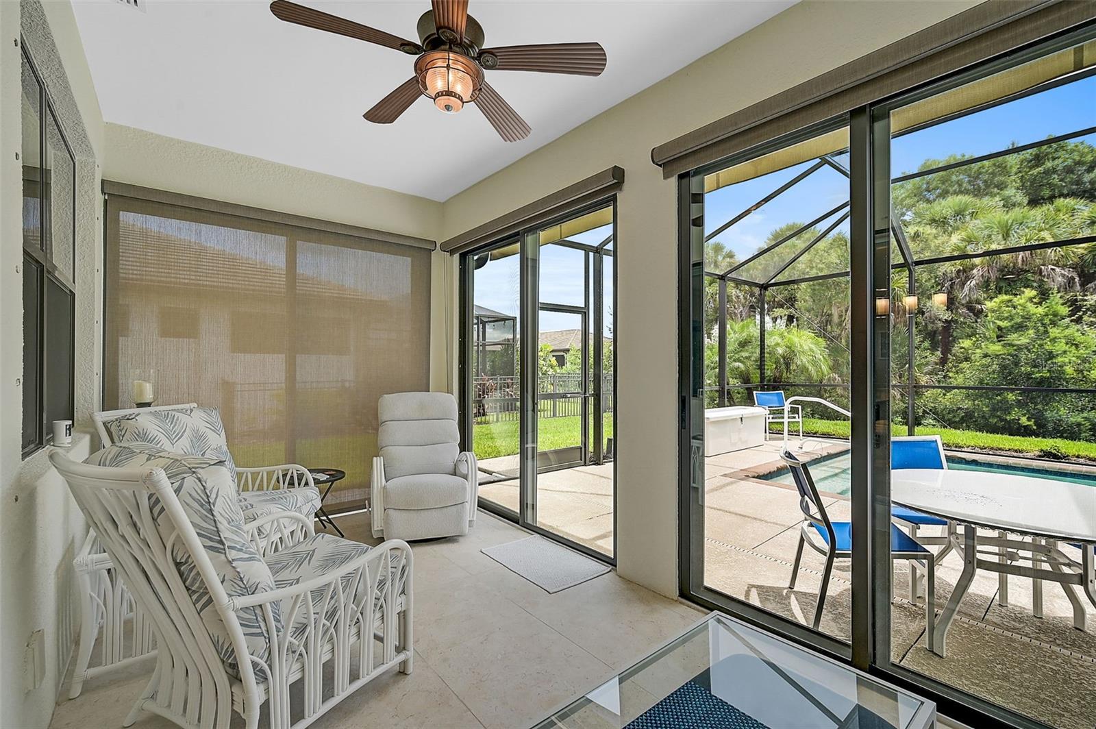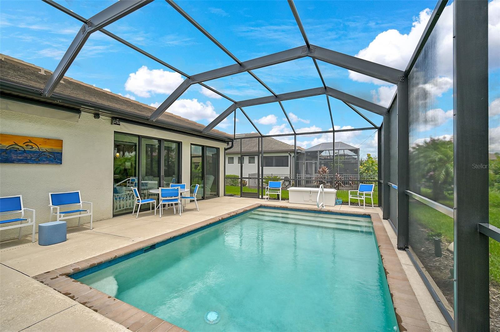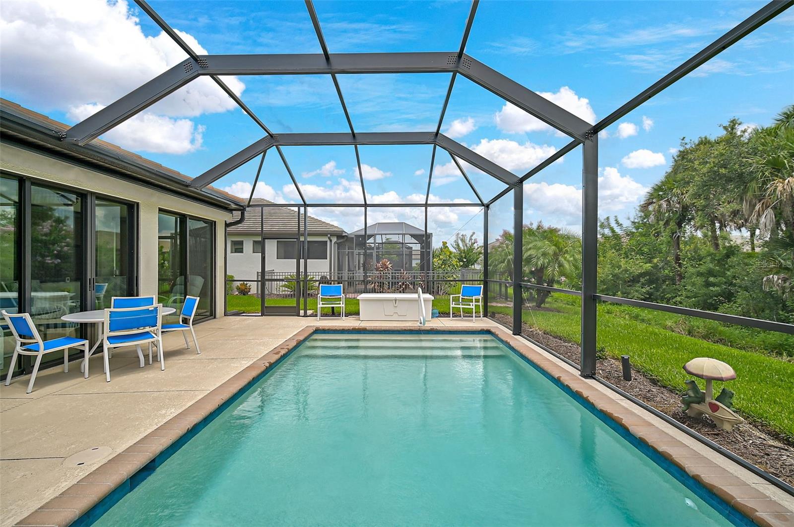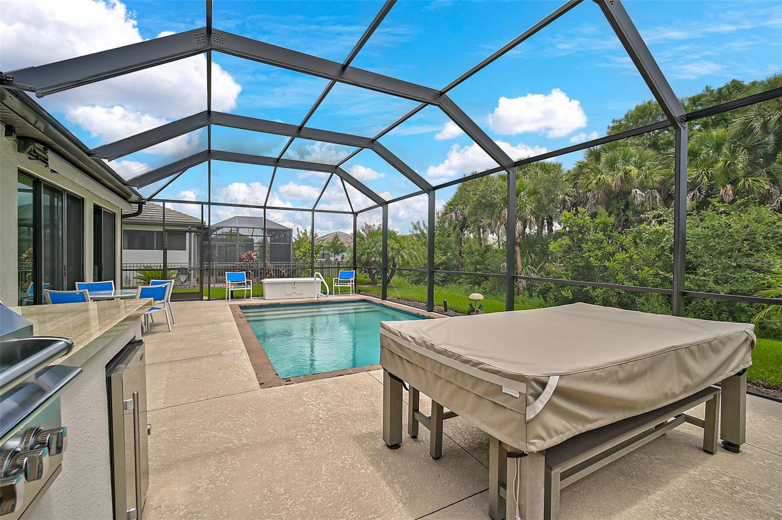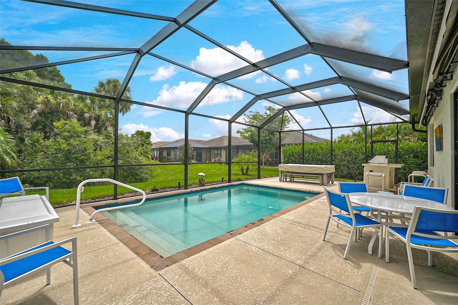 Welcome home to the Preserve at West Villages. This nearly new 2019 built home features 2 bedrooms + den and 2 full bathrooms with walk in showers and is being offered turnkey furnished optional! As you enter you immediately feel the open atmosphere with tall ceilings, 8’ doors and open concept layout. This home has abundant natural light pouring in from the numerous windows, all with plantation shutters, and sliding glass door leading out to the enclosed, air conditioned lanai which leads out to the heated saltwater pool with oversized lighted cage facing the preserve. The outdoor oasis features power awnings and bar with built in grill! Inside the kitchen is an entertainer’s dream featuring a great layout with lower cabinets with convenient sliding pull out shelves, stainless steel appliances, functional pantry and 42” upper cabinets. The primary suite features a spa-inspired bathroom with double vanity, large walk-in shower and private toilet room... as well as a large walk in closet with a custom Elfa Closet System. The AIR CONDITIONED oversized 2 car garage with epoxy floors becomes an extension of the home and offers additional storage and functional space. No Flood Insurance required on this great home! A quiet, gated neighborhood of only 223 homes, The Preserve is one of SW Florida’s most desirable communities and enjoys a reasonable maintenance fee which includes lawn and landscape maintenance, irrigation, heated community pool, fitness center, pickleball & bocce ball courts and clubhouse. Located just one mile from Wellen Park, entertainment is just a short bike or drive away! Endless opportunities await, as Downtown Wellen Park offers numerous restaurants, shopping, food truck court, concerts, farmers market, miles of walking/biking trails and the 80-acre Grand Lake. Why wait to build when this like-new home is ready now? Be sure to view the 3-D interactive virtual tour of this great home and schedule your showing today!