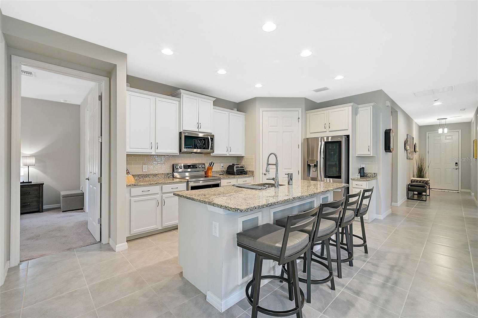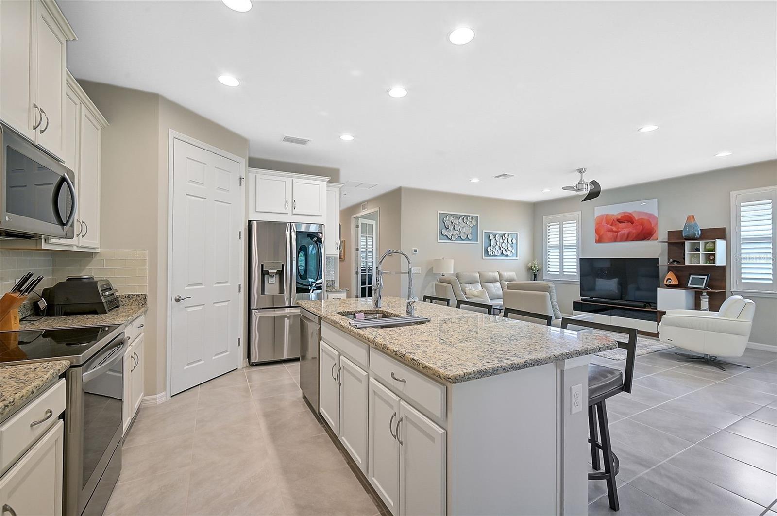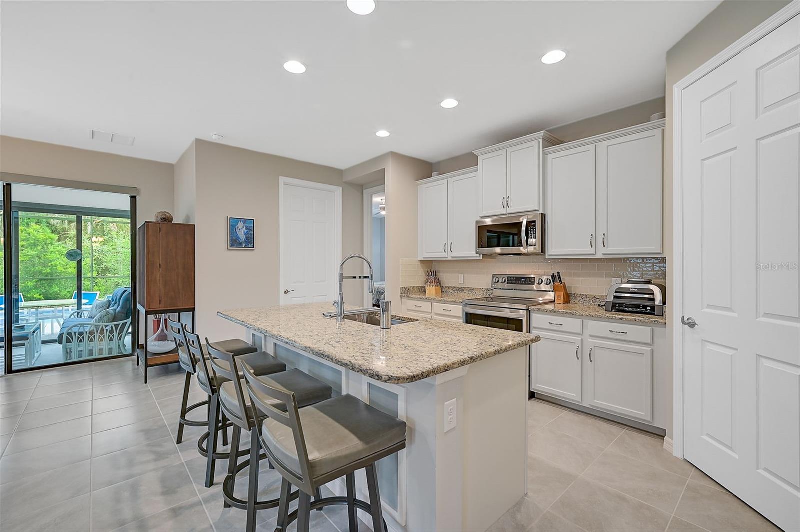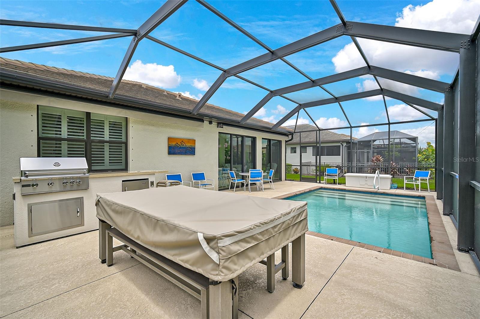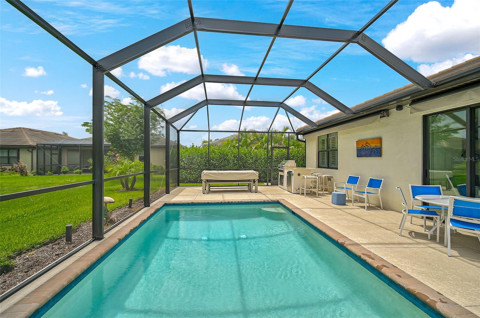 Welcome home to the Preserve at West Villages. This nearly new 2019 built home features 2 bedrooms + den and 2 full bathrooms with walk in showers and is being offered turnkey furnished optional! As you enter you immediately feel the open atmosphere with tall ceilings, 8’ doors and open concept layout. This home has abundant natural light pouring in from the numerous windows, all with plantation shutters, and sliding glass door leading out to the enclosed, air conditioned lanai which leads out to the heated saltwater pool with oversized lighted cage facing the preserve. The outdoor oasis features power awnings and bar with built in grill! Inside the kitchen is an entertainer’s dream featuring a great layout with lower cabinets with convenient sliding pull out shelves, stainless steel appliances, functional pantry and 42” upper cabinets. The primary suite features a spa-inspired bathroom with double vanity, large walk-in shower and private toilet room... as well as a large walk in closet with a custom Elfa Closet System. The AIR CONDITIONED oversized 2 car garage with epoxy floors becomes an extension of the home and offers additional storage and functional space. No Flood Insurance required on this great home! A quiet, gated neighborhood of only 223 homes, The Preserve is one of SW Florida’s most desirable communities and enjoys a reasonable maintenance fee which includes lawn and landscape maintenance, irrigation, heated community pool, fitness center, pickleball & bocce ball courts and clubhouse. Located just one mile from Wellen Park, entertainment is just a short bike or drive away! Endless opportunities await, as Downtown Wellen Park offers numerous restaurants, shopping, food truck court, concerts, farmers market, miles of walking/biking trails and the 80-acre Grand Lake. Why wait to build when this like-new home is ready now? Be sure to view the 3-D interactive virtual tour of this great home and schedule your showing today!