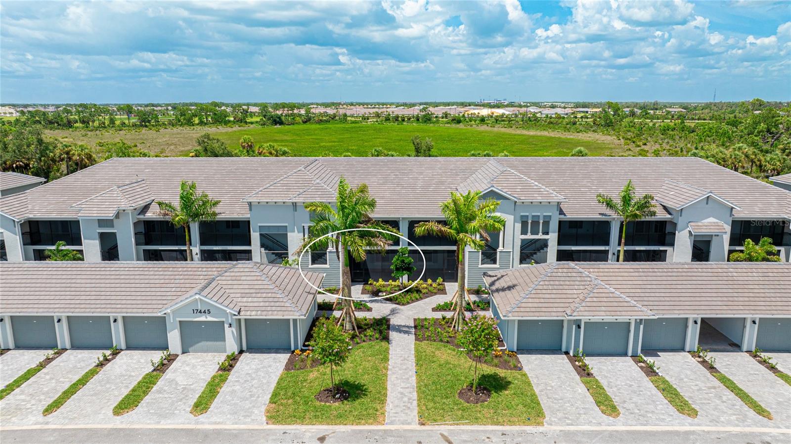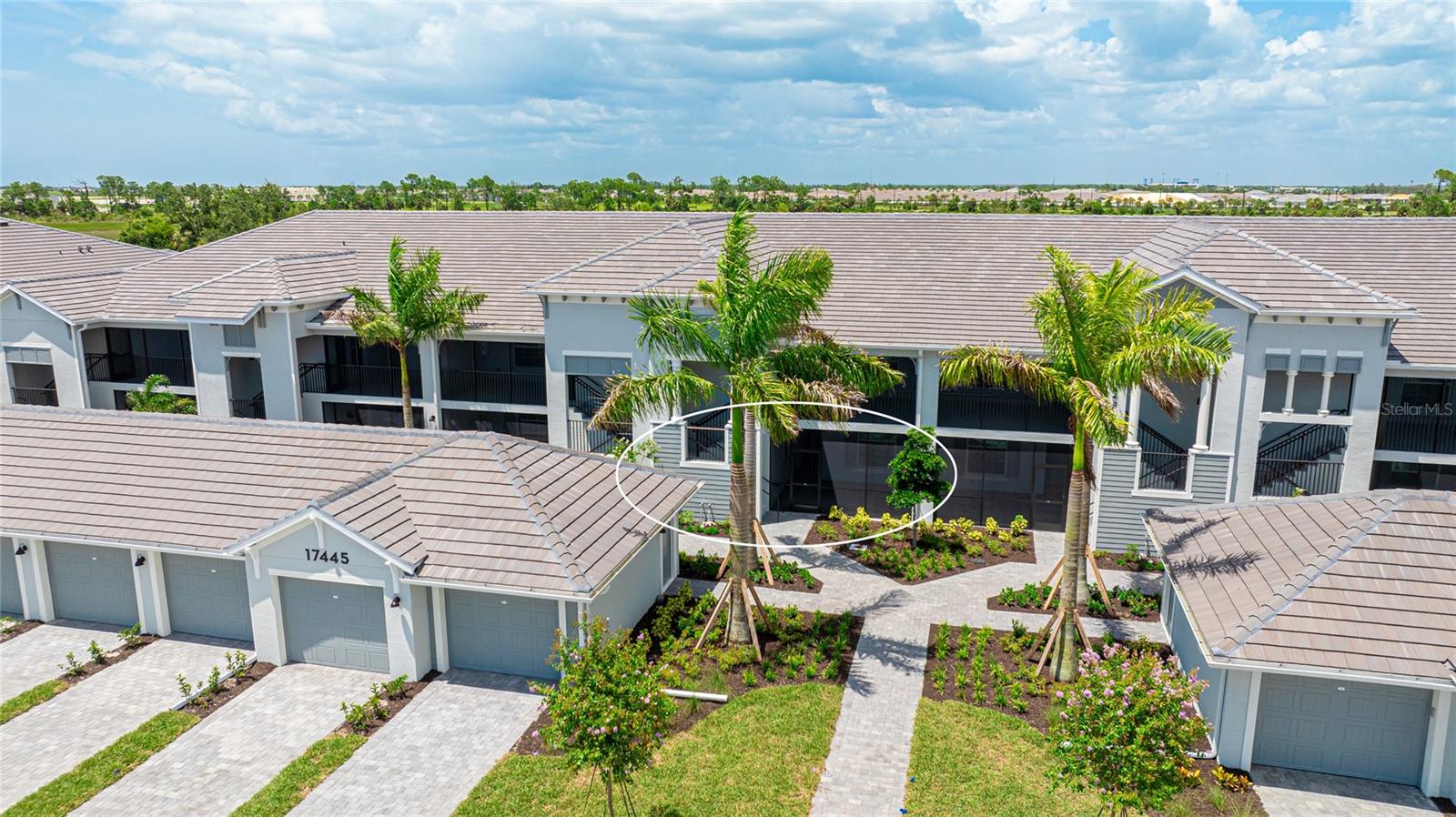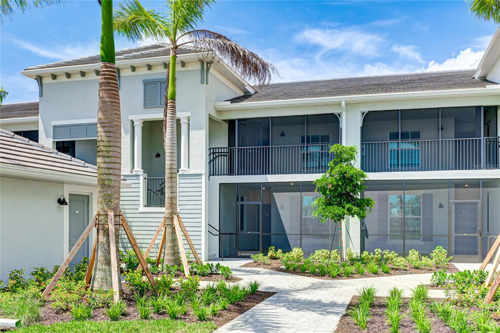 Sellers have PRICE REDUCED. This NEVER LIVED IN, VERANDA II CONDO with DEEDED GOLF BUNDLE is available for immediate occupancy! This First Floor Unit,#104, is one of the only units that comes with UNOBSTRUCTED views from your Front Lanai to the landscaped, Front Courtyard area and walkway. Your Detached 1 Car Garage is steps away to the right of the unit rather than in front of your unit with rear entry door access for your convenience. Golf Membership entitles the Homeowners the Family benefits of two golf memberships which is no longer available with the to be built, Veranda Condo Builds. This unit has 2 bedrooms, 2 bathrooms and a Large Den with French Doors and is in walking distance to 2 Satellite pools. This spacious floor plan boasts HURRICANE IMPACT WINDOWS/DOORS, a Chef Kitchen with large island with Quartz Countertops, Shaker Style Cabinets, and Stainless Steel Appliances and large pantry that all flows into the living and dining area. Adjacent to the Family Room and Kitchen is an additional, private Den offering a multi-functional space options such as an office, additional space for guests and/or another TV room. The Owner's Suite provides a serene retreat with a window view to the Front Covered Lanai Area, three closets; one walk in, one built-in and one linen closet, all offering abundant storage. The en-suite bathroom has dual sinks with quartz countertops and a walk in shower. The rear screened in Lanai Area has picturesque views of palm trees and Golf Tee boxes to the sides of the unit. The second bedroom is located off the left side of the entryway, in its own hallway, across from the second bathroom. The second bedroom also has a window view to the covered Front Lanai Area and a spacious built in closet. The second bathroom has a shower/bathtub combination and a quartz countertop vanity. The exclusive 18-hole Wellen Park Golf and Country Club is highly coveted for its guard-gated entrance and resort style amenities including a Laguna Pool with Tiki Bar, 3 additional Satellite Pools, a Day Spa, a Dog Park, Pickle-ball Courts, Bocce Ball, and Tennis Facilities. Wellen Park is Golf Cart and Dog Friendly with close proximity to nearby gulf beaches, airports, local attractions and a short distance to Downtown Sarasota and Venice. Downtown Wellen Park has an array of shops, weekly music venues, local eateries, a large lake with walking trails and E-bike rentals, Kayak and Paddle board rentals, weekly Farmer's Markets and more. HOA fee includes cable, internet, water, sewer, trash pickup, gated community, and building exterior maintenance, building insurance (Homeowner responsible for unit contents insurance), services, and landscaping maintenance. Once food and beverage becomes available for purchase when the Tiki Bar opens, a required minimum fee of $500.00/year and then $750.00/year when the clubhouse/fine dining restaurant opens. Specific 2025 Property Taxes and CDD Information for this unit have not yet become available but could be estimated by a Buyer. As information becomes available, the listing will be updated accordingly.