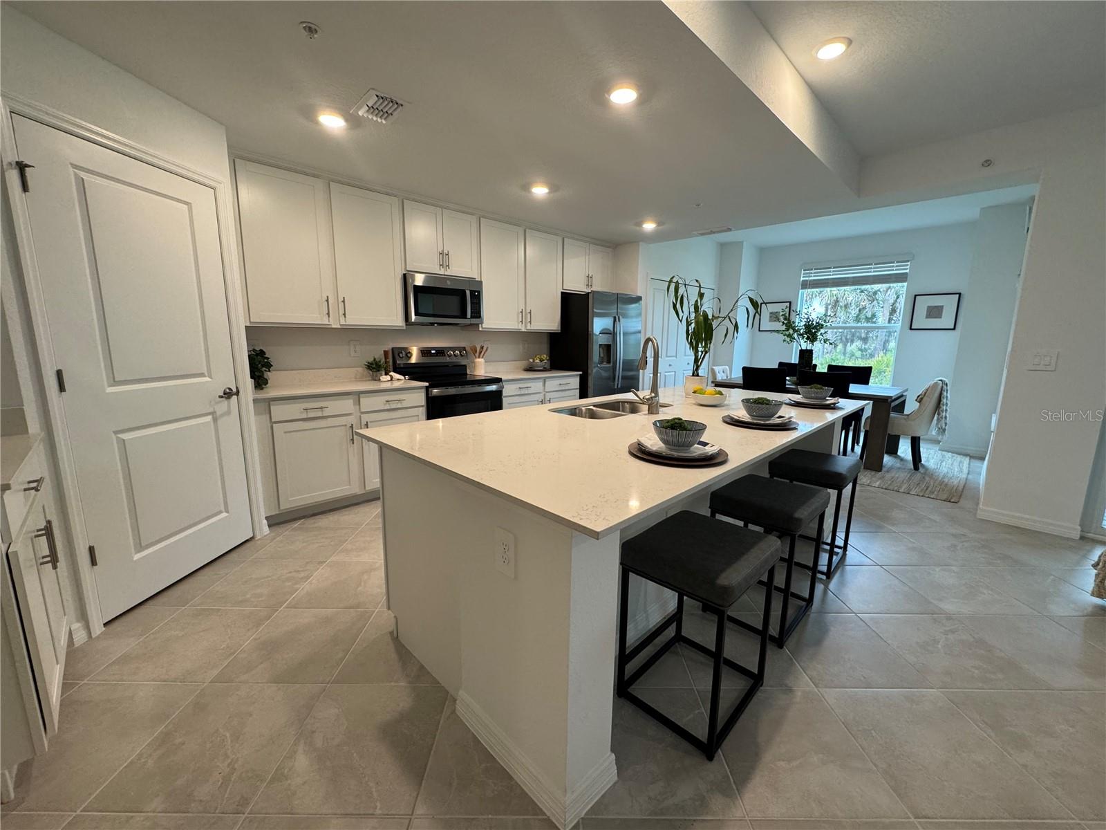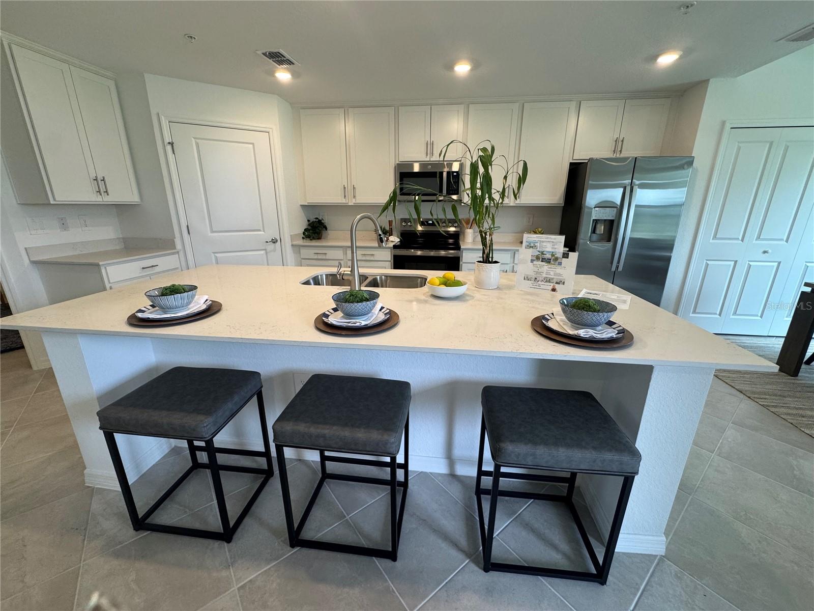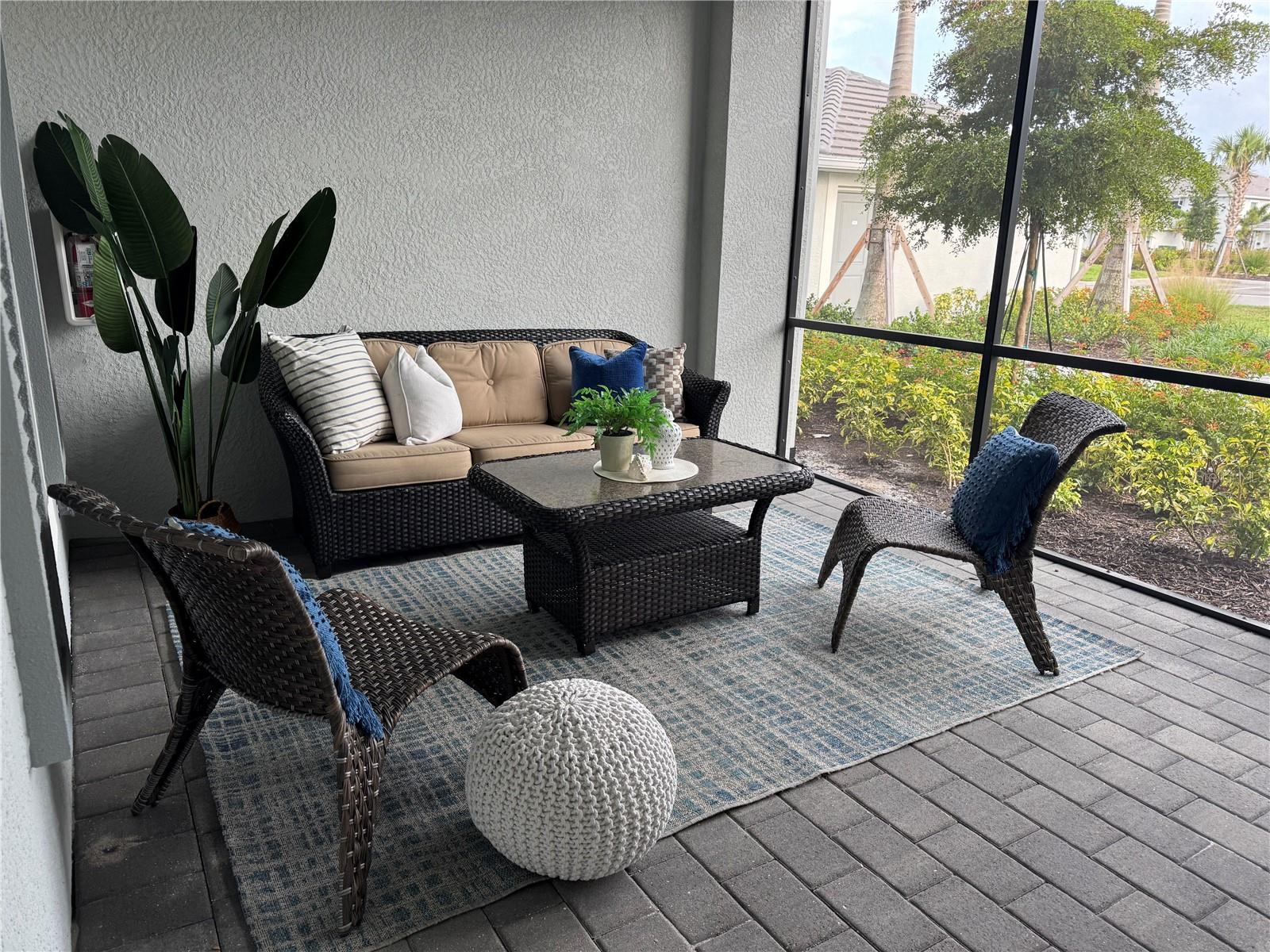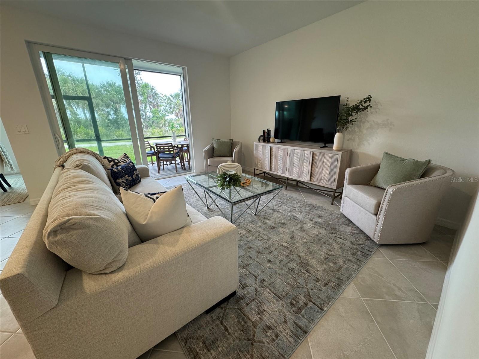 Sellers have PRICE REDUCED. This NEVER LIVED IN, VERANDA II CONDO with DEEDED GOLF BUNDLE is available for immediate occupancy! This First Floor Unit,#104, is one of the only units that comes with UNOBSTRUCTED views from your Front Lanai to the landscaped, Front Courtyard area and walkway. Your Detached 1 Car Garage is steps away to the right of the unit rather than in front of your unit with rear entry door access for your convenience. Golf Membership entitles the Homeowners the Family benefits of two golf memberships which is no longer available with the to be built, Veranda Condo Builds. This unit has 2 bedrooms, 2 bathrooms and a Large Den with French Doors and is in walking distance to 2 Satellite pools. This spacious floor plan boasts HURRICANE IMPACT WINDOWS/DOORS, a Chef Kitchen with large island with Quartz Countertops, Shaker Style Cabinets, and Stainless Steel Appliances and large pantry that all flows into the living and dining area. Adjacent to the Family Room and Kitchen is an additional, private Den offering a multi-functional space options such as an office, additional space for guests and/or another TV room. The Owner's Suite provides a serene retreat with a window view to the Front Covered Lanai Area, three closets; one walk in, one built-in and one linen closet, all offering abundant storage. The en-suite bathroom has dual sinks with quartz countertops and a walk in shower. The rear screened in Lanai Area has picturesque views of palm trees and Golf Tee boxes to the sides of the unit. The second bedroom is located off the left side of the entryway, in its own hallway, across from the second bathroom. The second bedroom also has a window view to the covered Front Lanai Area and a spacious built in closet. The second bathroom has a shower/bathtub combination and a quartz countertop vanity. The exclusive 18-hole Wellen Park Golf and Country Club is highly coveted for its guard-gated entrance and resort style amenities including a Laguna Pool with Tiki Bar, 3 additional Satellite Pools, a Day Spa, a Dog Park, Pickle-ball Courts, Bocce Ball, and Tennis Facilities. Wellen Park is Golf Cart and Dog Friendly with close proximity to nearby gulf beaches, airports, local attractions and a short distance to Downtown Sarasota and Venice. Downtown Wellen Park has an array of shops, weekly music venues, local eateries, a large lake with walking trails and E-bike rentals, Kayak and Paddle board rentals, weekly Farmer's Markets and more. HOA fee includes cable, internet, water, sewer, trash pickup, gated community, and building exterior maintenance, building insurance (Homeowner responsible for unit contents insurance), services, and landscaping maintenance. Once food and beverage becomes available for purchase when the Tiki Bar opens, a required minimum fee of $500.00/year and then $750.00/year when the clubhouse/fine dining restaurant opens. Specific 2025 Property Taxes and CDD Information for this unit have not yet become available but could be estimated by a Buyer. As information becomes available, the listing will be updated accordingly.