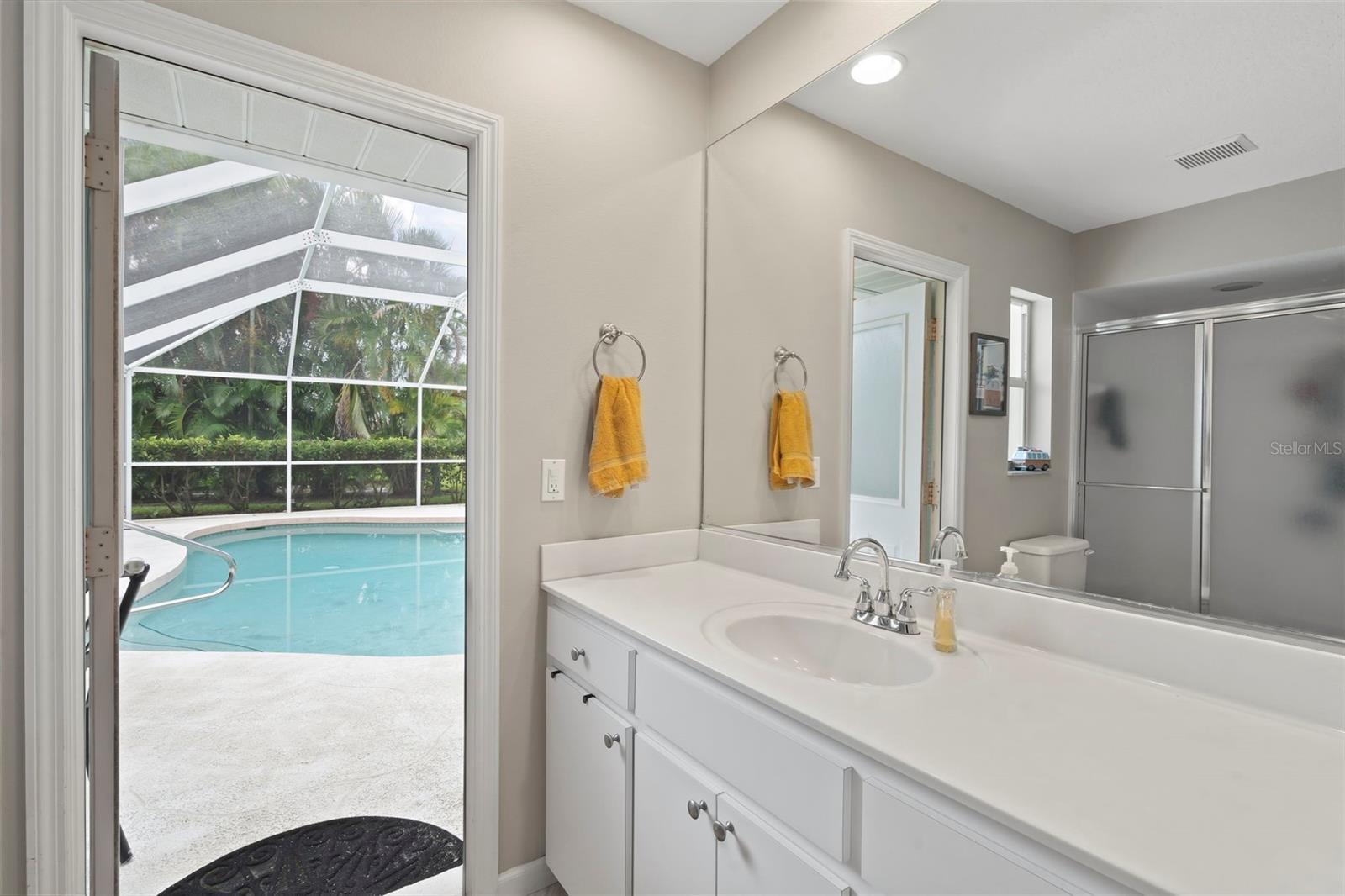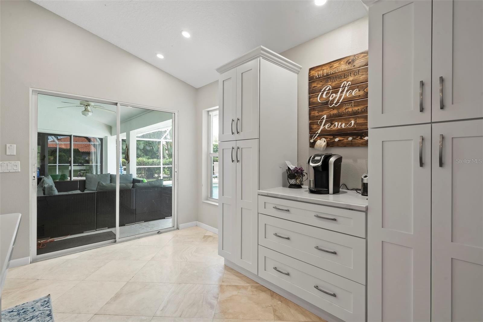 Are you seeking out a beautiful home in the highly desired The Lakes of Jacaranda? Look no further as you step into this 3 bed, 2 bath home and den with relaxing all around private pool views on an oversized lot. The backyard with its well-maintained landscaping is tranquil and very private. This open concept home features a newly remodeled gourmet kitchen with all new appliances and an expansive center island with quartz counter tops, complete with under counter LED lighting for superb ambiance for hosting gatherings and dinner parties. In addition, there is a designated coffee bar for those who love to brew at home. Travertine and new vinyl plank flooring run throughout this well-designed split floor plan. The Master suite is complete with a soaker tub and dual sinks as well as the bedroom that opens to the pool and lanai where you can be greeted with a new day and cup of coffee. The house has had a complete re-piping in 2017, water heater in 2024, updated electric panel in 2019 and upgraded sprinkler system in 2019. This community features a clubhouse, community pool, tennis and pickleball courts and numerous trails and lakes to walk and enjoy nature. No CDD fees, low HOA’s and no flood insurance! So many local amenities nearby include the fast-growing Wellen Park, home of the Atlanta Braves spring training facilities and numerous restaurants and community events. Don't forget all what downtown historic Venice has to offer with shopping, restaurants, beautiful beaches and delightful festivals. Call for a private showing today!