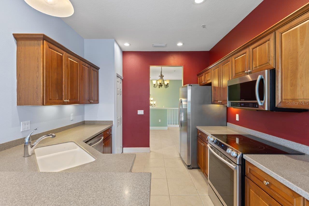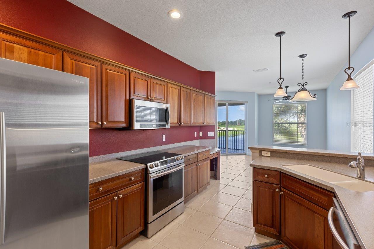 One or more photo(s) has been virtually staged. Welcome to this Spoonbill coach home by Pulte, where modern elegance meets serene natural beauty. This open-concept home boasts high ceilings and ceramic tile flooring, seamlessly connecting the living, dining, and kitchen areas—perfect for both entertaining and relaxing. The kitchen features solid surface countertops, ample cabinetry, breakfast bar, and stainless-steel appliances updated in 2020. The living room is highlighted by a triple panel sliding glass door that leads to a spacious screened-in lanai with stunning views of a lake and a 37-acre preserve. The owner’s suite provides a private retreat with its own sliding glass door to the lanai, a spacious walk-in closet, and an en-suite bathroom complete with dual sinks, garden tub, and walk-in shower. Additional features include a full-sized laundry room and 2-car garage. Sarasota National is a premier gated community offering top-notch amenities. Enjoy an 18-hole championship golf course, resort-style pool, state-of-the-art fitness center, and full-service spa. For sports enthusiasts, there are tennis, pickleball, and bocce courts, along with scenic walking and biking trails. The 32,000-square-foot clubhouse is the social hub, featuring dining options, a coffee lounge, a library, and a card room. With frequent social events and classes, Sarasota National fosters a vibrant community atmosphere. Nearby you'll find Wellen Park featuring vibrant shops, restaurants, and outdoor activities, plus Venice's beautiful beaches, charming downtown, nature parks, medical facilities, and easy access to Sarasota's cultural attractions.