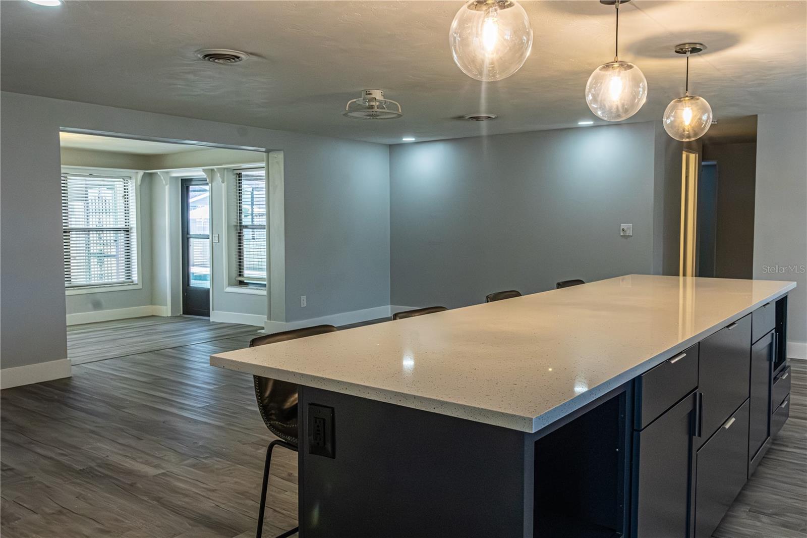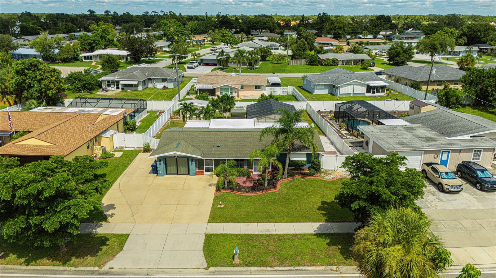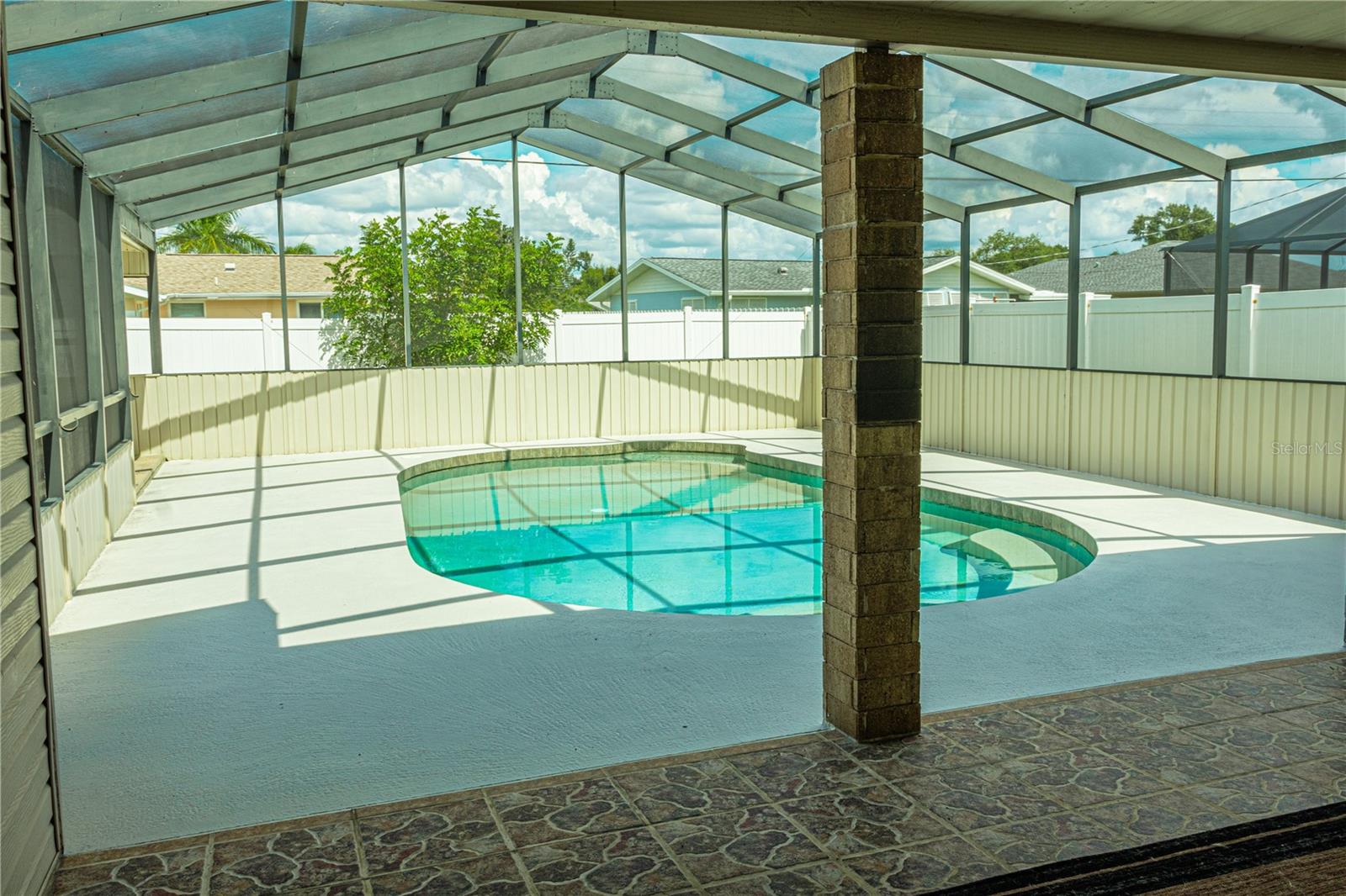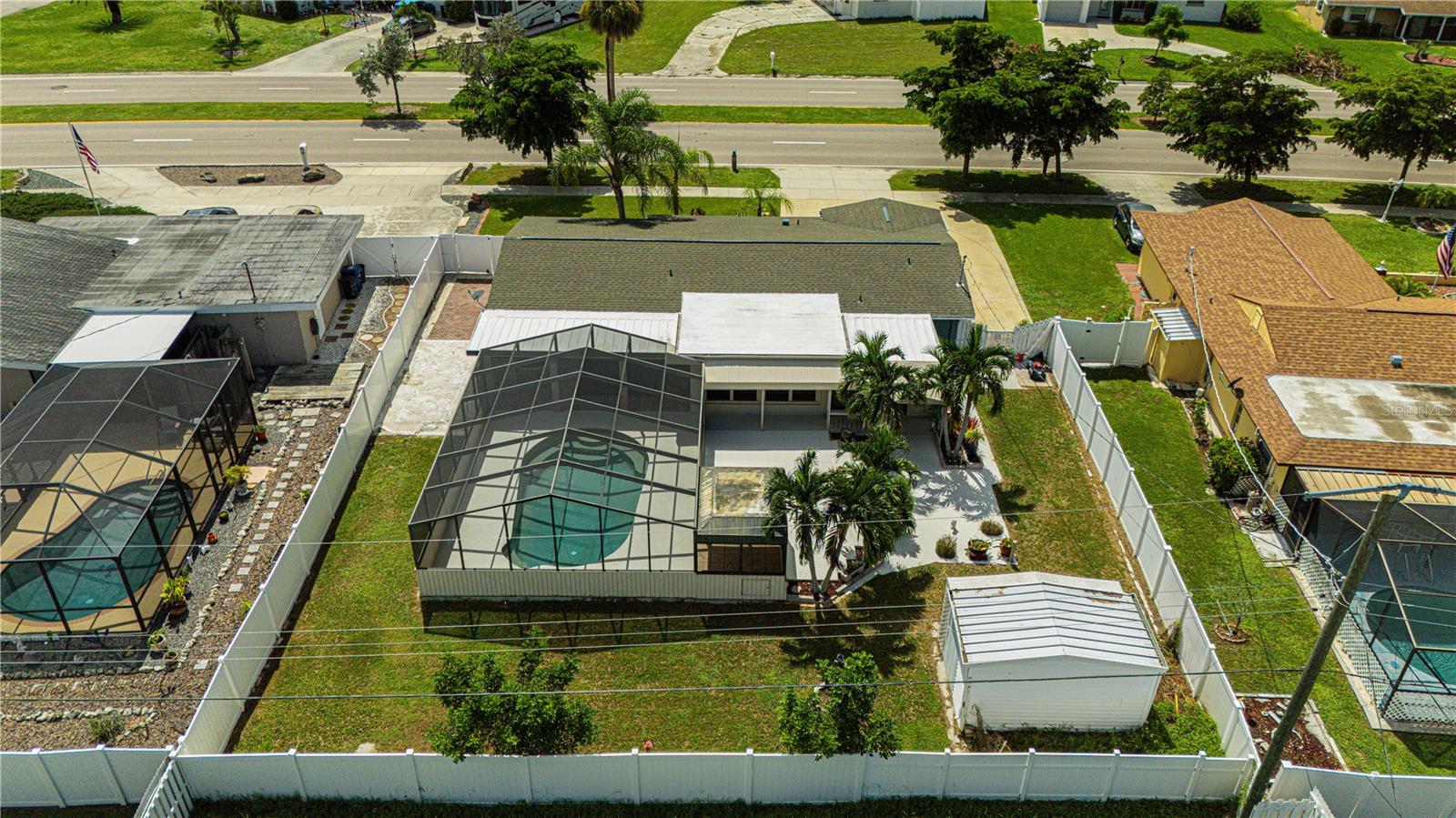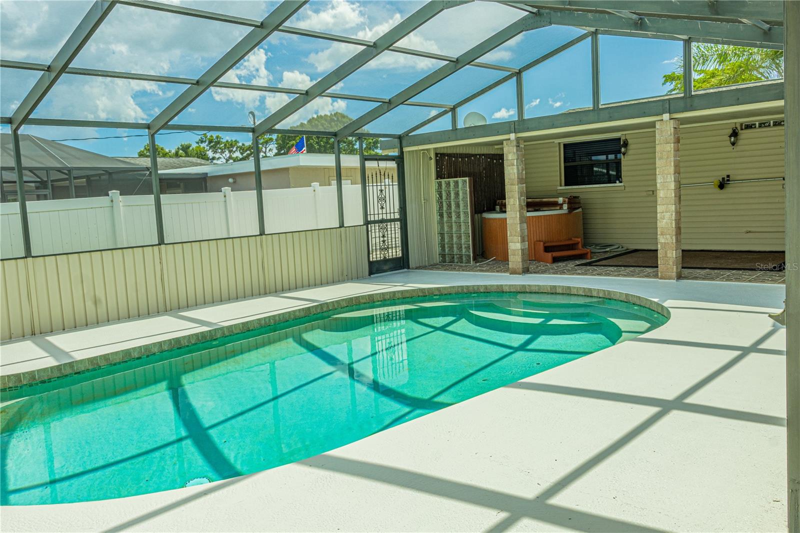 Discover this delightful 3-bedroom, 2-bathroom pool home in the desirable Venice East neighborhood. With no mandatory HOA or CDD fees and public water and sewer, this property offers the perfect blend for easy living and freedom. Step into the heart of the home, where a newly renovated kitchen awaits. The spacious, open-concept design features an impressive 11-foot island topped with quartz countertops, providing ample space for cooking, dining, and entertaining. All appliances, including the washer/dryer combo, are included for your convenience. The layout is designed for both comfort and privacy, with two bedrooms and a full bathroom located on one side of the home, and the master bedroom on the opposite end. The master suite includes a ensuite bathroom with double sinks and tiled shower. Enjoy the outdoor paradise in the pool area, complete with a pool cage and a seating area perfect for enjoying the Florida sunshine. The fully fenced backyard offers both privacy and security, along with a shed for additional storage. This home is move-in ready and designed for easy living, with all the modern amenities you need. Nestled in the tranquil Venice East neighborhood, this home is conveniently located near beaches, shopping, dining, and more. One of the Owners is a licensed real estate agent/listing agent.