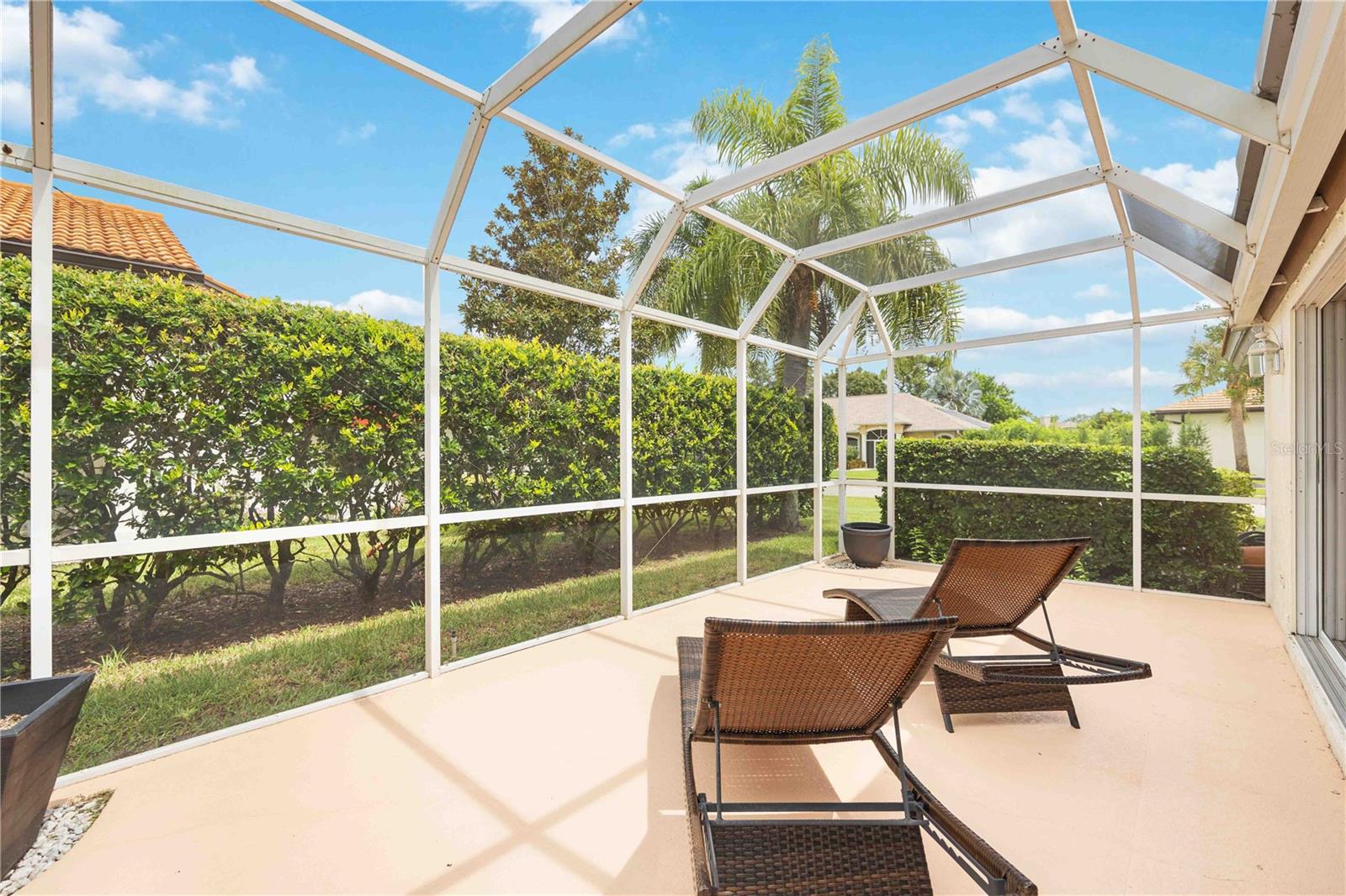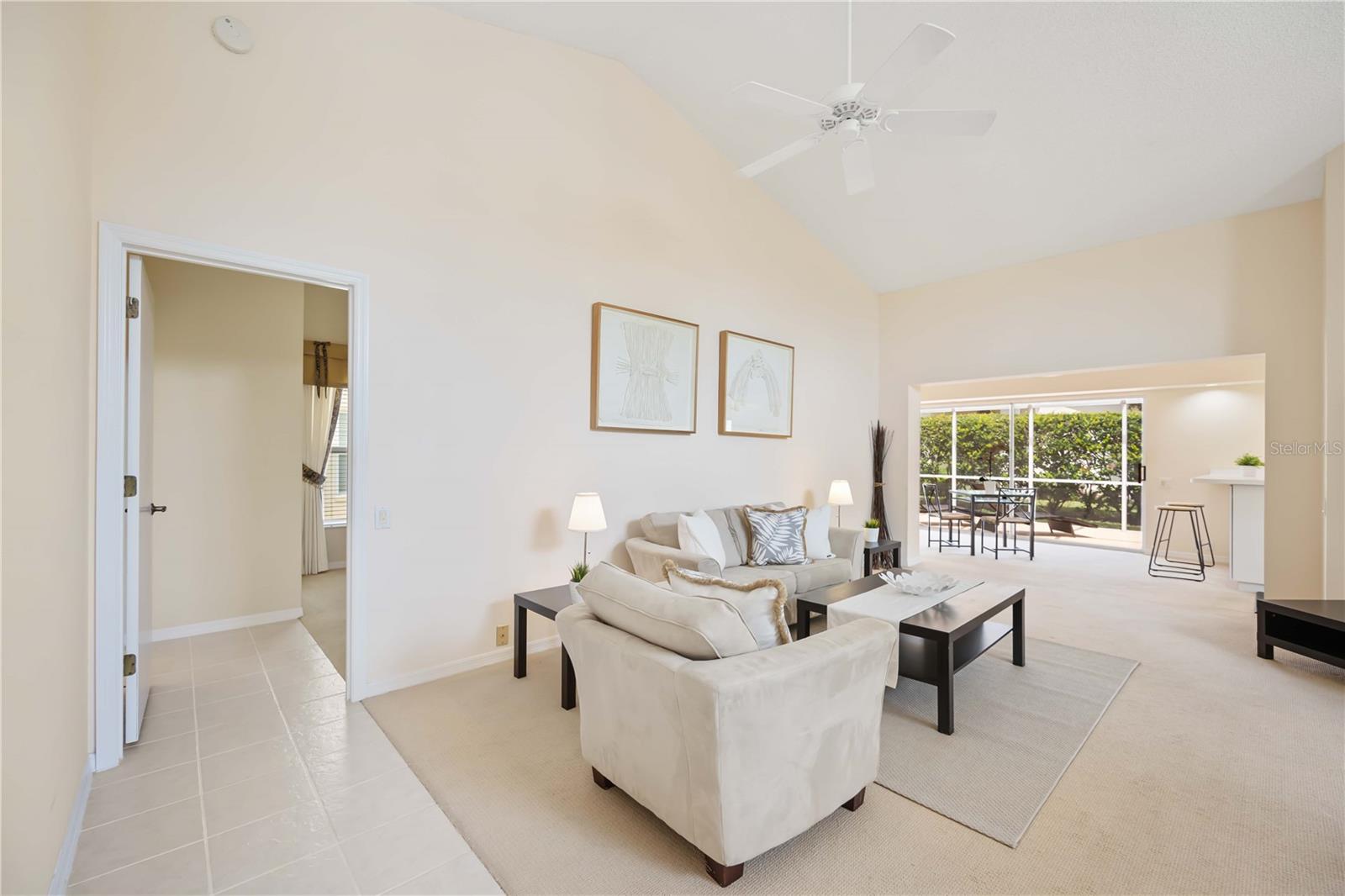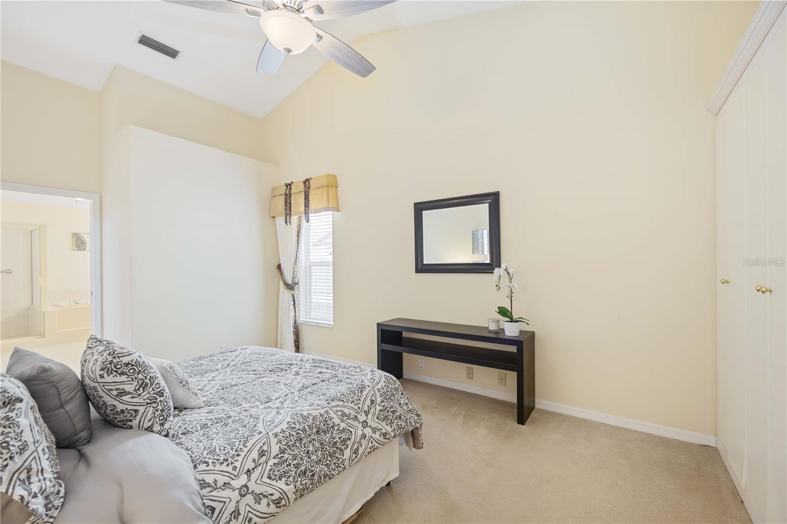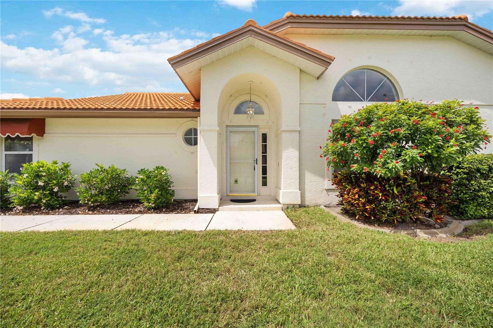 Charming 2-Bedroom + Den Home in Southwood - A Perfect Blend of Comfort and Style. Discover your dream home in the sought-after Southwood neighborhood. This beautifully maintained 2-bedroom, 2-bathroom plus den residence is ideally situated in a prime corner location, offering both privacy and convenience. Step inside to a spacious and inviting layout featuring vaulted ceilings in the living and dining areas, as well as the master bedroom. The master suite is a true retreat with its luxurious ensuite bath, complete with a garden tub, separate shower, double sinks, and a private water closet. The modern eat-in kitchen is a chef's delight, boasting sleek quartz countertops. Enjoy your meals or entertain guests in the generous, screened-in patio – an ideal space for both relaxing and hosting gatherings. The home also features an installed security system and hurricane screens for enhanced safety and peace of mind. Convenience is key with landscape maintenance included, and you'll be just a short stroll away from the community pool and cabana. This home offers the perfect combination of luxury, comfort, and easy living. Make it yours today!
