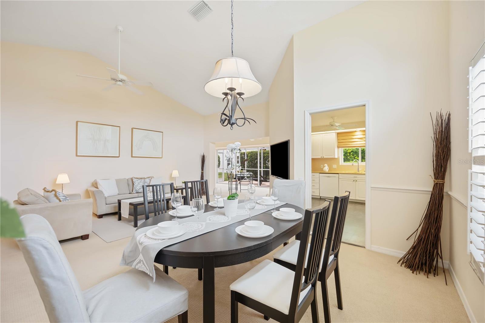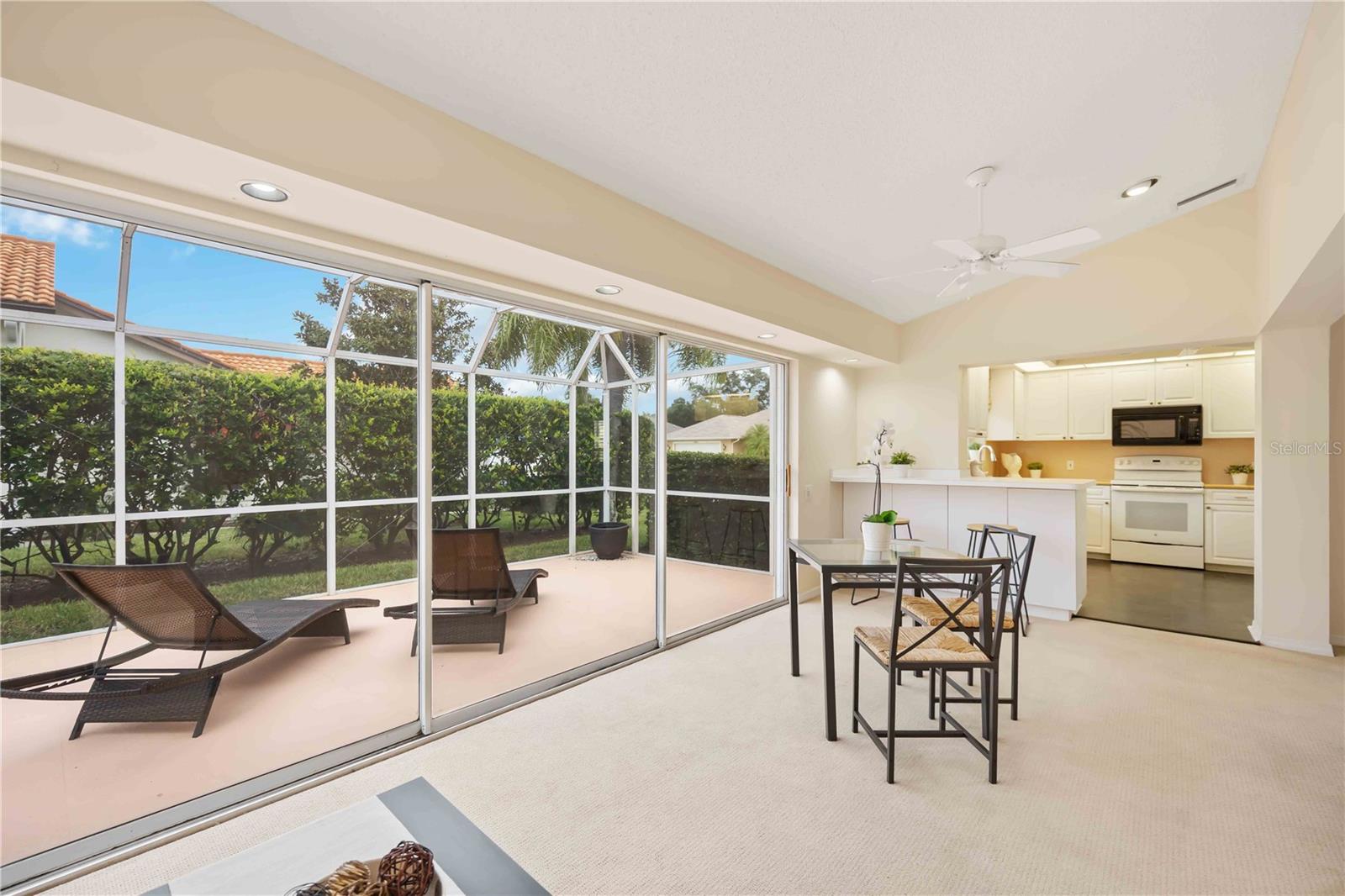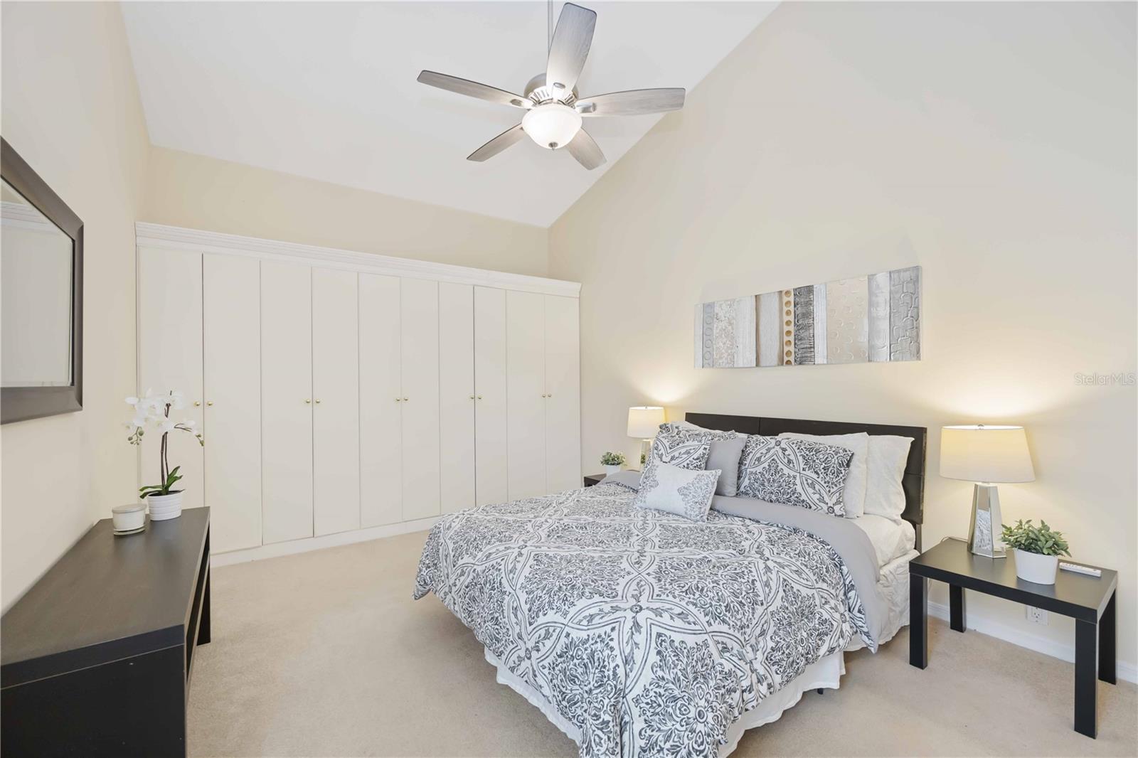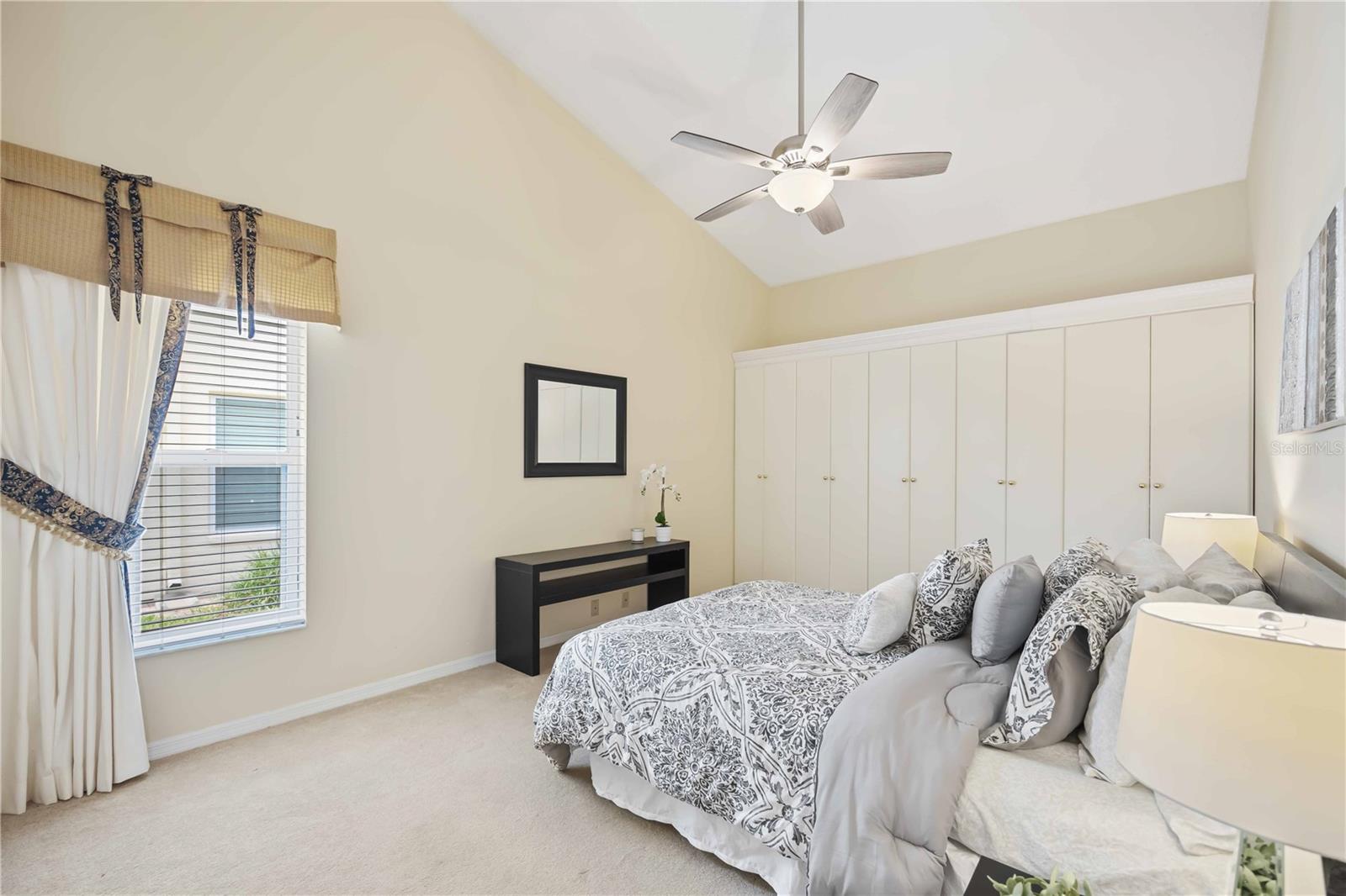 Charming 2-Bedroom + Den Home in Southwood - A Perfect Blend of Comfort and Style. Discover your dream home in the sought-after Southwood neighborhood. This beautifully maintained 2-bedroom, 2-bathroom plus den residence is ideally situated in a prime corner location, offering both privacy and convenience. Step inside to a spacious and inviting layout featuring vaulted ceilings in the living and dining areas, as well as the master bedroom. The master suite is a true retreat with its luxurious ensuite bath, complete with a garden tub, separate shower, double sinks, and a private water closet. The modern eat-in kitchen is a chef's delight, boasting sleek quartz countertops. Enjoy your meals or entertain guests in the generous, screened-in patio – an ideal space for both relaxing and hosting gatherings. The home also features an installed security system and hurricane screens for enhanced safety and peace of mind. Convenience is key with landscape maintenance included, and you'll be just a short stroll away from the community pool and cabana. This home offers the perfect combination of luxury, comfort, and easy living. Make it yours today!