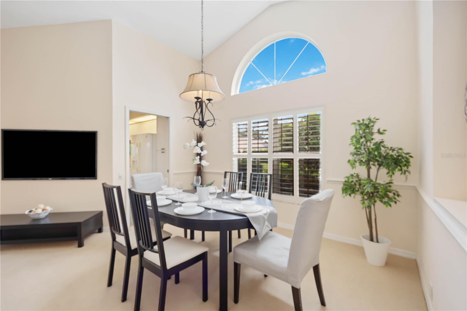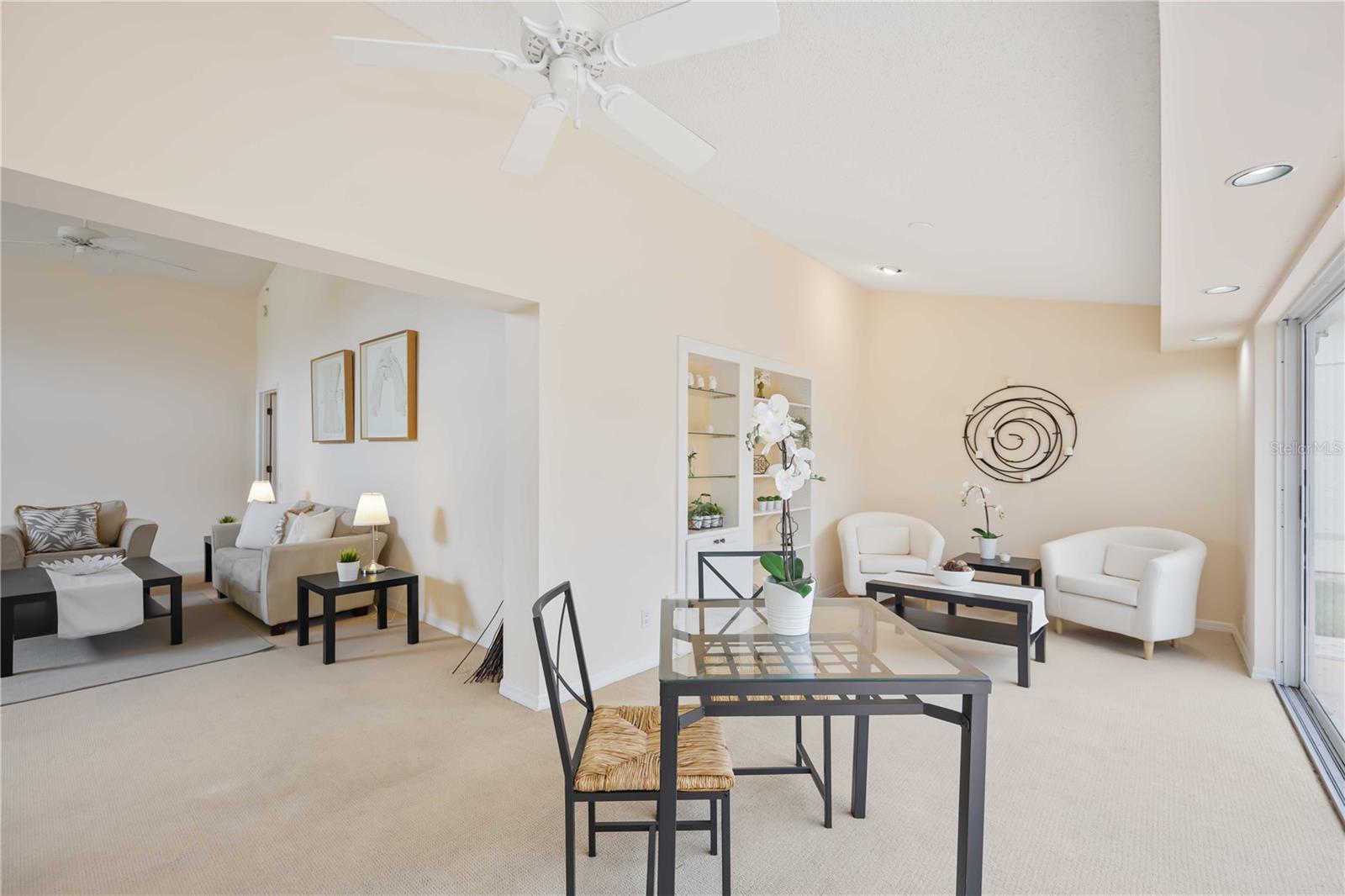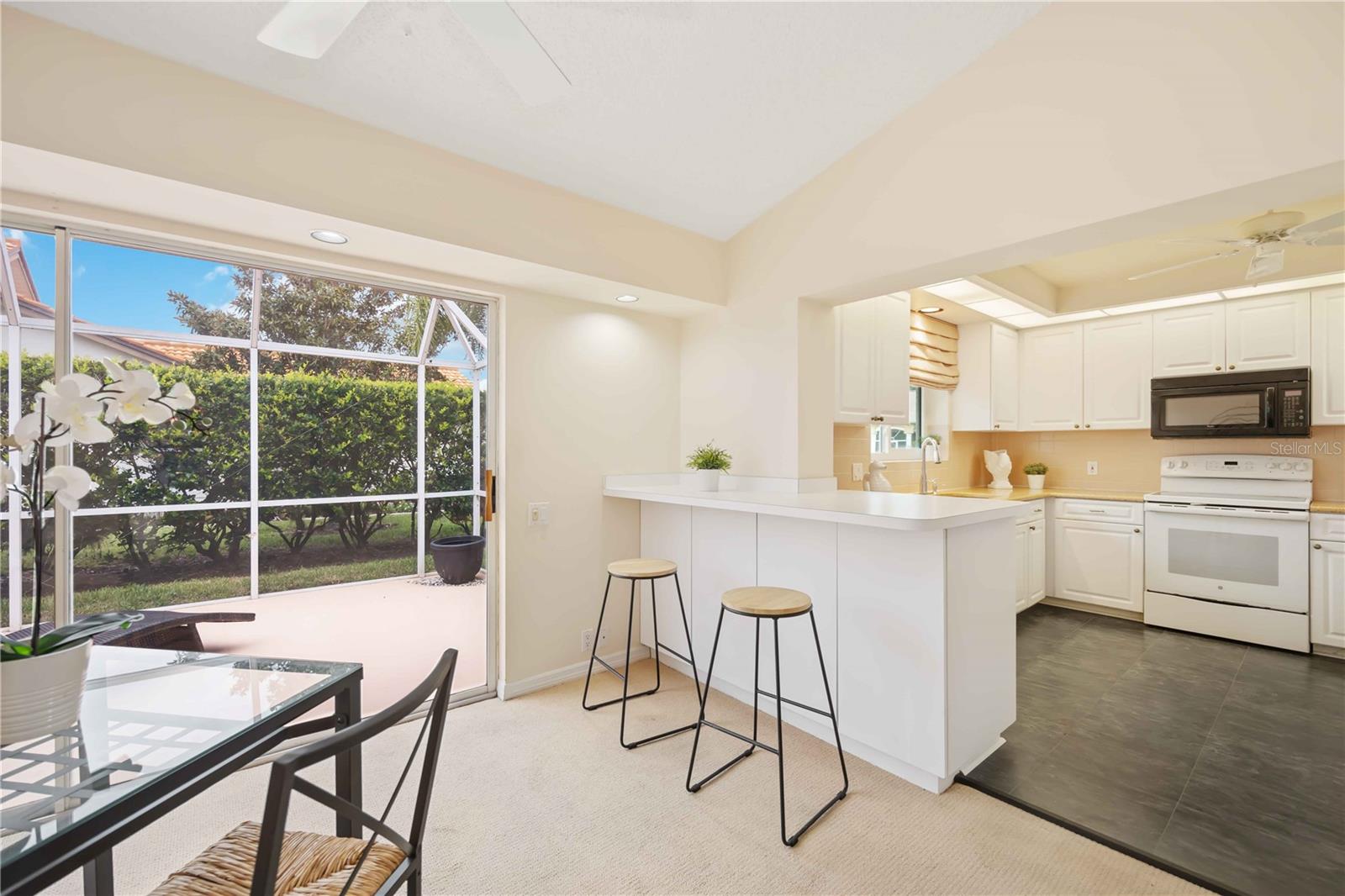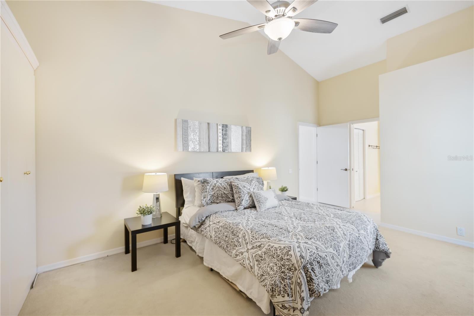 Charming 2-Bedroom + Den Home in Southwood - A Perfect Blend of Comfort and Style. Discover your dream home in the sought-after Southwood neighborhood. This beautifully maintained 2-bedroom, 2-bathroom plus den residence is ideally situated in a prime corner location, offering both privacy and convenience. Step inside to a spacious and inviting layout featuring vaulted ceilings in the living and dining areas, as well as the master bedroom. The master suite is a true retreat with its luxurious ensuite bath, complete with a garden tub, separate shower, double sinks, and a private water closet. The modern eat-in kitchen is a chef's delight, boasting sleek quartz countertops. Enjoy your meals or entertain guests in the generous, screened-in patio – an ideal space for both relaxing and hosting gatherings. The home also features an installed security system and hurricane screens for enhanced safety and peace of mind. Convenience is key with landscape maintenance included, and you'll be just a short stroll away from the community pool and cabana. This home offers the perfect combination of luxury, comfort, and easy living. Make it yours today!