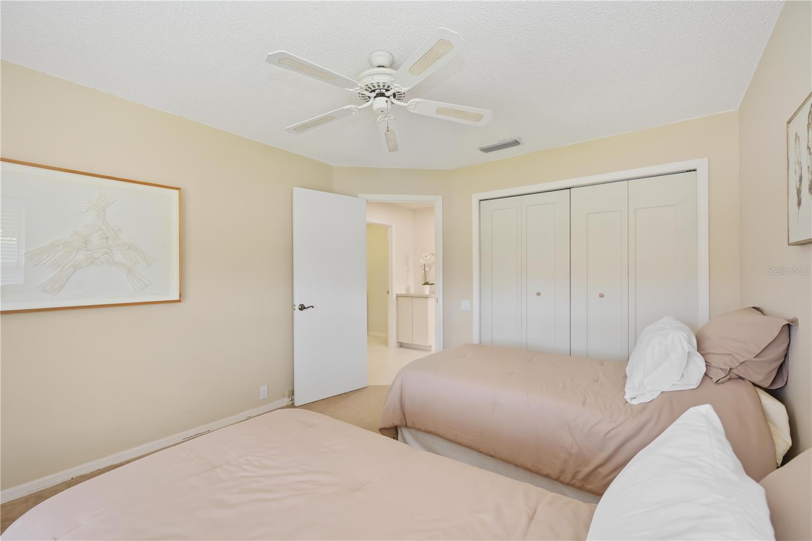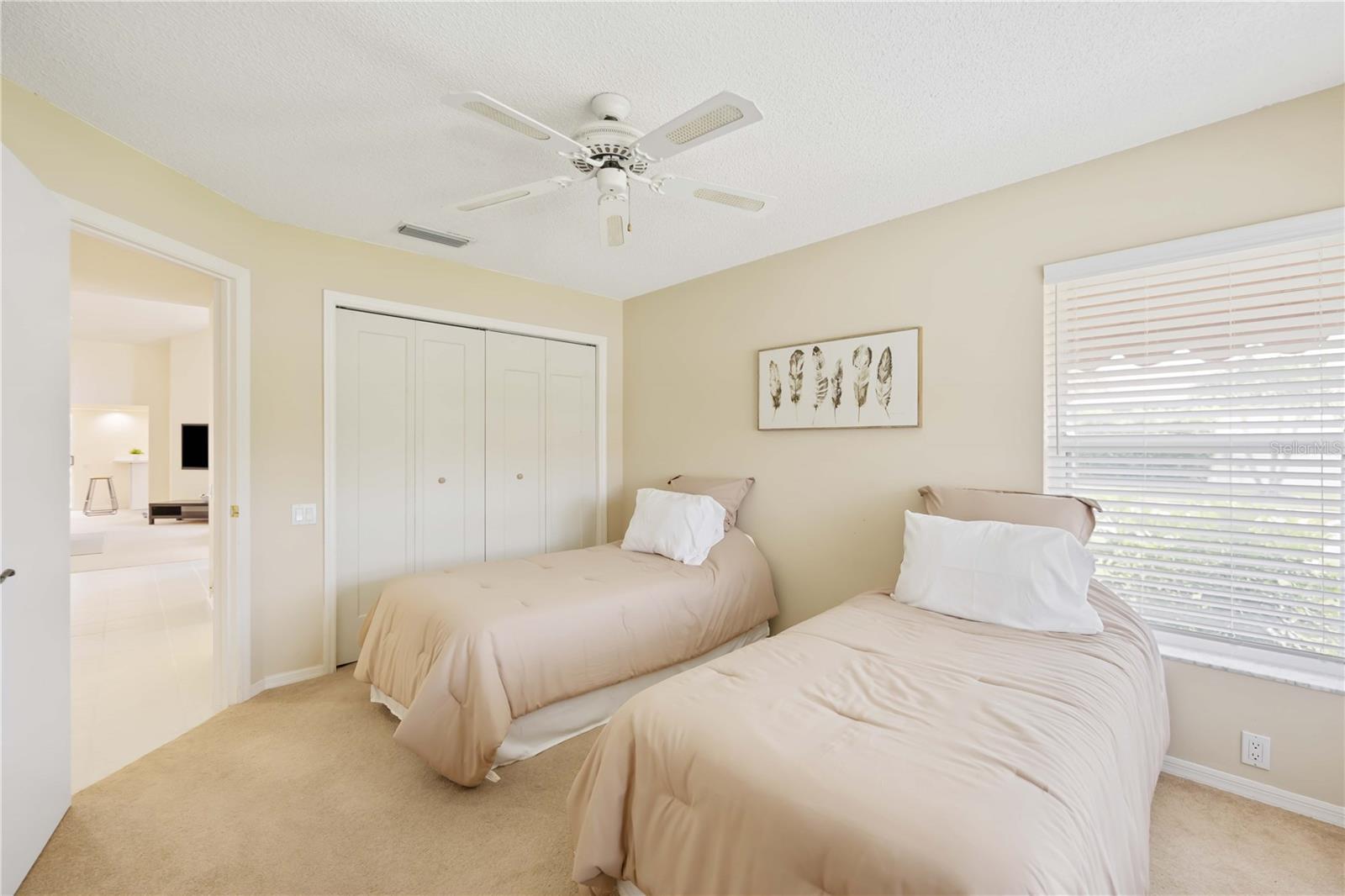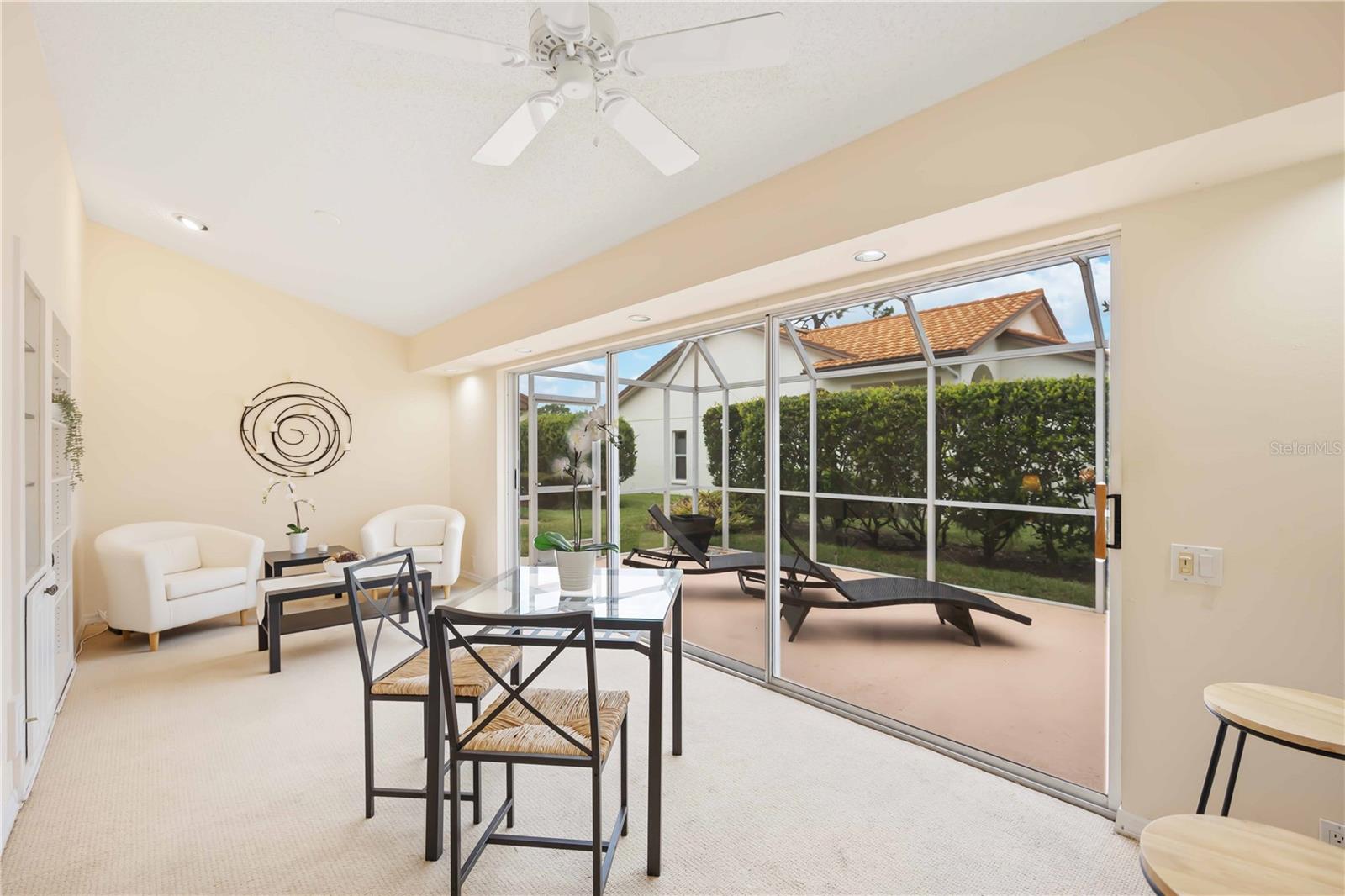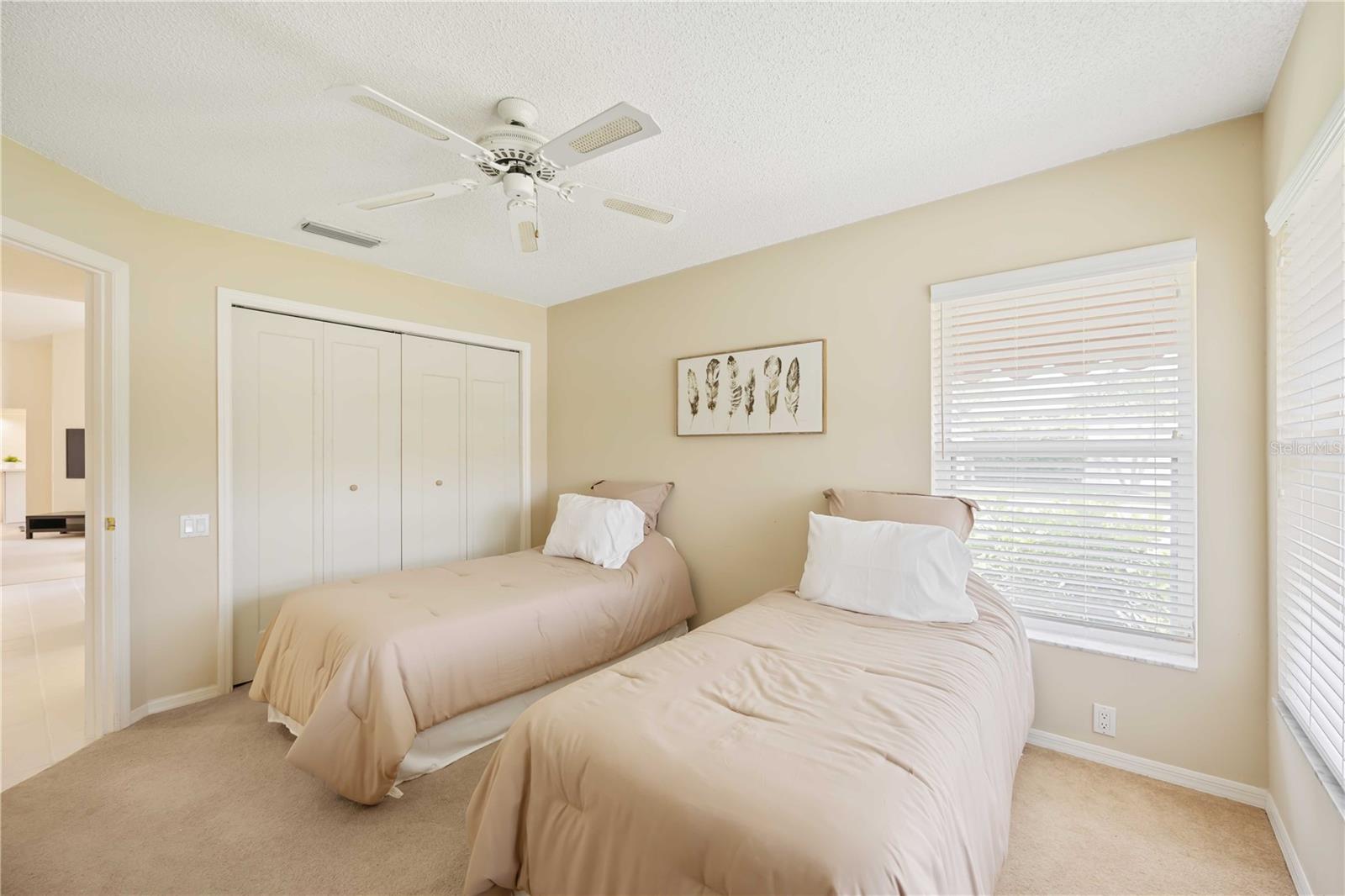 Charming 2-Bedroom + Den Home in Southwood - A Perfect Blend of Comfort and Style. Discover your dream home in the sought-after Southwood neighborhood. This beautifully maintained 2-bedroom, 2-bathroom plus den residence is ideally situated in a prime corner location, offering both privacy and convenience. Step inside to a spacious and inviting layout featuring vaulted ceilings in the living and dining areas, as well as the master bedroom. The master suite is a true retreat with its luxurious ensuite bath, complete with a garden tub, separate shower, double sinks, and a private water closet. The modern eat-in kitchen is a chef's delight, boasting sleek quartz countertops. Enjoy your meals or entertain guests in the generous, screened-in patio – an ideal space for both relaxing and hosting gatherings. The home also features an installed security system and hurricane screens for enhanced safety and peace of mind. Convenience is key with landscape maintenance included, and you'll be just a short stroll away from the community pool and cabana. This home offers the perfect combination of luxury, comfort, and easy living. Make it yours today!
