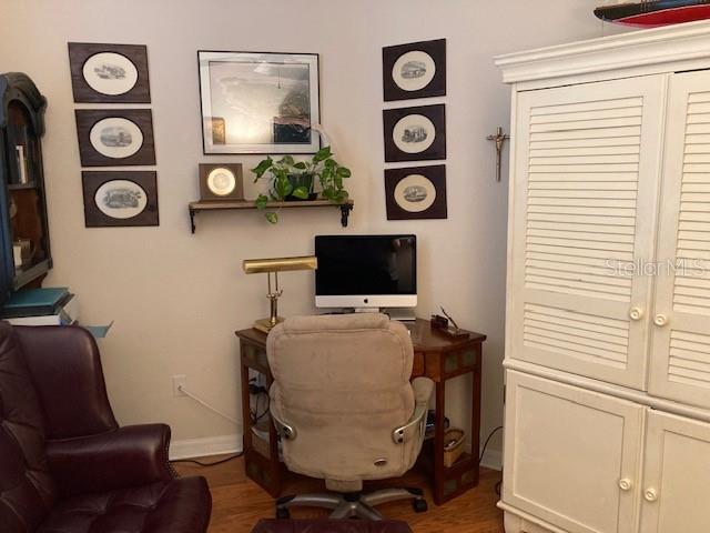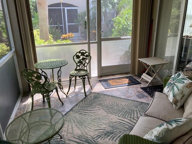 Location plus! Ground floor unit in The Villas at Venice located in the community of Aston Gardens. Enjoy senior living at its finest in this amazing 55+ community. Condo owners have access to all of the conveniences and amenities of Aston Gardens which includes special events, lecture series, continental breakfasts, optional meal plan, bus tours, large community pool, fitness center, library, hair salon, newly renovated clubhouse, and even golf cart rides to the clubhouse. This spacious 2 bedroom plus den, 2-bathroom end unit with attached 1 car garage is meticulously maintained with freshly painted interior and high ceilings. Entertain in the open kitchen, dining and living room combo with multiple sliding glass doors leading to the back lanai with collapsable hurricane rated accordion shutters. Enjoy the view of a beautifully wooded preserve from the lanai while sipping your morning coffee. Plantation shutters in bedrooms and den and 3M window film for storm protection. New walk-in bathtub for safety and relaxation. Roof was installed in 2023, and water heater in 2022. Owners just installed 10-year batteries in the smoke detectors. Close proximity to downtown Venice, gulf beaches, I-75, new Sarasota Memorial Hospital, US 41 and Publix in nearby shopping center. This gorgeous condo is move in ready. Don't miss out on this amazing opportunity to own your piece of paradise!