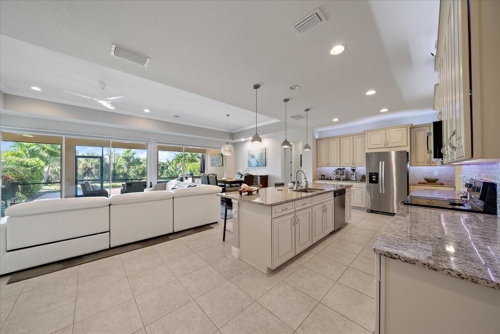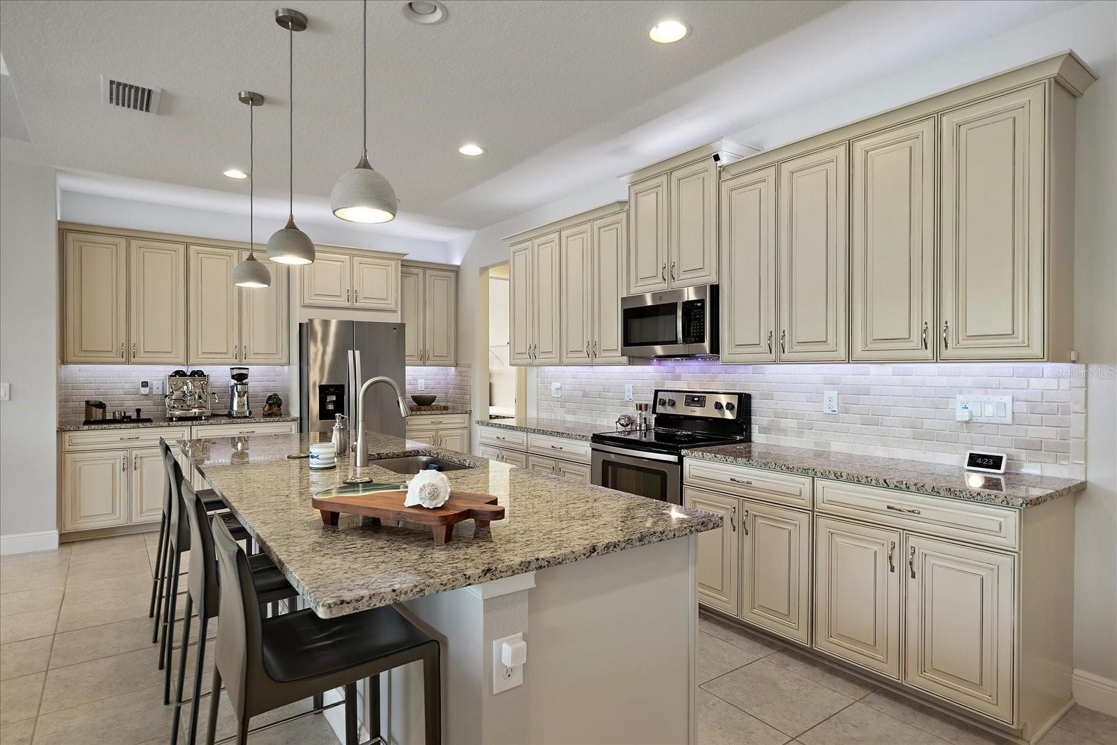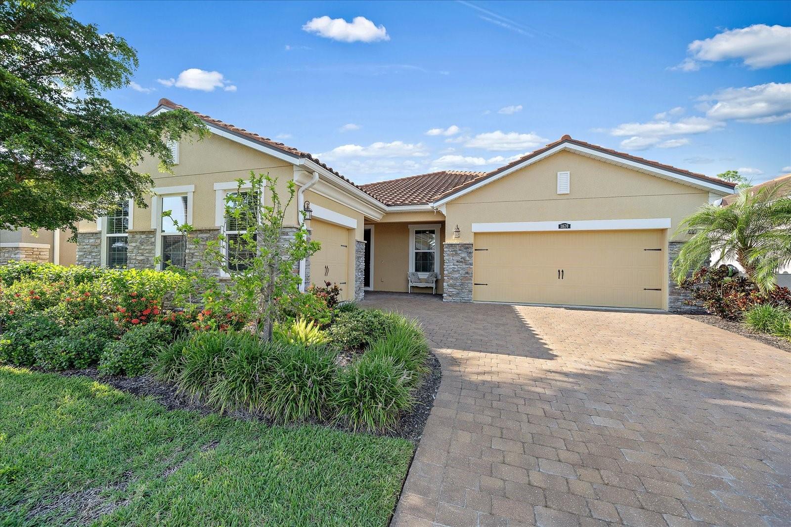 Your perfect home has been found. It is rare to find such an impeccably maintained, spacious, well appointed home at such an affordable price. Located in the beautiful Mattamy community of Renaissance. Located minutes from Downtown Wellen Park, minutes to CostCo, Publix, Cool Today Park, Beaches and i-75. SMART HOME LOVERS THIS IS FOR YOU. Level 2 SMART charger is installed in garage for electric vehicles. This home has complete integration with Alexa which can control programmable thermostat, front door lock, double sliders power shades, both garage doors, security system and interior lights. This beautiful home is located on a very large peaceful lot with plenty of room for a pool and outdoor entertainment. The delightful home features 8 ft. doors and tray ceilings in the foyer, spacious family room/dining room. The well appointed kitchen features stainless steel appliances, large center island, granite countertop and travertine backsplash. As you enter into the home you are welcomed into the perfect size office or den depending on buyers wishes and needs. The open floor plan is fabulous for entertaining and the split bedroom plan offers lots of personal space and privacy as needed. The owners suite is quite large and the current owners have added custom closets that are allow for so much additional storage and organization. The dual vanities, glass-enclosed shower and private water closet make this owners bath a must see. Bedroom 2 includes a private bath and bedroom 3 and bath 3 are steps apart. Bath 3 could easily be used as a pool bath if you desire to add your own pool. Ample size laundry and pantry. Renaissance features resort amenities with large clubhouse and pool, workout facilities, pickleball courts, playground, ACTIVITIES DIRECTOR and active Social Calendar that helps bring neighbors together. Rarely do we find a 3 car garage but this 3rd car garage space is extra spacious with so much additional room for storage or plenty of space for golf cart.