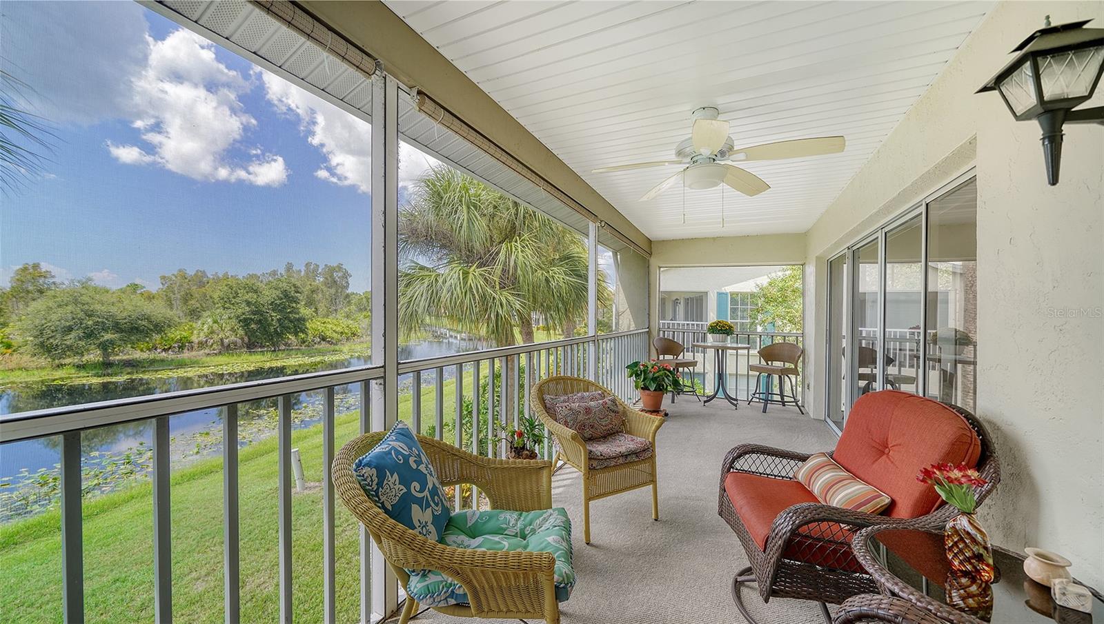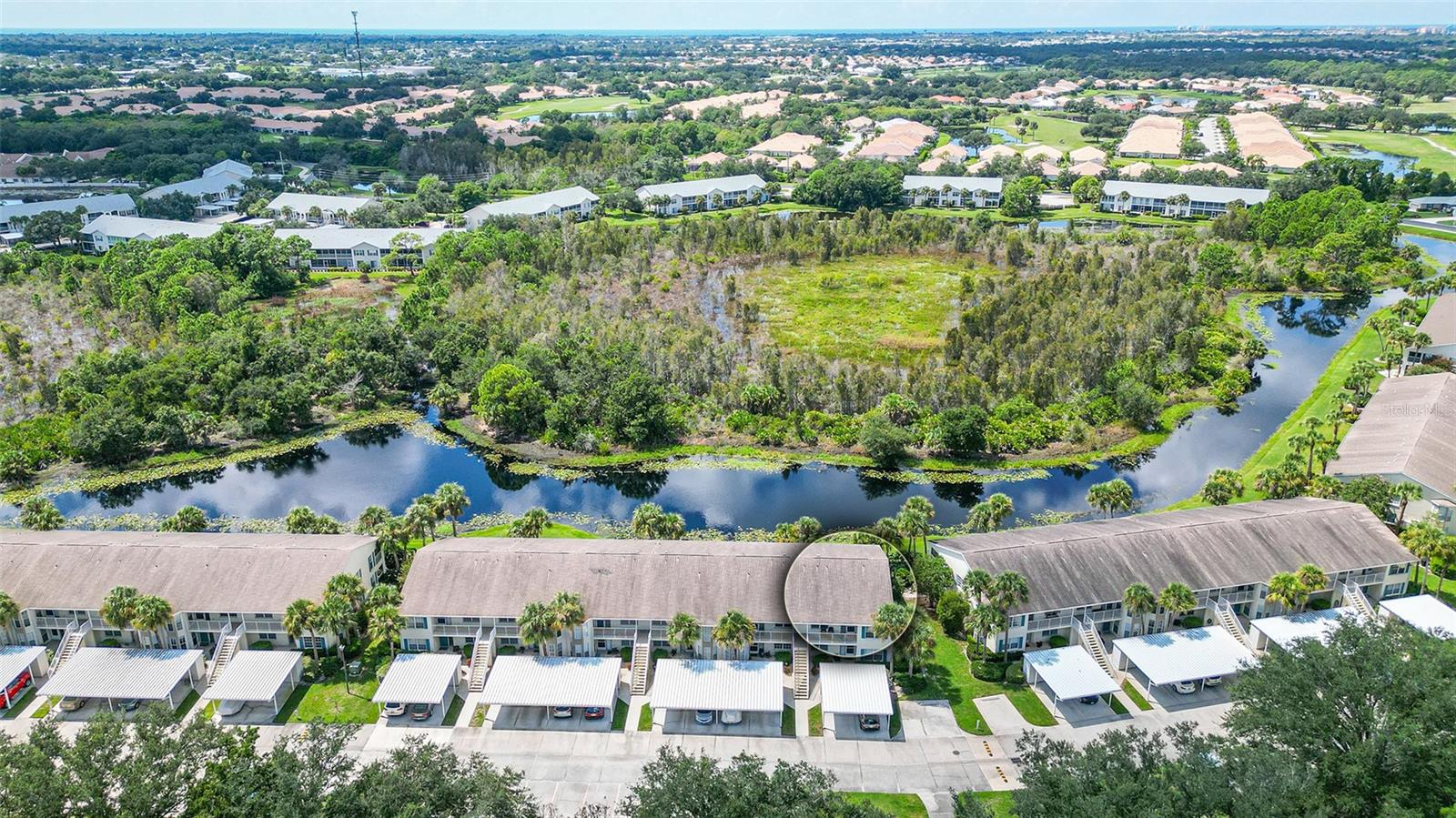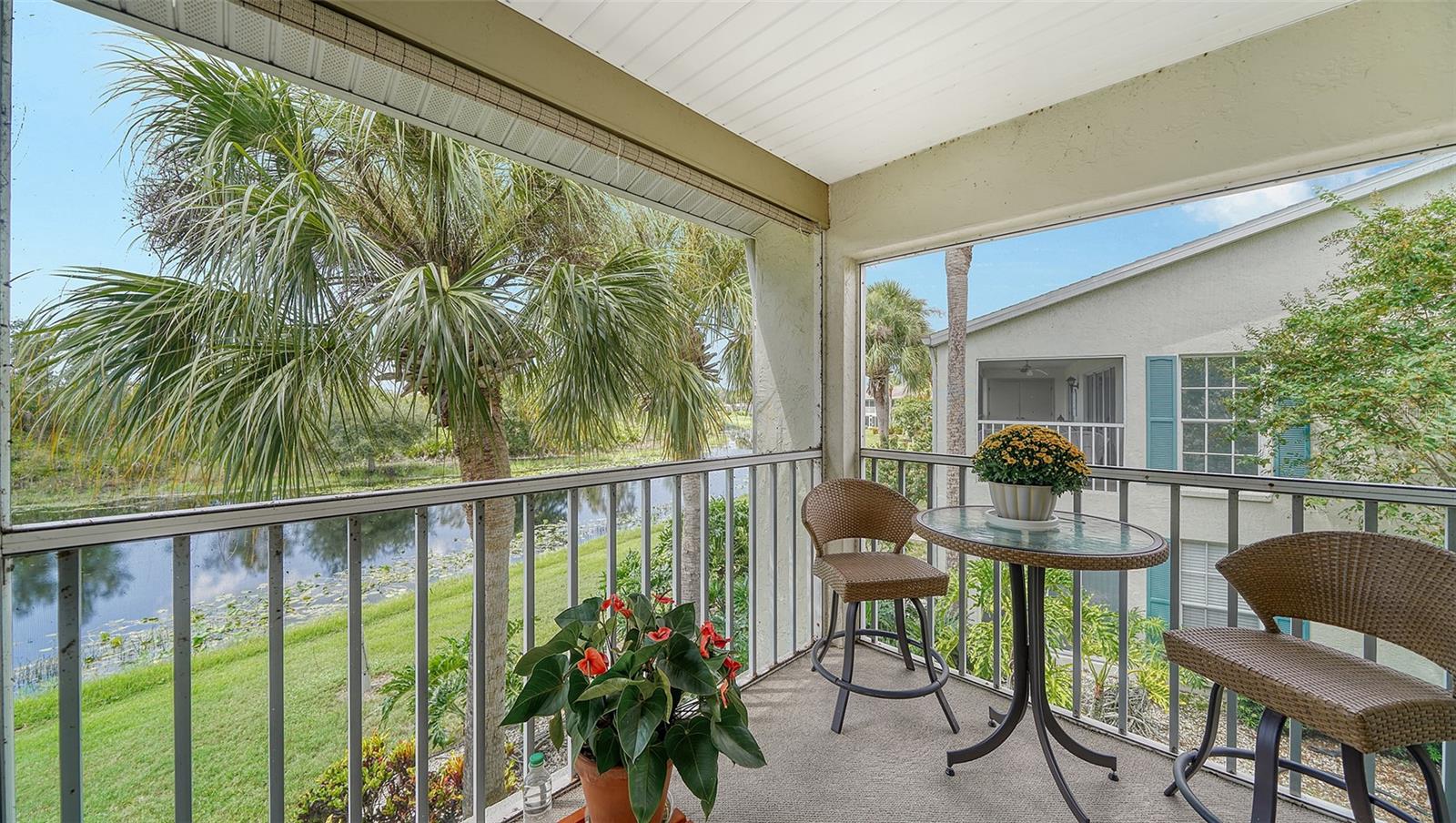 Look up to a newly refurbished 2nd floor end unit, light and bright and ready for a new owner and new art work. You'll be pleasantly surprised when you see this terrific 2BR/2BA+Den with expansive views of Hatchett Creek and Preserve area from the huge 2nd floor screened lanai and living room. You'll enjoy all the views of sunset and wildlife from the vaulted ceilings while the lanai, open in 2 directions, invites lots of breezes in. Primary bedroom has access to lanai..........3 pools; clubhouse has meeting rooms, library, recreation center--, including tennis, pickle ball, bocce, shuffleboard and access to a variety of social activities. Close to shopping, dining, Venice Beach and easy access to I-75. We know there are lots of choices for condo buyers, so the owner has reduced the price to make it even more appealing. Come and look and see how easy it is for you to take advantage of all this unit has to offer.