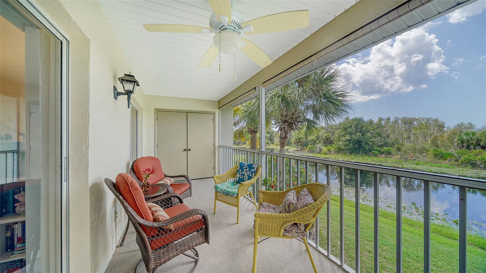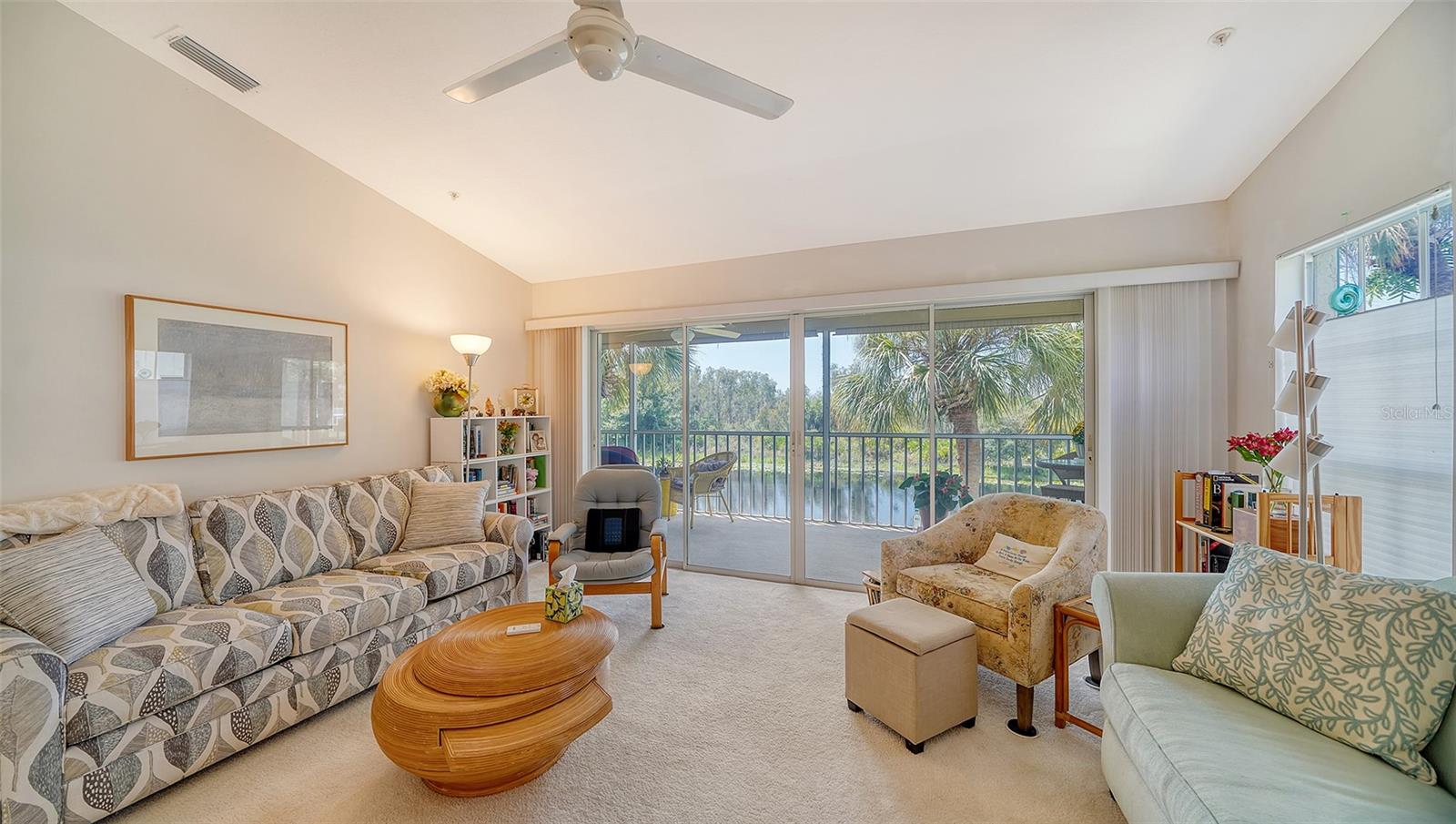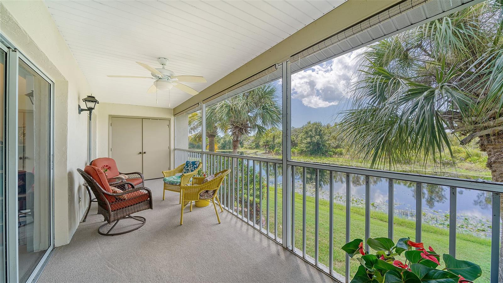 Look up to a newly refurbished 2nd floor end unit, light and bright and ready for a new owner and new art work. You'll be pleasantly surprised when you see this terrific 2BR/2BA+Den with expansive views of Hatchett Creek and Preserve area from the huge 2nd floor screened lanai and living room. You'll enjoy all the views of sunset and wildlife from the vaulted ceilings while the lanai, open in 2 directions, invites lots of breezes in. Primary bedroom has access to lanai..........3 pools; clubhouse has meeting rooms, library, recreation center--, including tennis, pickle ball, bocce, shuffleboard and access to a variety of social activities. Close to shopping, dining, Venice Beach and easy access to I-75. We know there are lots of choices for condo buyers, so the owner has reduced the price to make it even more appealing. Come and look and see how easy it is for you to take advantage of all this unit has to offer.