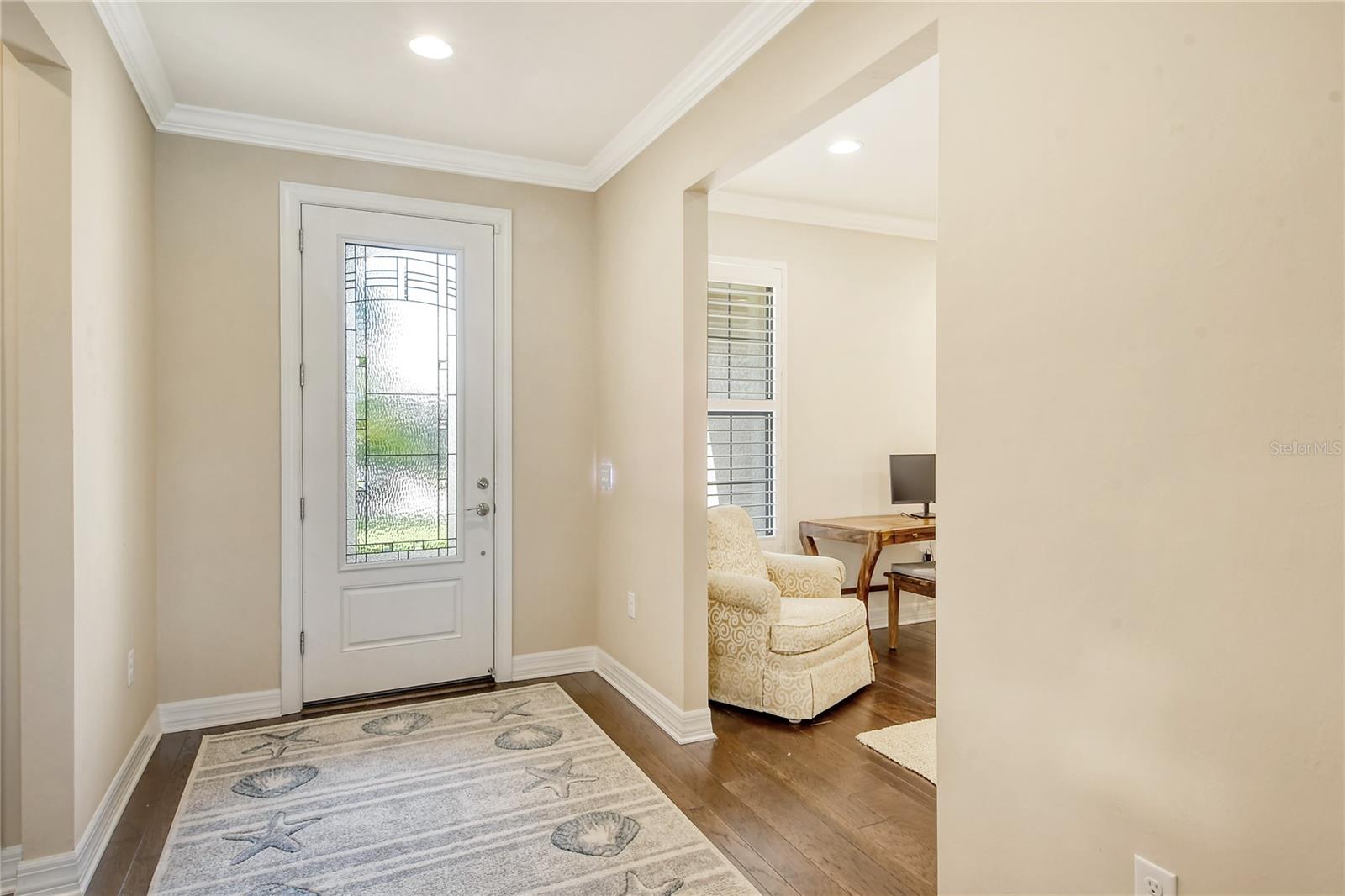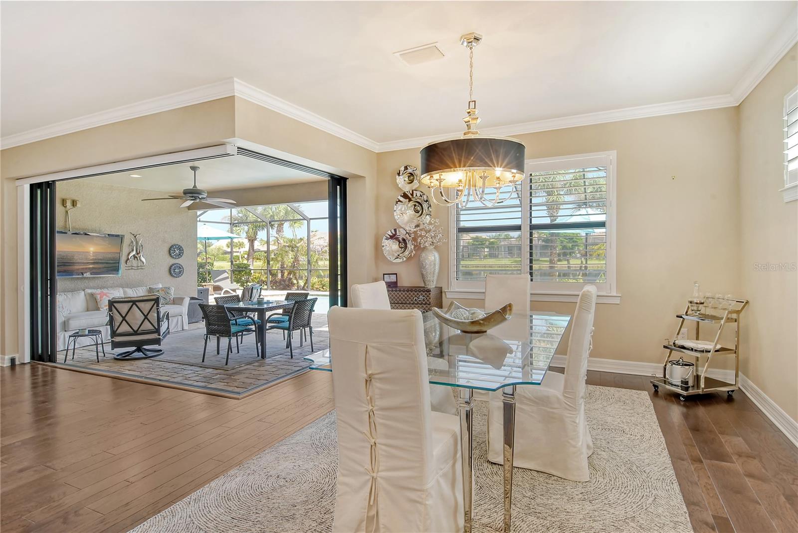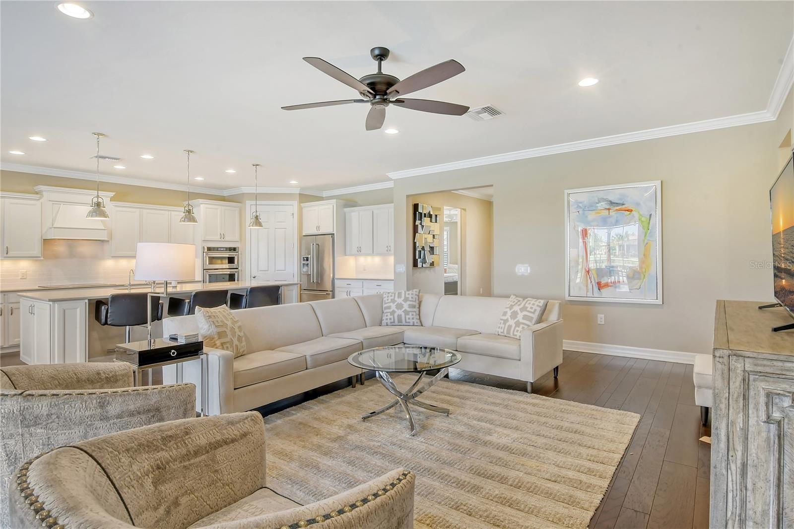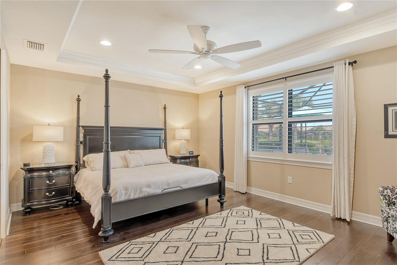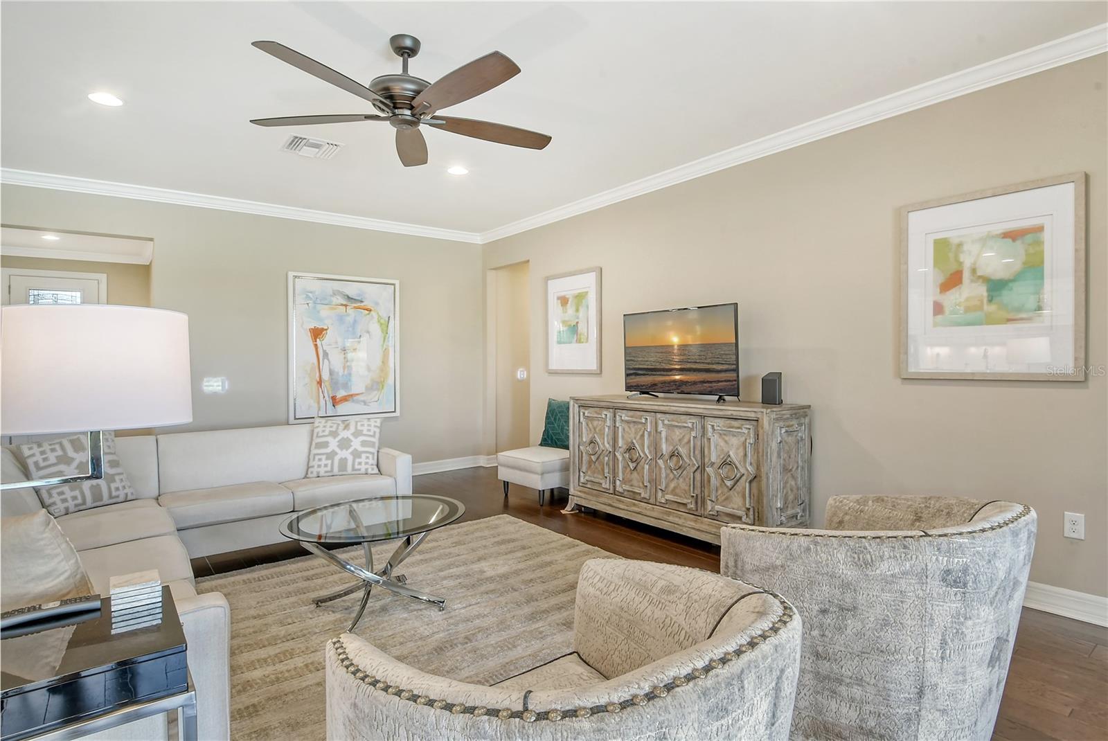 Nestled in the heart of Venice, Florida, this exquisite residence beckons those with a penchant for refined living. A harmonious blend of sophistication and comfort awaits within this three-bedroom, three-bathroom haven, where every detail has been meticulously crafted to elevate your lifestyle. Step into a world of open elegance, where the floor plan flows seamlessly, inviting both intimate gatherings and grand soirées. The kitchen is a culinary artist's dream with lustrous quartz countertops, upgraded cabinetry, and Stainless-steel appliances. The subway tile backsplash adds a touch of timeless charm. Pendant lights cast a warm glow, complemented by strategically placed illumination throughout, ensuring your culinary masterpieces are always in the spotlight. Additional bonuses include a whole-home water filtration system, complete with reverse osmosis, providing crystal-clear refreshment at every tap. Hardwood floors grace the living areas and bedrooms with rich tones a testament to quality underfoot. The pièce de résistance? A zero-corner pocket door that slides away, blurring the lines between indoor refinement and outdoor splendor. The primary bedroom suite is a sanctuary unto itself, with beautiful water views featuring a generous sized bathroom with dual sinks, granite counters, and a walk-in shower adorned with listello accents and a sitting bench - perfect for post-soak contemplation. Two additional bedrooms, each with private bath access, offer similar high-end finishes, strategically positioned for optimal privacy. Outside, a private, heated saltwater pool beckons, its shimmering surface reflecting the beauty of the water views beyond. Mature tropical landscaping creates a lush oasis, while hurricane shutters stand guard, ready to protect your paradise. The lanai is spacious and protected with a motorized retractable screen rated for the most tropical winds. With a three-car garage and pavered driveway, this residence isn't just a home; it's a statement of discerning taste and uncompromising quality.