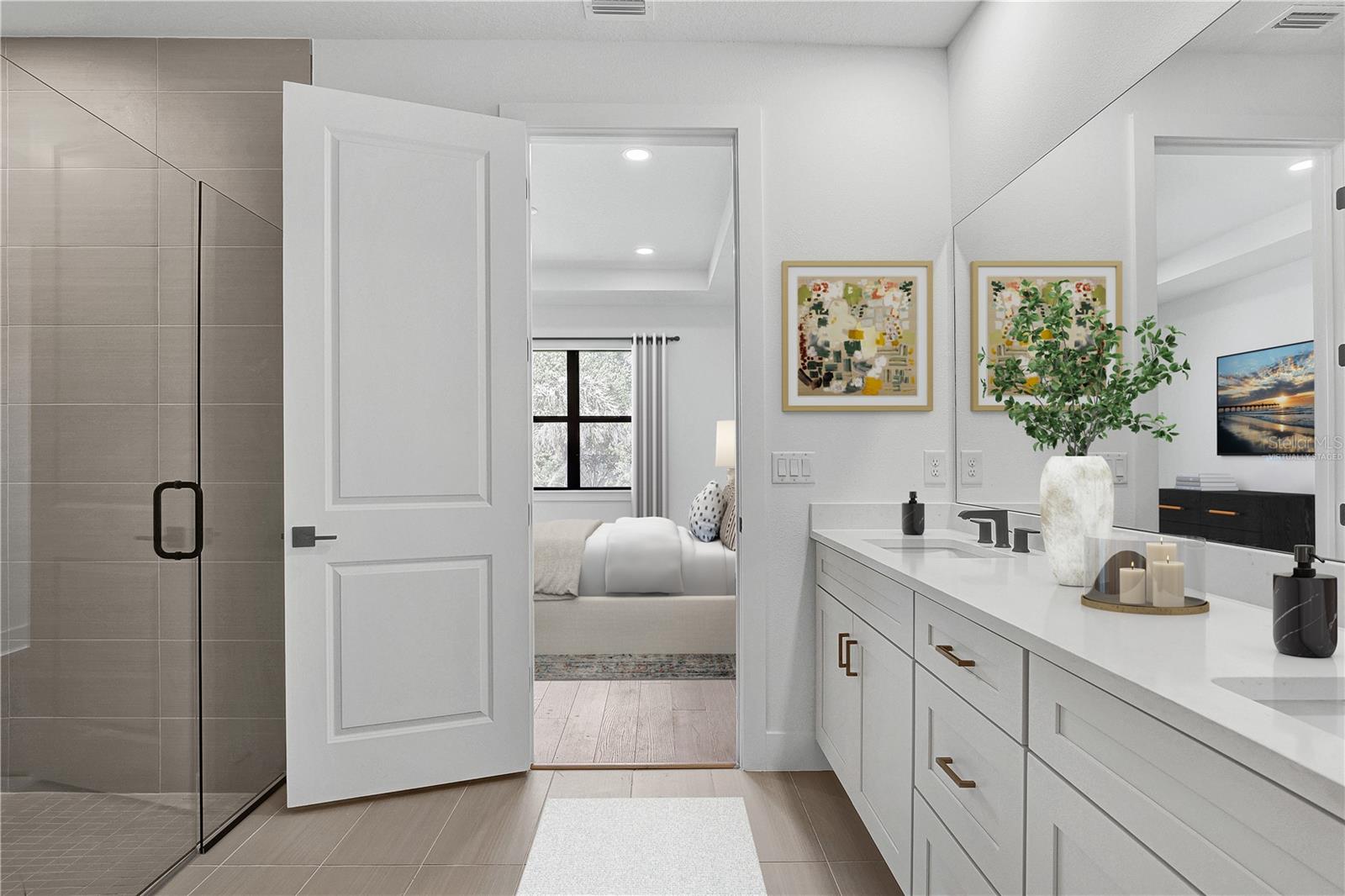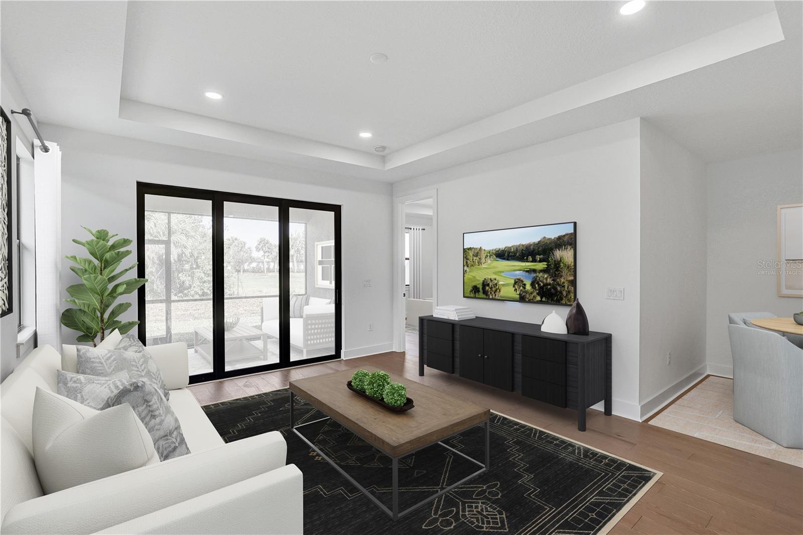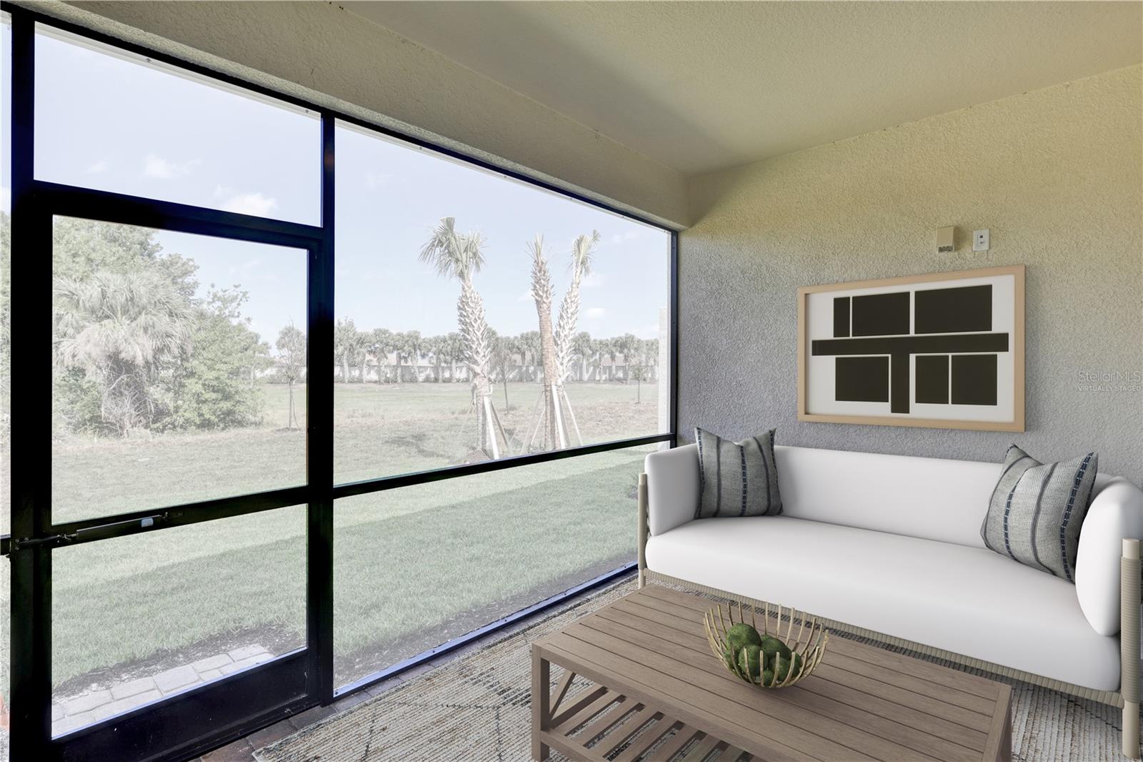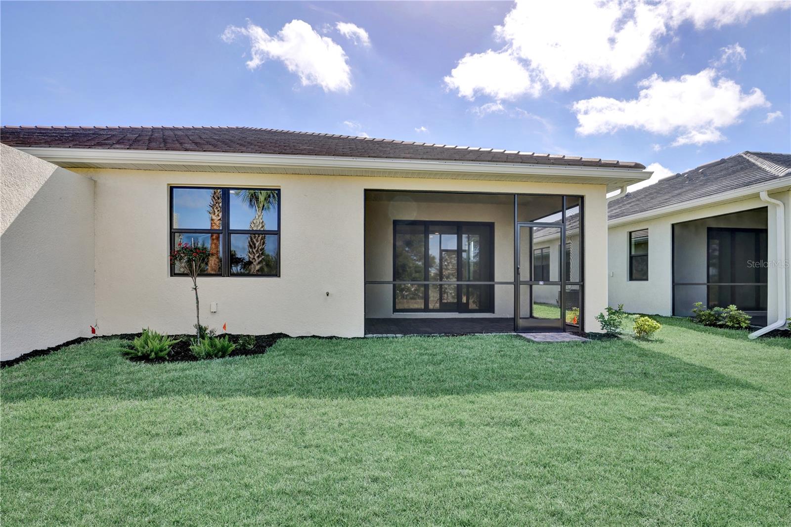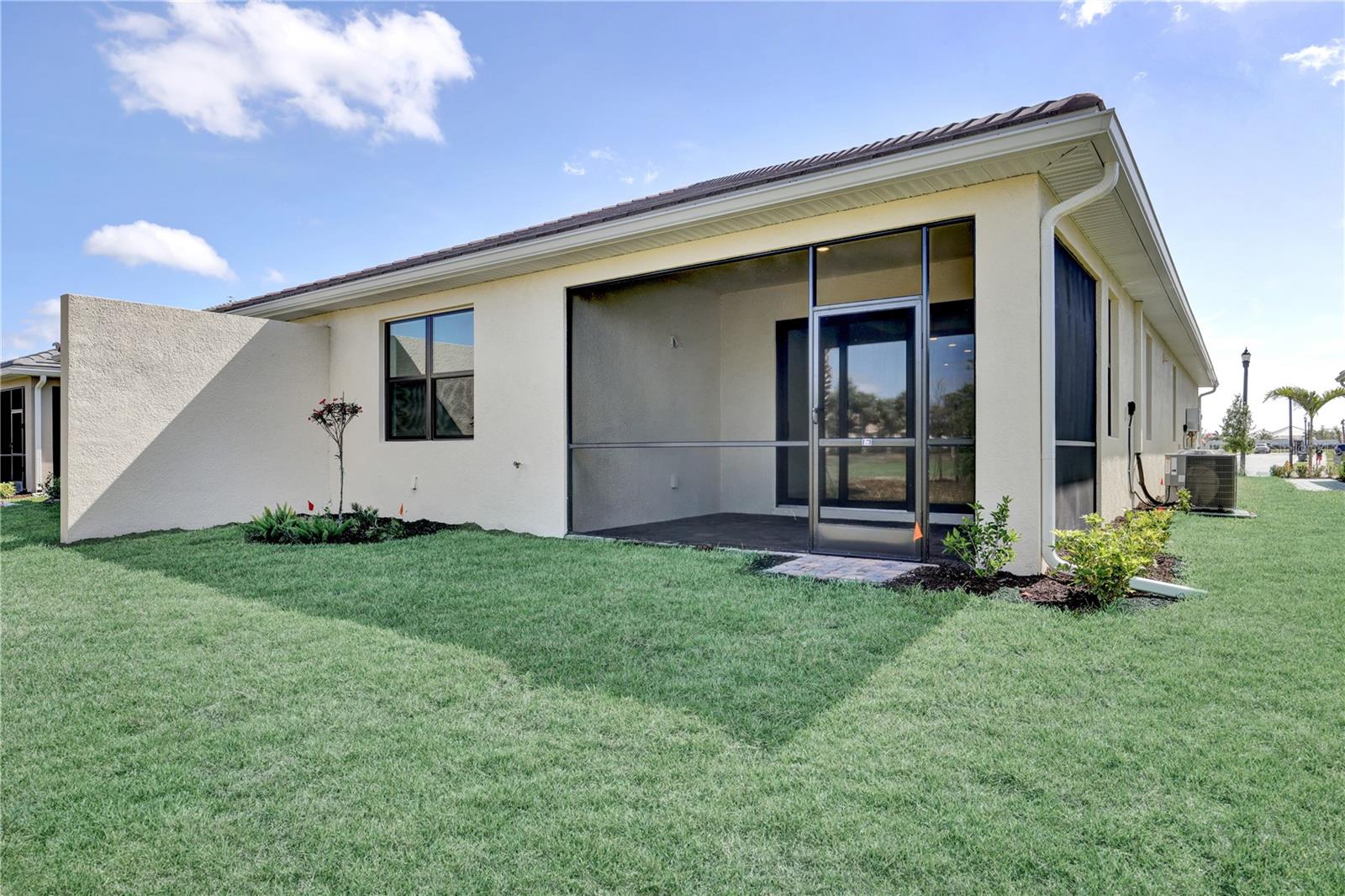 One or more photo(s) has been virtually staged. Welcome to your enchanting villa, a beautifully designed 1601 sq. ft. retreat that perfectly balances comfort and elegance. The inviting front porch greets you, setting the tone for what lies within. Step inside to discover a spacious open-concept living area, where sliding glass doors effortlessly blend indoor and outdoor living. The gourmet kitchen is a chef’s dream, featuring stunning quartz countertops and premium KitchenAid appliances that promise both style and functionality. Relax and unwind on the screened lanai, where you can enjoy the fresh air in a tranquil setting, free from pesky bugs. The villa also includes a generous two-car garage, providing ample storage and convenience for all your needs. With its thoughtful design and modern finishes, this villa offers a warm and inviting atmosphere that you’ll be proud to call home.