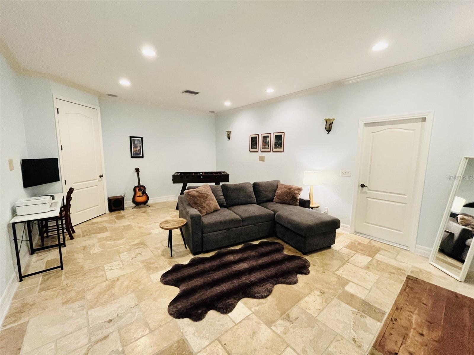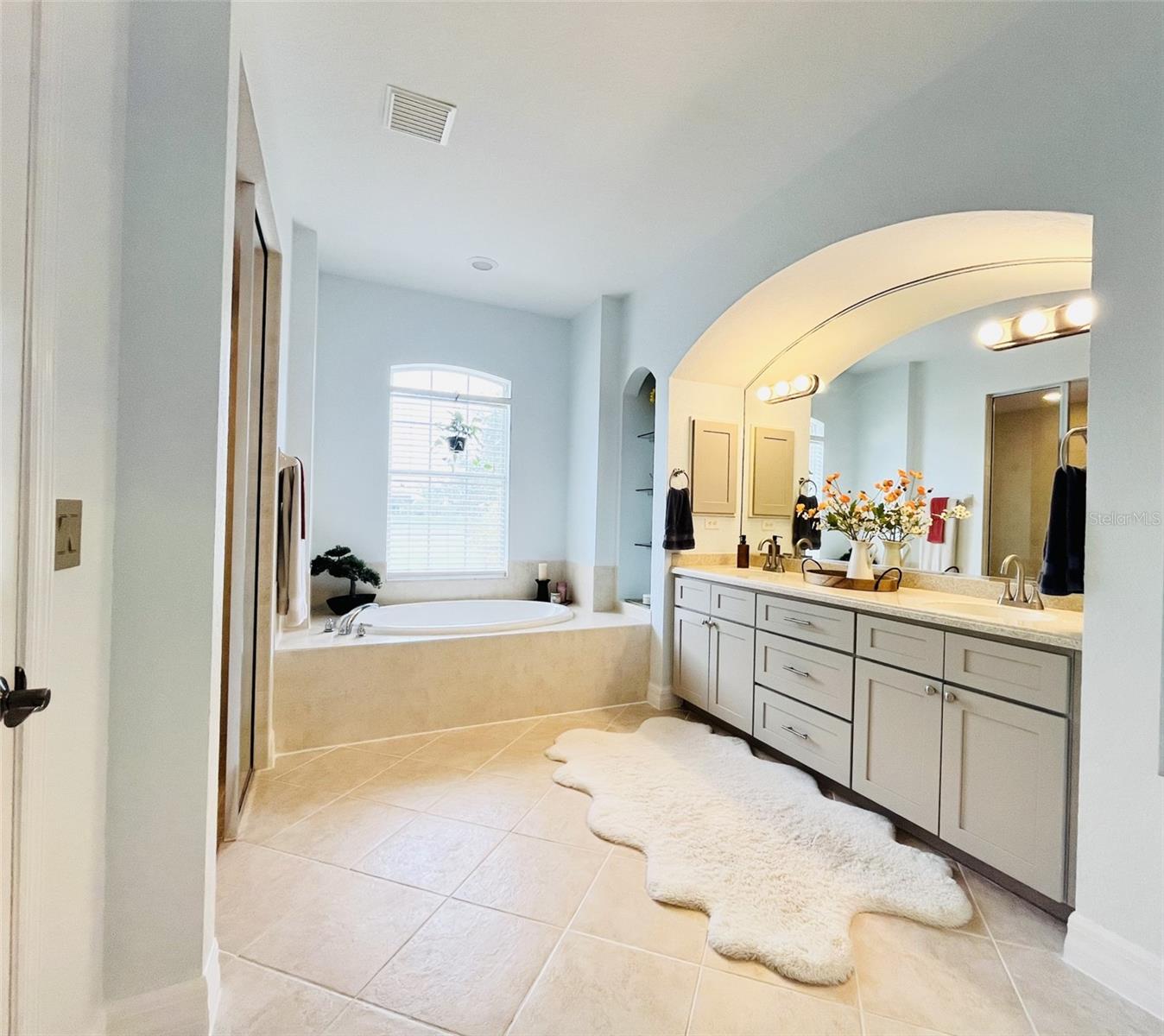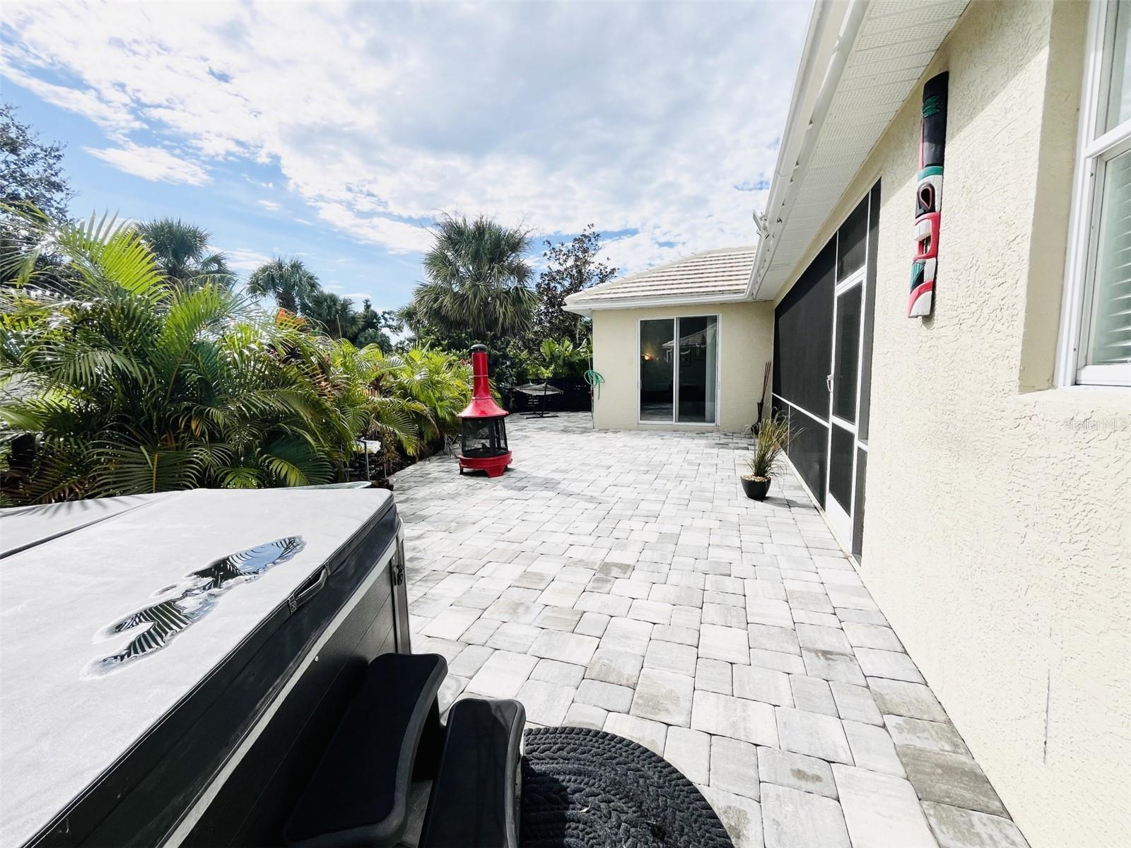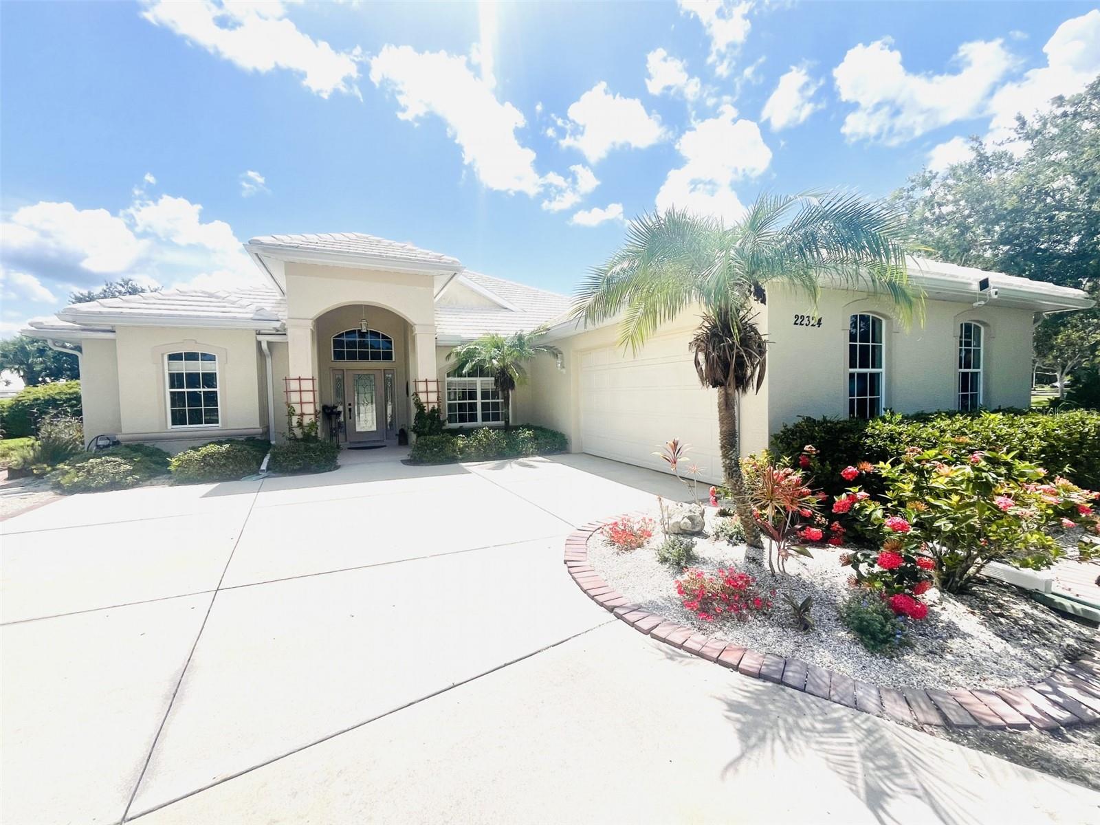Nestled in the heart of the scenic Plantation Golf and Country Club, home to the preeminent LPGA Tour Qualifier, this magnificent 2,628 sq ft estate home offers the perfect blend of spacious living, serene natural beauty, and endless possibilities. Situated on a quarter-acre corner lot with an abundance of privacy and an extended driveway providing ample parking. Enjoy year-round fruits and vegetables with your raised garden beds on an automatic watering system, which is run on a community well saving you irrigation costs. Relax during the peaceful evenings on your brand new and spacious 900 sq ft paver lanai while soaking in a new hot tub which conveys with purchase. This home also features an all-new AC system, fresh paint inside and out, new stainless appliances, new extra-large modern kitchen sink with 3/4 HP disposal, new upgraded stain-resistant carpet throughout, Brinks Home Security System, Hunter fans, hurricane-rated garage door and storm shutters, new modern cabinetry, solid surface counters throughout (marble, granite, corian), and many other upgrades! In addition to the three oversized bedrooms, there is an extra-large theater room with custom Italian travertine floor and Bose surround sound speakers integrated into the walls and ceiling. Enjoy the proximity to Wellen Park, but pay no CDDs! Low taxes! Low HOA which includes annual pressure washing of fencing and roof! Wonderful neighbors! Conveniently located near CoolToday Park, home of the Atlanta Braves Spring Training, as well as local beaches, and downtown Venice.