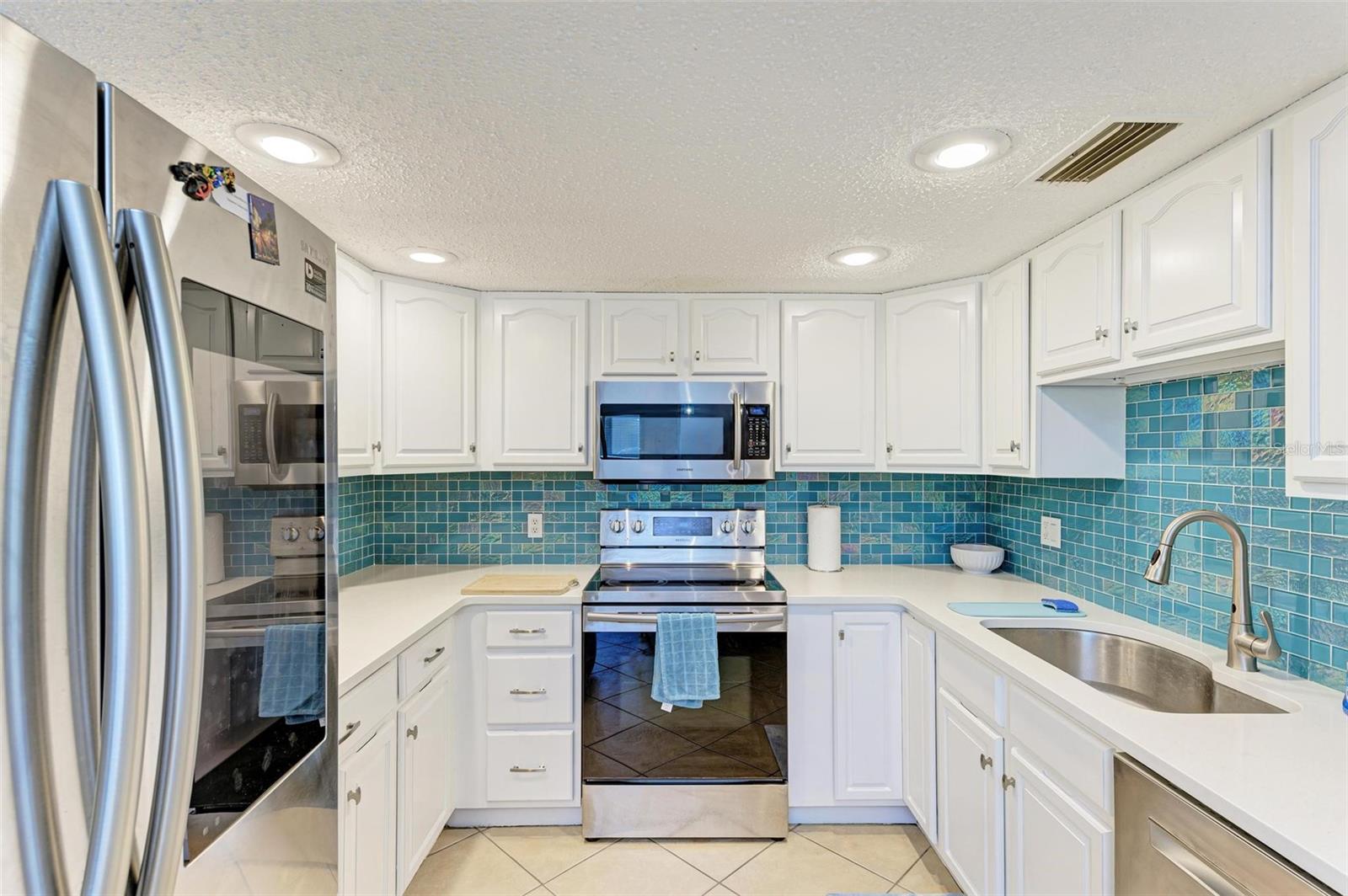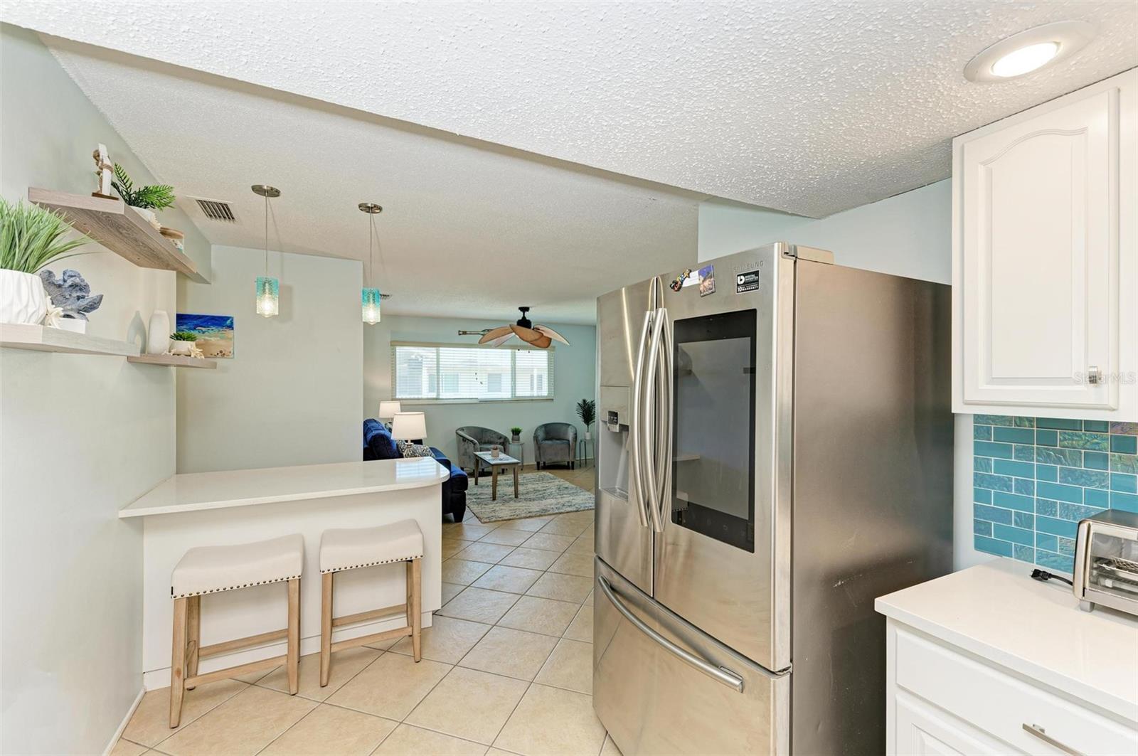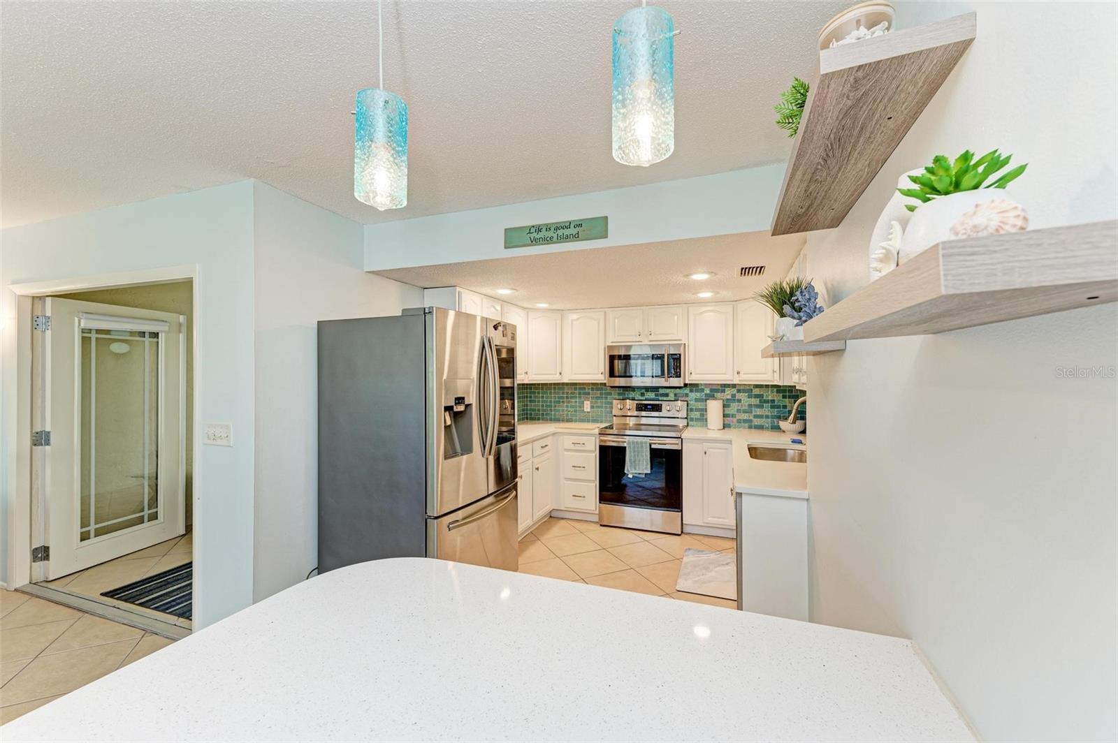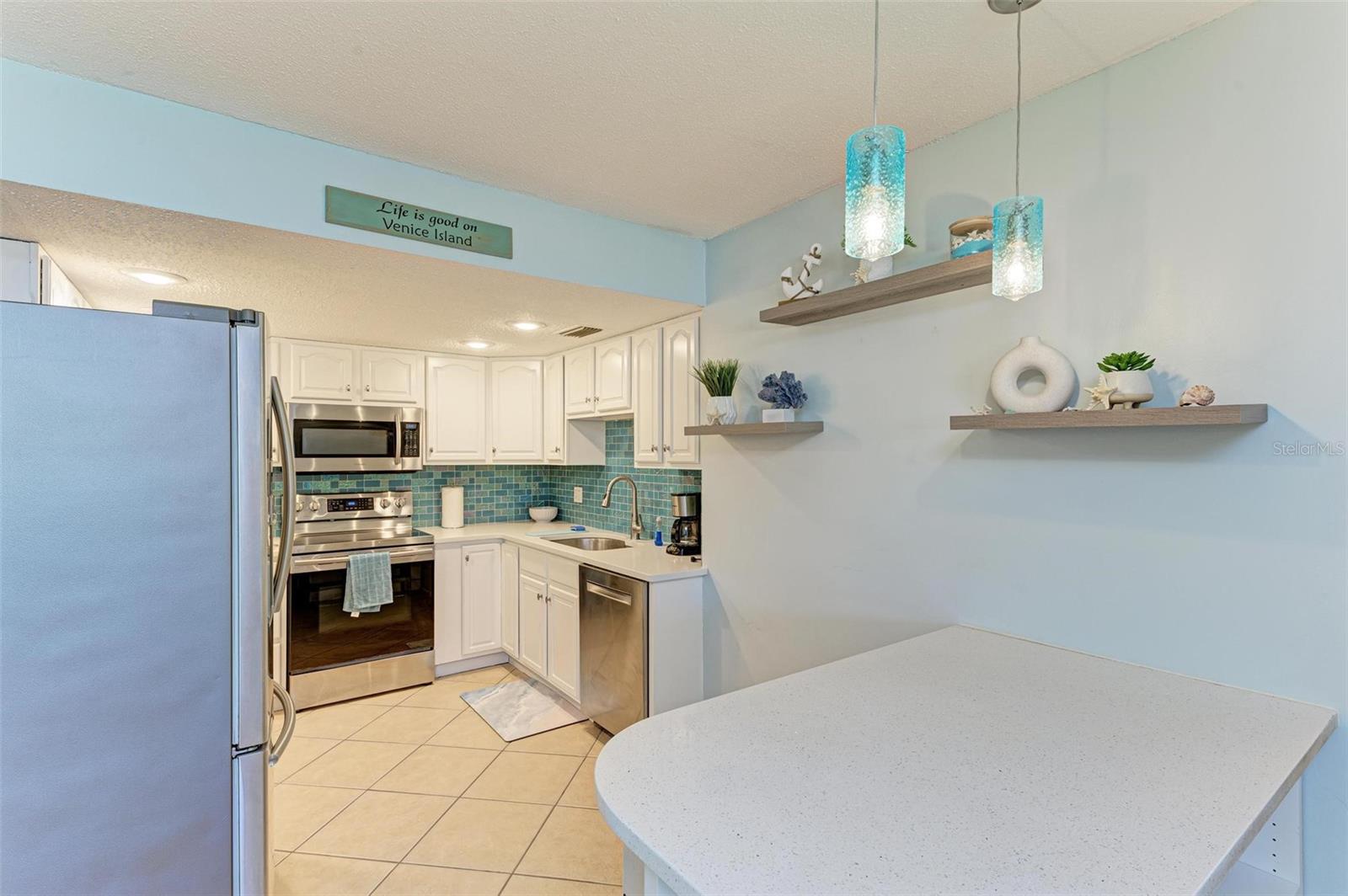 MOTIVATED OWNER, 25K REDUCTION! Are you looking for your own personal paradise in the sunshine... or a savvy business investment with an outstanding rental history? Either way, this FULLY FURNISHED meticulously updated, and maintained Venice Island end-unit located just minutes from the beach is perfect for you... and it's being offered FULLY TURN-KEY. As you walk through the stellar French Glass doors you will be greeted with a spacious living room and a remodeled kitchen, offering upgraded Samsung stainless steel appliances, modern cabinets, quartz counters, a beautiful glass tile backsplash, and designer light fixtures. This rarely available and spacious second-story unit also offers three yr. old A/C, easy-to-maintain tile throughout the entire unit, updated bathrooms with granite vanities, and plenty of storage opportunities inside as well as outside being just a step away from the additional storage outside your unit as well as your laundry room (which has brand new, coin-less washer and dryers coming soon). The community also offers a Grill Area and covered designated unit + guest parking. The community just had a brand new roof + a freshly surfaced parking lot and they have a very diligent and savvy association with some of the cheapest fees on Venice Island. Located just minutes from the beach and Sharky’s Pier, a mile from Downtown, and easy access to the Legacy trail makes this location to die for! Could you imagine enjoying your preferred beverage in the open and airy lanai after a refreshing beach walk or tasty dinner Downtown?
