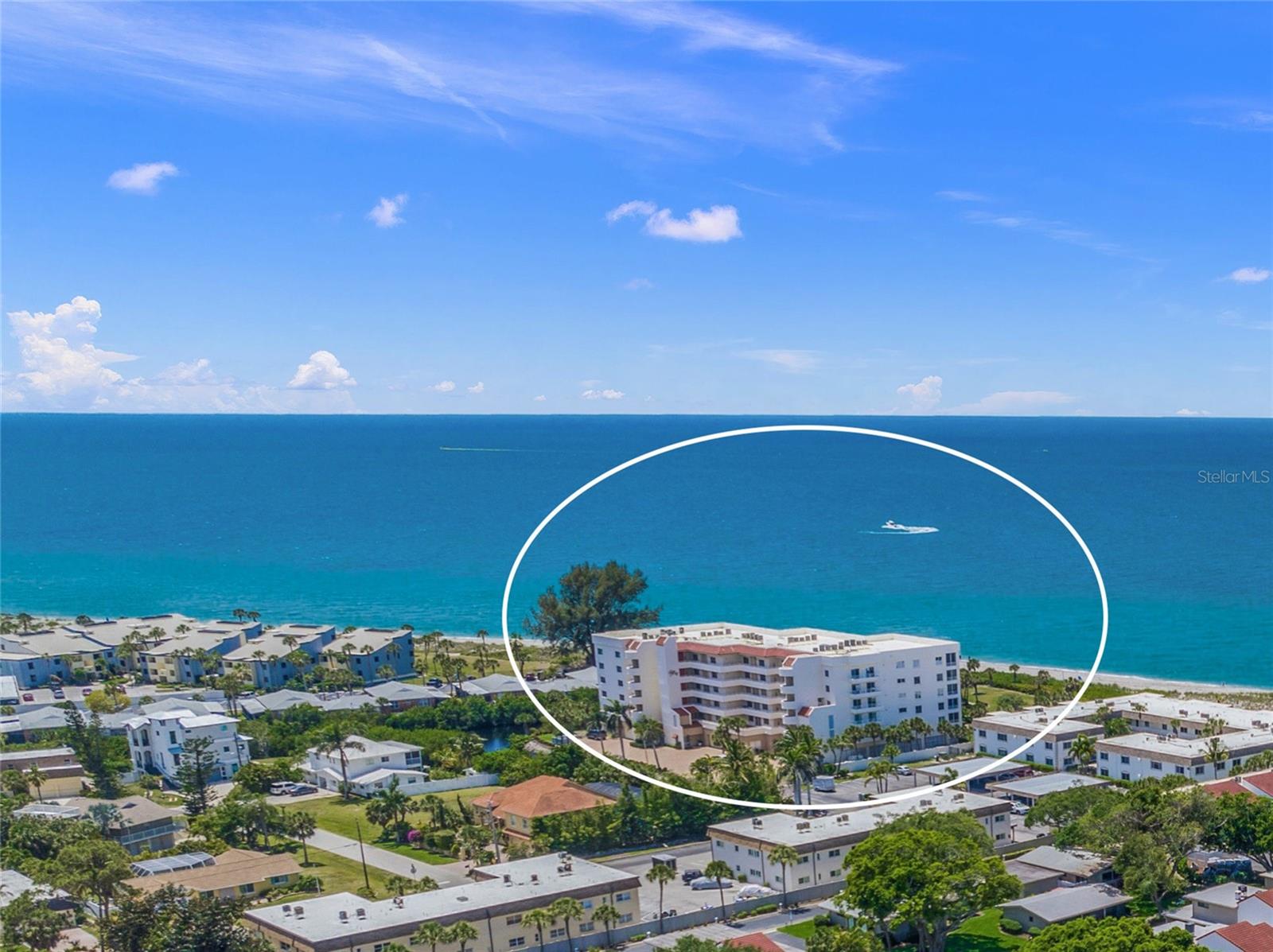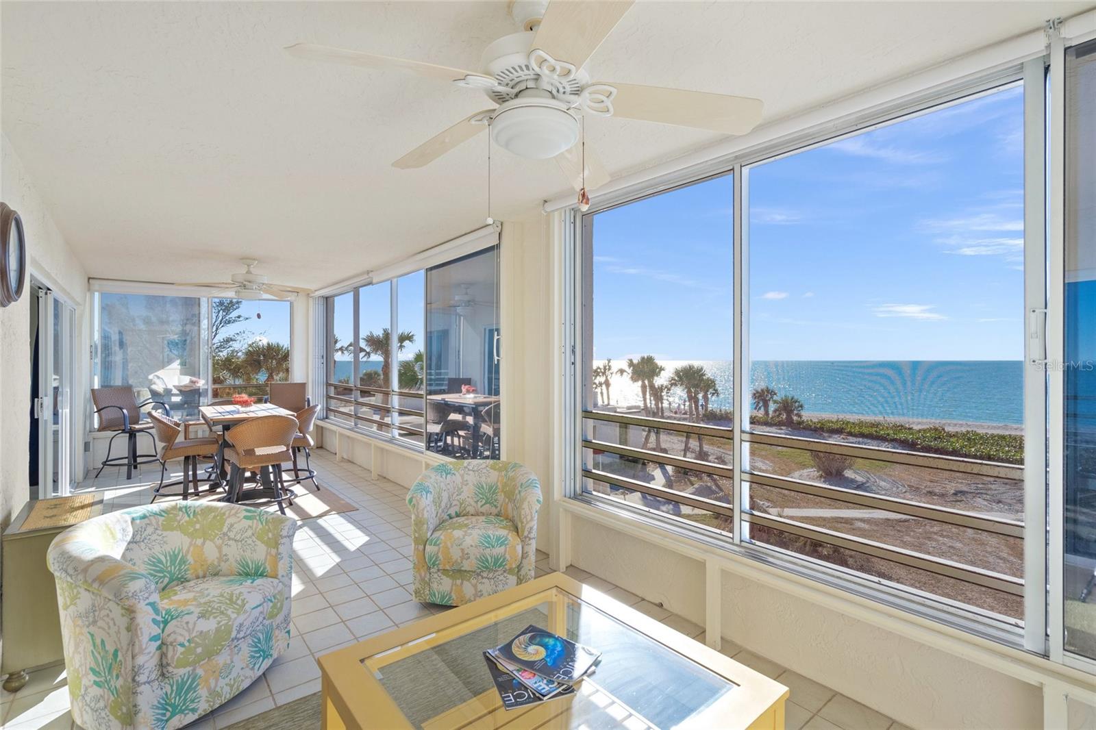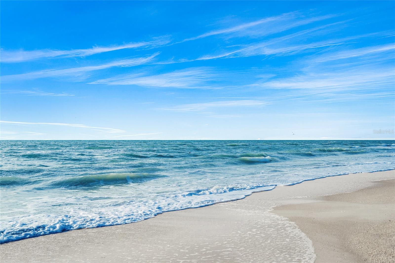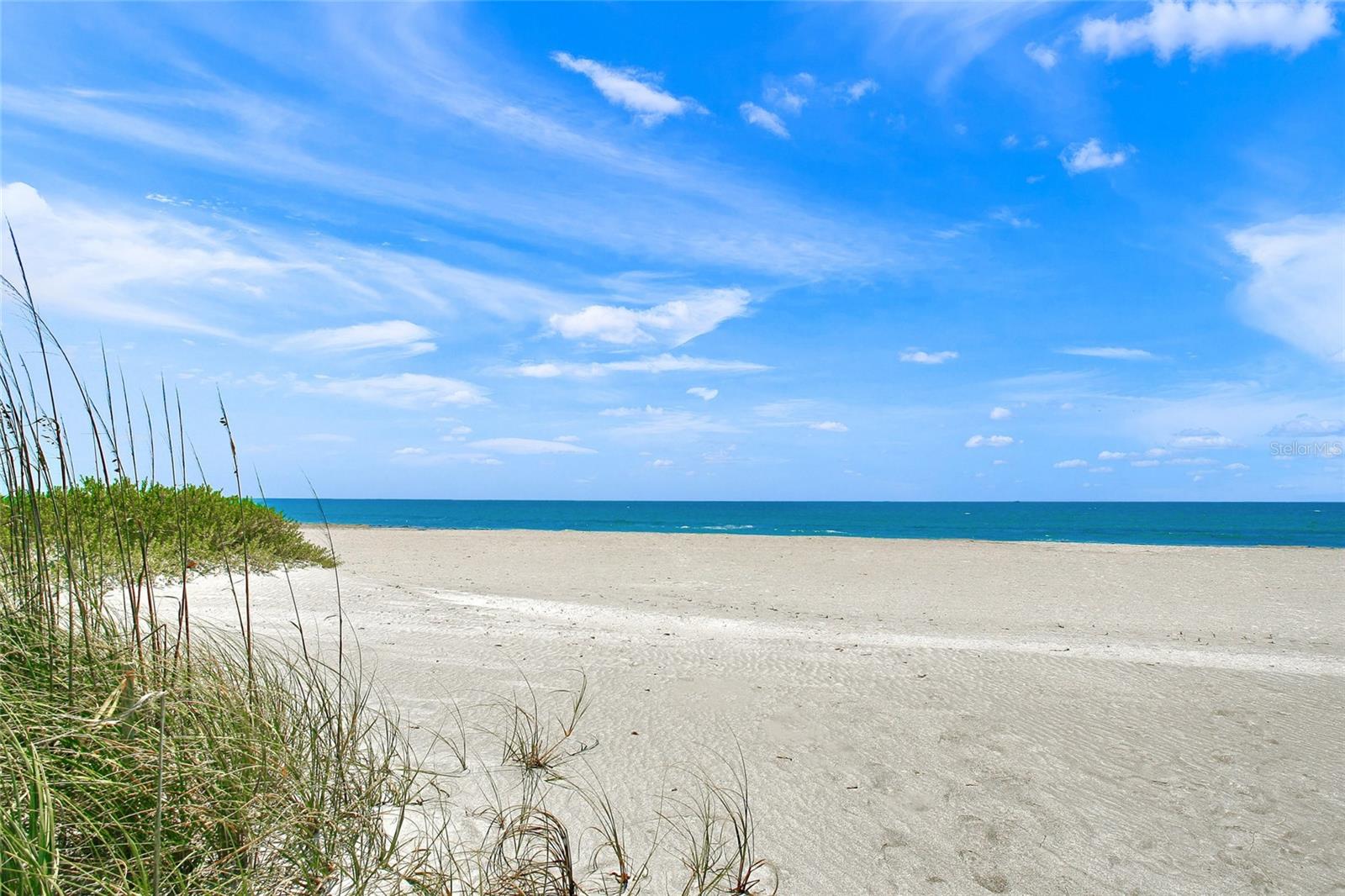 One or more photo(s) has been virtually staged. **Stunning Gulf-Front Condo with 180° Water Views** Welcome to your coastal oasis! This exquisite 3-bedroom, 2-bathroom condominium offers 2,270 square feet of waterfront living, perched on the second floor overlooking the serene blue waters of the Gulf of Mexico. With breathtaking 180-degree views and direct beach access, this is the ultimate retreat for those seeking a blend of elegance and relaxation. Step inside and discover an expansive open floor plan designed for effortless living and entertaining. The spacious living room, bathed in natural light, features sliding glass doors that lead to a 31-foot lanai, perfect for enjoying sunsets or morning coffee. The open dining area seamlessly connects to the living space, creates a harmonious flow. The owner’s suite is a private sanctuary with its own access to the lanai, where you can wake up to the gentle sounds of the waves. The en-suite bathroom boasts a deep soaker tub, separate shower, and the convenience of a tankless water heater, ensuring endless hot water. This residence is part of a community currently undergoing complete amenity center renovation, promising enhanced leisure and recreation options. A unique perk of the community is the separate guest suite located in the amenity center, which can be rented for visiting friends and family. This charming suite features a cozy bedroom with a fireplace, a private bathroom, and a kitchenette, offering both comfort and privacy for your guests. For outdoor enthusiasts, Hecksher Park, located just a mile away, offers pickleball and shuffleboard, while South Brohard Dog Beach invites you to enjoy a day by the sea with your furry friend. The renowned Venice Fishing Pier and charming downtown Venice, with its vibrant dining, shopping, and cultural scene are just minutes from your doorstep. Don’t miss this rare opportunity to own a piece of Gulf-front paradise. Schedule your private showing today and make every day feel like a vacation!