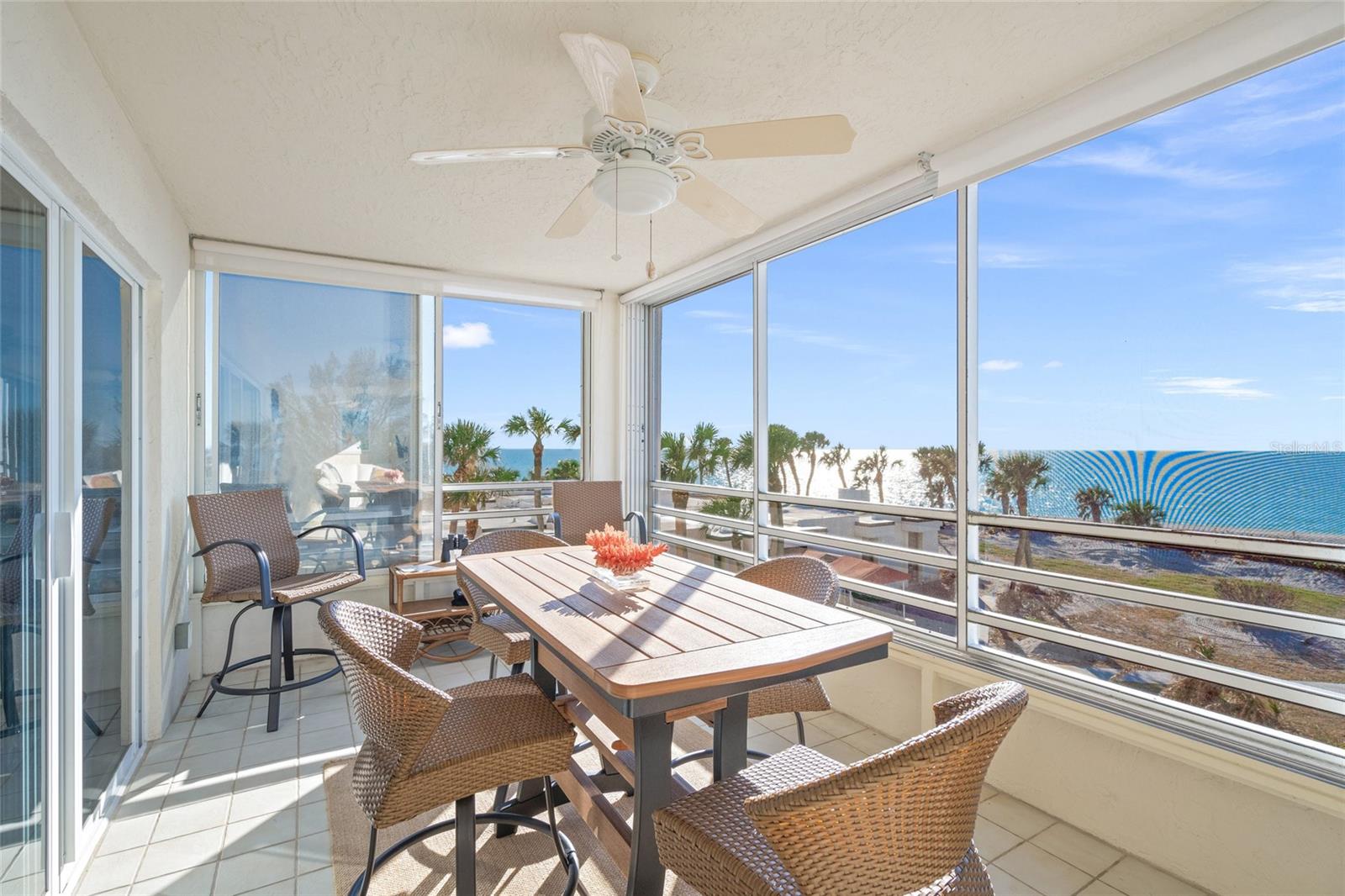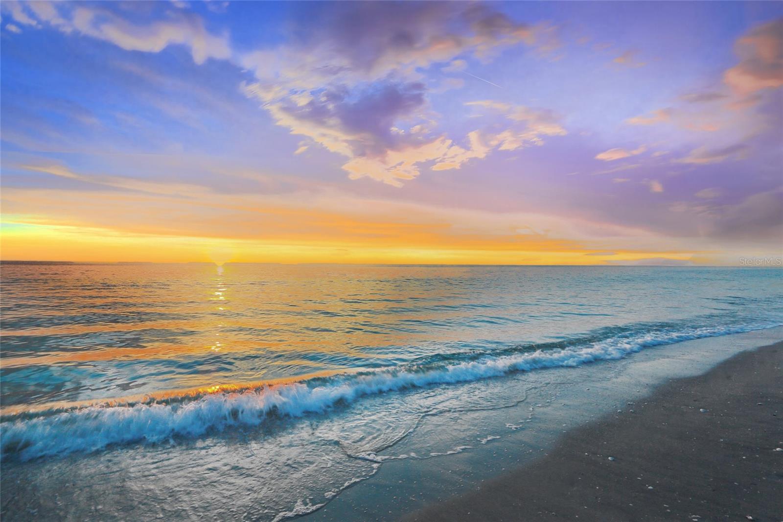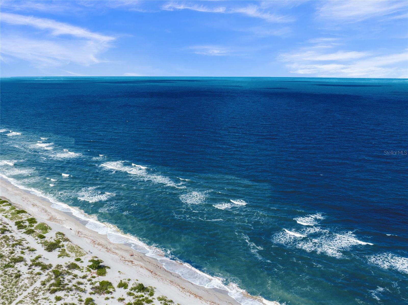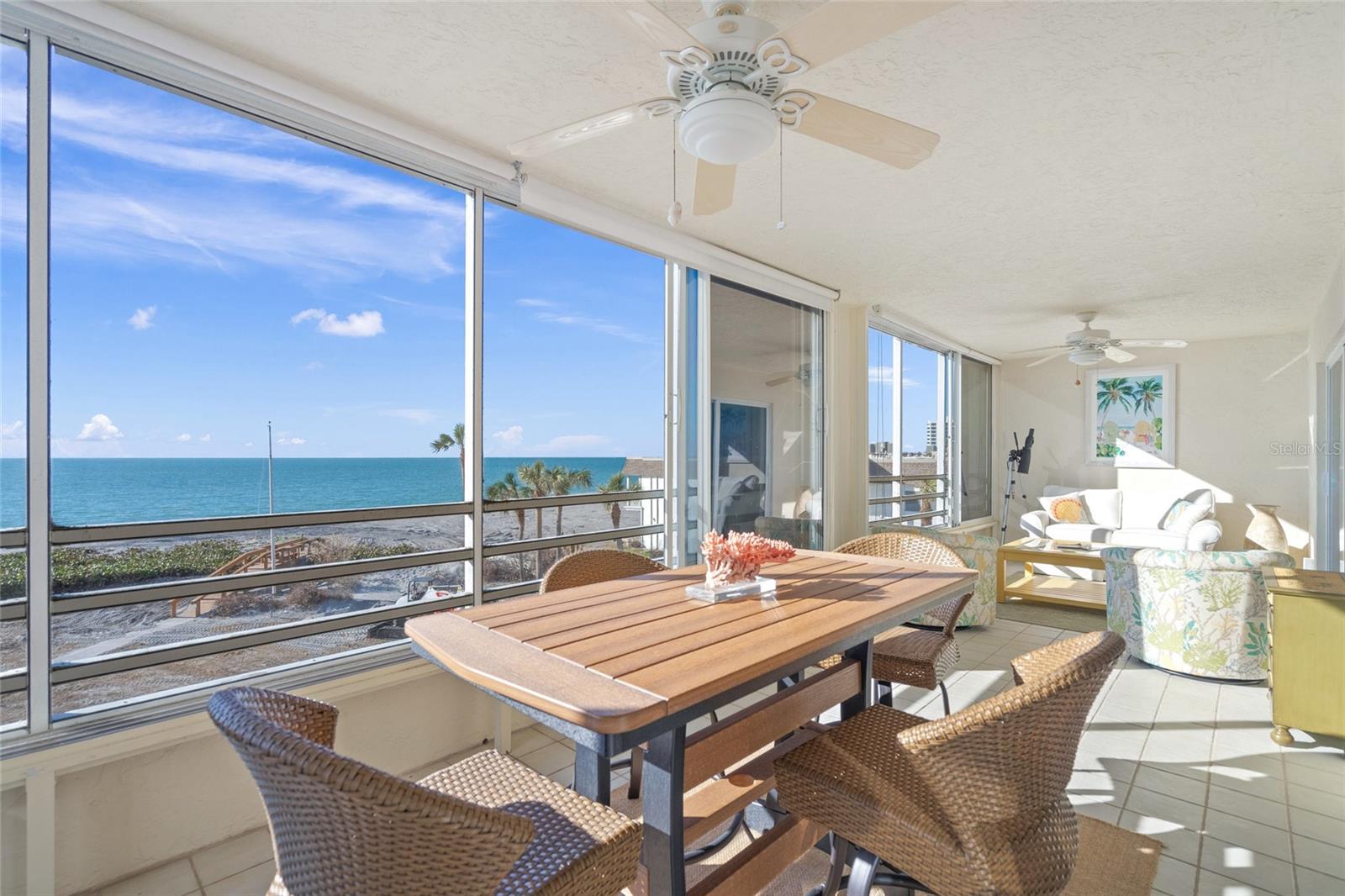 One or more photo(s) has been virtually staged. **Stunning Gulf-Front Condo with 180° Water Views** Welcome to your coastal oasis! This exquisite 3-bedroom, 2-bathroom condominium offers 2,270 square feet of waterfront living, perched on the second floor overlooking the serene blue waters of the Gulf of Mexico. With breathtaking 180-degree views and direct beach access, this is the ultimate retreat for those seeking a blend of elegance and relaxation. Step inside and discover an expansive open floor plan designed for effortless living and entertaining. The spacious living room, bathed in natural light, features sliding glass doors that lead to a 31-foot lanai, perfect for enjoying sunsets or morning coffee. The open dining area seamlessly connects to the living space, creates a harmonious flow. The owner’s suite is a private sanctuary with its own access to the lanai, where you can wake up to the gentle sounds of the waves. The en-suite bathroom boasts a deep soaker tub, separate shower, and the convenience of a tankless water heater, ensuring endless hot water. This residence is part of a community currently undergoing complete amenity center renovation, promising enhanced leisure and recreation options. A unique perk of the community is the separate guest suite located in the amenity center, which can be rented for visiting friends and family. This charming suite features a cozy bedroom with a fireplace, a private bathroom, and a kitchenette, offering both comfort and privacy for your guests. For outdoor enthusiasts, Hecksher Park, located just a mile away, offers pickleball and shuffleboard, while South Brohard Dog Beach invites you to enjoy a day by the sea with your furry friend. The renowned Venice Fishing Pier and charming downtown Venice, with its vibrant dining, shopping, and cultural scene are just minutes from your doorstep. Don’t miss this rare opportunity to own a piece of Gulf-front paradise. Schedule your private showing today and make every day feel like a vacation!