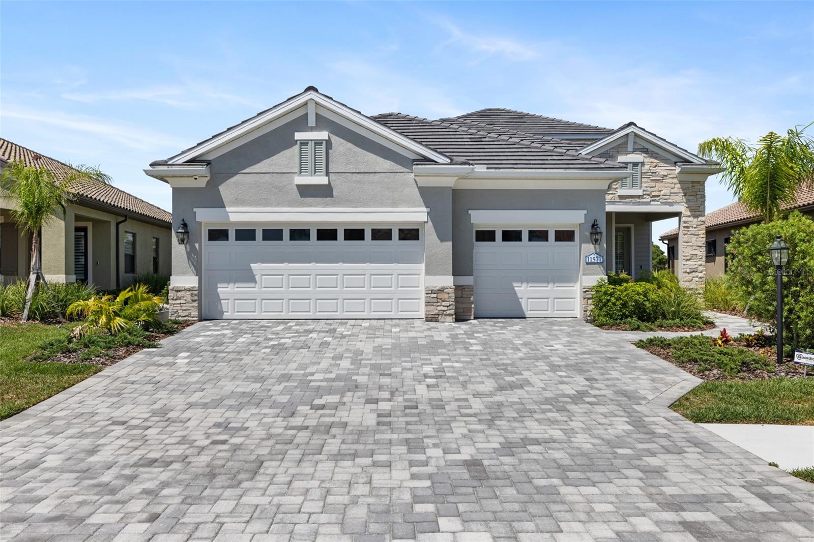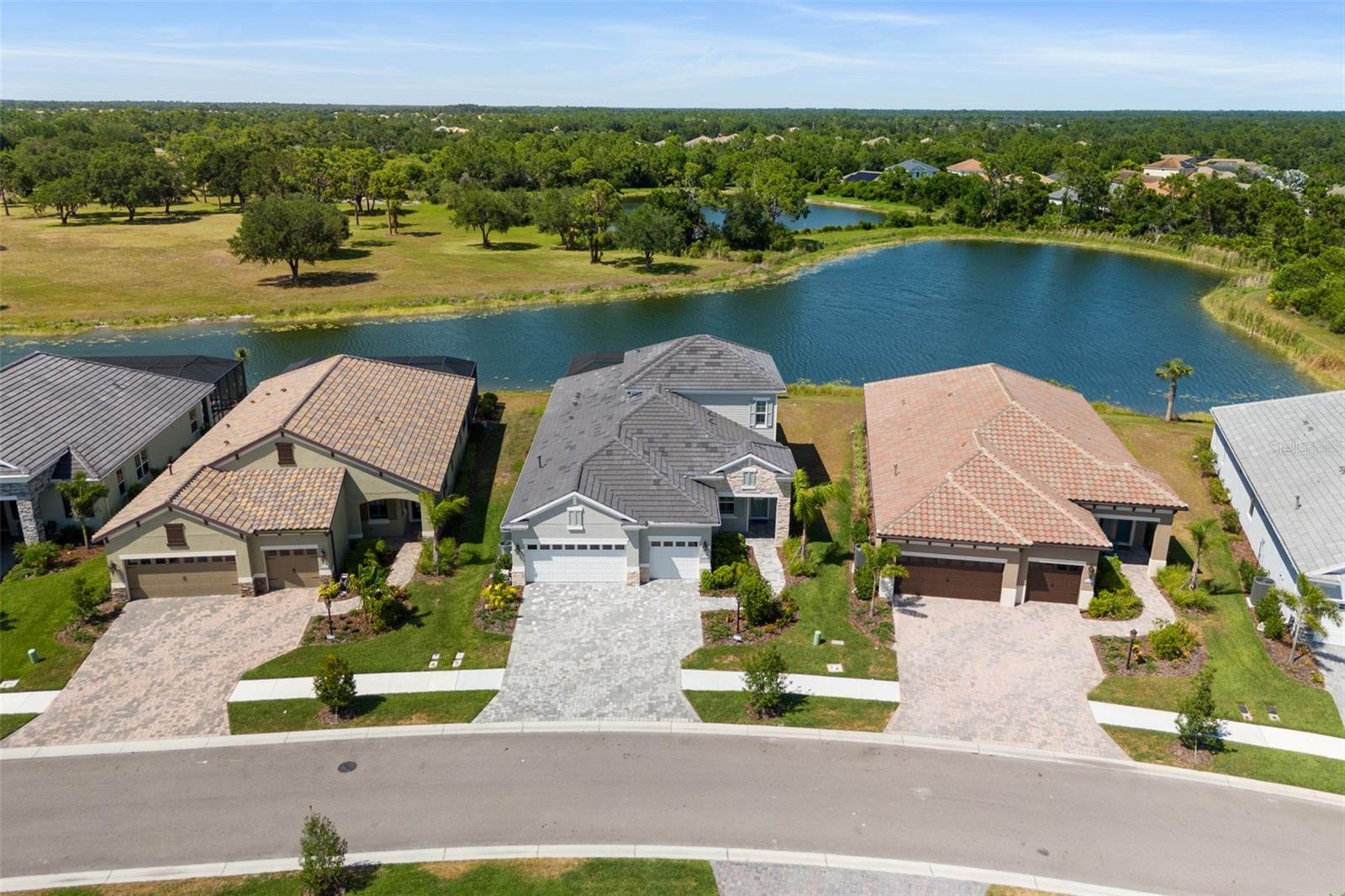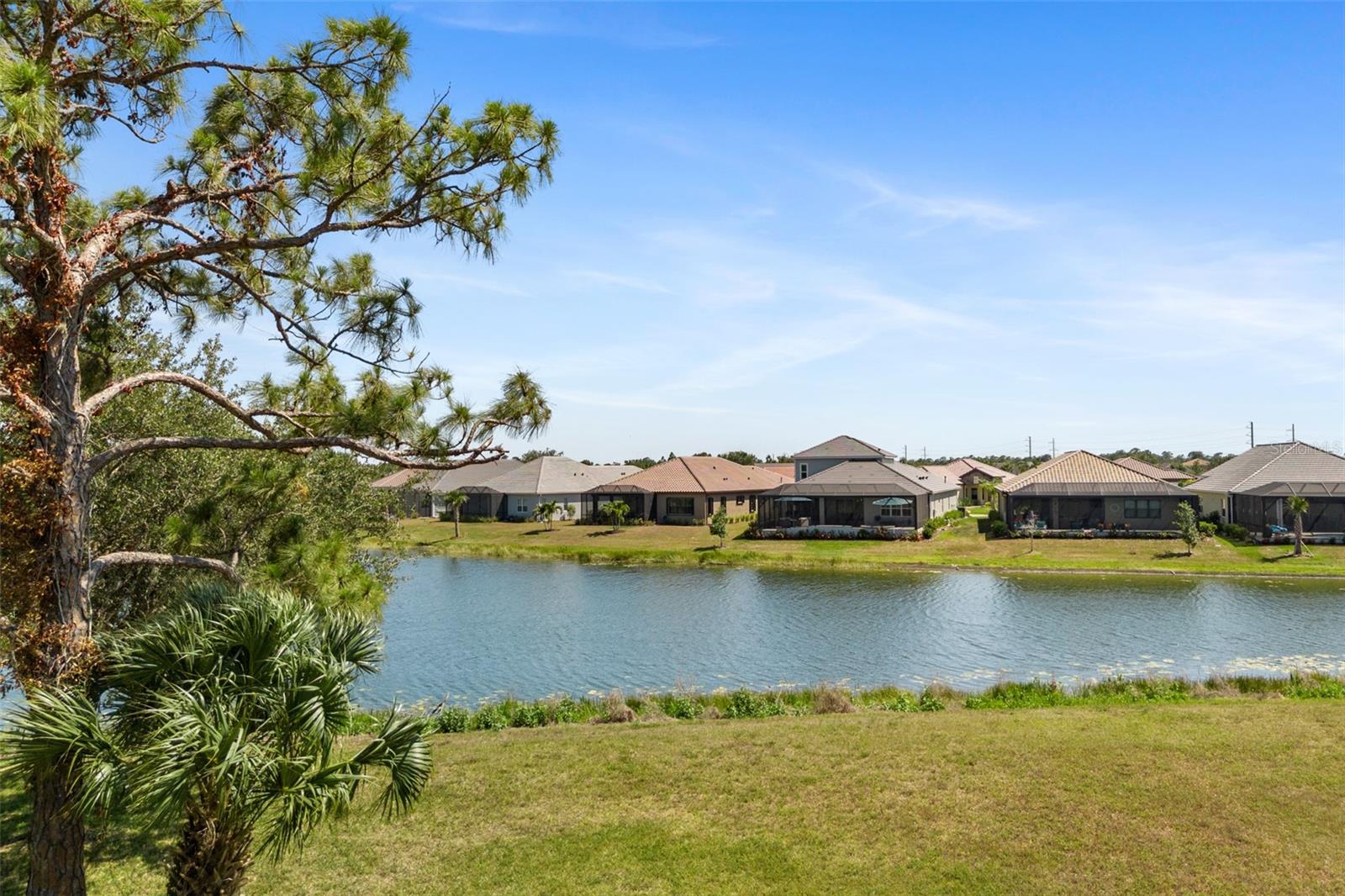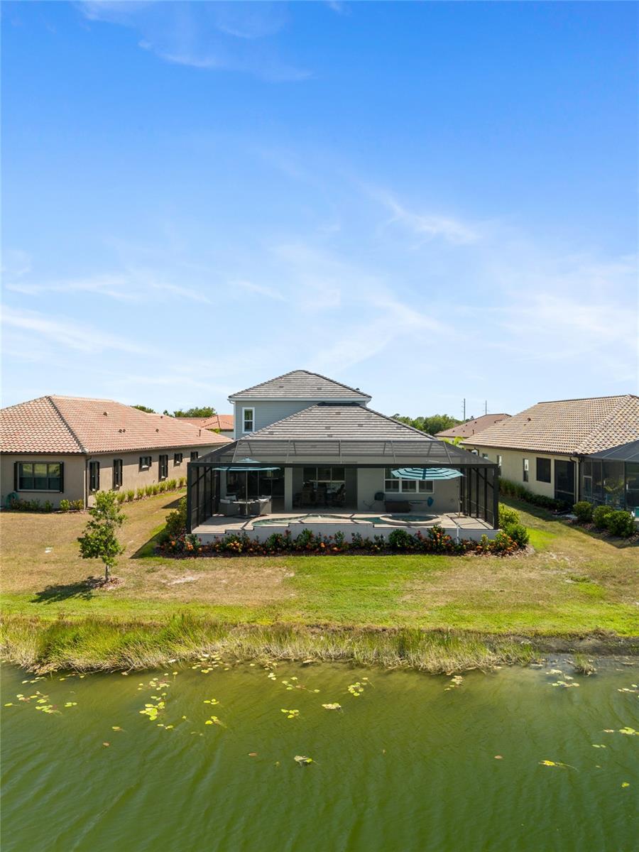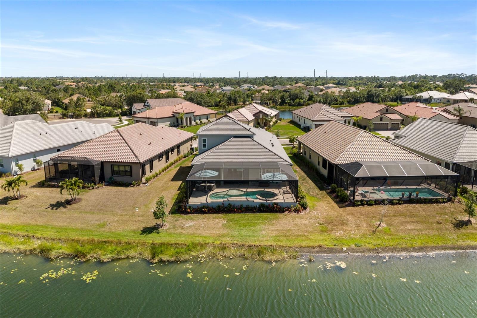Stunning 4-bedroom, 3.5-bath luxury home with exquisite features on premium waterfront lot, IMPACT HURRICANE WINDOWS upstairs, and scenic lake views in Venice, Florida. Built in 2023, this 3,156 sqft residence in the amenity-filled GRAND PALM neighborhood combines comfort and modern luxury. Featuring 10-FOOT CEILINGS and 8-FOOT TALL INTERIOR DOORS throughout. The GOURMET CHEF’S KITCHEN boasts ceiling-high cabinets with integrated lighting, quartz countertops, an apron front basin sink, vacuum dust pan, and high-end white GE CAFE appliances. The spacious living room is pre-wired for a ceiling fan, has floor outlets, and a SURROUND SOUND system integrated into the ceiling. All windows feature PLANTATION SHUTTERS, while sliding doors to the lanai have electric roll-down blinds. Step outside to your private lanai with a luxury OUTDOOR KITCHEN featuring a Twin Eagles Gas Grill with Infrared Rotisserie, Smoker Box, Beverage fridge, Italian Alfa Pizza Oven, Twin Eagle Breakfast Cooktop, and granite countertops/backsplash, all overlooking a HEATED SALTWATER POOL & SPA, sun shelf, and waterfall, framed by a CLEARVIEW PANORAMIC SCREEN for unobstructed LAKE VIEWS. The Primary Suite on the main floor offers plantation shutters, USB outlets, and an ensuite bath with quartz countertops, square sinks, and a whisper-quiet exhaust fan. Additional bedrooms have luxury vinyl flooring, walk-in closets, and share a Jack and Jill bath. A dedicated OFFICE/DEN features CAT 6 internet plugs and USB outlets. The SECONDARY ENSUITE upstairs includes IMPACT WINDOWS (no shutters needed), a walk-in closet, and a bonus room with a dry bar and space for a beverage fridge. The 3-CAR GARAGE has outlets for a fridge, golf cart, and electric car charging, plus ULTRA-QUIET smart door openers. This home is equipped with a WHOLE-HOME VACUUM system, CAT6 throughout, quiet exhaust fans in all bathrooms, external in-wall PEST CONTROL TUBES, media air cleaner, UV AIR PURIFIER, indoor/outdoor SPEAKERS, and a security system with cameras. GRAND PALM offers luxurious amenities, including pools, fitness center, pickleball, tennis courts, and scenic trails. Conveniently located near Wellen Park and beaches. Sports fans will love the proximity to the Atlanta Braves spring training stadium. (Washer/Dryer and Living/Kitchen/Dining/Guest Bedroom pendants/chandeliers not included in sale.)