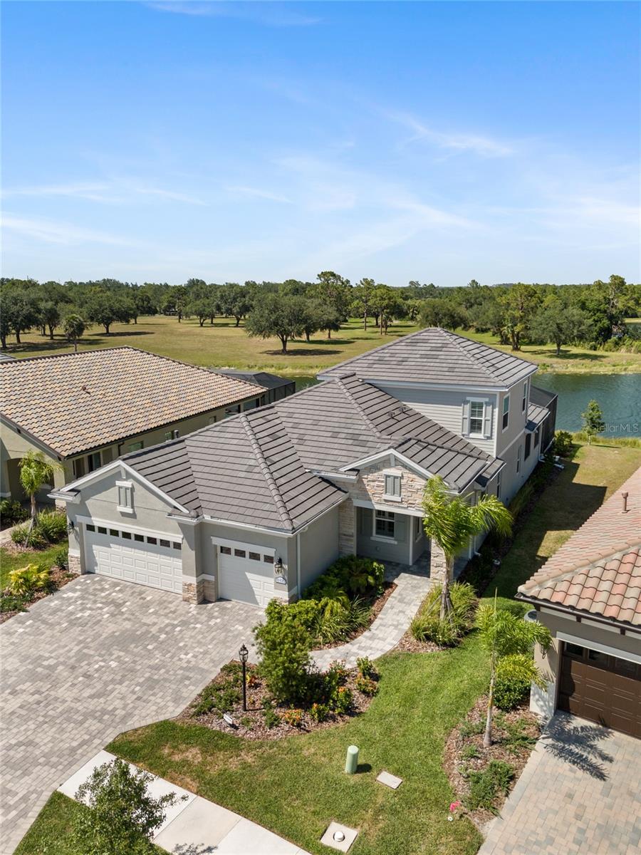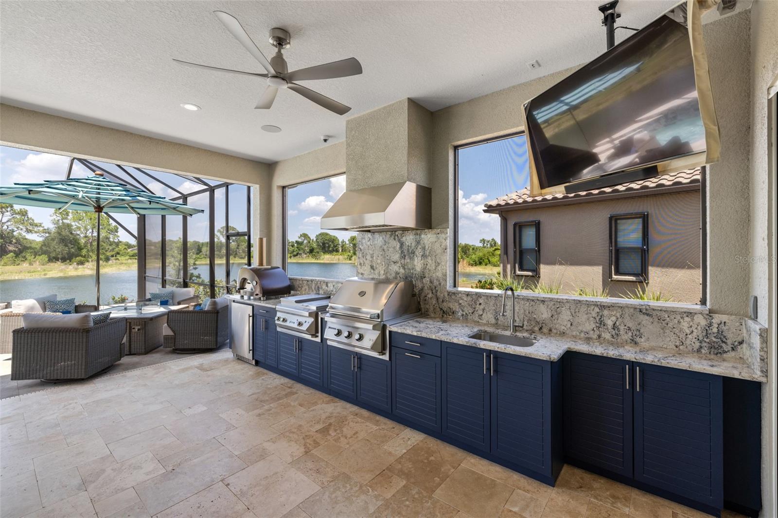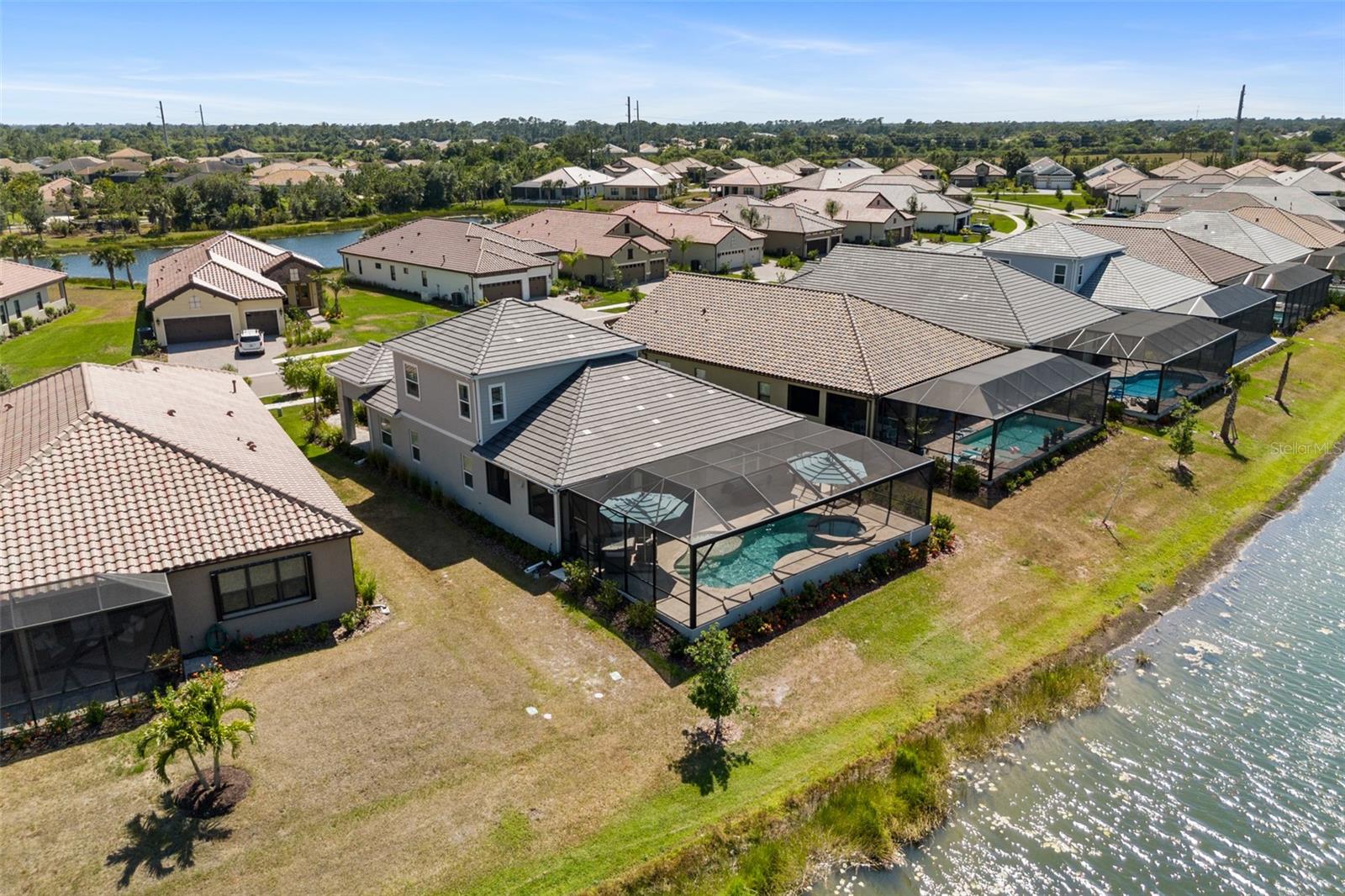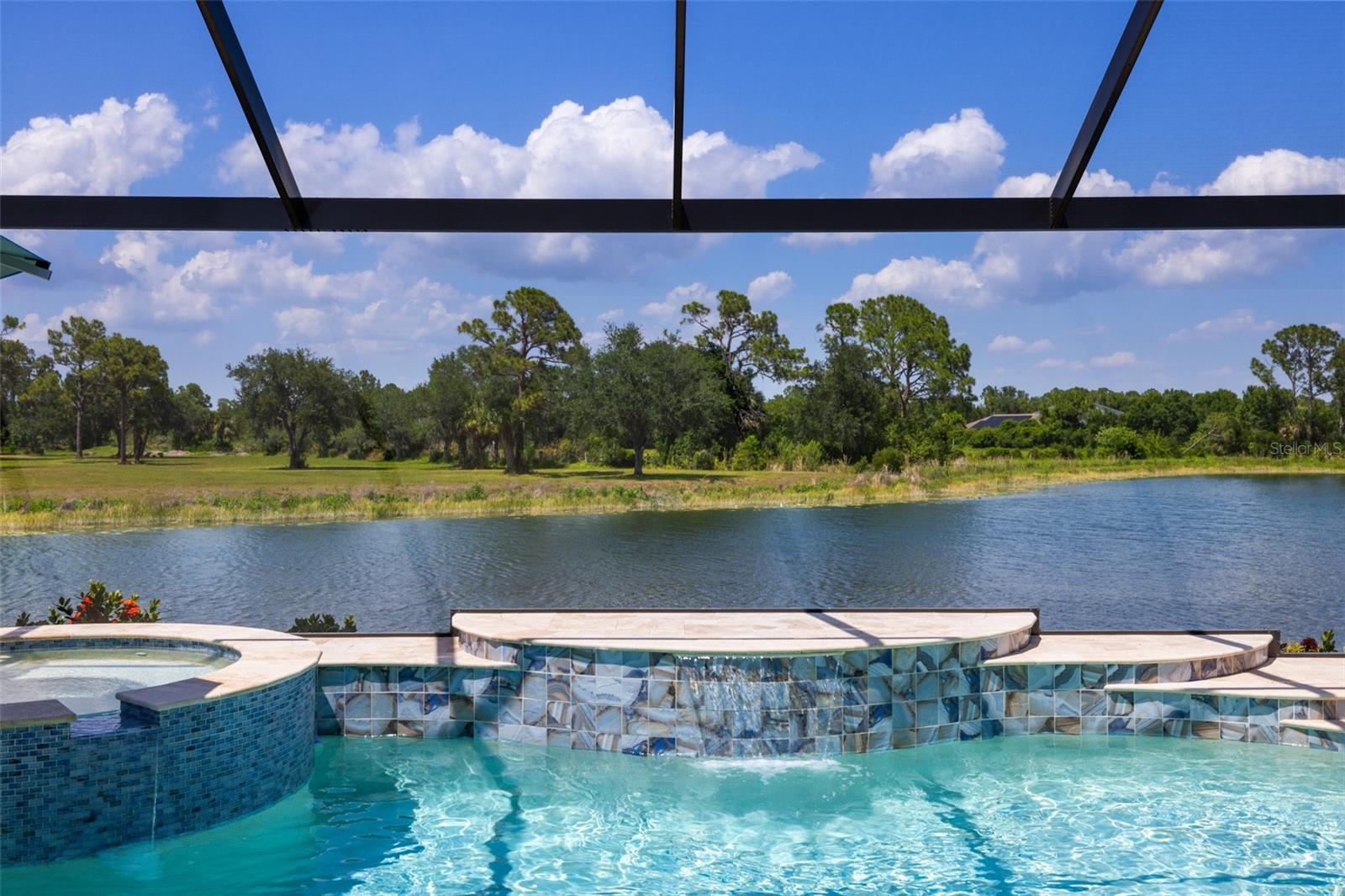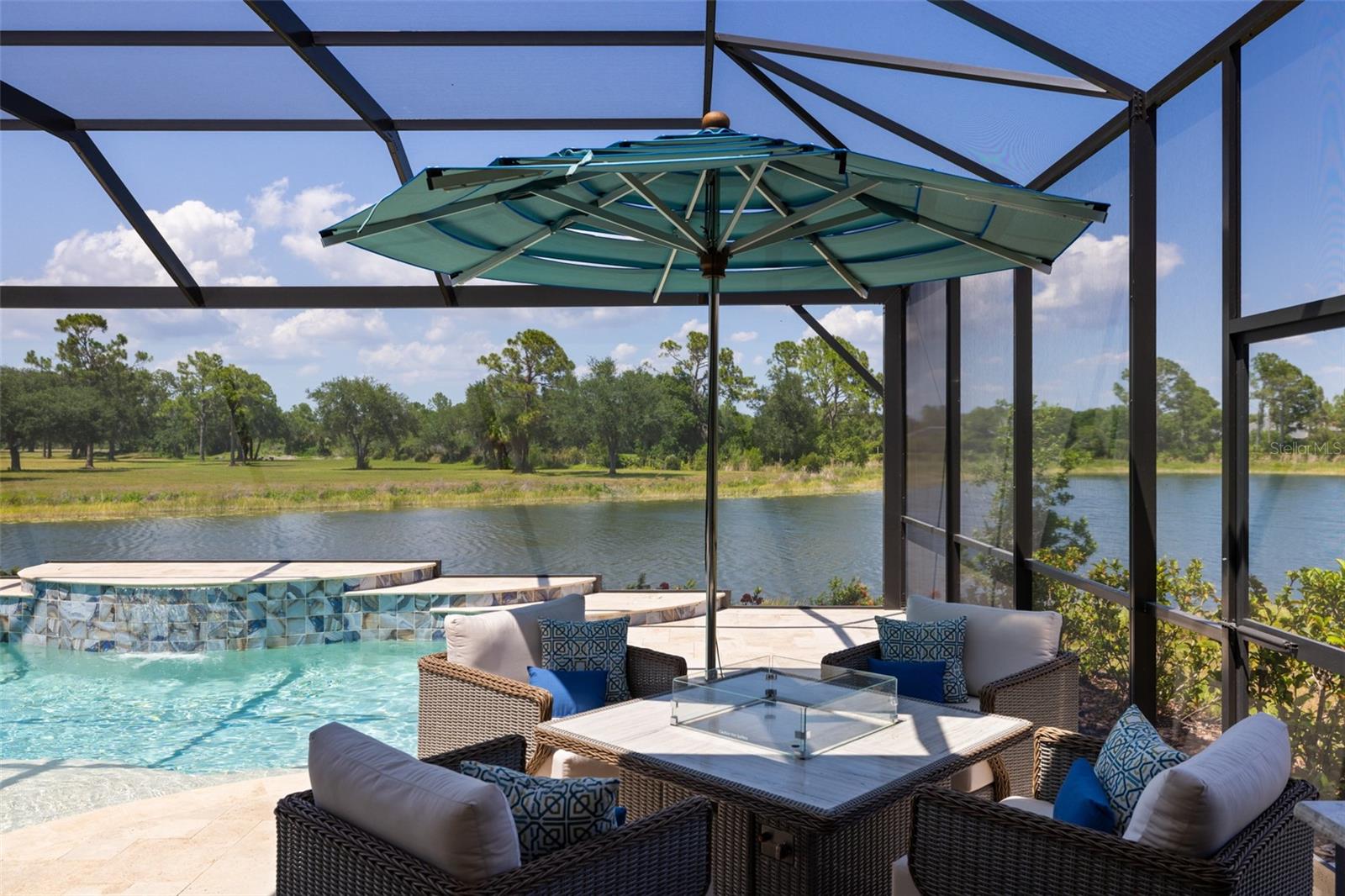 Stunning 4-bedroom, 3.5-bath luxury home with exquisite features on premium waterfront lot, IMPACT HURRICANE WINDOWS upstairs, and scenic lake views in Venice, Florida. Built in 2023, this 3,156 sqft residence in the amenity-filled GRAND PALM neighborhood combines comfort and modern luxury. Featuring 10-FOOT CEILINGS and 8-FOOT TALL INTERIOR DOORS throughout. The GOURMET CHEF’S KITCHEN boasts ceiling-high cabinets with integrated lighting, quartz countertops, an apron front basin sink, vacuum dust pan, and high-end white GE CAFE appliances. The spacious living room is pre-wired for a ceiling fan, has floor outlets, and a SURROUND SOUND system integrated into the ceiling. All windows feature PLANTATION SHUTTERS, while sliding doors to the lanai have electric roll-down blinds. Step outside to your private lanai with a luxury OUTDOOR KITCHEN featuring a Twin Eagles Gas Grill with Infrared Rotisserie, Smoker Box, Beverage fridge, Italian Alfa Pizza Oven, Twin Eagle Breakfast Cooktop, and granite countertops/backsplash, all overlooking a HEATED SALTWATER POOL & SPA, sun shelf, and waterfall, framed by a CLEARVIEW PANORAMIC SCREEN for unobstructed LAKE VIEWS. The Primary Suite on the main floor offers plantation shutters, USB outlets, and an ensuite bath with quartz countertops, square sinks, and a whisper-quiet exhaust fan. Additional bedrooms have luxury vinyl flooring, walk-in closets, and share a Jack and Jill bath. A dedicated OFFICE/DEN features CAT 6 internet plugs and USB outlets. The SECONDARY ENSUITE upstairs includes IMPACT WINDOWS (no shutters needed), a walk-in closet, and a bonus room with a dry bar and space for a beverage fridge. The 3-CAR GARAGE has outlets for a fridge, golf cart, and electric car charging, plus ULTRA-QUIET smart door openers. This home is equipped with a WHOLE-HOME VACUUM system, CAT6 throughout, quiet exhaust fans in all bathrooms, external in-wall PEST CONTROL TUBES, media air cleaner, UV AIR PURIFIER, indoor/outdoor SPEAKERS, and a security system with cameras. GRAND PALM offers luxurious amenities, including pools, fitness center, pickleball, tennis courts, and scenic trails. Conveniently located near Wellen Park and beaches. Sports fans will love the proximity to the Atlanta Braves spring training stadium. (Washer/Dryer and Living/Kitchen/Dining/Guest Bedroom pendants/chandeliers not included in sale.)