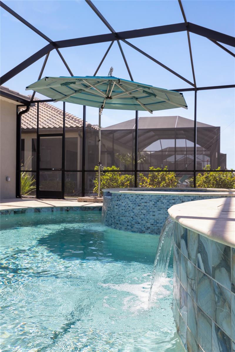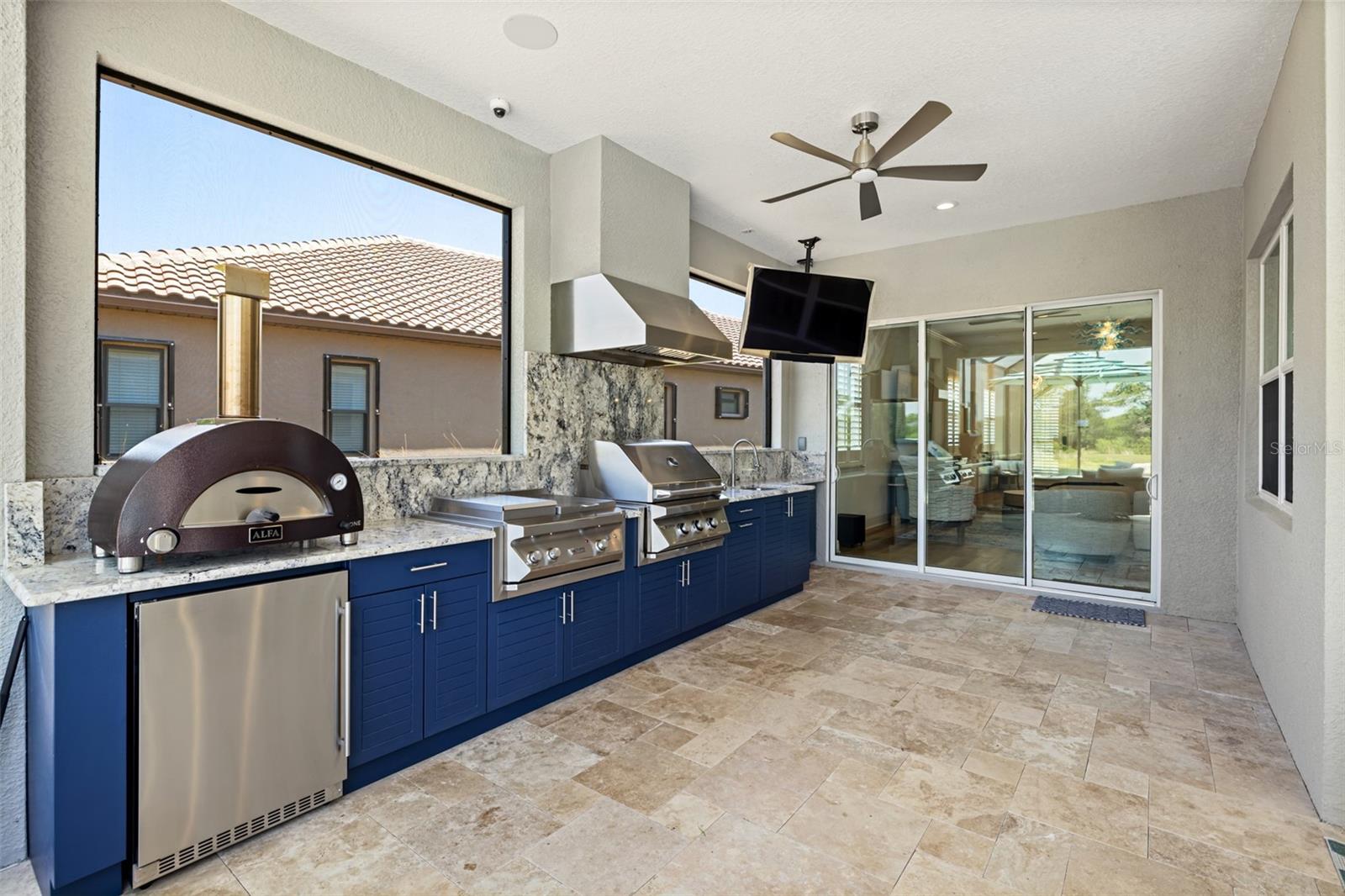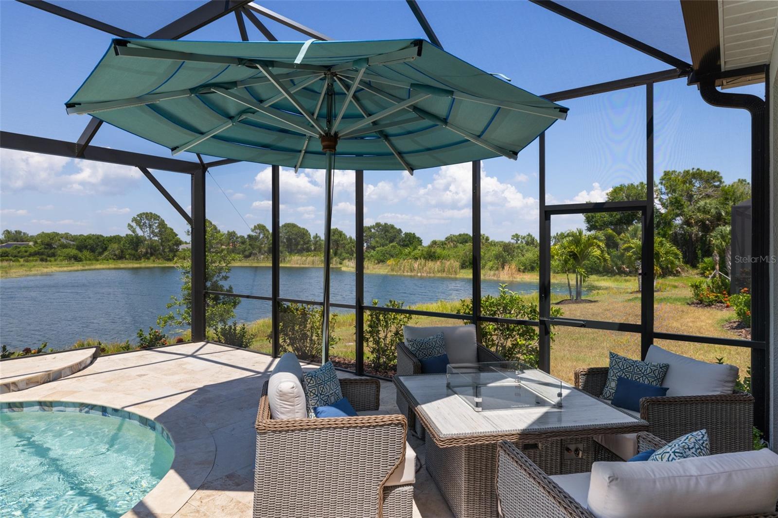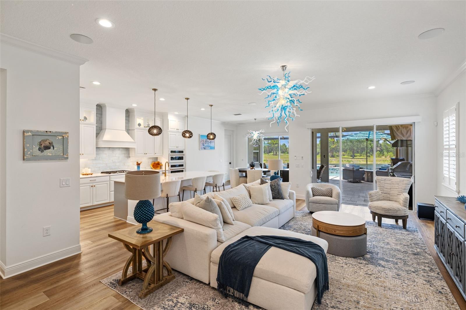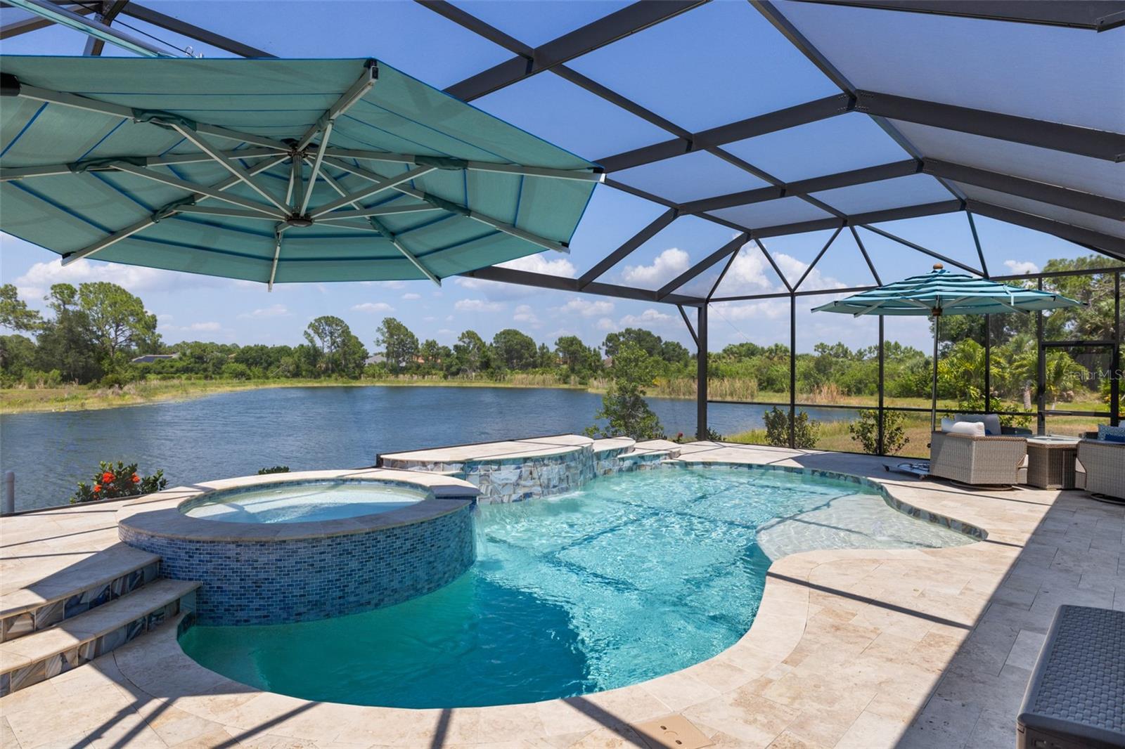 Stunning 4-bedroom, 3.5-bath luxury home with exquisite features on premium waterfront lot, IMPACT HURRICANE WINDOWS upstairs, and scenic lake views in Venice, Florida. Built in 2023, this 3,156 sqft residence in the amenity-filled GRAND PALM neighborhood combines comfort and modern luxury. Featuring 10-FOOT CEILINGS and 8-FOOT TALL INTERIOR DOORS throughout. The GOURMET CHEF’S KITCHEN boasts ceiling-high cabinets with integrated lighting, quartz countertops, an apron front basin sink, vacuum dust pan, and high-end white GE CAFE appliances. The spacious living room is pre-wired for a ceiling fan, has floor outlets, and a SURROUND SOUND system integrated into the ceiling. All windows feature PLANTATION SHUTTERS, while sliding doors to the lanai have electric roll-down blinds. Step outside to your private lanai with a luxury OUTDOOR KITCHEN featuring a Twin Eagles Gas Grill with Infrared Rotisserie, Smoker Box, Beverage fridge, Italian Alfa Pizza Oven, Twin Eagle Breakfast Cooktop, and granite countertops/backsplash, all overlooking a HEATED SALTWATER POOL & SPA, sun shelf, and waterfall, framed by a CLEARVIEW PANORAMIC SCREEN for unobstructed LAKE VIEWS. The Primary Suite on the main floor offers plantation shutters, USB outlets, and an ensuite bath with quartz countertops, square sinks, and a whisper-quiet exhaust fan. Additional bedrooms have luxury vinyl flooring, walk-in closets, and share a Jack and Jill bath. A dedicated OFFICE/DEN features CAT 6 internet plugs and USB outlets. The SECONDARY ENSUITE upstairs includes IMPACT WINDOWS (no shutters needed), a walk-in closet, and a bonus room with a dry bar and space for a beverage fridge. The 3-CAR GARAGE has outlets for a fridge, golf cart, and electric car charging, plus ULTRA-QUIET smart door openers. This home is equipped with a WHOLE-HOME VACUUM system, CAT6 throughout, quiet exhaust fans in all bathrooms, external in-wall PEST CONTROL TUBES, media air cleaner, UV AIR PURIFIER, indoor/outdoor SPEAKERS, and a security system with cameras. GRAND PALM offers luxurious amenities, including pools, fitness center, pickleball, tennis courts, and scenic trails. Conveniently located near Wellen Park and beaches. Sports fans will love the proximity to the Atlanta Braves spring training stadium. (Washer/Dryer and Living/Kitchen/Dining/Guest Bedroom pendants/chandeliers not included in sale.)