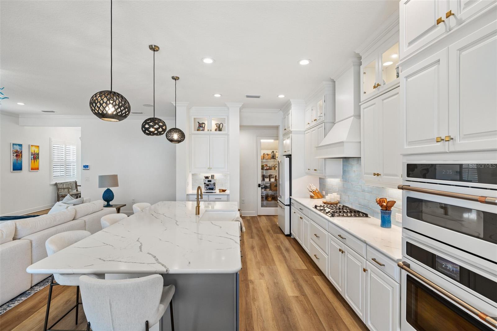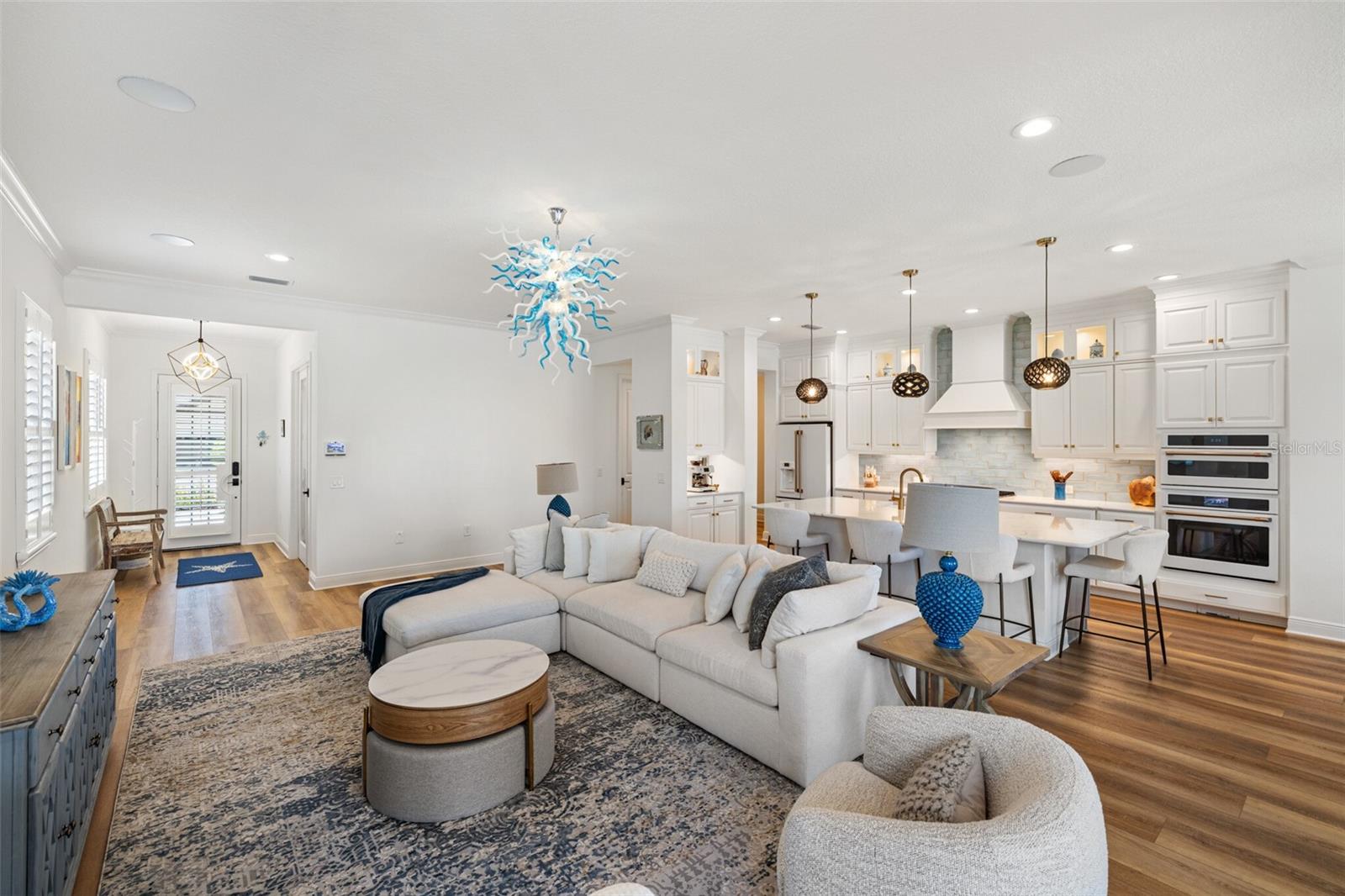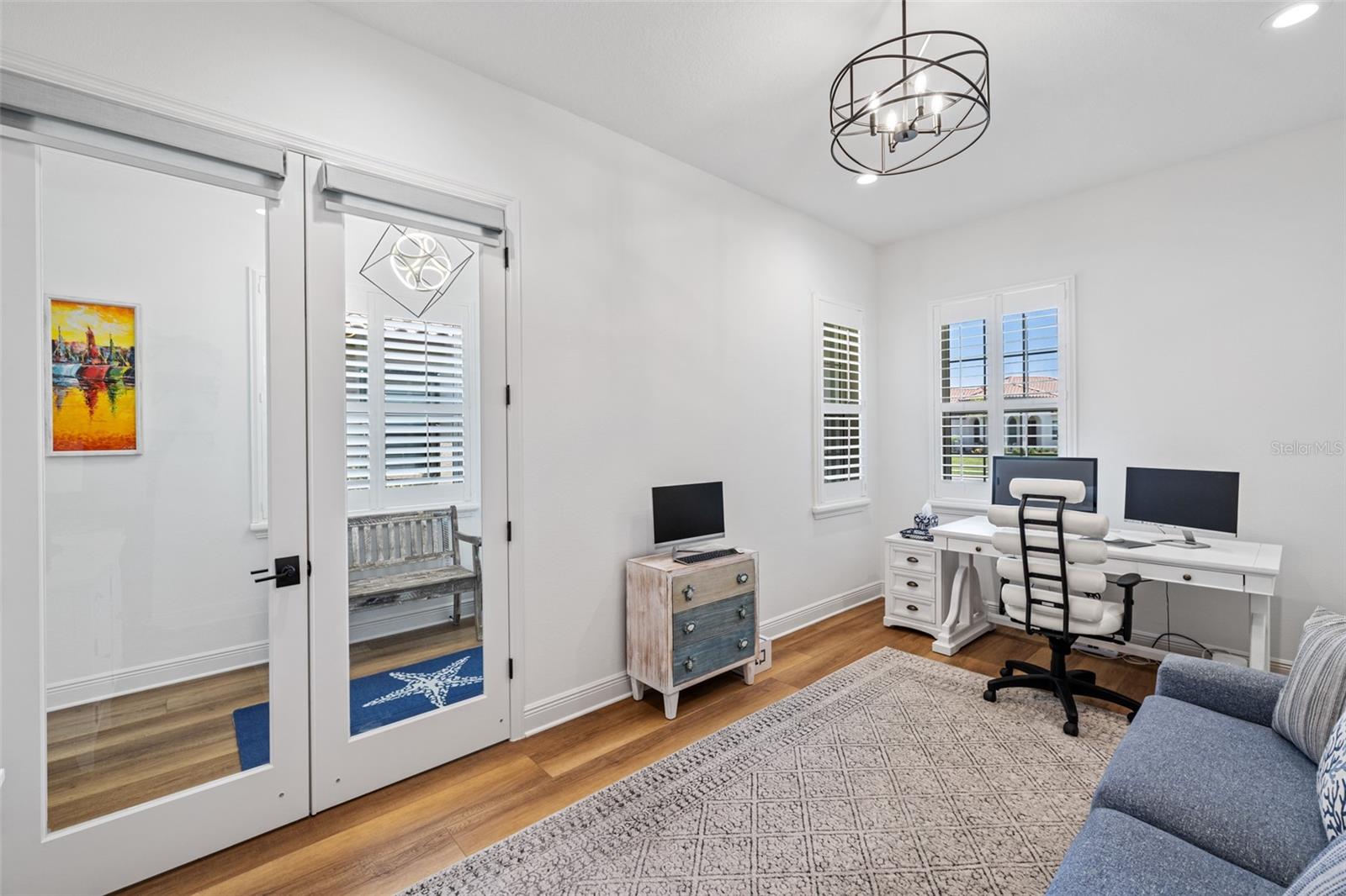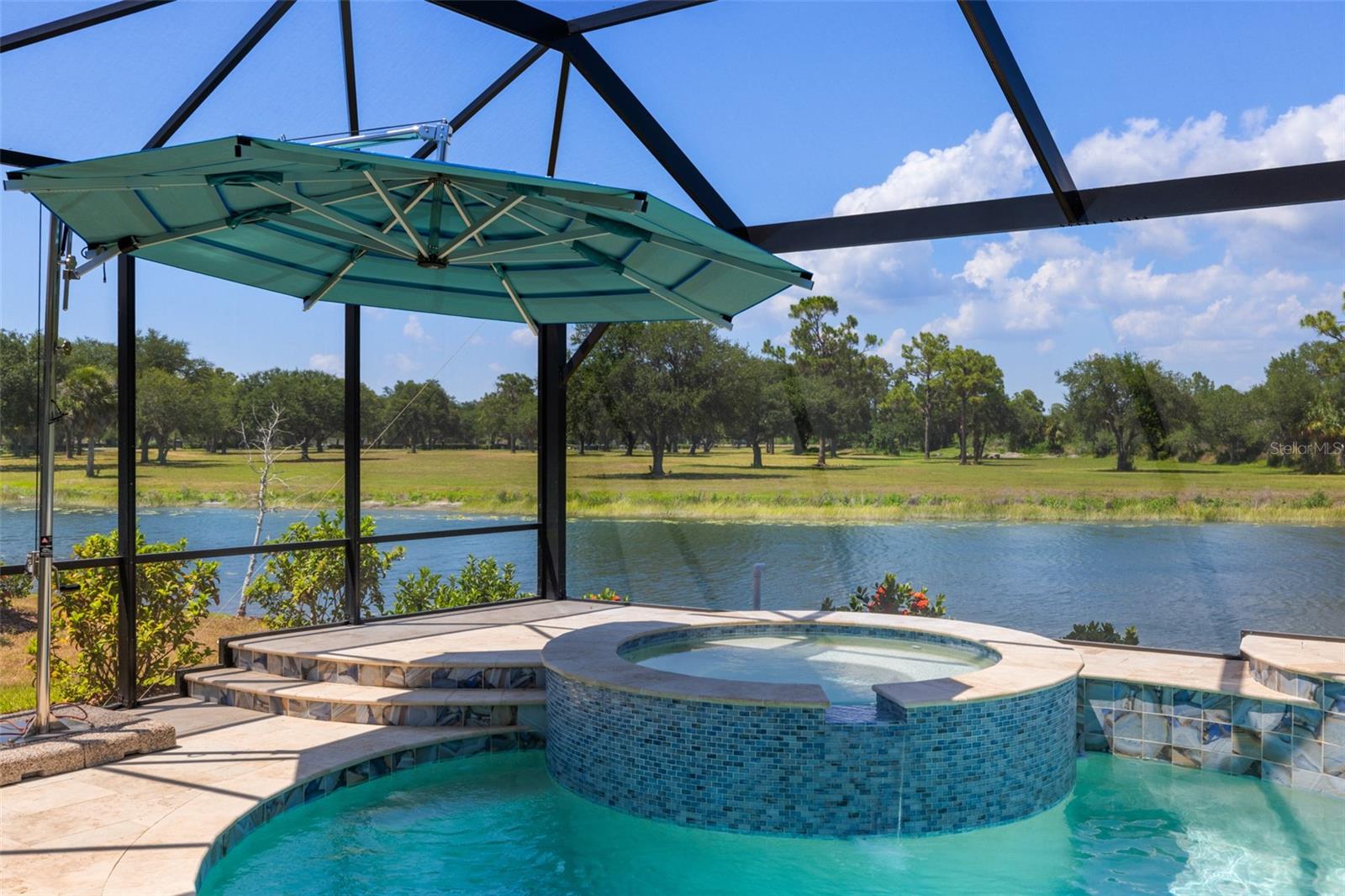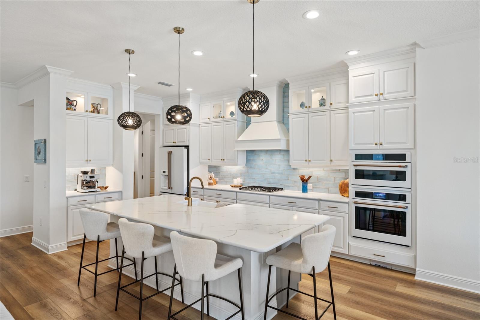 Stunning 4-bedroom, 3.5-bath luxury home with exquisite features on premium waterfront lot, IMPACT HURRICANE WINDOWS upstairs, and scenic lake views in Venice, Florida. Built in 2023, this 3,156 sqft residence in the amenity-filled GRAND PALM neighborhood combines comfort and modern luxury. Featuring 10-FOOT CEILINGS and 8-FOOT TALL INTERIOR DOORS throughout. The GOURMET CHEF’S KITCHEN boasts ceiling-high cabinets with integrated lighting, quartz countertops, an apron front basin sink, vacuum dust pan, and high-end white GE CAFE appliances. The spacious living room is pre-wired for a ceiling fan, has floor outlets, and a SURROUND SOUND system integrated into the ceiling. All windows feature PLANTATION SHUTTERS, while sliding doors to the lanai have electric roll-down blinds. Step outside to your private lanai with a luxury OUTDOOR KITCHEN featuring a Twin Eagles Gas Grill with Infrared Rotisserie, Smoker Box, Beverage fridge, Italian Alfa Pizza Oven, Twin Eagle Breakfast Cooktop, and granite countertops/backsplash, all overlooking a HEATED SALTWATER POOL & SPA, sun shelf, and waterfall, framed by a CLEARVIEW PANORAMIC SCREEN for unobstructed LAKE VIEWS. The Primary Suite on the main floor offers plantation shutters, USB outlets, and an ensuite bath with quartz countertops, square sinks, and a whisper-quiet exhaust fan. Additional bedrooms have luxury vinyl flooring, walk-in closets, and share a Jack and Jill bath. A dedicated OFFICE/DEN features CAT 6 internet plugs and USB outlets. The SECONDARY ENSUITE upstairs includes IMPACT WINDOWS (no shutters needed), a walk-in closet, and a bonus room with a dry bar and space for a beverage fridge. The 3-CAR GARAGE has outlets for a fridge, golf cart, and electric car charging, plus ULTRA-QUIET smart door openers. This home is equipped with a WHOLE-HOME VACUUM system, CAT6 throughout, quiet exhaust fans in all bathrooms, external in-wall PEST CONTROL TUBES, media air cleaner, UV AIR PURIFIER, indoor/outdoor SPEAKERS, and a security system with cameras. GRAND PALM offers luxurious amenities, including pools, fitness center, pickleball, tennis courts, and scenic trails. Conveniently located near Wellen Park and beaches. Sports fans will love the proximity to the Atlanta Braves spring training stadium. (Washer/Dryer and Living/Kitchen/Dining/Guest Bedroom pendants/chandeliers not included in sale.)