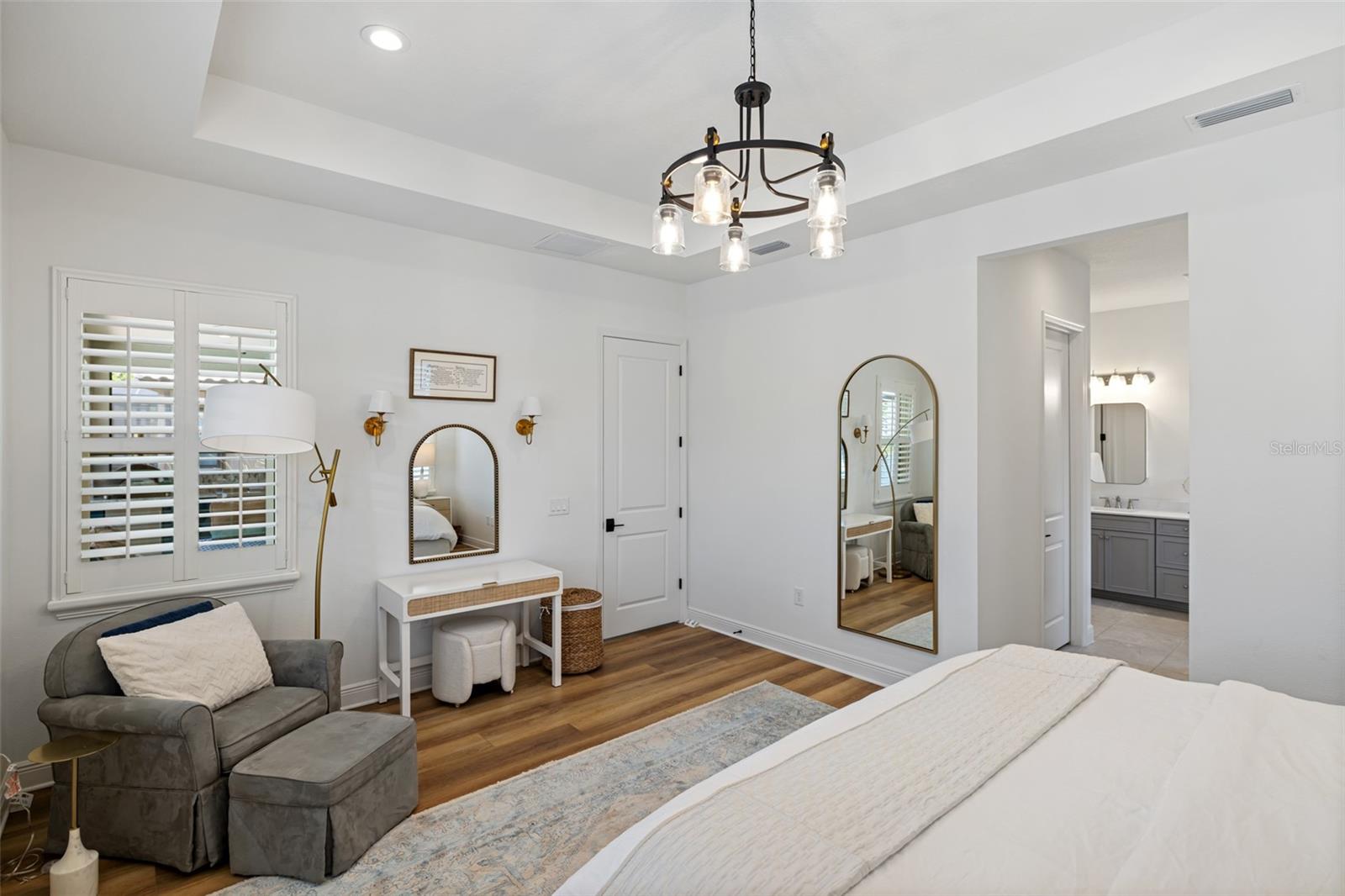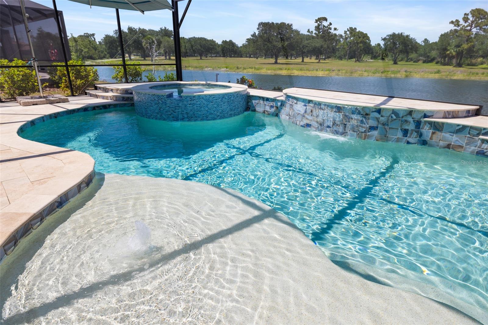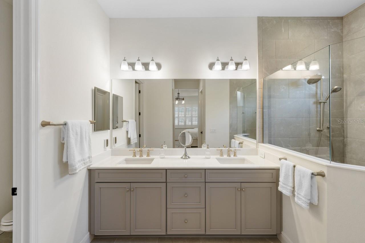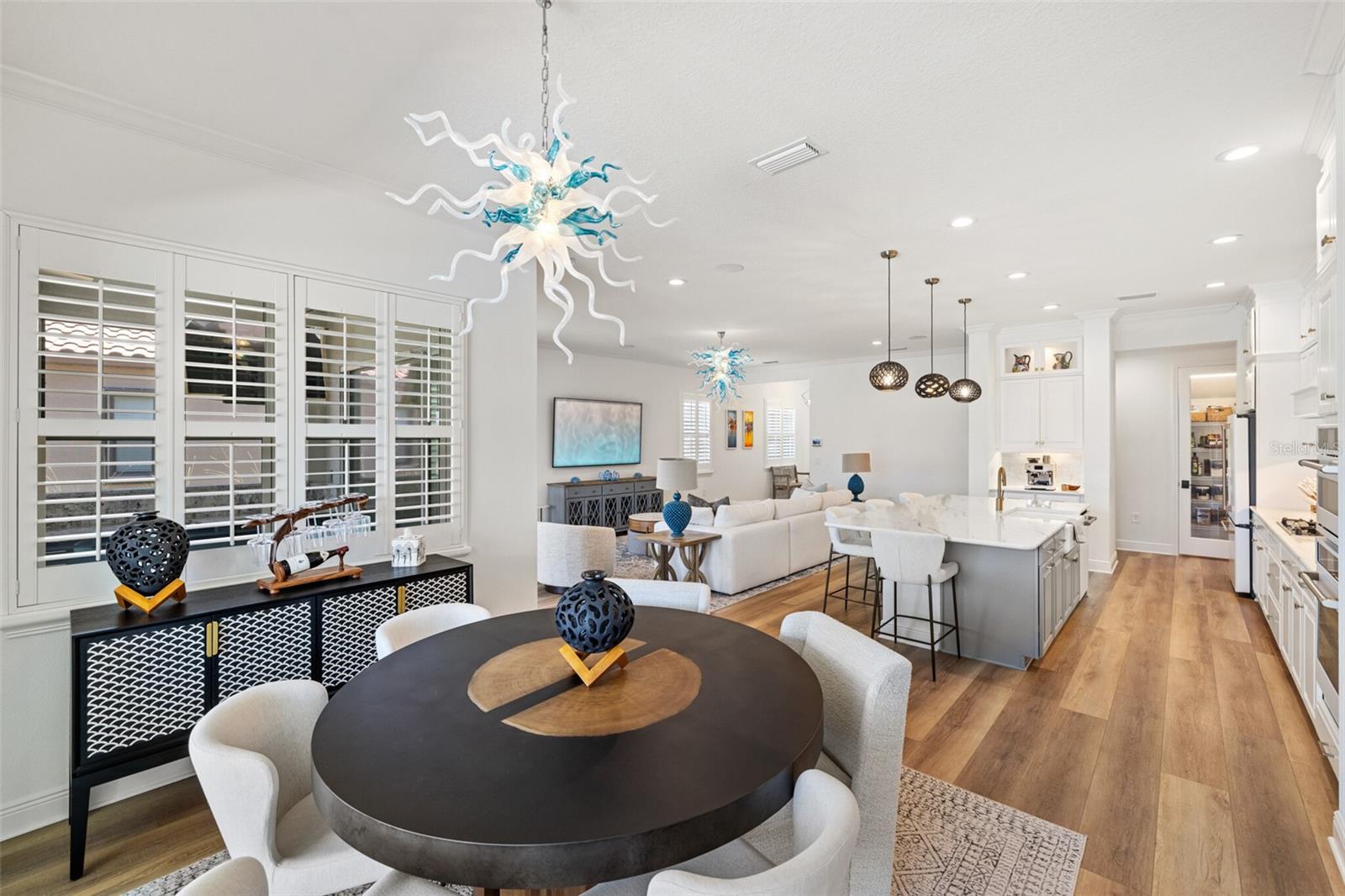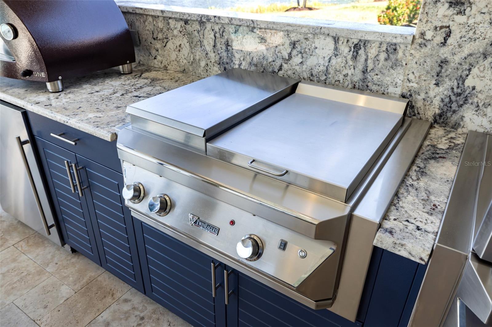 Stunning 4-bedroom, 3.5-bath luxury home with exquisite features on premium waterfront lot, IMPACT HURRICANE WINDOWS upstairs, and scenic lake views in Venice, Florida. Built in 2023, this 3,156 sqft residence in the amenity-filled GRAND PALM neighborhood combines comfort and modern luxury. Featuring 10-FOOT CEILINGS and 8-FOOT TALL INTERIOR DOORS throughout. The GOURMET CHEF’S KITCHEN boasts ceiling-high cabinets with integrated lighting, quartz countertops, an apron front basin sink, vacuum dust pan, and high-end white GE CAFE appliances. The spacious living room is pre-wired for a ceiling fan, has floor outlets, and a SURROUND SOUND system integrated into the ceiling. All windows feature PLANTATION SHUTTERS, while sliding doors to the lanai have electric roll-down blinds. Step outside to your private lanai with a luxury OUTDOOR KITCHEN featuring a Twin Eagles Gas Grill with Infrared Rotisserie, Smoker Box, Beverage fridge, Italian Alfa Pizza Oven, Twin Eagle Breakfast Cooktop, and granite countertops/backsplash, all overlooking a HEATED SALTWATER POOL & SPA, sun shelf, and waterfall, framed by a CLEARVIEW PANORAMIC SCREEN for unobstructed LAKE VIEWS. The Primary Suite on the main floor offers plantation shutters, USB outlets, and an ensuite bath with quartz countertops, square sinks, and a whisper-quiet exhaust fan. Additional bedrooms have luxury vinyl flooring, walk-in closets, and share a Jack and Jill bath. A dedicated OFFICE/DEN features CAT 6 internet plugs and USB outlets. The SECONDARY ENSUITE upstairs includes IMPACT WINDOWS (no shutters needed), a walk-in closet, and a bonus room with a dry bar and space for a beverage fridge. The 3-CAR GARAGE has outlets for a fridge, golf cart, and electric car charging, plus ULTRA-QUIET smart door openers. This home is equipped with a WHOLE-HOME VACUUM system, CAT6 throughout, quiet exhaust fans in all bathrooms, external in-wall PEST CONTROL TUBES, media air cleaner, UV AIR PURIFIER, indoor/outdoor SPEAKERS, and a security system with cameras. GRAND PALM offers luxurious amenities, including pools, fitness center, pickleball, tennis courts, and scenic trails. Conveniently located near Wellen Park and beaches. Sports fans will love the proximity to the Atlanta Braves spring training stadium. (Washer/Dryer and Living/Kitchen/Dining/Guest Bedroom pendants/chandeliers not included in sale.)