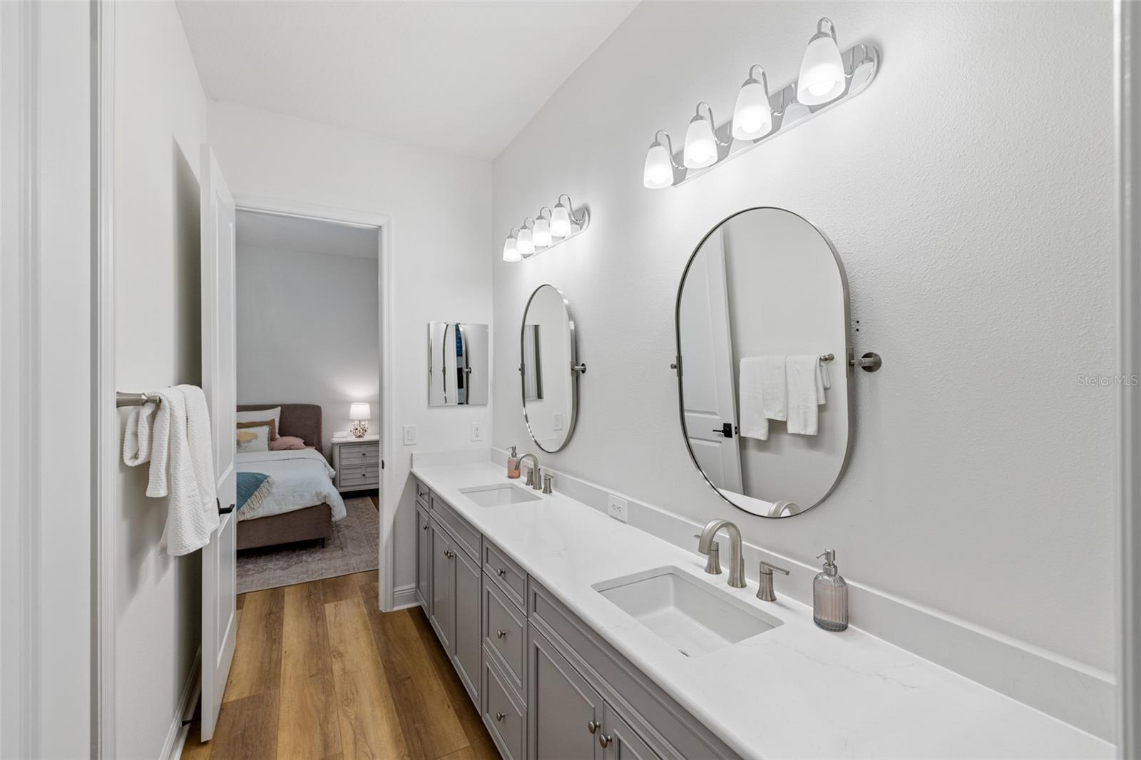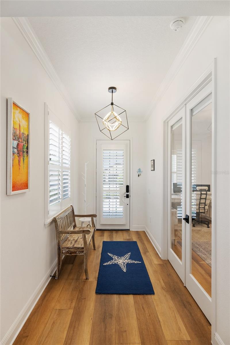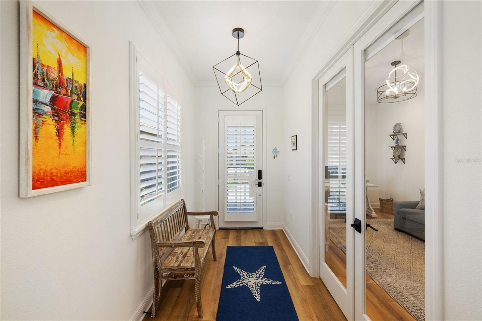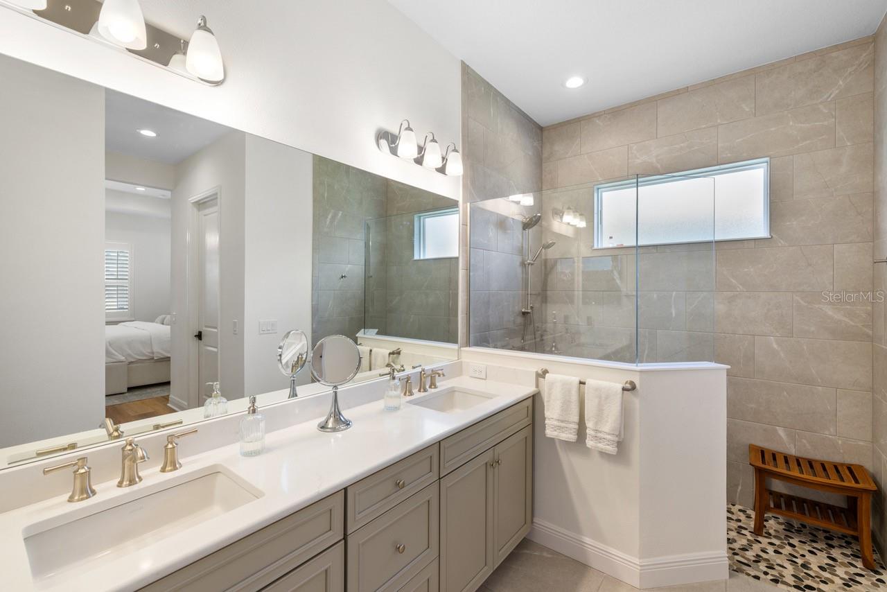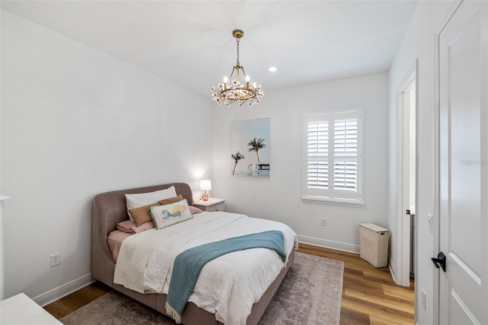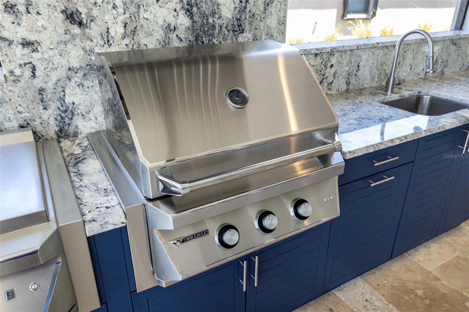 Stunning 4-bedroom, 3.5-bath luxury home with exquisite features on premium waterfront lot, IMPACT HURRICANE WINDOWS upstairs, and scenic lake views in Venice, Florida. Built in 2023, this 3,156 sqft residence in the amenity-filled GRAND PALM neighborhood combines comfort and modern luxury. Featuring 10-FOOT CEILINGS and 8-FOOT TALL INTERIOR DOORS throughout. The GOURMET CHEF’S KITCHEN boasts ceiling-high cabinets with integrated lighting, quartz countertops, an apron front basin sink, vacuum dust pan, and high-end white GE CAFE appliances. The spacious living room is pre-wired for a ceiling fan, has floor outlets, and a SURROUND SOUND system integrated into the ceiling. All windows feature PLANTATION SHUTTERS, while sliding doors to the lanai have electric roll-down blinds. Step outside to your private lanai with a luxury OUTDOOR KITCHEN featuring a Twin Eagles Gas Grill with Infrared Rotisserie, Smoker Box, Beverage fridge, Italian Alfa Pizza Oven, Twin Eagle Breakfast Cooktop, and granite countertops/backsplash, all overlooking a HEATED SALTWATER POOL & SPA, sun shelf, and waterfall, framed by a CLEARVIEW PANORAMIC SCREEN for unobstructed LAKE VIEWS. The Primary Suite on the main floor offers plantation shutters, USB outlets, and an ensuite bath with quartz countertops, square sinks, and a whisper-quiet exhaust fan. Additional bedrooms have luxury vinyl flooring, walk-in closets, and share a Jack and Jill bath. A dedicated OFFICE/DEN features CAT 6 internet plugs and USB outlets. The SECONDARY ENSUITE upstairs includes IMPACT WINDOWS (no shutters needed), a walk-in closet, and a bonus room with a dry bar and space for a beverage fridge. The 3-CAR GARAGE has outlets for a fridge, golf cart, and electric car charging, plus ULTRA-QUIET smart door openers. This home is equipped with a WHOLE-HOME VACUUM system, CAT6 throughout, quiet exhaust fans in all bathrooms, external in-wall PEST CONTROL TUBES, media air cleaner, UV AIR PURIFIER, indoor/outdoor SPEAKERS, and a security system with cameras. GRAND PALM offers luxurious amenities, including pools, fitness center, pickleball, tennis courts, and scenic trails. Conveniently located near Wellen Park and beaches. Sports fans will love the proximity to the Atlanta Braves spring training stadium. (Washer/Dryer and Living/Kitchen/Dining/Guest Bedroom pendants/chandeliers not included in sale.)