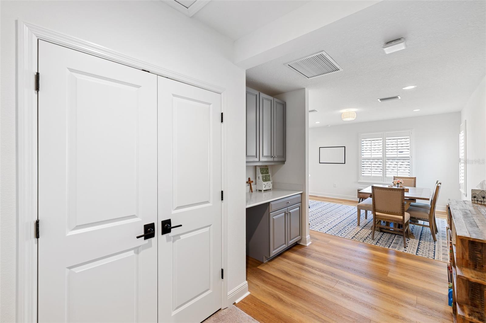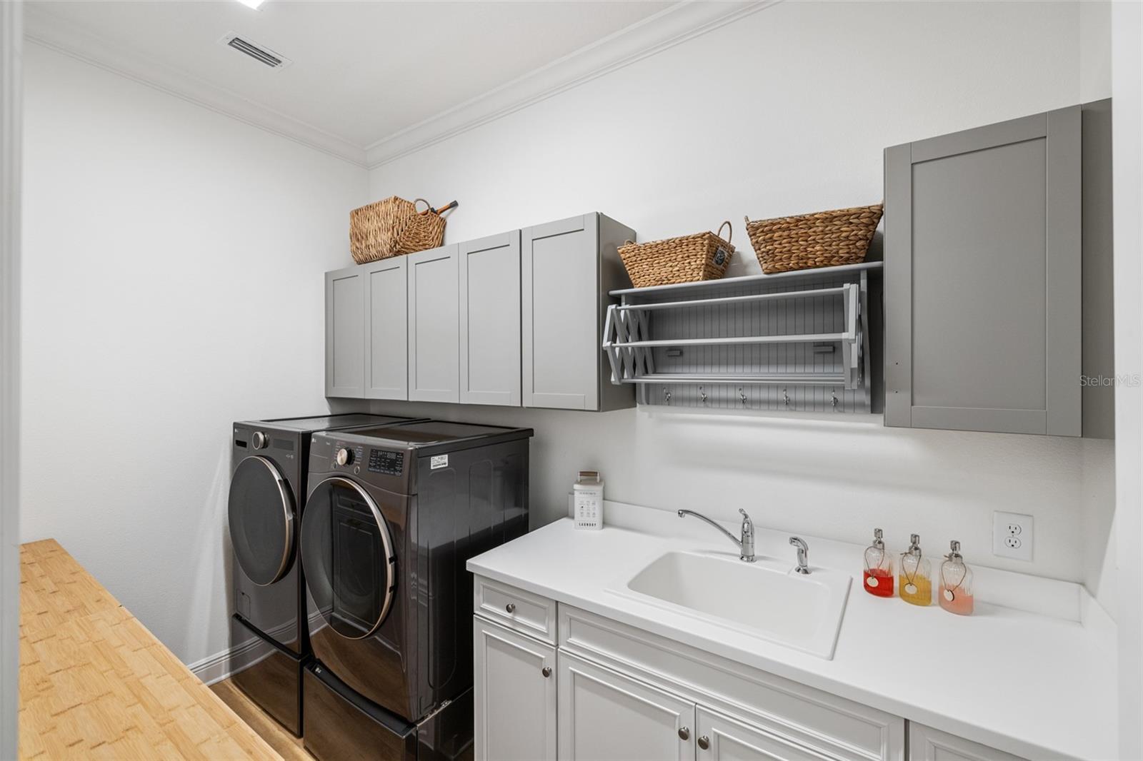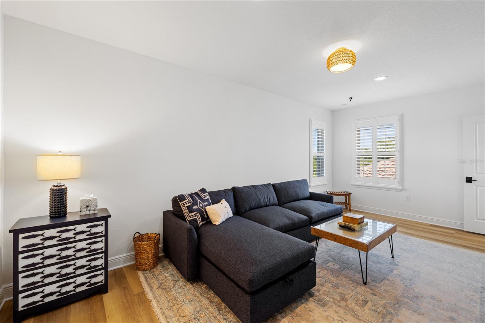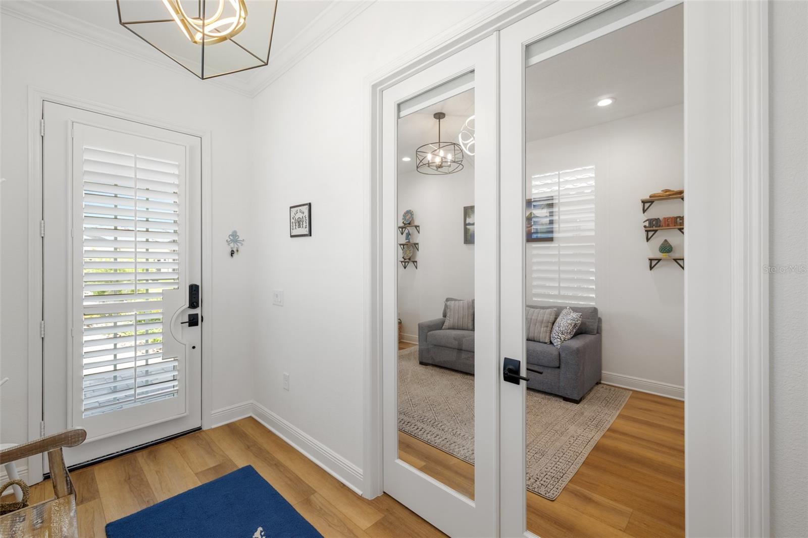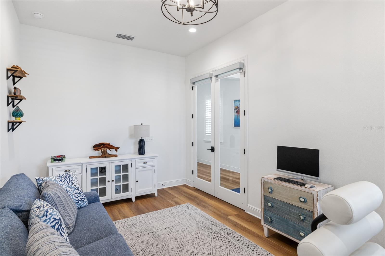 Stunning 4-bedroom, 3.5-bath luxury home with exquisite features on premium waterfront lot, IMPACT HURRICANE WINDOWS upstairs, and scenic lake views in Venice, Florida. Built in 2023, this 3,156 sqft residence in the amenity-filled GRAND PALM neighborhood combines comfort and modern luxury. Featuring 10-FOOT CEILINGS and 8-FOOT TALL INTERIOR DOORS throughout. The GOURMET CHEF’S KITCHEN boasts ceiling-high cabinets with integrated lighting, quartz countertops, an apron front basin sink, vacuum dust pan, and high-end white GE CAFE appliances. The spacious living room is pre-wired for a ceiling fan, has floor outlets, and a SURROUND SOUND system integrated into the ceiling. All windows feature PLANTATION SHUTTERS, while sliding doors to the lanai have electric roll-down blinds. Step outside to your private lanai with a luxury OUTDOOR KITCHEN featuring a Twin Eagles Gas Grill with Infrared Rotisserie, Smoker Box, Beverage fridge, Italian Alfa Pizza Oven, Twin Eagle Breakfast Cooktop, and granite countertops/backsplash, all overlooking a HEATED SALTWATER POOL & SPA, sun shelf, and waterfall, framed by a CLEARVIEW PANORAMIC SCREEN for unobstructed LAKE VIEWS. The Primary Suite on the main floor offers plantation shutters, USB outlets, and an ensuite bath with quartz countertops, square sinks, and a whisper-quiet exhaust fan. Additional bedrooms have luxury vinyl flooring, walk-in closets, and share a Jack and Jill bath. A dedicated OFFICE/DEN features CAT 6 internet plugs and USB outlets. The SECONDARY ENSUITE upstairs includes IMPACT WINDOWS (no shutters needed), a walk-in closet, and a bonus room with a dry bar and space for a beverage fridge. The 3-CAR GARAGE has outlets for a fridge, golf cart, and electric car charging, plus ULTRA-QUIET smart door openers. This home is equipped with a WHOLE-HOME VACUUM system, CAT6 throughout, quiet exhaust fans in all bathrooms, external in-wall PEST CONTROL TUBES, media air cleaner, UV AIR PURIFIER, indoor/outdoor SPEAKERS, and a security system with cameras. GRAND PALM offers luxurious amenities, including pools, fitness center, pickleball, tennis courts, and scenic trails. Conveniently located near Wellen Park and beaches. Sports fans will love the proximity to the Atlanta Braves spring training stadium. (Washer/Dryer and Living/Kitchen/Dining/Guest Bedroom pendants/chandeliers not included in sale.)