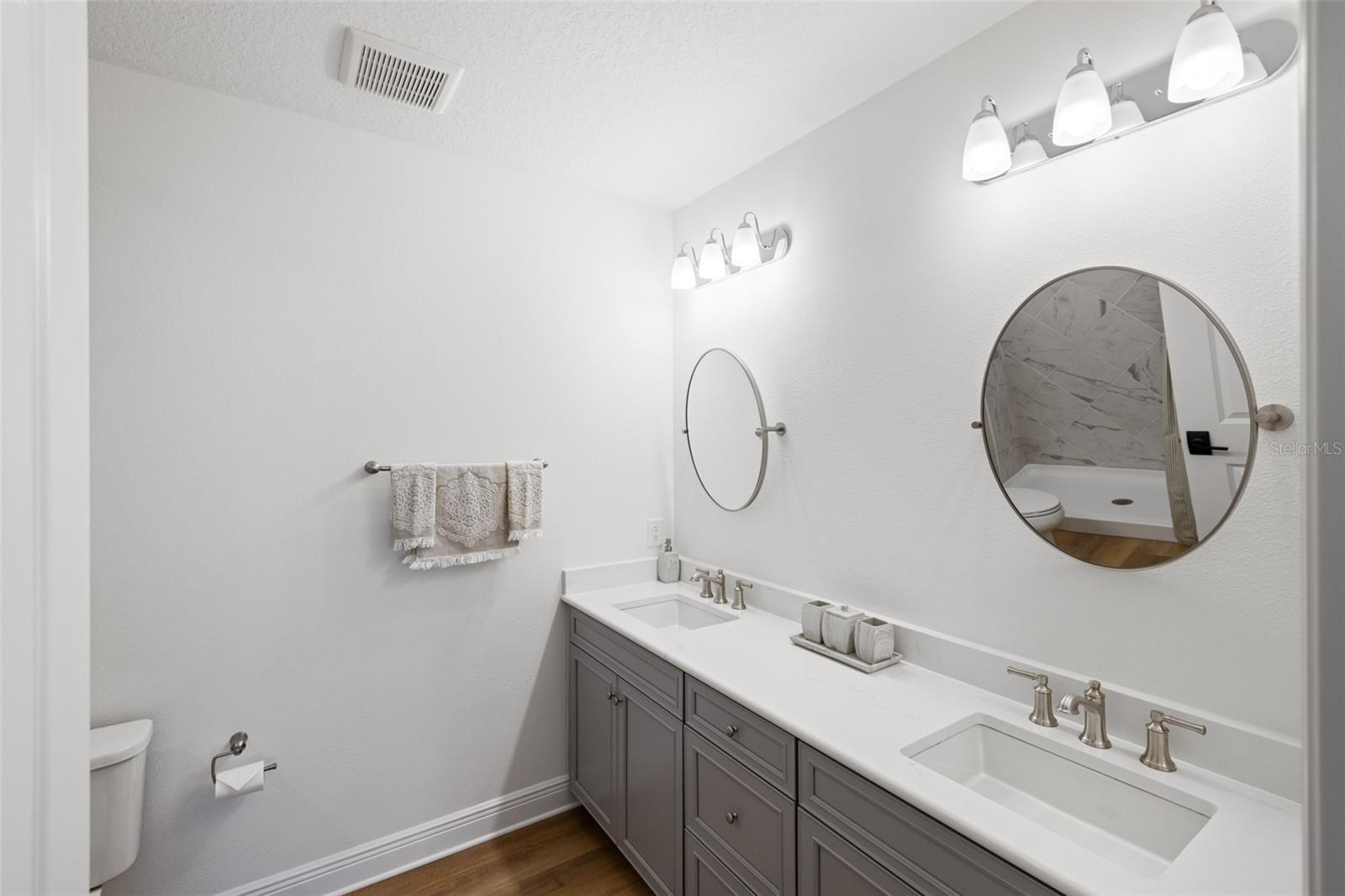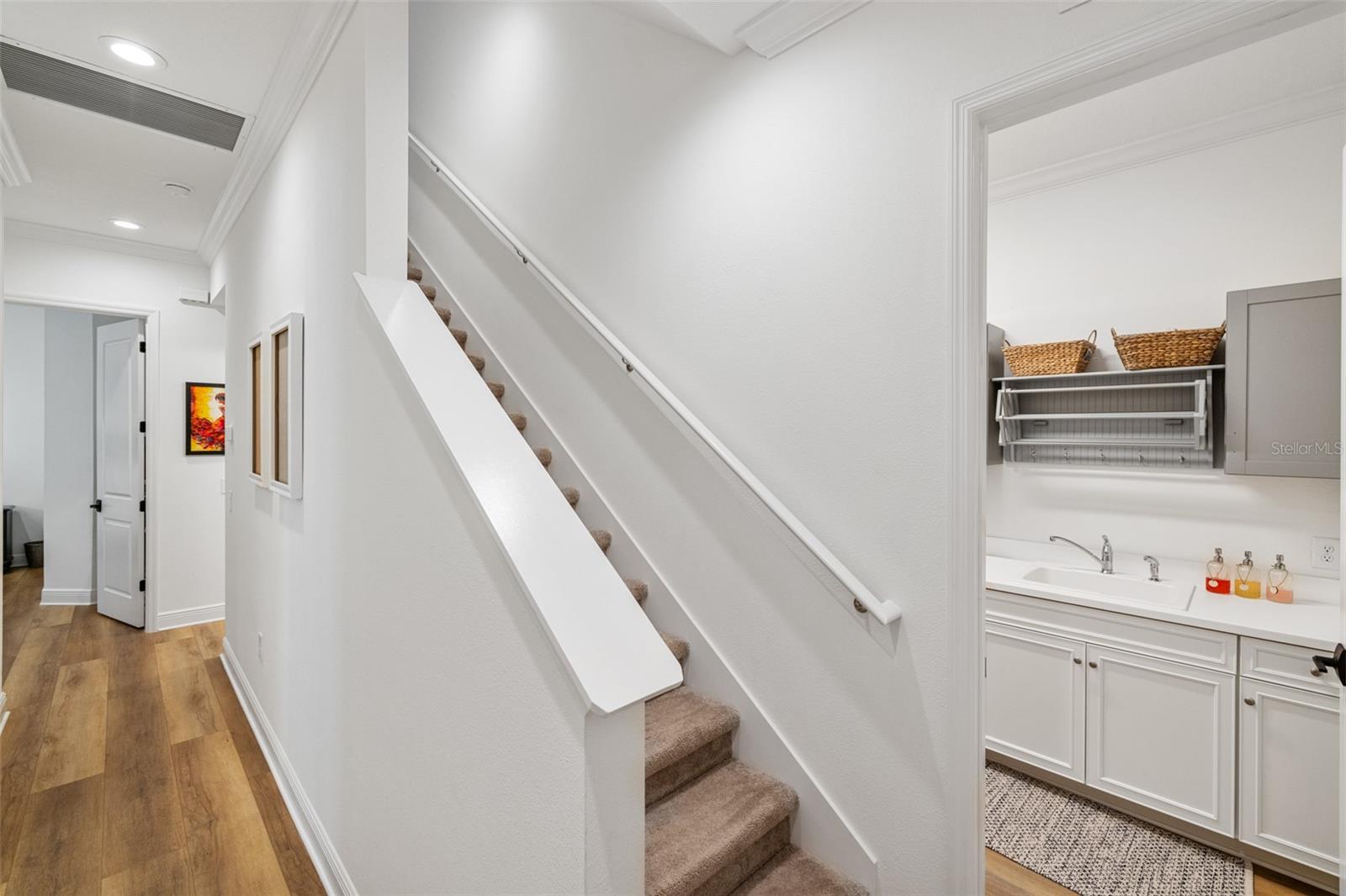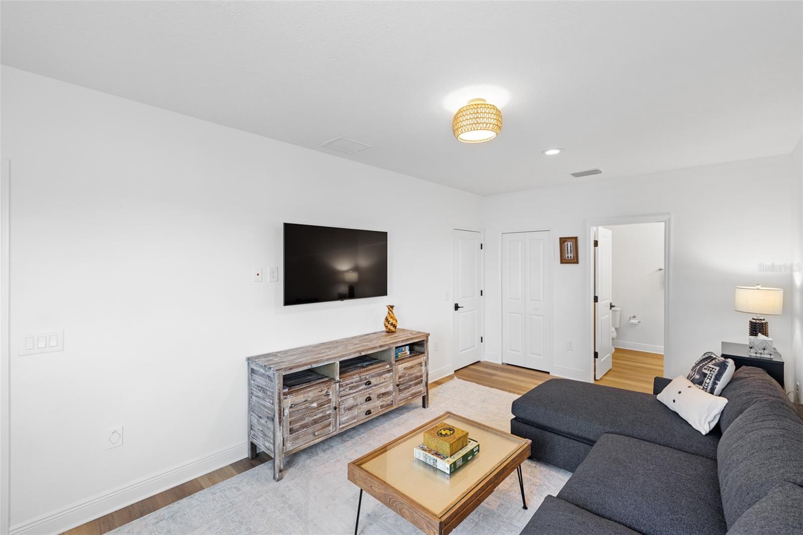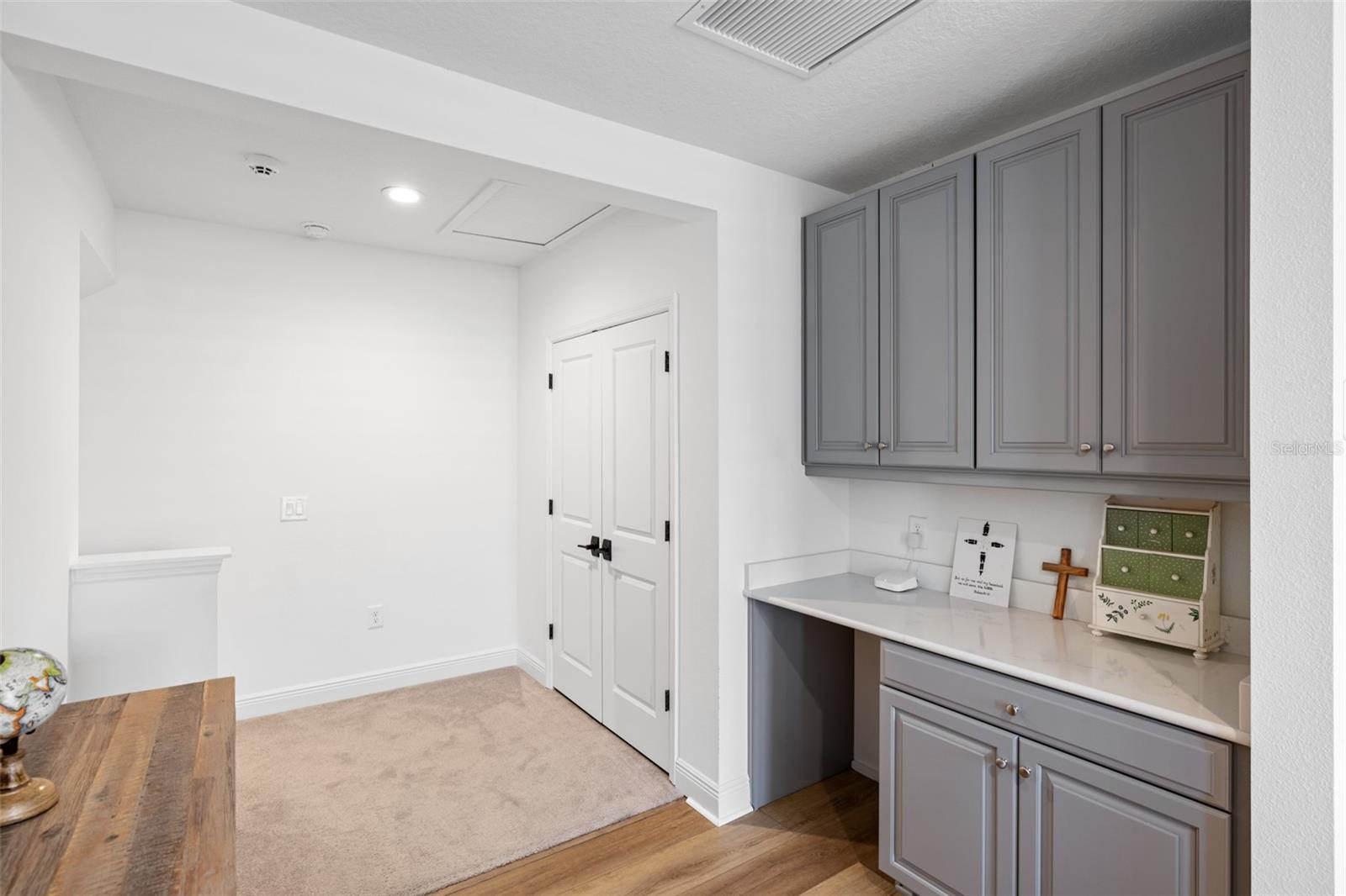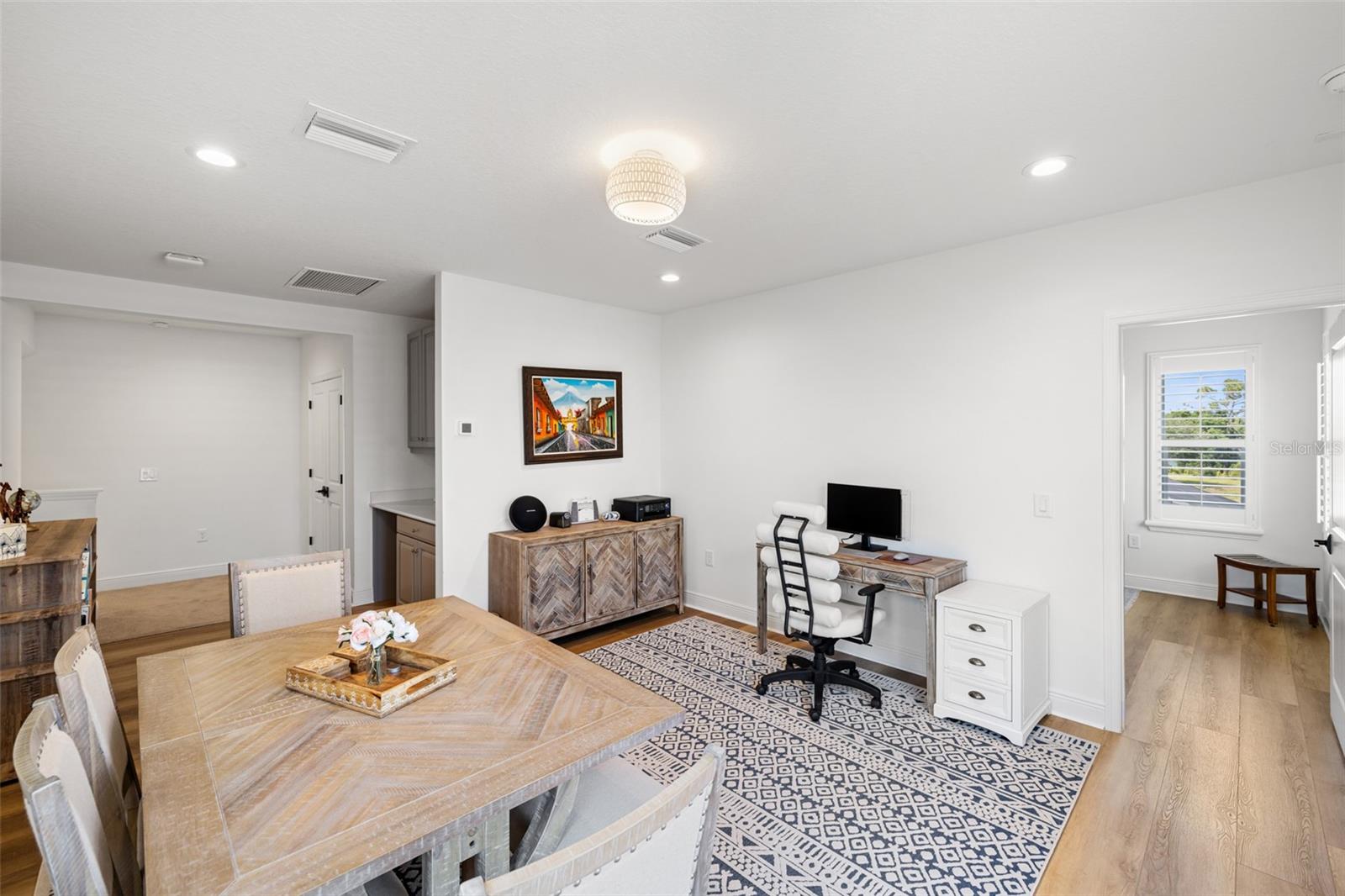 Stunning 4-bedroom, 3.5-bath luxury home with exquisite features on premium waterfront lot, IMPACT HURRICANE WINDOWS upstairs, and scenic lake views in Venice, Florida. Built in 2023, this 3,156 sqft residence in the amenity-filled GRAND PALM neighborhood combines comfort and modern luxury. Featuring 10-FOOT CEILINGS and 8-FOOT TALL INTERIOR DOORS throughout. The GOURMET CHEF’S KITCHEN boasts ceiling-high cabinets with integrated lighting, quartz countertops, an apron front basin sink, vacuum dust pan, and high-end white GE CAFE appliances. The spacious living room is pre-wired for a ceiling fan, has floor outlets, and a SURROUND SOUND system integrated into the ceiling. All windows feature PLANTATION SHUTTERS, while sliding doors to the lanai have electric roll-down blinds. Step outside to your private lanai with a luxury OUTDOOR KITCHEN featuring a Twin Eagles Gas Grill with Infrared Rotisserie, Smoker Box, Beverage fridge, Italian Alfa Pizza Oven, Twin Eagle Breakfast Cooktop, and granite countertops/backsplash, all overlooking a HEATED SALTWATER POOL & SPA, sun shelf, and waterfall, framed by a CLEARVIEW PANORAMIC SCREEN for unobstructed LAKE VIEWS. The Primary Suite on the main floor offers plantation shutters, USB outlets, and an ensuite bath with quartz countertops, square sinks, and a whisper-quiet exhaust fan. Additional bedrooms have luxury vinyl flooring, walk-in closets, and share a Jack and Jill bath. A dedicated OFFICE/DEN features CAT 6 internet plugs and USB outlets. The SECONDARY ENSUITE upstairs includes IMPACT WINDOWS (no shutters needed), a walk-in closet, and a bonus room with a dry bar and space for a beverage fridge. The 3-CAR GARAGE has outlets for a fridge, golf cart, and electric car charging, plus ULTRA-QUIET smart door openers. This home is equipped with a WHOLE-HOME VACUUM system, CAT6 throughout, quiet exhaust fans in all bathrooms, external in-wall PEST CONTROL TUBES, media air cleaner, UV AIR PURIFIER, indoor/outdoor SPEAKERS, and a security system with cameras. GRAND PALM offers luxurious amenities, including pools, fitness center, pickleball, tennis courts, and scenic trails. Conveniently located near Wellen Park and beaches. Sports fans will love the proximity to the Atlanta Braves spring training stadium. (Washer/Dryer and Living/Kitchen/Dining/Guest Bedroom pendants/chandeliers not included in sale.)