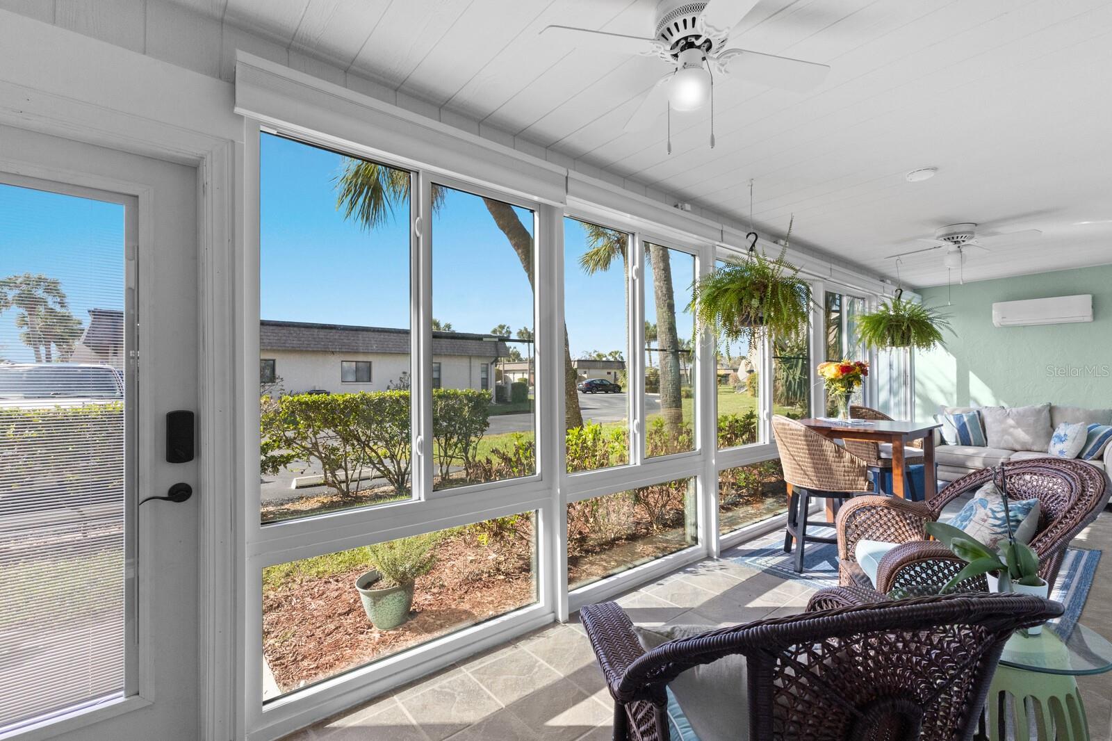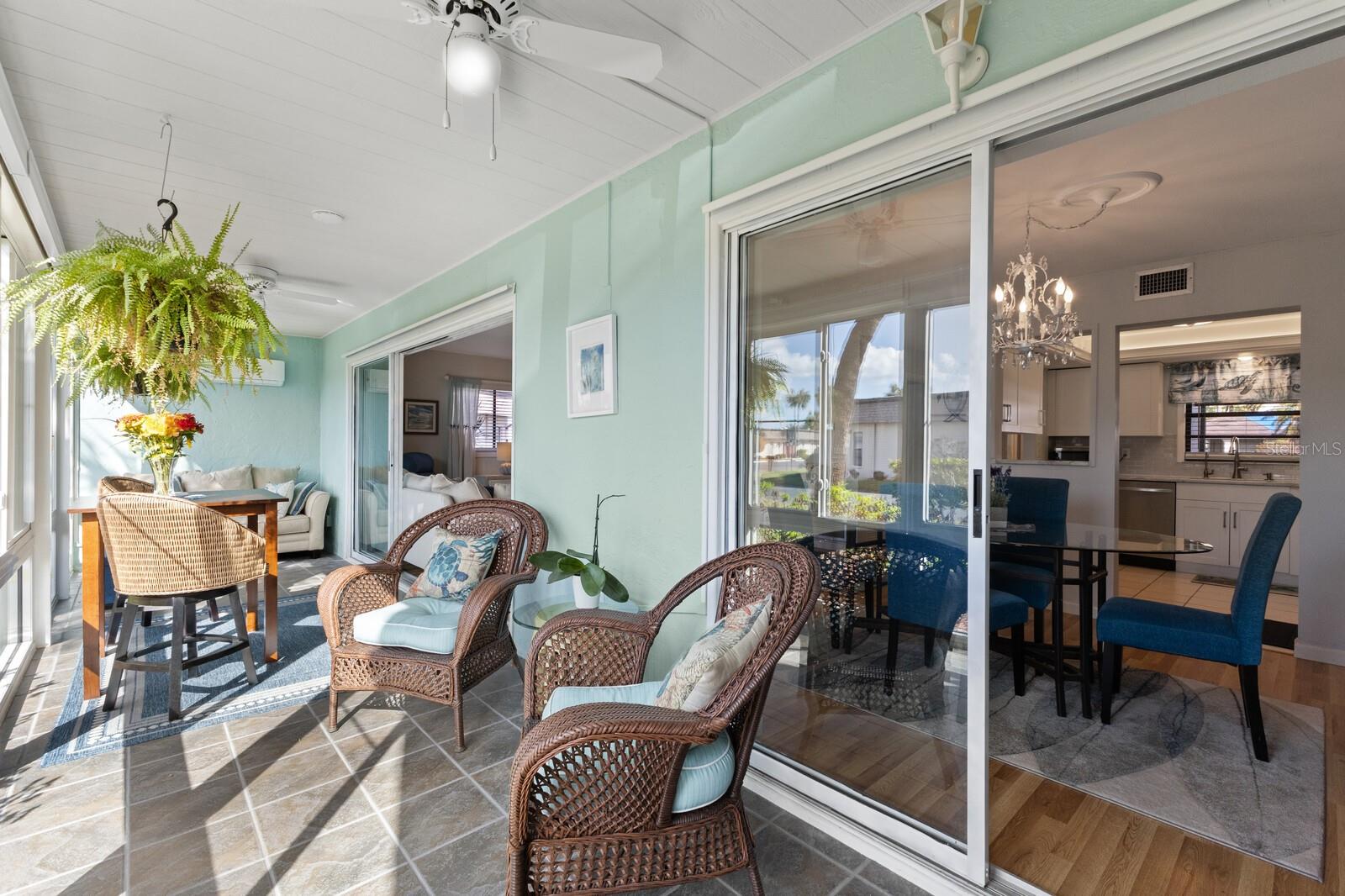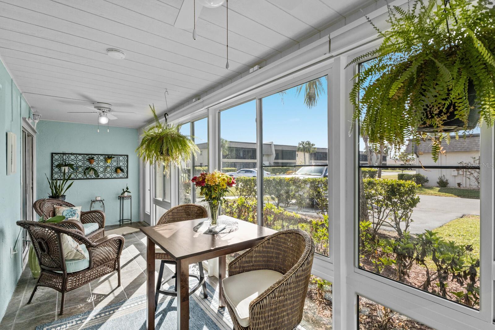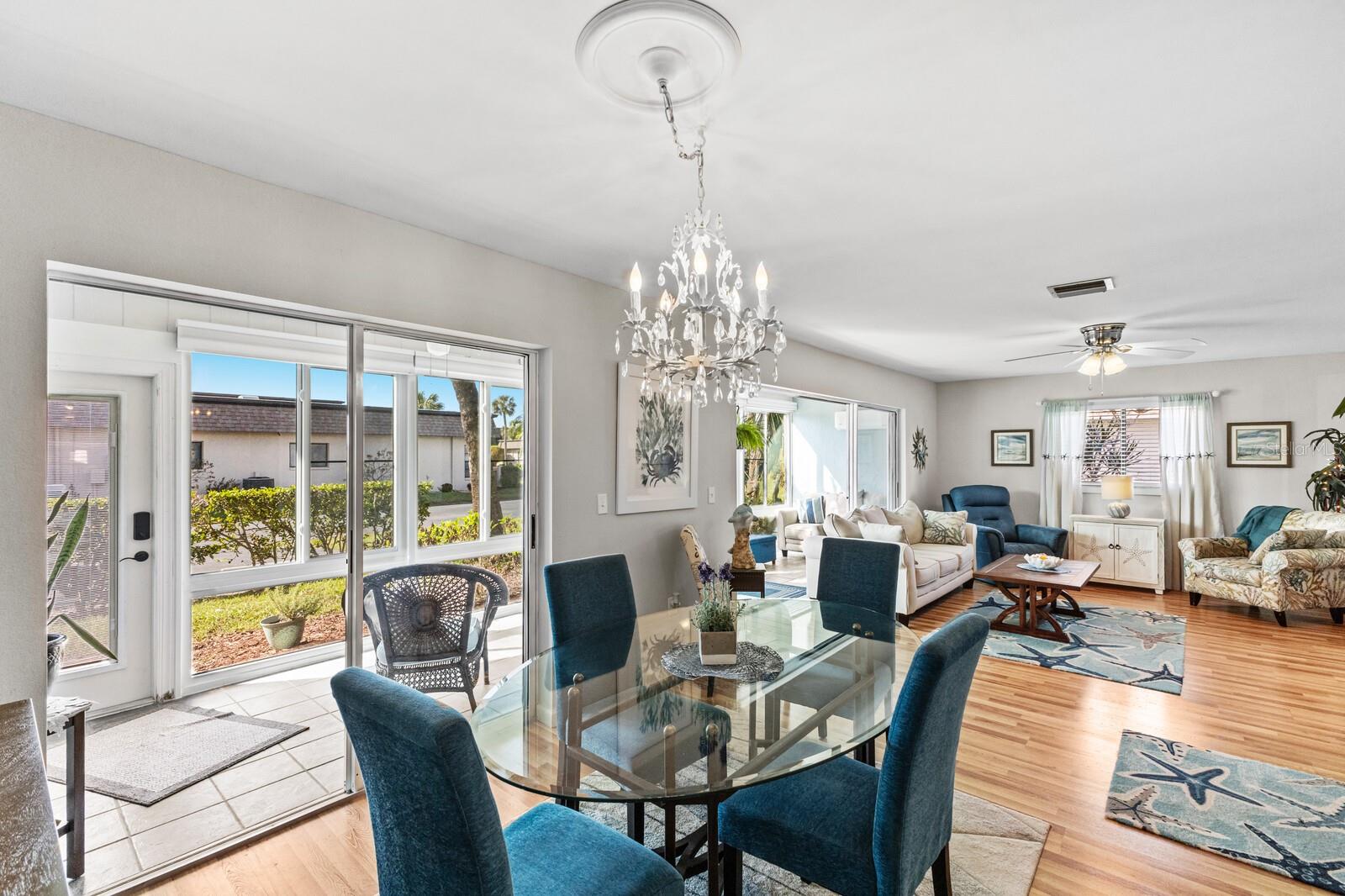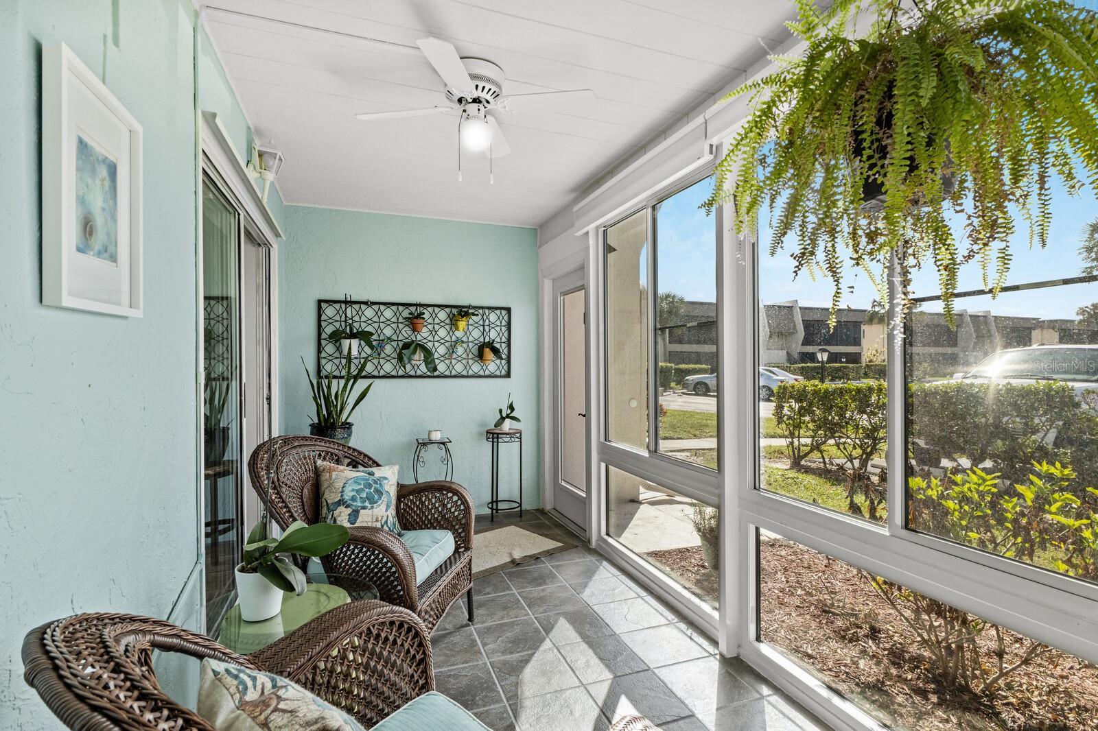 Welcome to a maintenance free upscale over 55 Venice 2 bedroom / 2 bath condominium with many upgrades situated in the peaceful sought after Villa Nova Community. This home has been carefully planned and upgraded to add ease and comfort to your daily life. With the roof recently maintained (responsibility of the association), yard mowed and trimmed, pest control, cable and trash removal, you have maintenance free living at its best. Located walking distance to the Clubhouse and pool, you are free to take a book from the ample collection in the library and relax by the pool enjoying that Florida sunshine. This tasteful condo boasts of marble countertops in the kitchen and bath, tile and manufactured wood floors thoughout, Pella glass hurricane windows (2022) on the Florida Room sliders along with mechanical electric shades and new separate Mini Split Cooper Hunter duckless efficient AC unit with humidity control and thermostat. As you drive into your new carport (2020) you enter luxury and elegance with a light bright home surrounded with hand crafted crown molding . The kitchen is outfitted with marble counters, custom backsplash, light wood cabinets, stainless steel newer appliances, soft close drawers, and a reverse osmosis system accented by the lighted recessed ceiling. The Florida Room inhales the outdoor sunshine and brightness with huge sliding glass doors. The lanai has a Milock keypad entry for safety and security. The primary bedroom is spacious and inviting with its own en suite elegant bath. This primary bath features a custom vanity, designer walk in closet, marble countertops, pebble floors in shower and fogless mirrors. The second bedroom is tastefully decorated with Hunter Douglas blinds for soft lighting, a built in closet, and manufactured wood floors. With ceiling fans in every room and tasteful flooring, this home has it all! The oversized laundry room includes an extra nook for storage, Frigidaire washer/dryer, laundry sink and shelves and cabinets. With two AC units and the ample upgrades, this home was well thought out and planned for the discerning buyer with distinguished tastes. Close to restaurants, shopping, boating, coastal beaches, quaint downtown Venice Island, the Community Center, gyms, Venice Little Theater, art studios, movie theater, walking trails, parks, this over 55 community is close to everything you could ever possibly imagine making it a perfect haven for your delight and pleasure!