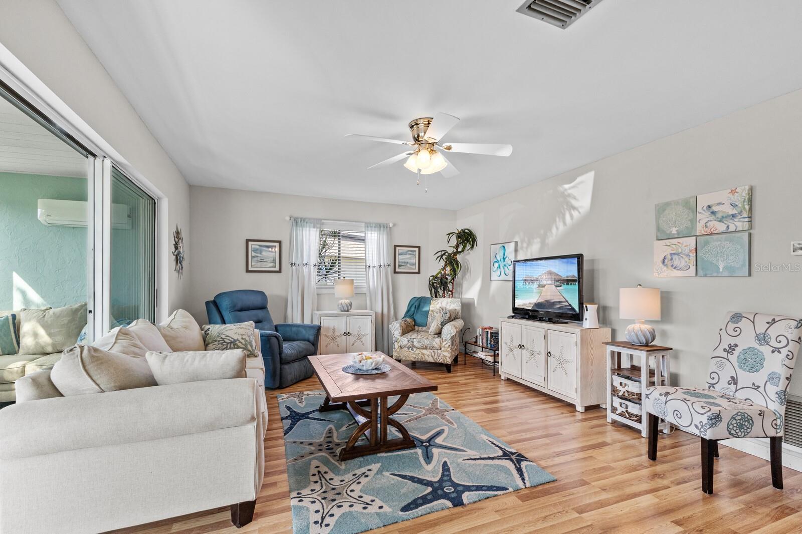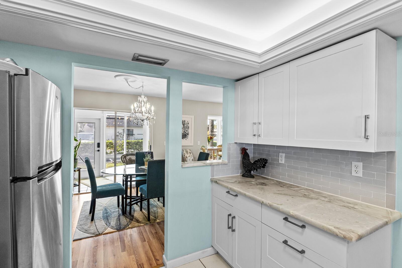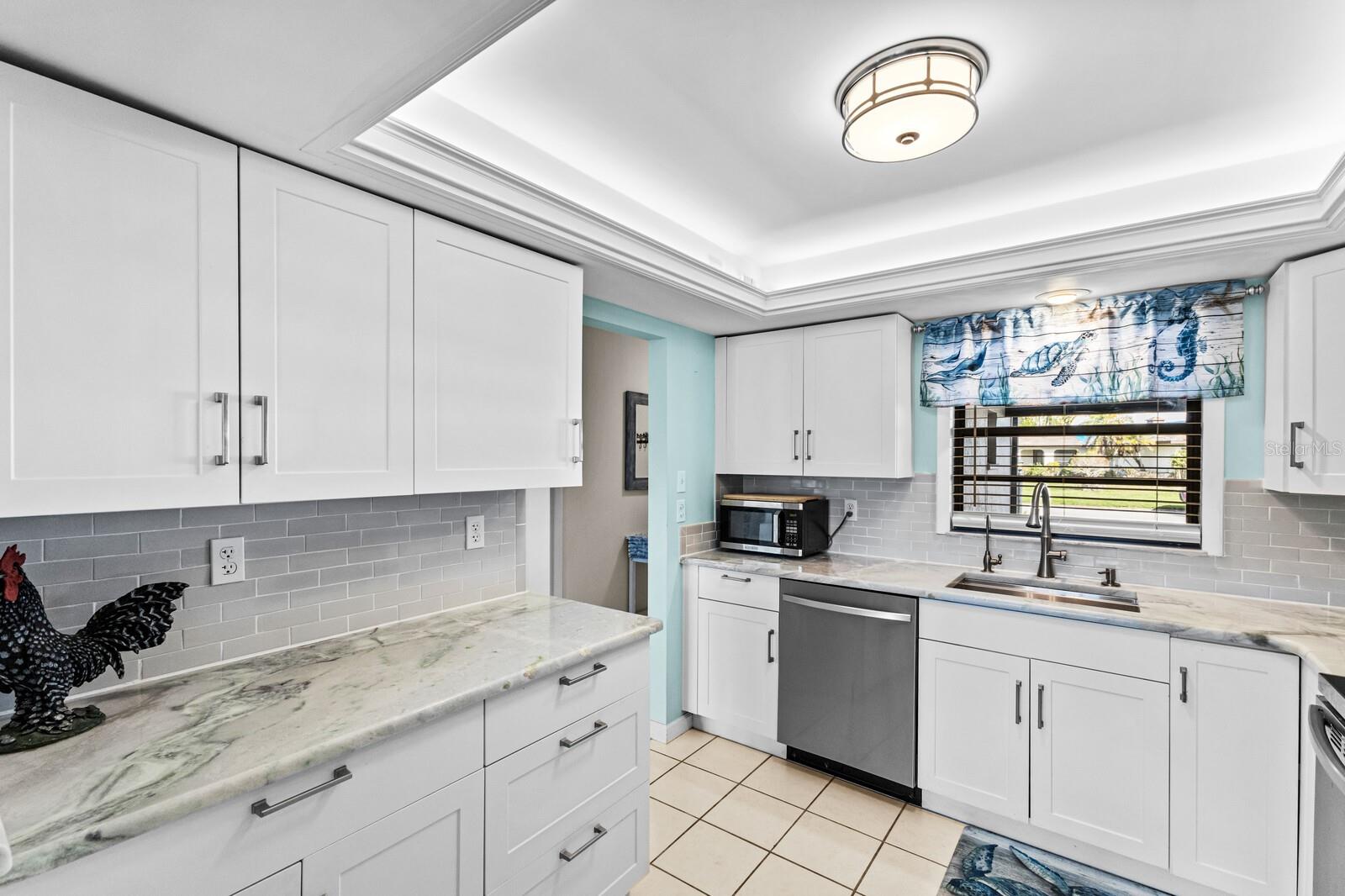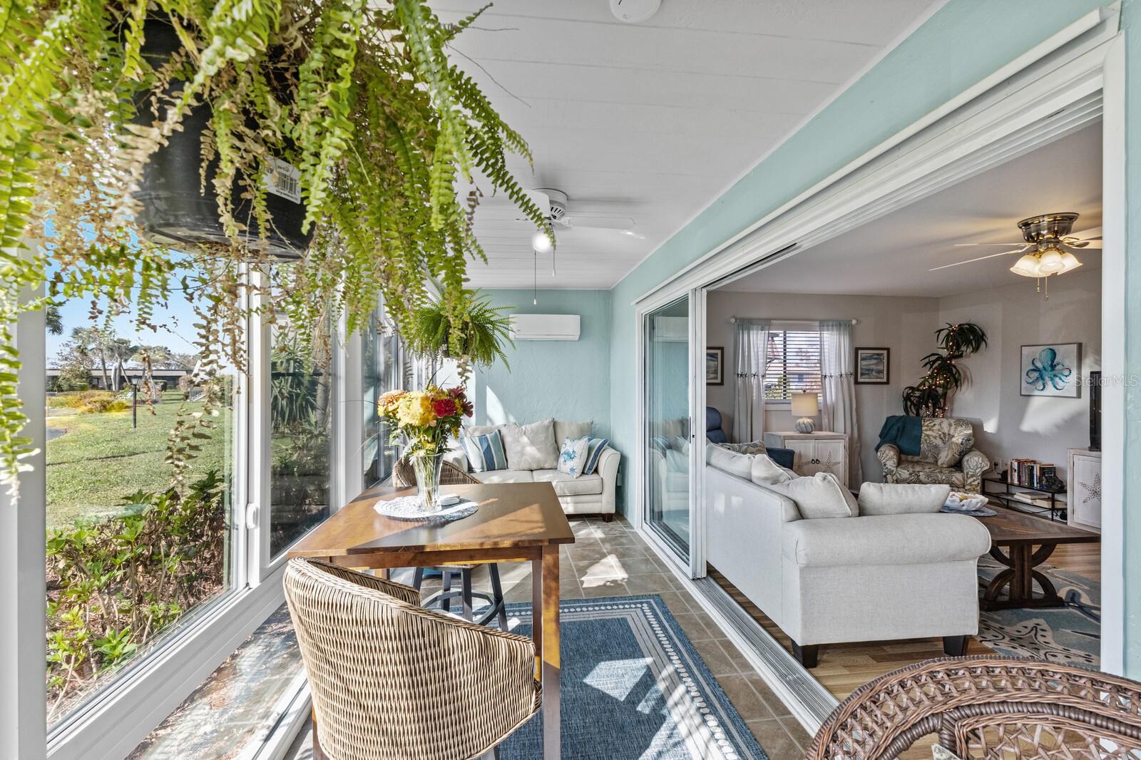 Welcome to a maintenance free upscale over 55 Venice 2 bedroom / 2 bath condominium with many upgrades situated in the peaceful sought after Villa Nova Community. This home has been carefully planned and upgraded to add ease and comfort to your daily life. With the roof recently maintained (responsibility of the association), yard mowed and trimmed, pest control, cable and trash removal, you have maintenance free living at its best. Located walking distance to the Clubhouse and pool, you are free to take a book from the ample collection in the library and relax by the pool enjoying that Florida sunshine. This tasteful condo boasts of marble countertops in the kitchen and bath, tile and manufactured wood floors thoughout, Pella glass hurricane windows (2022) on the Florida Room sliders along with mechanical electric shades and new separate Mini Split Cooper Hunter duckless efficient AC unit with humidity control and thermostat. As you drive into your new carport (2020) you enter luxury and elegance with a light bright home surrounded with hand crafted crown molding . The kitchen is outfitted with marble counters, custom backsplash, light wood cabinets, stainless steel newer appliances, soft close drawers, and a reverse osmosis system accented by the lighted recessed ceiling. The Florida Room inhales the outdoor sunshine and brightness with huge sliding glass doors. The lanai has a Milock keypad entry for safety and security. The primary bedroom is spacious and inviting with its own en suite elegant bath. This primary bath features a custom vanity, designer walk in closet, marble countertops, pebble floors in shower and fogless mirrors. The second bedroom is tastefully decorated with Hunter Douglas blinds for soft lighting, a built in closet, and manufactured wood floors. With ceiling fans in every room and tasteful flooring, this home has it all! The oversized laundry room includes an extra nook for storage, Frigidaire washer/dryer, laundry sink and shelves and cabinets. With two AC units and the ample upgrades, this home was well thought out and planned for the discerning buyer with distinguished tastes. Close to restaurants, shopping, boating, coastal beaches, quaint downtown Venice Island, the Community Center, gyms, Venice Little Theater, art studios, movie theater, walking trails, parks, this over 55 community is close to everything you could ever possibly imagine making it a perfect haven for your delight and pleasure!