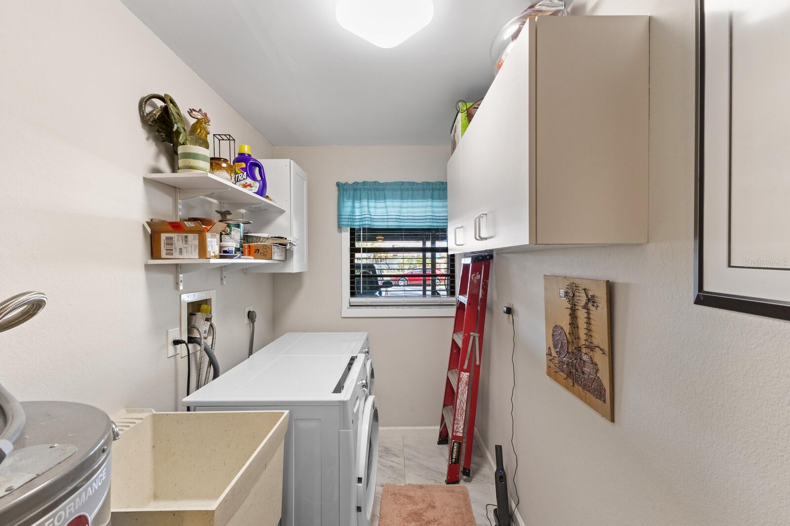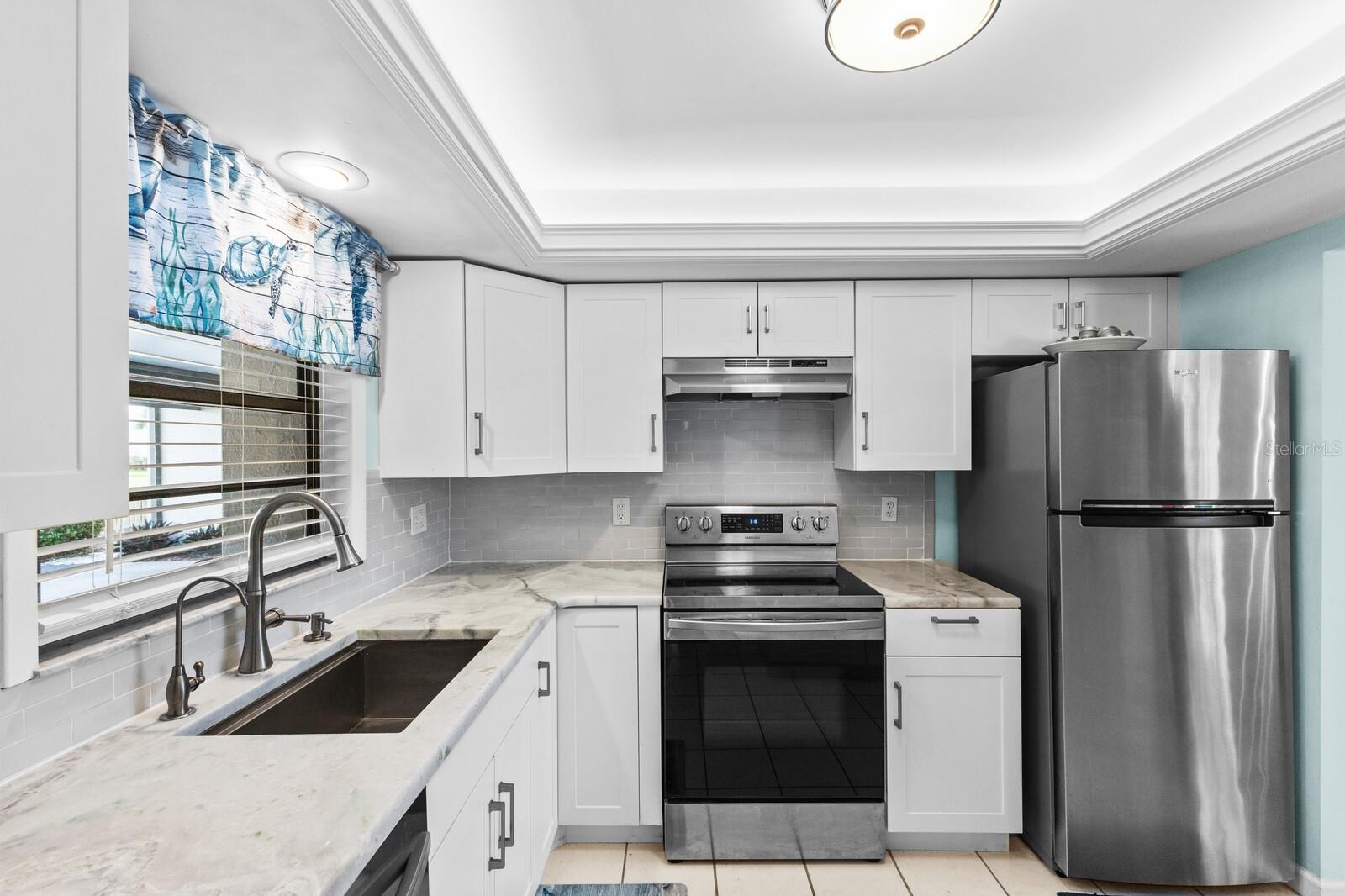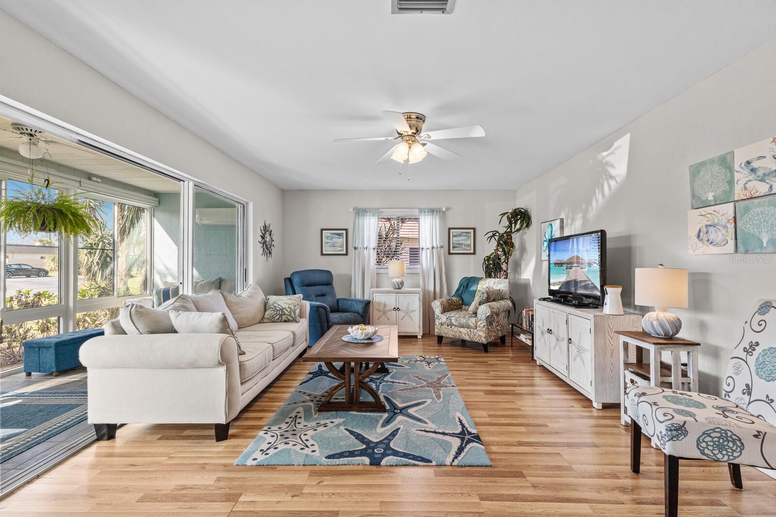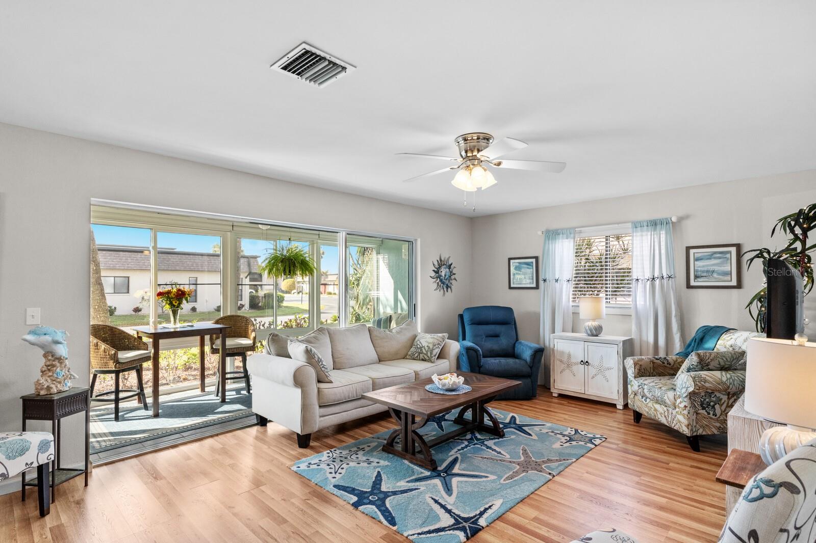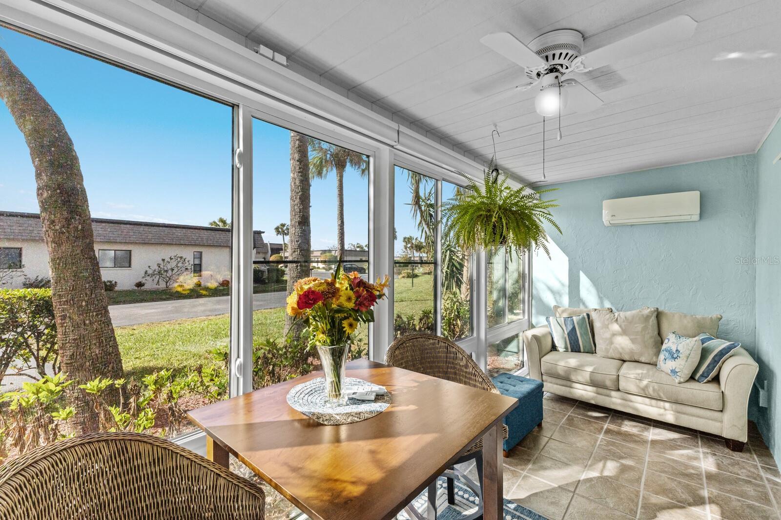 Welcome to a maintenance free upscale over 55 Venice 2 bedroom / 2 bath condominium with many upgrades situated in the peaceful sought after Villa Nova Community. This home has been carefully planned and upgraded to add ease and comfort to your daily life. With the roof recently maintained (responsibility of the association), yard mowed and trimmed, pest control, cable and trash removal, you have maintenance free living at its best. Located walking distance to the Clubhouse and pool, you are free to take a book from the ample collection in the library and relax by the pool enjoying that Florida sunshine. This tasteful condo boasts of marble countertops in the kitchen and bath, tile and manufactured wood floors thoughout, Pella glass hurricane windows (2022) on the Florida Room sliders along with mechanical electric shades and new separate Mini Split Cooper Hunter duckless efficient AC unit with humidity control and thermostat. As you drive into your new carport (2020) you enter luxury and elegance with a light bright home surrounded with hand crafted crown molding . The kitchen is outfitted with marble counters, custom backsplash, light wood cabinets, stainless steel newer appliances, soft close drawers, and a reverse osmosis system accented by the lighted recessed ceiling. The Florida Room inhales the outdoor sunshine and brightness with huge sliding glass doors. The lanai has a Milock keypad entry for safety and security. The primary bedroom is spacious and inviting with its own en suite elegant bath. This primary bath features a custom vanity, designer walk in closet, marble countertops, pebble floors in shower and fogless mirrors. The second bedroom is tastefully decorated with Hunter Douglas blinds for soft lighting, a built in closet, and manufactured wood floors. With ceiling fans in every room and tasteful flooring, this home has it all! The oversized laundry room includes an extra nook for storage, Frigidaire washer/dryer, laundry sink and shelves and cabinets. With two AC units and the ample upgrades, this home was well thought out and planned for the discerning buyer with distinguished tastes. Close to restaurants, shopping, boating, coastal beaches, quaint downtown Venice Island, the Community Center, gyms, Venice Little Theater, art studios, movie theater, walking trails, parks, this over 55 community is close to everything you could ever possibly imagine making it a perfect haven for your delight and pleasure!