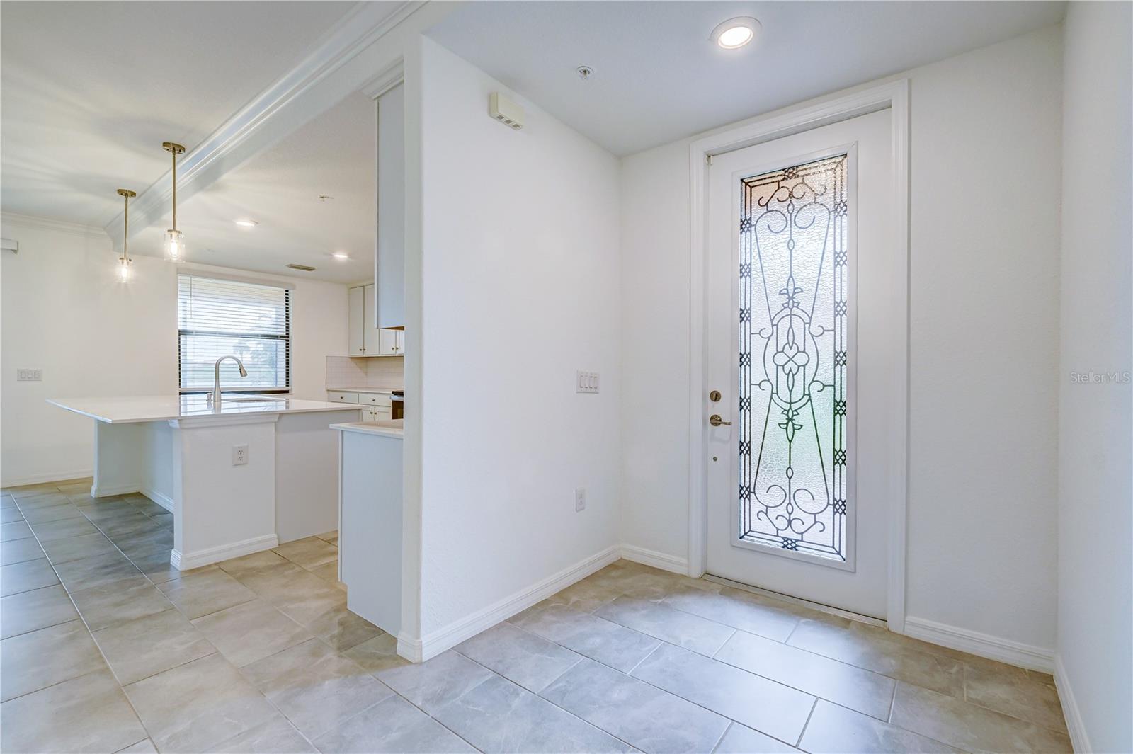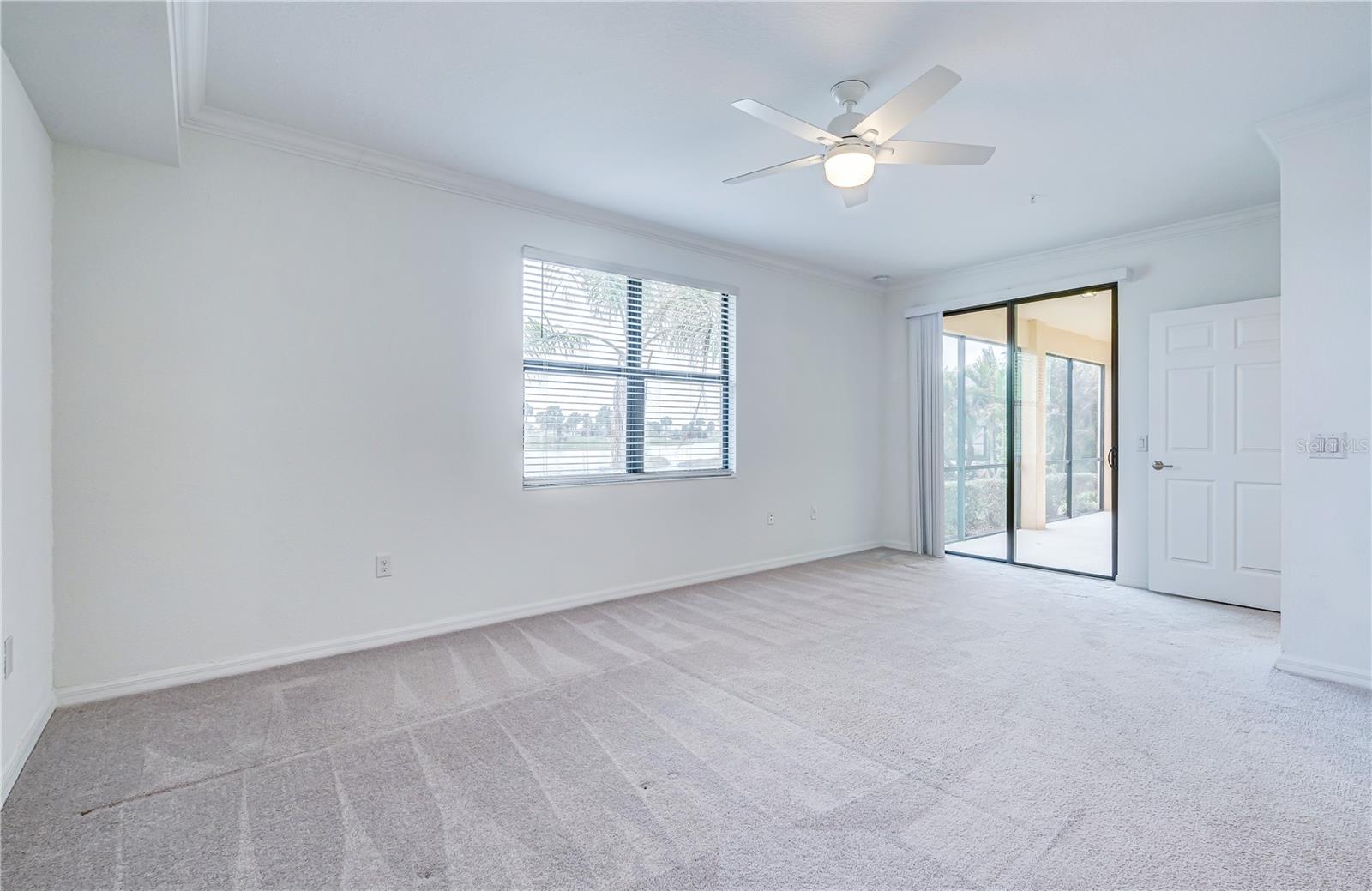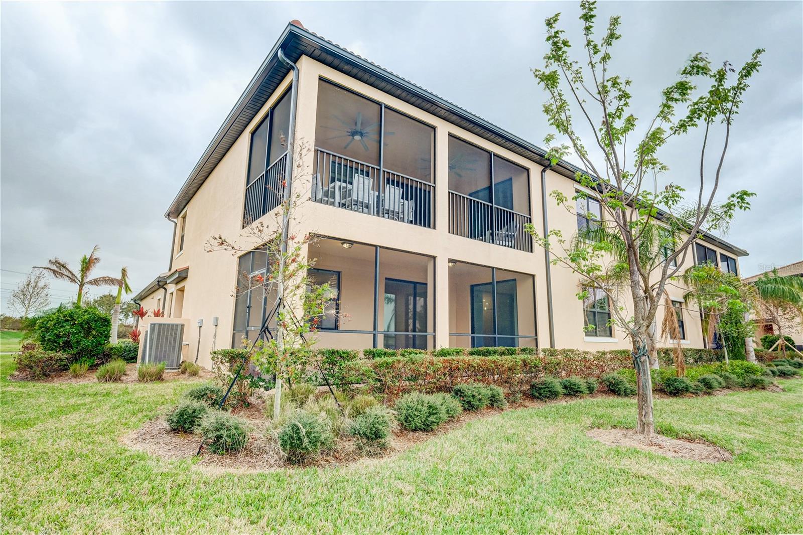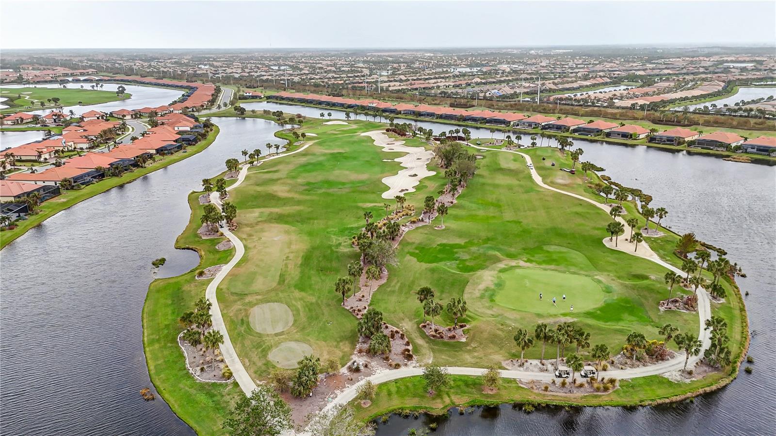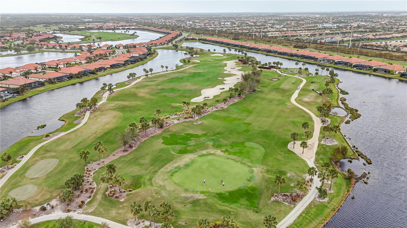 PRICE IMPROVEMENT! Located in the Golf Village of Sarasota National, this like-new, maintenance free Coach Home has a spectacular water and golf course view with beautiful sunrises. This 3 bedroom, 2 bath open concept Amelia floorplan has 1,737 sq ft of stunning features. The Great room enjoys sliding glass doors that open to a large covered lanai with beautiful water and golf course views, making it one of the best vistas in the community! The interior of home features many desired upgrades showing 10ft ceilings, 8 foot doorways, ceramic plank tile, ceiling fans, designer lighting, and crown molding is featured in in the family room, kitchen, dining room and primary bedroom. The kitchen has a beautiful free-standing island with quartz countertops, gorgeous white cabinets, stainless steel appliances and a large pantry. The Primary Bedroom suite also offers beautiful water views, with sliding doors out to your covered lanai, 2 closets, and an Ensuite bath with two separate sinks and cabinets, and luxurious walk-in tiled shower. It is truly awe-inspiring how much light fills the home through both sets of sliding glass doors! You and your guests will love the privacy afforded with the guest bedrooms and second bath on the opposite side of the home. The 2 car garage comes outfitted with an epoxy floor coating. To complete this impressive home amenities package all the windows have hurricane impact resistant glass, so no clumsy shutters to install. Best of all, this home includes 2 unlimited Golf Memberships. Sarasota National is one of the Venice area’s most sought-after communities with a 30,000 sq. ft. clubhouse, spectacular zero entry resort style pool with spa and lap pool. Enjoy casual dining at the Tiki bar, fine dining at the Palm Club, a 7,000 sq. ft. fitness center with classes, personal trainers, and day spa, pickle ball, lighted tennis courts, bocce ball, coffee house, 18-holes of championship golf, and a magnificent 19th hole restaurant. Sarasota National is also a Silver rated Audubon Bird Sanctuary with more than half of the community being designated as a preserve. Sarasota National is less than 15 minutes from historic downtown Venice, shopping, and world-class beaches. Come and see how you can live like you’re on vacation every day!