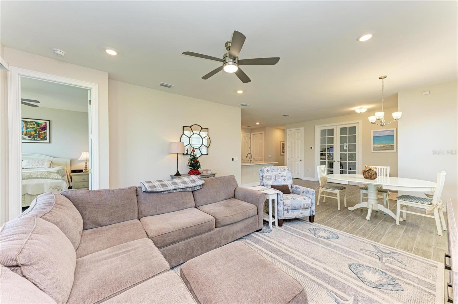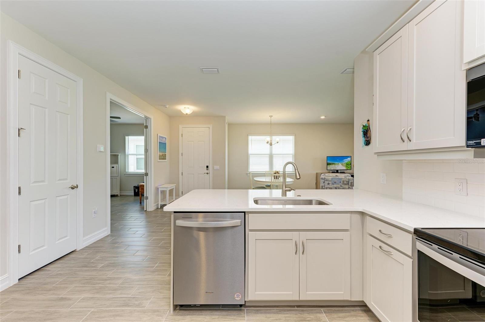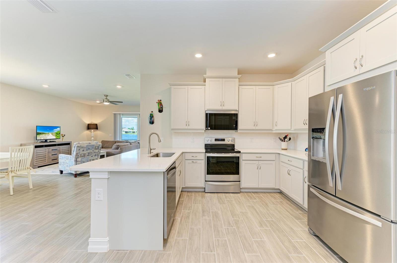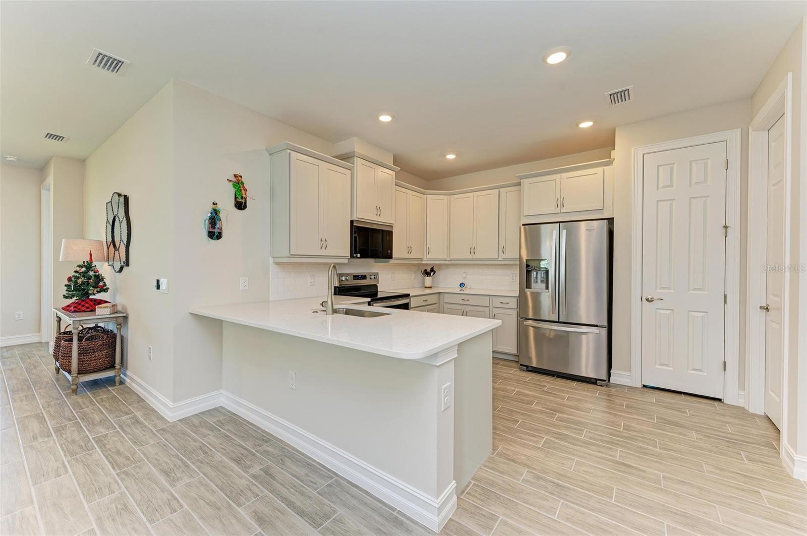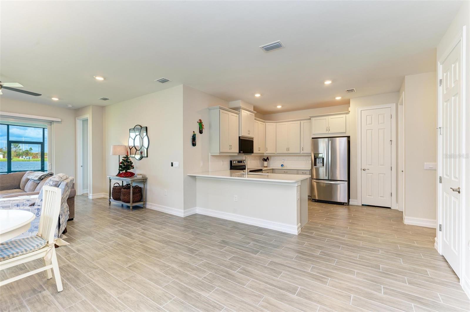 Nestled in the serene community of Palencia, Venice, Florida, this charming turnkey two-bedroom, two-bathroom villa offers a perfect blend of comfort, style, and tranquility. As you enter, you are immediately welcomed by an open-concept living area that flows seamlessly between the spacious living room, dining area, and kitchen. Expansive high-impact glass windows flood the space with natural light, enhancing the modern finishes and tasteful decor that define this home. The chef-inspired kitchen features sleek quartz countertops, upgraded stainless steel appliances, and plenty of cabinetry for all your culinary essentials. Whether preparing a casual meal or entertaining guests, the kitchen offers both functionality and elegance. A versatile bonus room off the kitchen provides an ideal space for a home office, den, or additional living area. The master bedroom serves as a peaceful retreat, complete with an ensuite bathroom featuring a walk-in shower, while the second bedroom is equally inviting, offering comfort and privacy for guests. The second bathroom is conveniently located to ensure ease of access for both residents and visitors. Outside, the villa extends into a private lanai, perfect for enjoying the Florida sunshine. Surrounded by lush landscaping and with serene pond views, the outdoor space feels like a peaceful oasis. Best of all, with no CDD fees in Palencia, this villa offers both convenience and value. Located just minutes from local parks, shopping, dining, and the stunning Gulf Coast beaches, this villa truly offers the best of both worlds—peaceful living in a vibrant, well-connected community. A true gem in Venice, Florida, this home is waiting to welcome you!