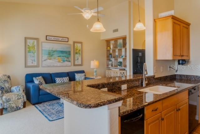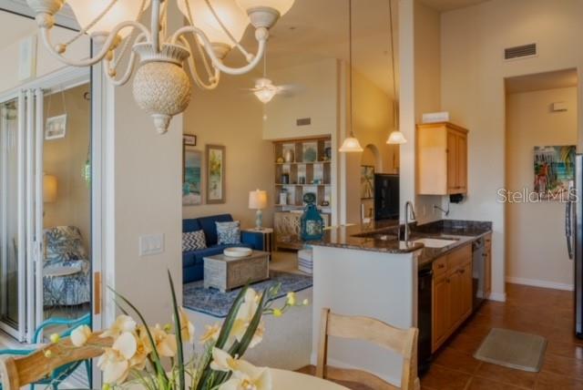 Why worry about hurricane evacuations on Venice Island when you can enjoy peace of mind just 3.3 miles away in a 2006-built cement condominium on the mainland? Skip the stress of costly engineering reports, extra assessments, and sharply rising maintenance fees—this community is in excellent shape with a strong financial history. Perched on the third floor, this beautifully maintained San Lino condo offers the best water views in the community and a thoughtfully designed interior. Major updates include an A/C UNIT WITH UV LIGHT (2022)and a WATER HEATER (2021), ensuring efficiency and comfort. The open-concept main living area flows seamlessly into a stylish, updated kitchen featuring GRANITE COUNTER TOPS, a breakfast bar, STAINLESS STEEL APPLIANCES, and SOLID WOOD CABINETS. The adjacent dining area is perfect for entertaining. The primary suite boasts double closets, a ceiling fan, and an en-suite bath with dual sinks, while the guest bath offers a convenient tub/shower combo. In addition to the 2 bedrooms this condo stands out with an extra BONUS ROOM/DEN, a FULL SIZED INDOOR LAUNDRY ROOM, and DEDICATED OFFICE SPACE WITH BUILT IN WOOD CABINETS AND GRANITE DESK TOP. ADDITIONAL PERKS include a DETACHED ONE CAR GARAGE AND EXTRA SHARED STORAGE just outside your front door. The San Lino community features a beautiful pool, fitness center, scenic walking paths, and a clubhouse with an active social scene. Enjoy reasonable quarterly fees and no CDD. WHY LOOK AT THE REST WHEN YOU CAN HAVE THE BEST. CALL FOR YOUR PRIVATE SHOWING TODAY