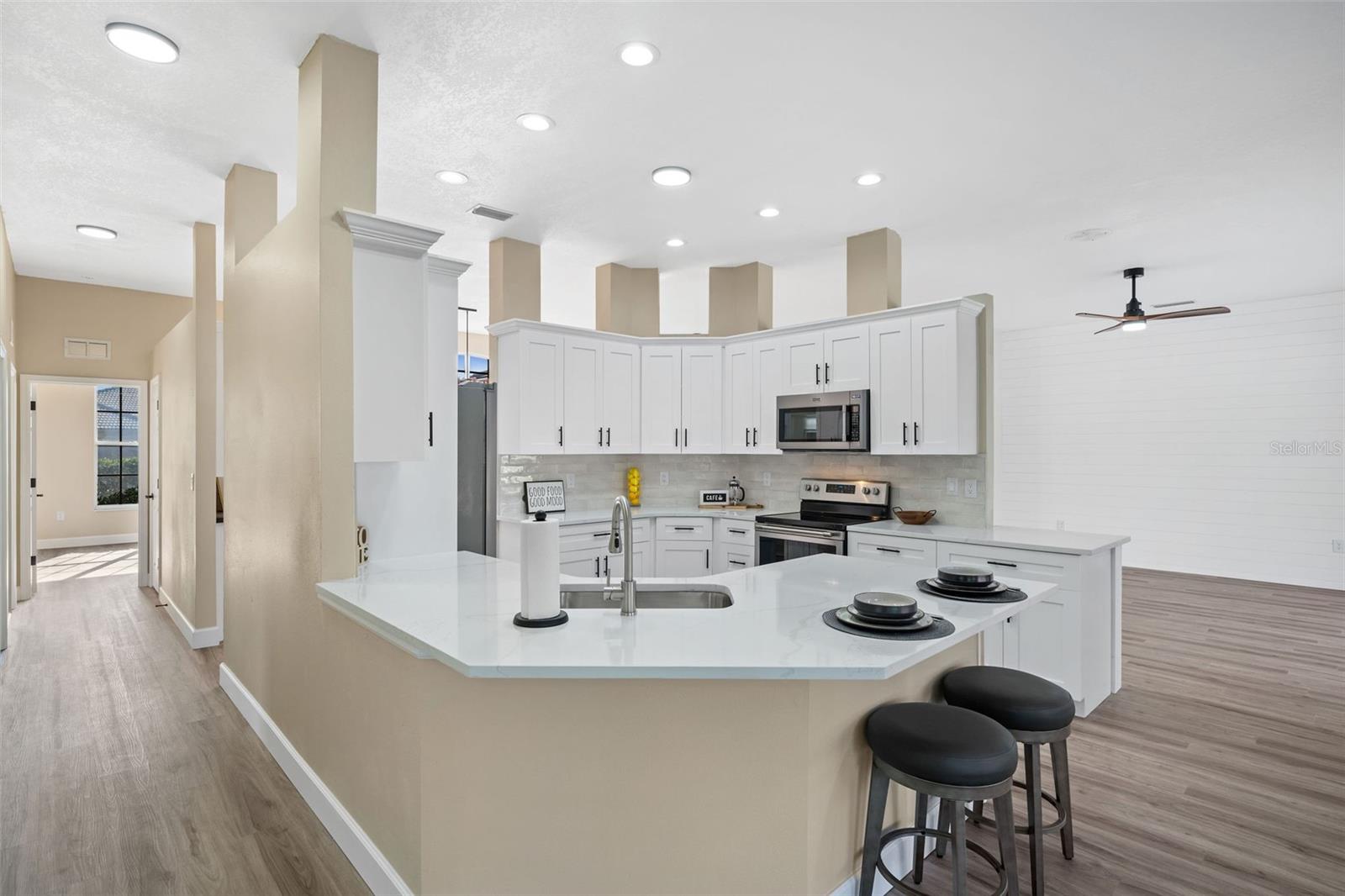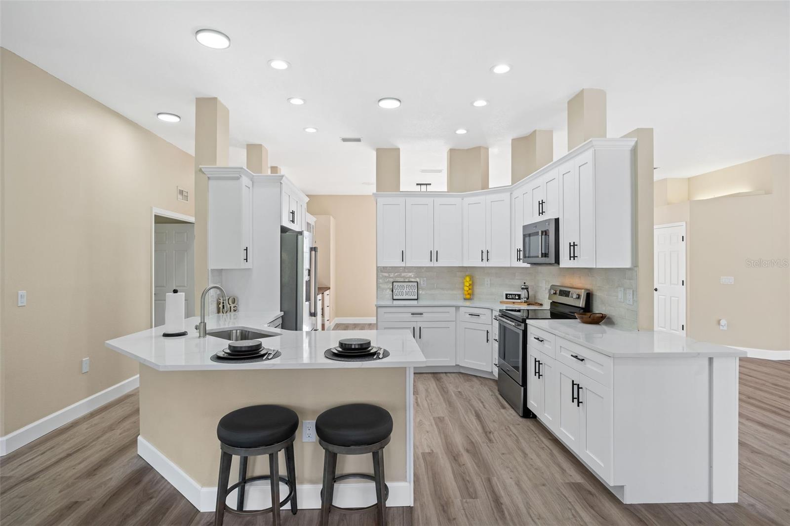 NO CDD, LOW HOA, FULLY RENOVATED POOL HOME WITH STUNNING VIEWS Welcome to your dream POOL home! Nestled in the highly desirable Chestnut Creek Community, this COMPLETELY RENOVATED 4-bedroom, 2 full bath, 2 half bath masterpiece offers an exceptional blend of luxury and comfort. Step inside to discover a top-to-bottom remodel featuring BRAND NEW LUXURY PLANK, exquisitely tiled bathrooms, and a FULLY RENOVATED KITCHEN WITH STAINLESS-STEEL APPLIANCE, with gleaming quartz countertops. The spacious 2600 sq feet floor plan includes a pool bath, perfect for your outdoor entertaining by the sparkling pool. The modern upgrades continue with a brand-new electric panel (2024), a newer tile roof (2018), and upgraded dual AC system (2022), newer irrigation and lanai screens, ensuring peace of mind for years to come. Whether you're basking in the Florida sun by the pool or indulging in the scenic water view, this home offers a perfect blend of tranquility and modern comfort. The home is situated on an expansive corner lot with picturesque pond views, providing a serene and private retreat. A spacious, air-conditioned 2-car garage and prime location make this home a true gem. Don’t miss out on this rare opportunity to own a piece of paradise in Chestnut Creek. Beyond the confines of your private oasis, discover the convenience of location. Within minutes, you can find yourself at the pristine Gulf beaches, exploring the charm of Downtown Venice, or immersing yourself in the vibrant atmosphere of Downtown Wellen Park. Sports enthusiasts will appreciate the proximity to the Atlanta Braves Stadium, while shopping, restaurants, and medical facilities are all within easy reach. The appeal extends to the proximity of top-rated schools, making this residence not just a home but an investment in a lifestyle. All these benefits come with exceptionally low HOA fees and NO CDD fees in a community known for its beautiful scenery and tranquil ambiance. Schedule your private showing today and prepare to be enchanted! Buyer/buyer agent to verify all information.