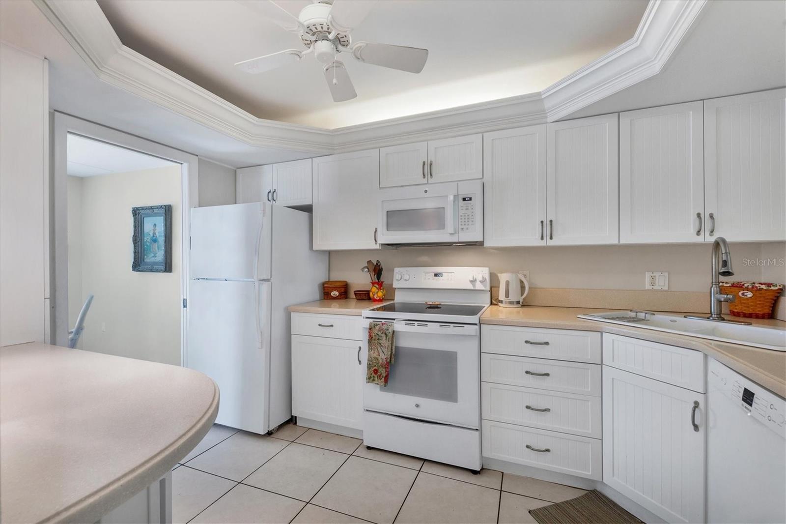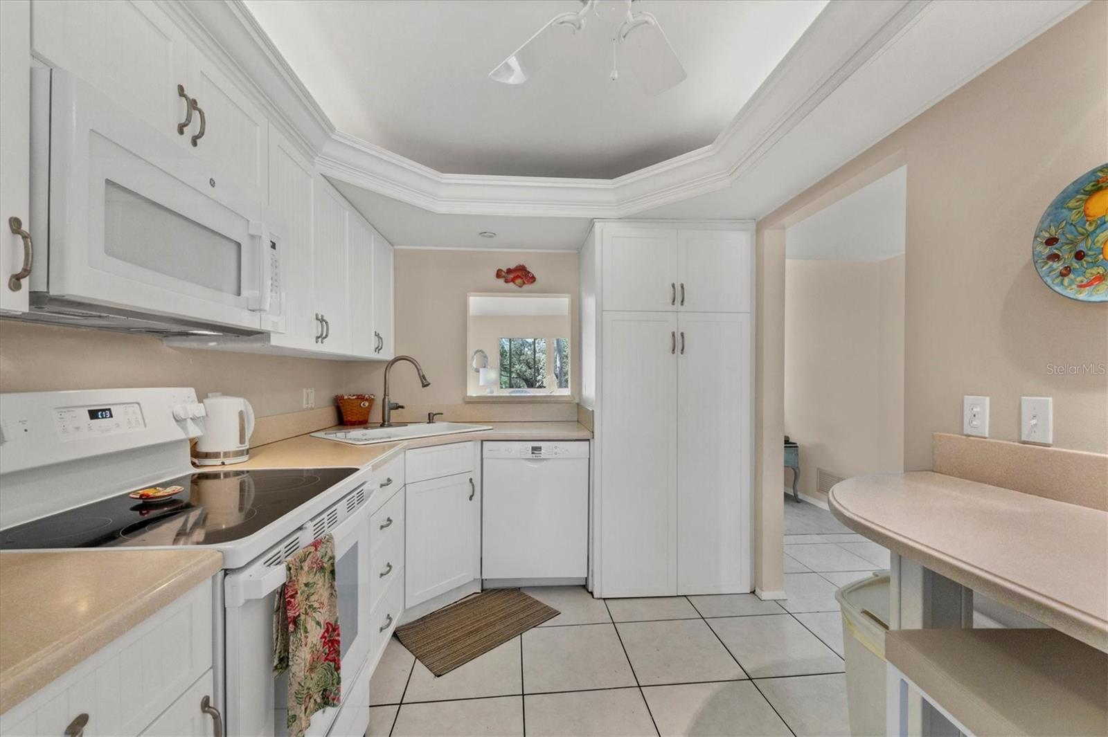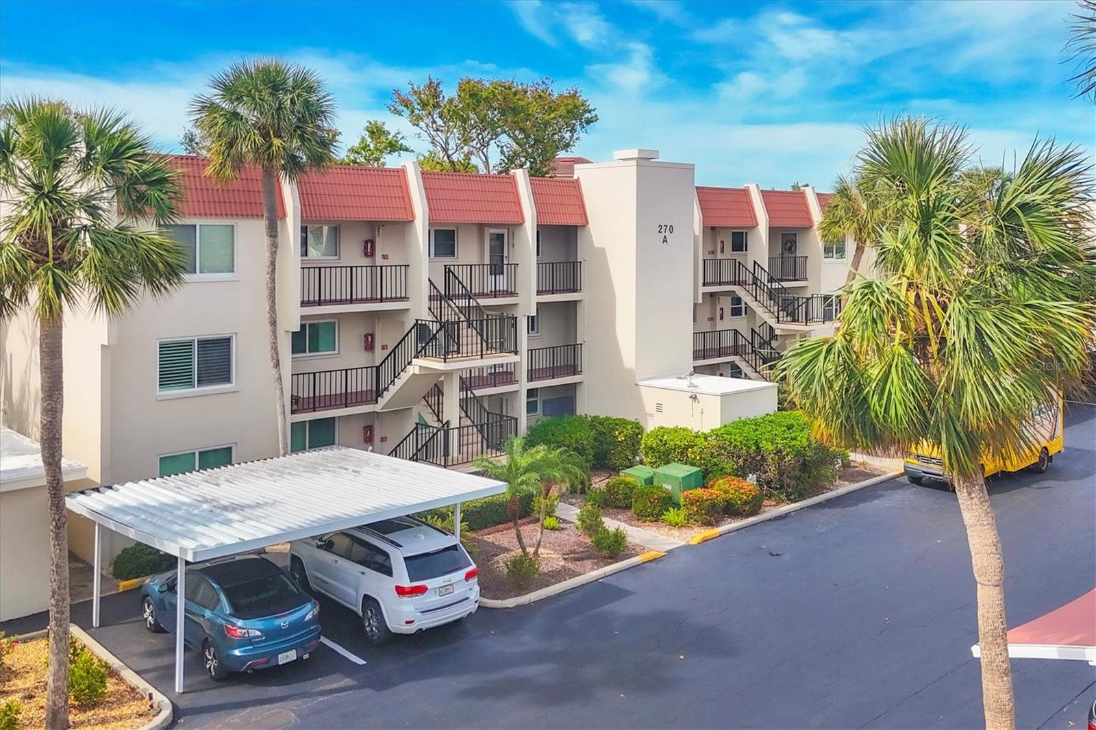 READY TO MAKE DOWNTOWN VENICE YOUR PARADISE DESTINATION? This LIGHT, BRIGHT 2nd floor END UNIT with garden and city views is ready if you are! Delightful Florida Lifestyle TURNKEY FURNISHED condo for easy move-in with nearly 1,100 square feet features two bedrooms with ensuite baths and roomy walk-in closets, plantation shutters, ceramic tile and laminate flooring thru-out. And this condo boasts a versatile bonus room for dining, den, or overflow sleeping for your visitors! Kitchen is accented with tray ceiling and crown molding, newer Shaker style cabinets, breakfast bar for casual dining, solid surface countertops, Bosch dishwasher and convenient stacked washer and dryer. Wind compliant windows, 2019 HWH, and extended warranties on most appliances for your peace of mind, storage, plus assigned Brand New Covered Carports and Elevator buildings. MILESTONE and STRUCTURAL INTEGRITY RESERVE studies have been SUCCESSFULLY completed. You are just steps to the socially active Clubhouse with heated pool, gathering room and full kitchen for your get togethers or movies on the big screen in the club room, library with billiards, exercise facility and a sauna are here too. Bella Costa is beautifully sited on the Intracoastal Waterway with three waterfront picnic areas and exterior BBQ grilling. Watch the Venice boat traffic and holiday boat parade from your lawn chair up front and personal. You will love the wonderful location where you can walk or bike to your favorite downtown Venice destinations. Stroll over to Centennial Park, the water fountain, car shows, festivals, Farmer's Market and enjoy diverse dining venues, boutique shopping and the December Holiday Parade. Named one of the best beach towns, you are only 1 mile away from the sand and gorgeous gulf coast Venice Beach!