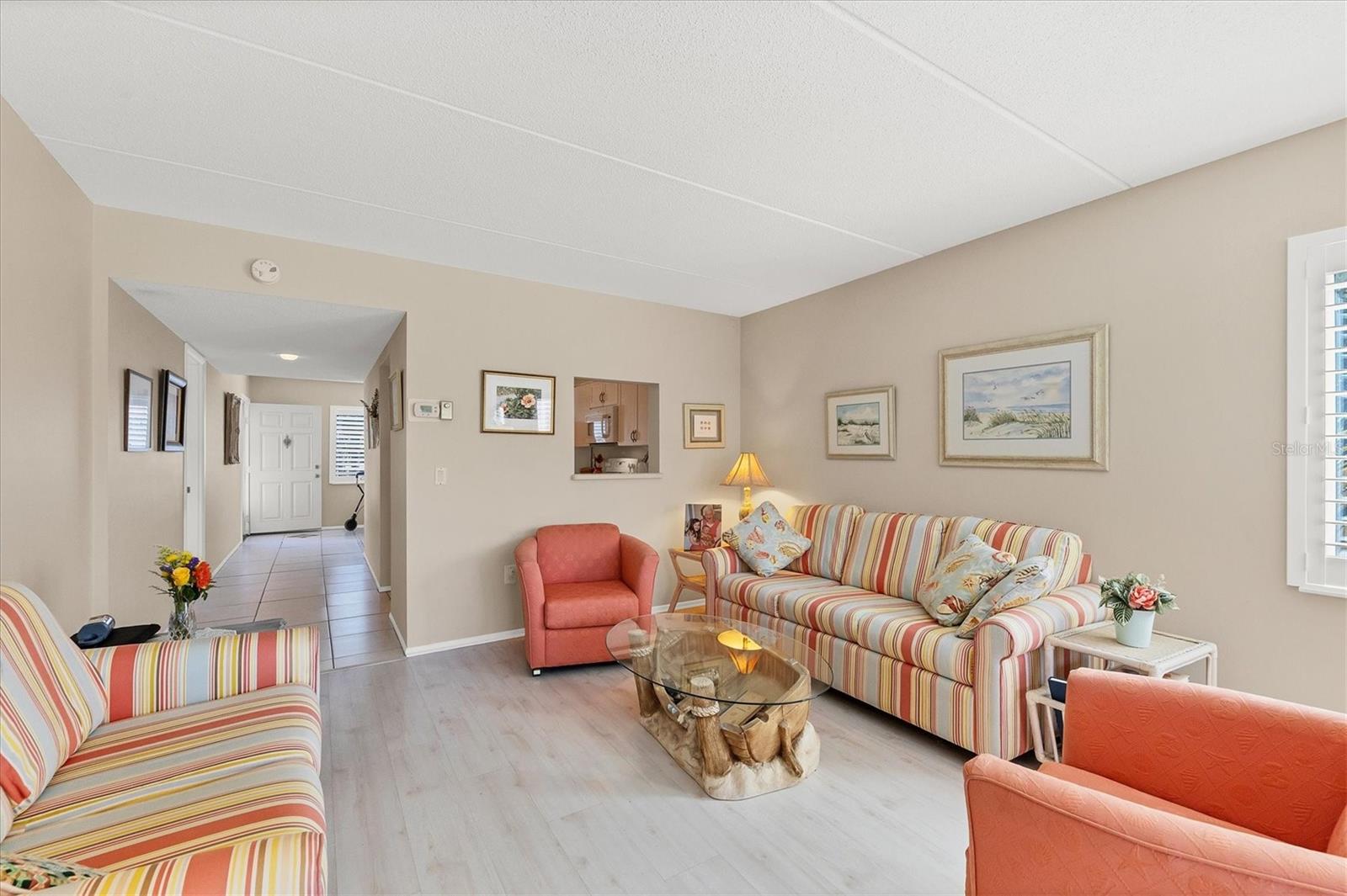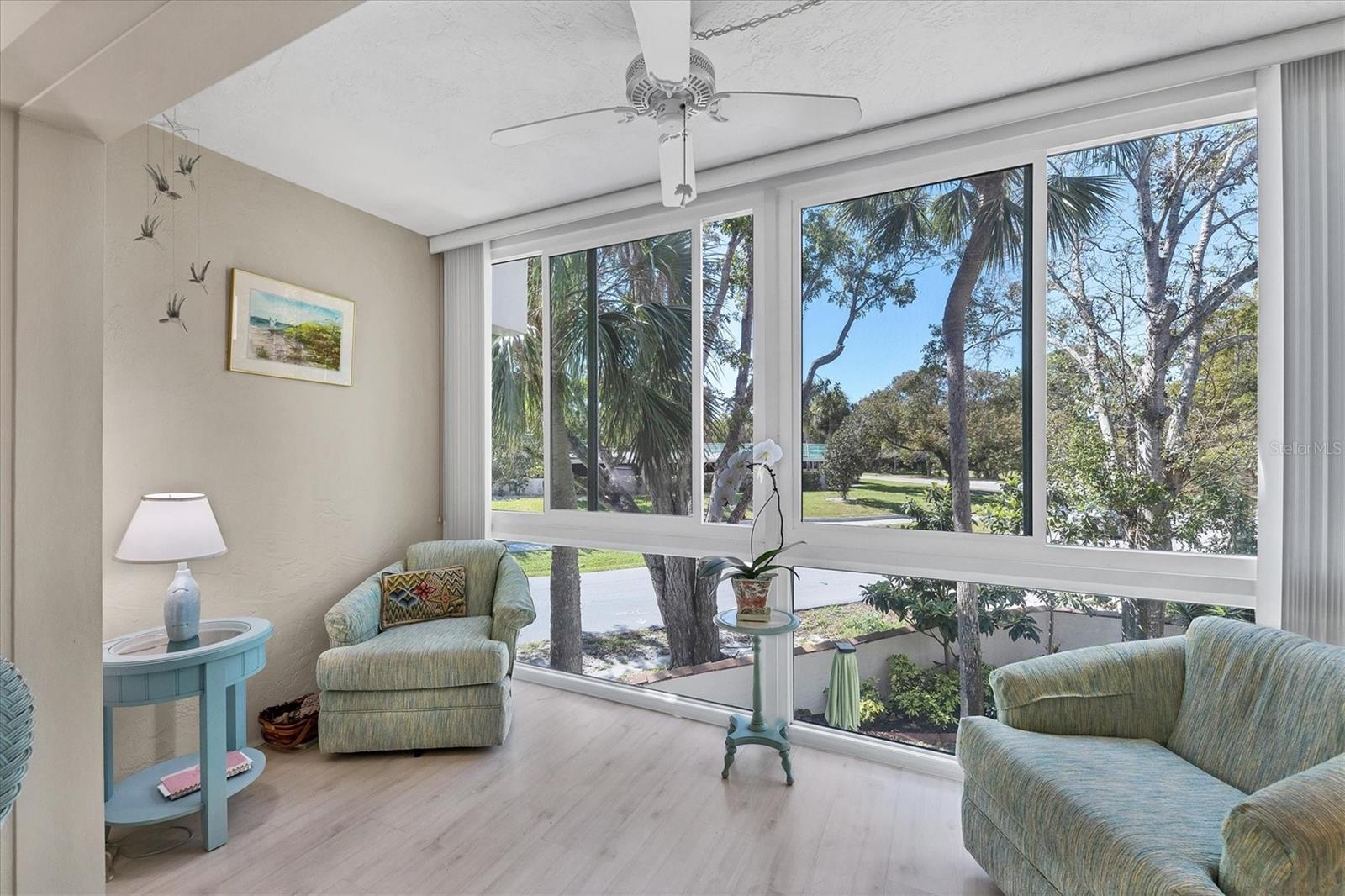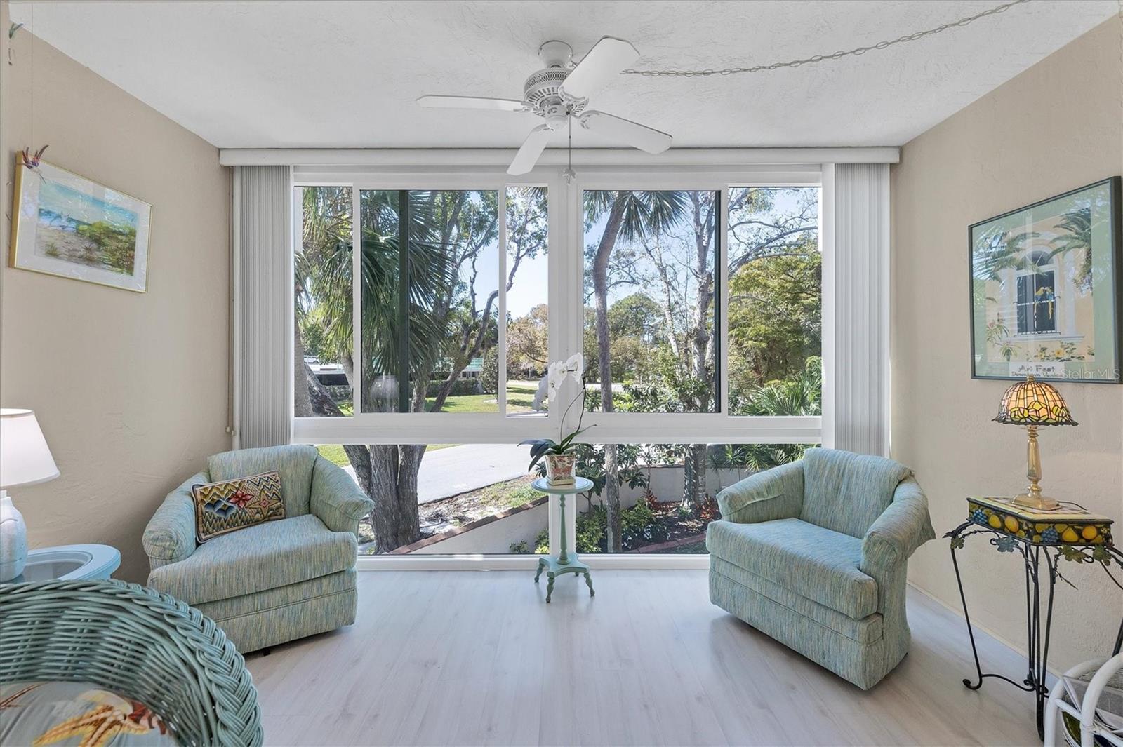 READY TO MAKE DOWNTOWN VENICE YOUR PARADISE DESTINATION? This LIGHT, BRIGHT 2nd floor END UNIT with garden and city views is ready if you are! Delightful Florida Lifestyle TURNKEY FURNISHED condo for easy move-in with nearly 1,100 square feet features two bedrooms with ensuite baths and roomy walk-in closets, plantation shutters, ceramic tile and laminate flooring thru-out. And this condo boasts a versatile bonus room for dining, den, or overflow sleeping for your visitors! Kitchen is accented with tray ceiling and crown molding, newer Shaker style cabinets, breakfast bar for casual dining, solid surface countertops, Bosch dishwasher and convenient stacked washer and dryer. Wind compliant windows, 2019 HWH, and extended warranties on most appliances for your peace of mind, storage, plus assigned Brand New Covered Carports and Elevator buildings. MILESTONE and STRUCTURAL INTEGRITY RESERVE studies have been SUCCESSFULLY completed. You are just steps to the socially active Clubhouse with heated pool, gathering room and full kitchen for your get togethers or movies on the big screen in the club room, library with billiards, exercise facility and a sauna are here too. Bella Costa is beautifully sited on the Intracoastal Waterway with three waterfront picnic areas and exterior BBQ grilling. Watch the Venice boat traffic and holiday boat parade from your lawn chair up front and personal. You will love the wonderful location where you can walk or bike to your favorite downtown Venice destinations. Stroll over to Centennial Park, the water fountain, car shows, festivals, Farmer's Market and enjoy diverse dining venues, boutique shopping and the December Holiday Parade. Named one of the best beach towns, you are only 1 mile away from the sand and gorgeous gulf coast Venice Beach!