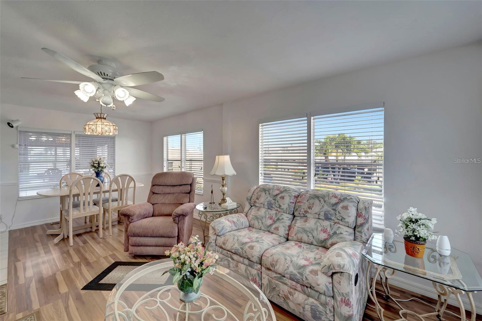 Meticulously maintained manufactured home, located in the 55 plus community of Harbor Lights. No damage from hurricanes. Home is high and dry and ready to move in. The home is located close to all the amenities. The double wide manufactured home is turnkey furnished, just bring your clothes and toothbrush and start your paradise living. Many updates, including new carport, new flooring, granite counter tops, newer York 3 ton A/C, carpeted crawlspace, LED lighting. The home has been updated with new plywood, 1/2 inch sheetrock and ceilings brought up to code. Primary bedroom has a walk-in shower. Whirlpool washer and matching dryer. The home comes with 2 TVs, with an external antenna connected, 2 microwaves, NEST wi-fi programmable thermostat. There are 2 storage sheds (4x7 and 4x10), with power, lights & dehumidifier. The community is pet friendly, also has a 13 ft deep fishing pier with a freshwater cleaning station overlooking the intercoastal and Roberts Bay. Very close to downtown Venice, with shopping, beaches, restaurants and The Legacy Trail.