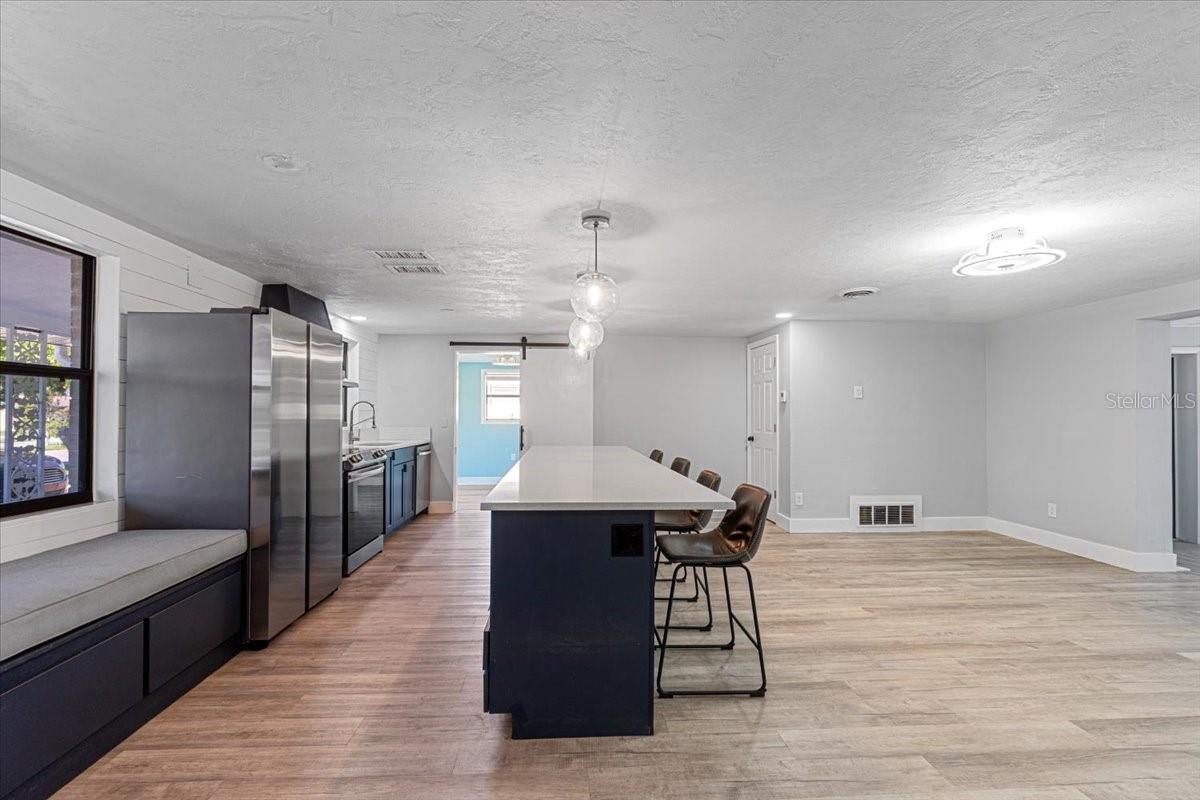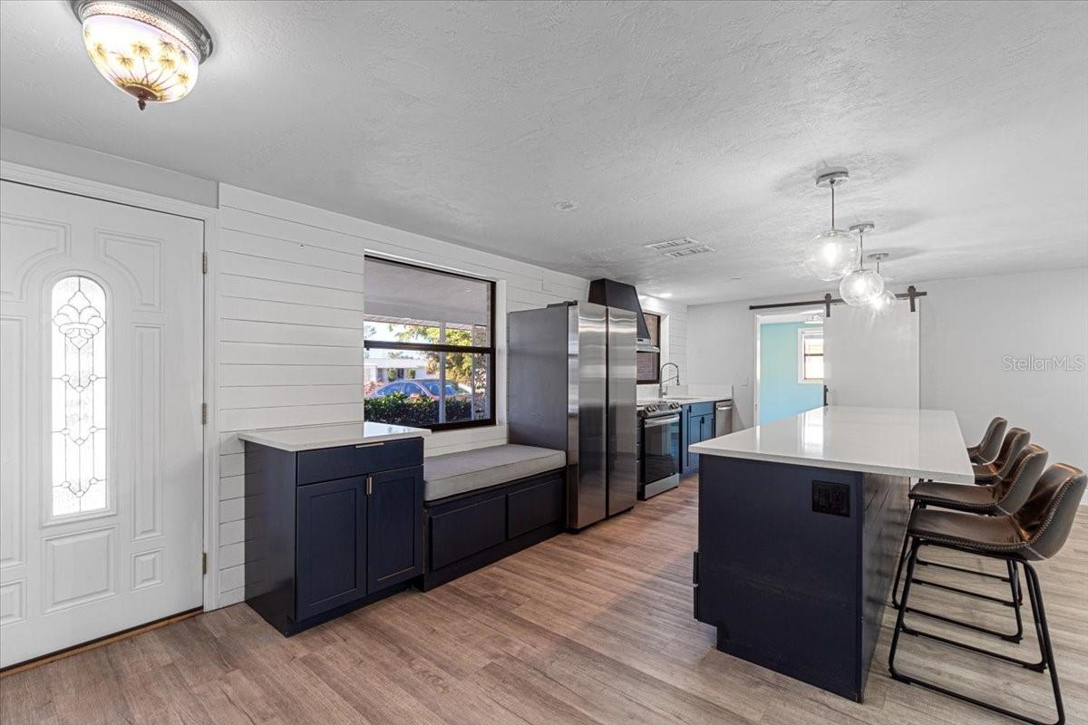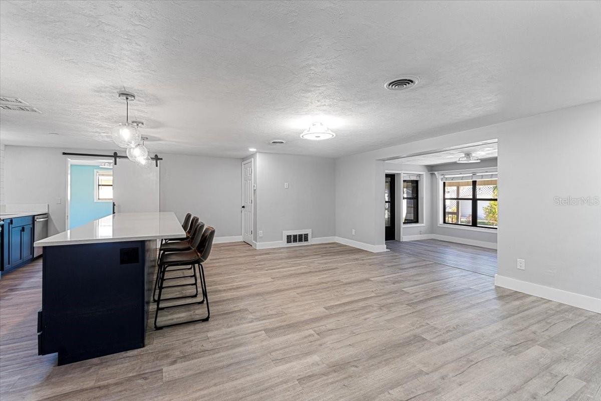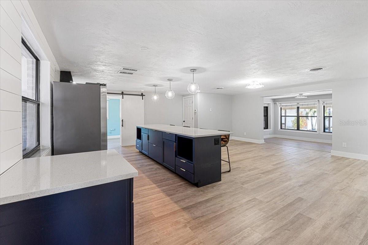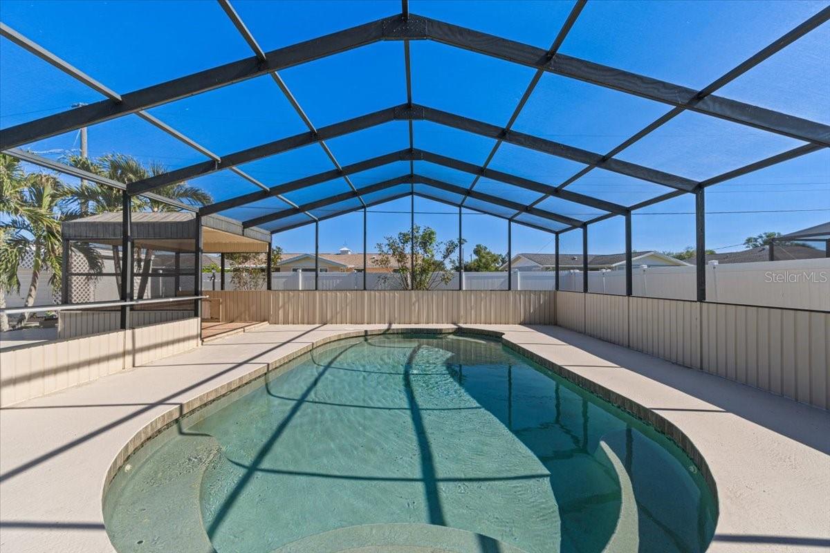 Discover this delightful 3-bedroom, 2-bathroom pool home in the desirable Venice East neighborhood. This home has a brand new roof just finished end of November 2024. With no mandatory HOA or CDD fees and public water and sewer, this property offers the perfect blend for easy living and freedom. Step into the heart of the home, where a newly renovated kitchen awaits. The spacious, open-concept design features an impressive 11-foot island topped with quartz countertops, providing ample space for cooking, dining, and entertaining. All appliances, including the washer/dryer combo, are included for your convenience. The layout is designed for both comfort and privacy, with two bedrooms and a full bathroom located on one side of the home, and the master bedroom on the opposite end. The master suite includes a ensuite bathroom with double sinks and tiled shower. Enjoy the outdoor paradise in the pool area, complete with a pool cage and a seating area perfect for enjoying the Florida sunshine. The fully fenced backyard offers both privacy and security, along with a shed for additional storage. This home is move-in ready and designed for easy living, with all the modern amenities you need. Nestled in the tranquil Venice East neighborhood and walking distance to Venice East Public Golf Course, this home is conveniently located near beaches, shopping, dining, and more. One of the Owners is a licensed real estate agent/listing agent.
