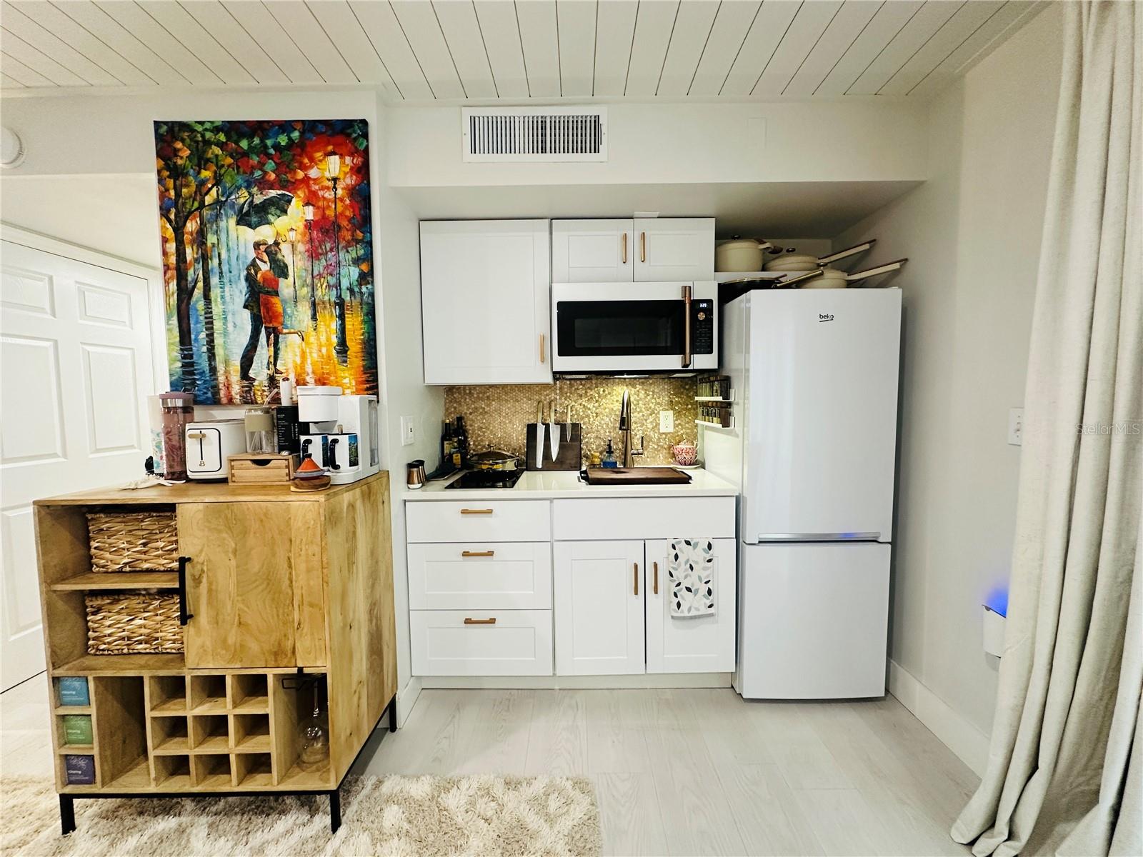 SELLER MOTIVATED! Owner financing available. Welcome to this beautifully updated, "turnkey" gem located in the highly desirable beachfront community of Bahia Vista Gulf (BVG), one of the few 1st floor units in the area that didn’t experience flooding in 2024! Perfectly positioned on Venice Island, this stylish condo offers both modern updates and an unbeatable location. Step inside to discover a fully renovated interior, featuring laminate flooring, LED recessed lighting (2024), and a stunning Shiplap ceiling and accent wall (2024) that add a touch of elegance. The newly installed decorative ceiling fan (2024) creates a cozy atmosphere, while the floor-to-ceiling storage cabinets (2024) provide ample space for your belongings, along with 2 full closets and an additional 6' X 6' storage unit. The kitchen is a true showstopper with stone countertops, a stainless steel sink, and an updated Delta faucet (2024). Enjoy cooking with the latest appliances, including a Café 3-in-1 Air Fryer/Convection Oven/Microwave (2024), a cooktop induction stove (2024), and a sleek, brand-new refrigerator (2024). The updated backsplash (2024) ties it all together, creating a stylish, functional cooking space. The bathroom has also been tastefully updated in 2024 with quartz counters and a Flexstone shower/bath that exudes both luxury and practicality. You’ll also find an Equator ventless all-in-one washer/dryer, offering the convenience of laundry in the comfort of your own home. There is also a community laundry available for your convenience. Enjoy the outdoors on your private patio, featuring low-maintenance artificial turf with brick pavers underneath. The Miami-storm grade 3-sectional sliding glass doors (2024) open from both sides, creating a seamless flow from indoor to outdoor living. Additional features include matteblack accent hinges and door handles (2024), Ring Eufy entryway doorbell (2024), water heater (2021), and AC (2021), ensuring peace of mind and comfort. The BVG community offers boat dock slips on the canal side for lease on an annual basis (call for availability). A brand-new community pool is currently under construction, adding to the value and appeal of this incredible property. You’ll be steps from the beach and the iconic Venice Jetties, offering breathtaking sunsets and world-class beach access. Take a short walk to Venice Ave, where you’ll find an array of shopping and dining options to enjoy year-round. If you love the beach life, this is the perfect opportunity to own a meticulously updated, flood-free condo in one of the most sought-after locations in Venice!