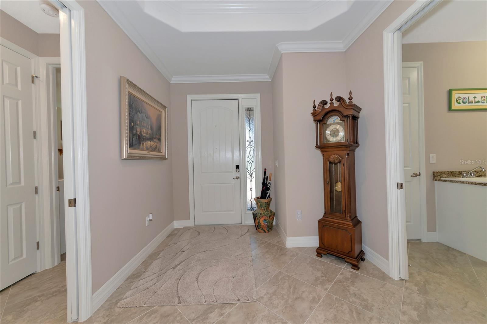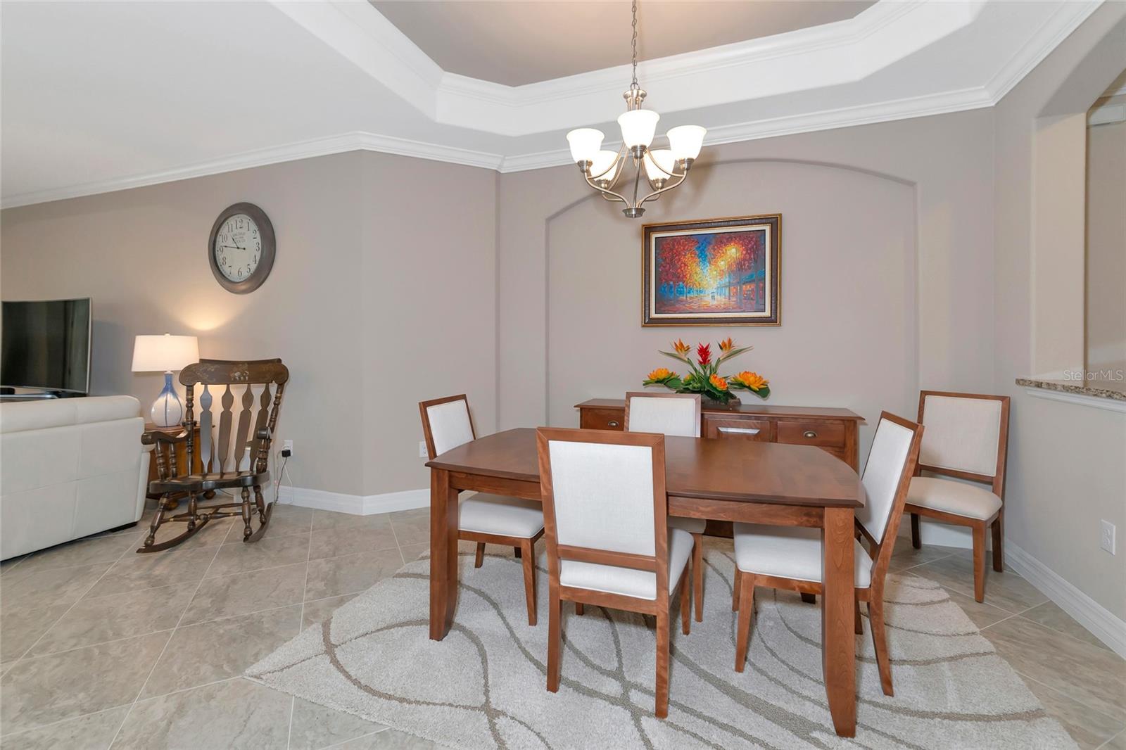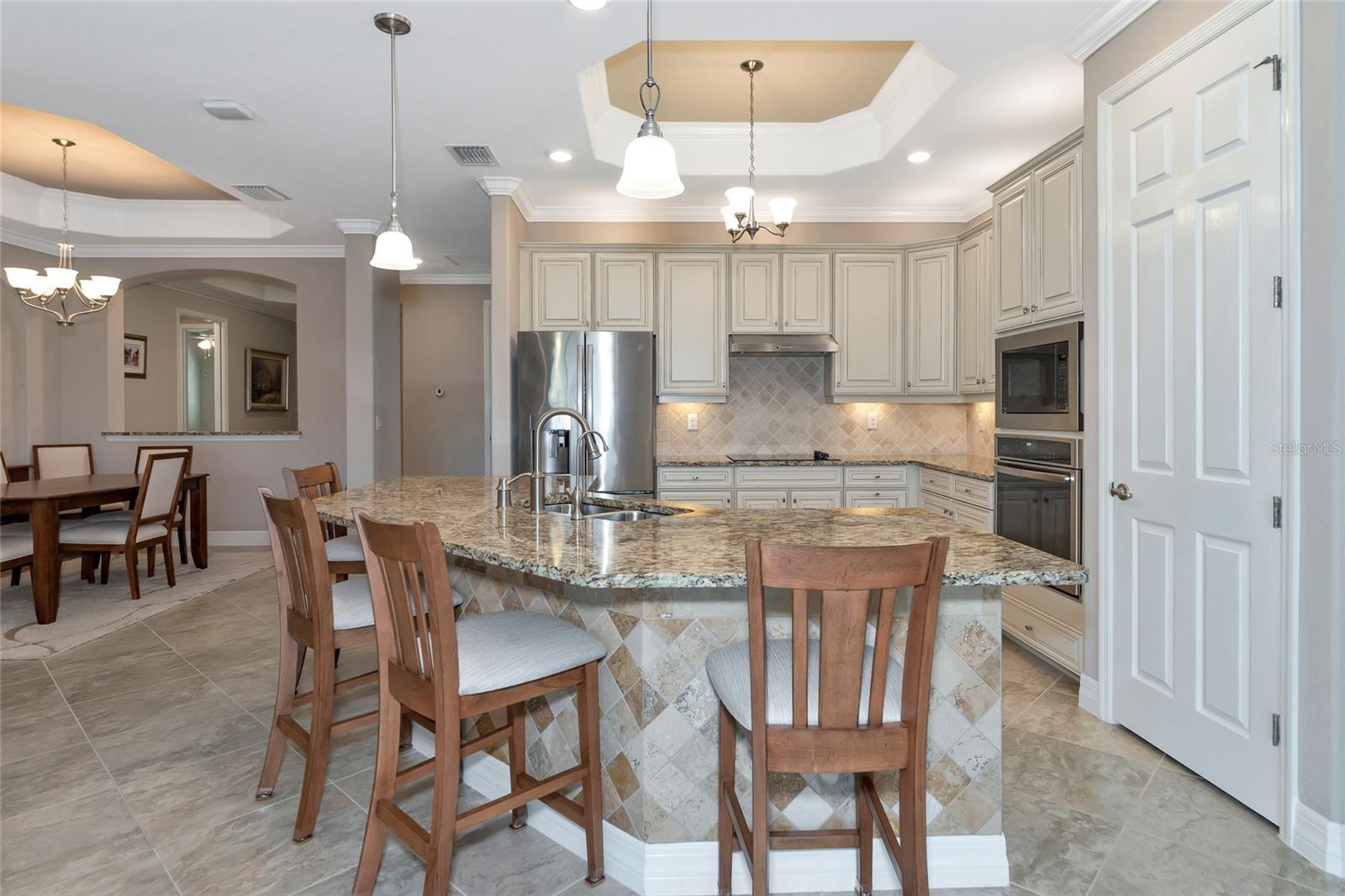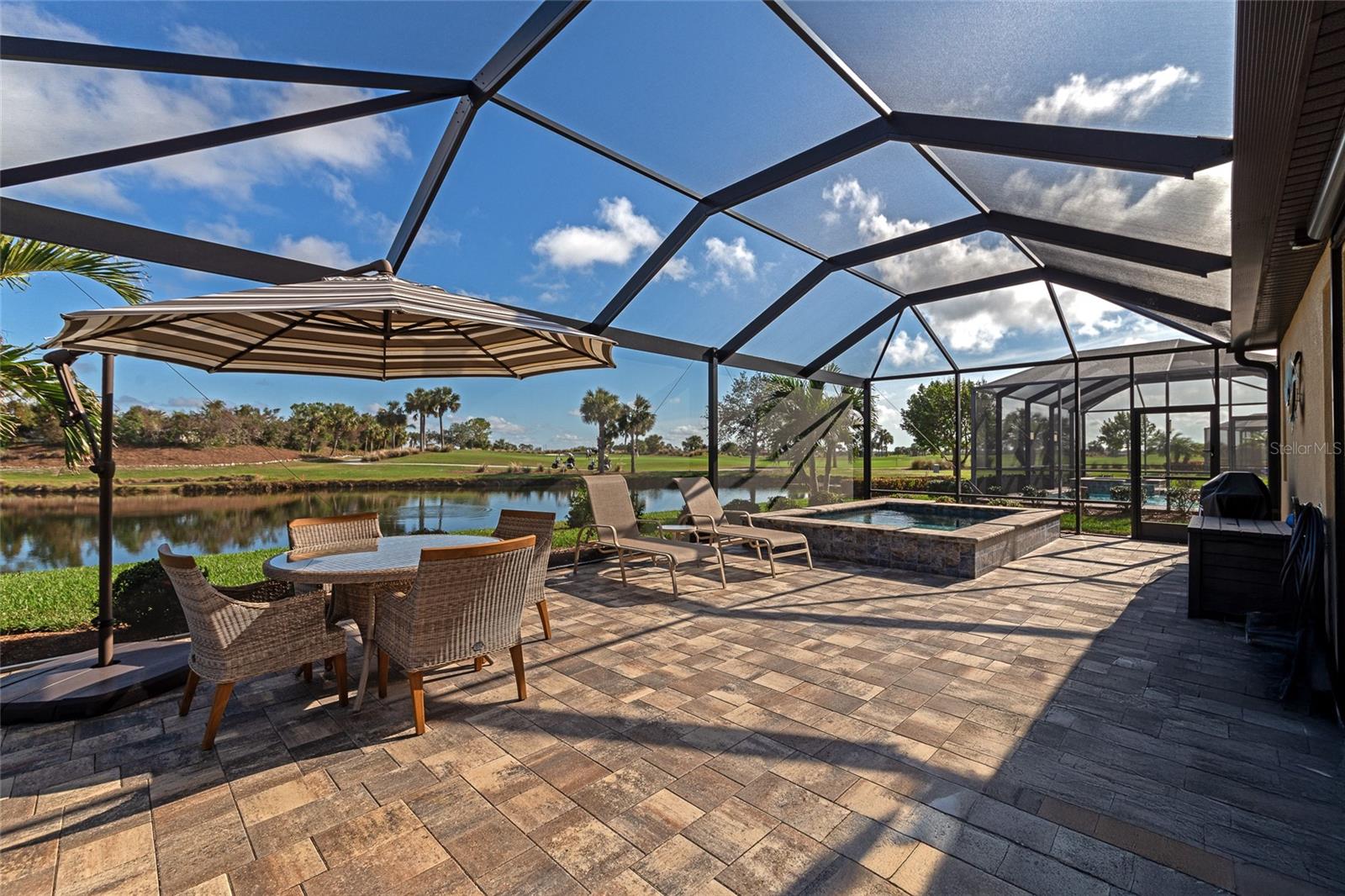 Don't miss this exceptional 4 bedroom, 2 bathroom residence, situated in the highly desired golf community of Sarasota National complete with 2 Golf Memberships included. This distinguished home offers luxurious living space and exclusive access to an extensive array of amenities, ensuring a vibrant and fulfilling community experience. Step into the beautifully designed foyer, where tasteful tile flooring, tray ceilings, and an abundance of large windows greet you with the perfect blend of comfort and sophistication. Just ahead, you'll find the formal dining space, ideal for gathering during holidays and enjoying meals in style. The open concept floor plan seamlessly guides you into the expansive living room, featuring more tray ceilings, elegant pendant lighting, a built-in dry bar, a wine refrigerator, and wall-to-wall sliders that offers serene views of the patio and pool/spa. The stunning gourmet kitchen is a chef's dream, high-end tile finishes, modern stainless steel appliances, and a massive center island perfect for morning coffee and conversation. Here, you can effortlessly create all of your culinary masterpieces while enjoying the luxurious ambiance. At the front of the home, you'll find two inviting guest bedrooms and a well-appointed bathroom, offering comfort and convenience for family and visitors alike. Additionally, a spacious 4th bedroom currently used as a den provides remarkable flexibility, a home office, a library, or a serene retreat for quiet moments. All bedrooms feature pristine luxury vinyl plank flooring, combining elegance with easy maintenance. The primary bedroom is a secluded retreat, designed as its own private suite for ultimate relaxation. Two spacious walk-in closets, providing ample storage, and a spa-like en-suite bathroom. This luxurious space features dual vanities, a grand walk-in shower, and a garden tub perfect for soaking away the day’s stresses. Enhancing the allure of this home is a custom rear patio that seamlessly connects indoor and outdoor living. This outdoor oasis is perfect for al fresco dining, relaxing by the heated spool, and entertaining guests, all while being surrounded by the lush beauty of the community. With picturesque views of the pond and golf course, the spool adds a touch of luxury to daily living. The outdoor space is also equipped with sleek overhead LED lighting to secure the mood you want. This home is designed with both comfort and safety in mind, featuring hurricane-rated windows for added protection. Additional highlights include custom wooden closets in the master bedroom and wooden shelving in all other closets throughout the home. The Sarasota National community offers a wealth of amenities, including the Palm Dining Room and Clubhouse, Tiki Bar, Coffee Lounge, Library, and more. You'll enjoy convenient proximity to exciting attractions, sandy beaches, diverse restaurants, grocery stores, major commuting routes, and top-rated schools. Call today to schedule a private tour before this rare opportunity is gone!