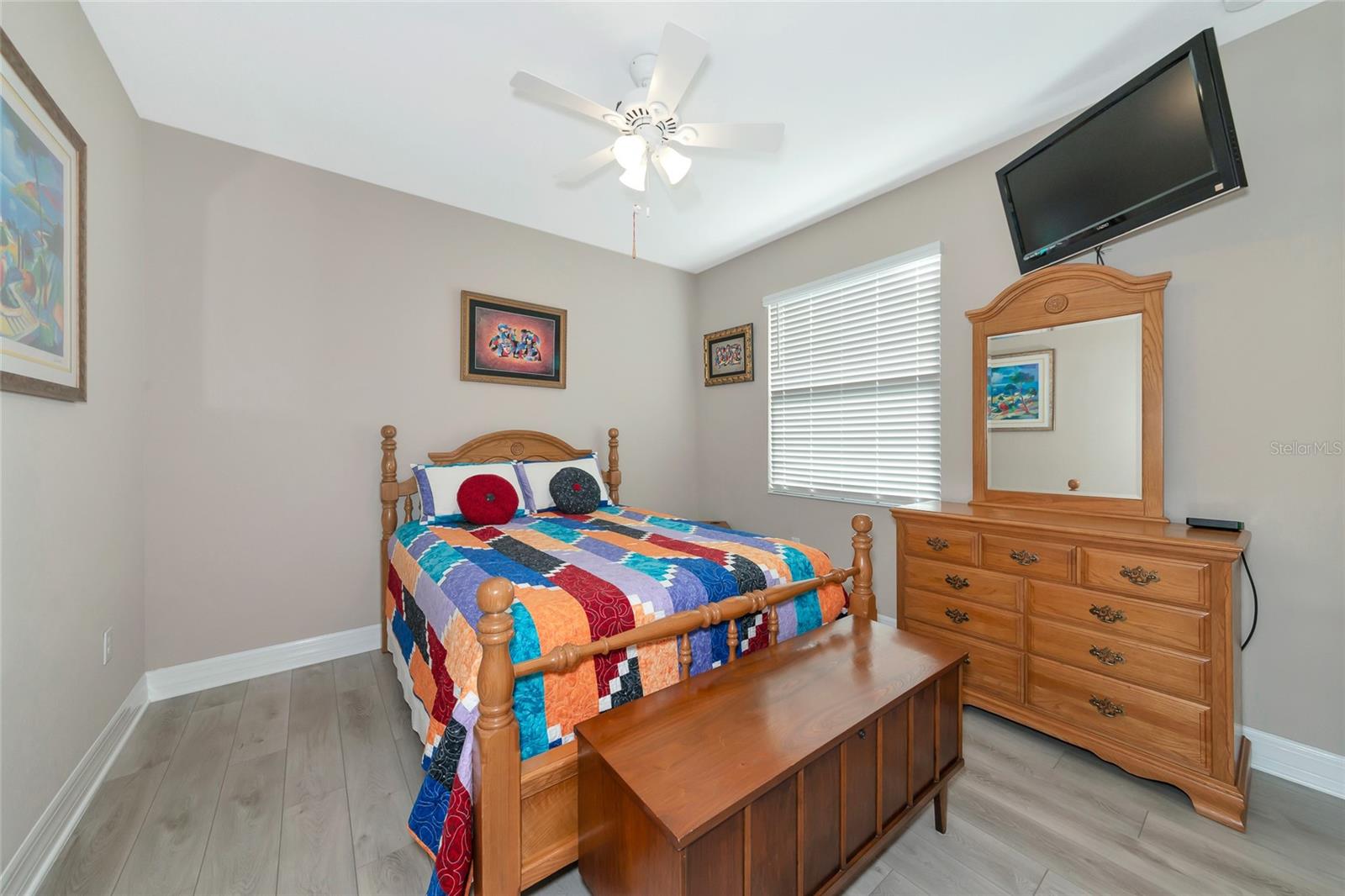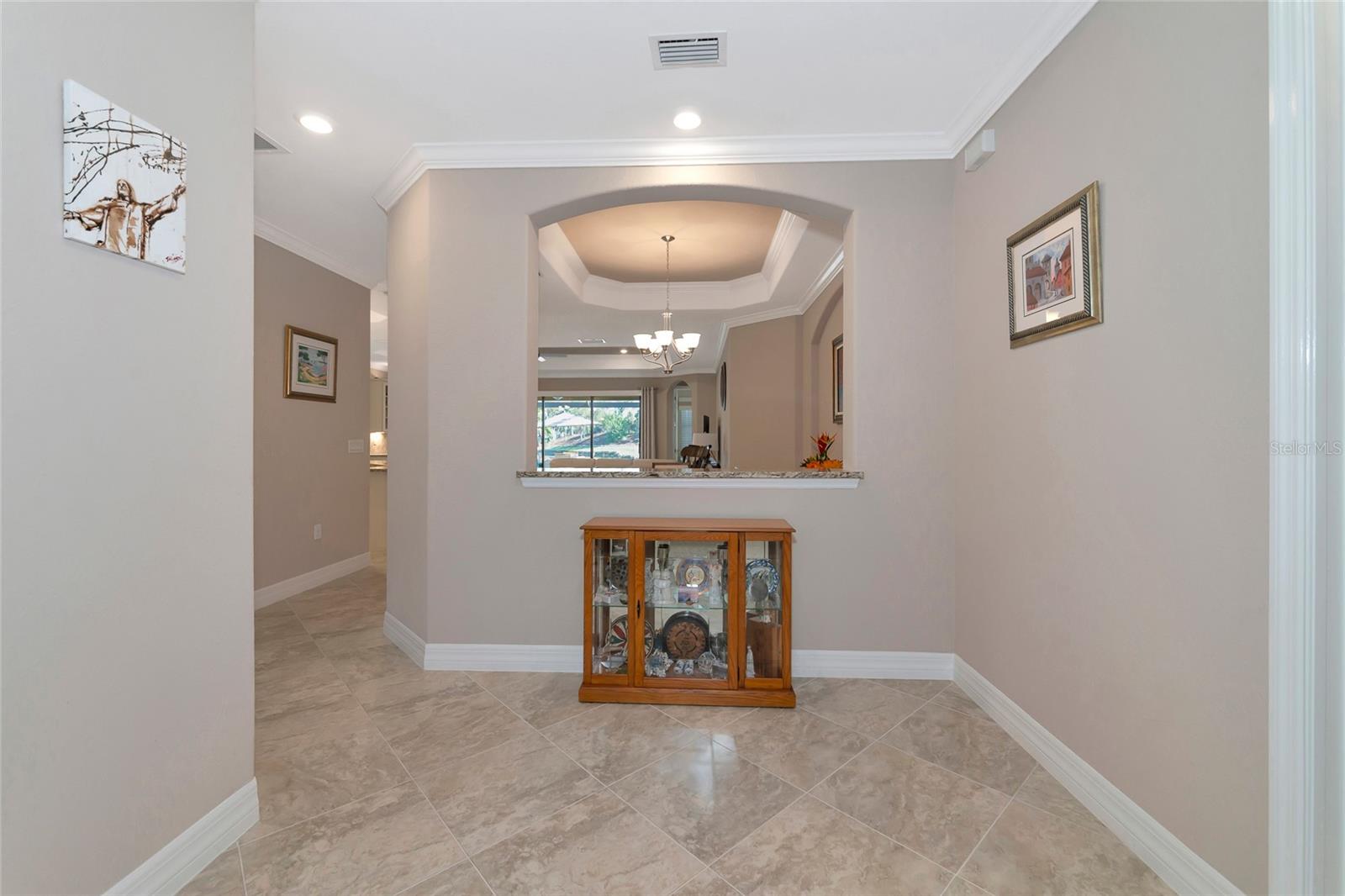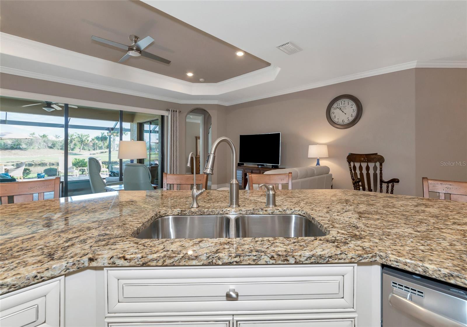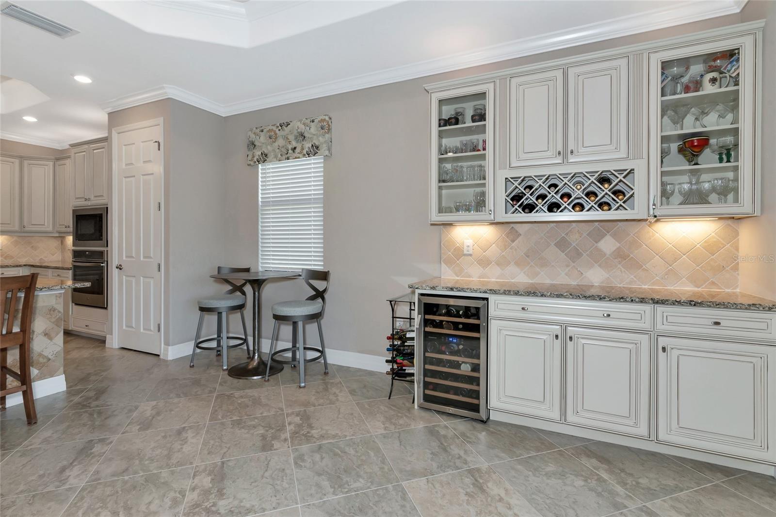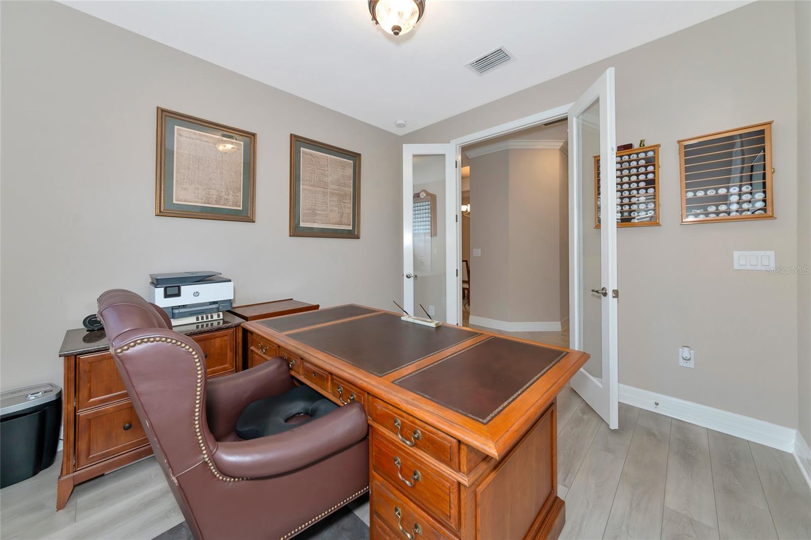 Don't miss this exceptional 4 bedroom, 2 bathroom residence, situated in the highly desired golf community of Sarasota National complete with 2 Golf Memberships included. This distinguished home offers luxurious living space and exclusive access to an extensive array of amenities, ensuring a vibrant and fulfilling community experience. Step into the beautifully designed foyer, where tasteful tile flooring, tray ceilings, and an abundance of large windows greet you with the perfect blend of comfort and sophistication. Just ahead, you'll find the formal dining space, ideal for gathering during holidays and enjoying meals in style. The open concept floor plan seamlessly guides you into the expansive living room, featuring more tray ceilings, elegant pendant lighting, a built-in dry bar, a wine refrigerator, and wall-to-wall sliders that offers serene views of the patio and pool/spa. The stunning gourmet kitchen is a chef's dream, high-end tile finishes, modern stainless steel appliances, and a massive center island perfect for morning coffee and conversation. Here, you can effortlessly create all of your culinary masterpieces while enjoying the luxurious ambiance. At the front of the home, you'll find two inviting guest bedrooms and a well-appointed bathroom, offering comfort and convenience for family and visitors alike. Additionally, a spacious 4th bedroom currently used as a den provides remarkable flexibility, a home office, a library, or a serene retreat for quiet moments. All bedrooms feature pristine luxury vinyl plank flooring, combining elegance with easy maintenance. The primary bedroom is a secluded retreat, designed as its own private suite for ultimate relaxation. Two spacious walk-in closets, providing ample storage, and a spa-like en-suite bathroom. This luxurious space features dual vanities, a grand walk-in shower, and a garden tub perfect for soaking away the day’s stresses. Enhancing the allure of this home is a custom rear patio that seamlessly connects indoor and outdoor living. This outdoor oasis is perfect for al fresco dining, relaxing by the heated spool, and entertaining guests, all while being surrounded by the lush beauty of the community. With picturesque views of the pond and golf course, the spool adds a touch of luxury to daily living. The outdoor space is also equipped with sleek overhead LED lighting to secure the mood you want. This home is designed with both comfort and safety in mind, featuring hurricane-rated windows for added protection. Additional highlights include custom wooden closets in the master bedroom and wooden shelving in all other closets throughout the home. The Sarasota National community offers a wealth of amenities, including the Palm Dining Room and Clubhouse, Tiki Bar, Coffee Lounge, Library, and more. You'll enjoy convenient proximity to exciting attractions, sandy beaches, diverse restaurants, grocery stores, major commuting routes, and top-rated schools. Call today to schedule a private tour before this rare opportunity is gone!